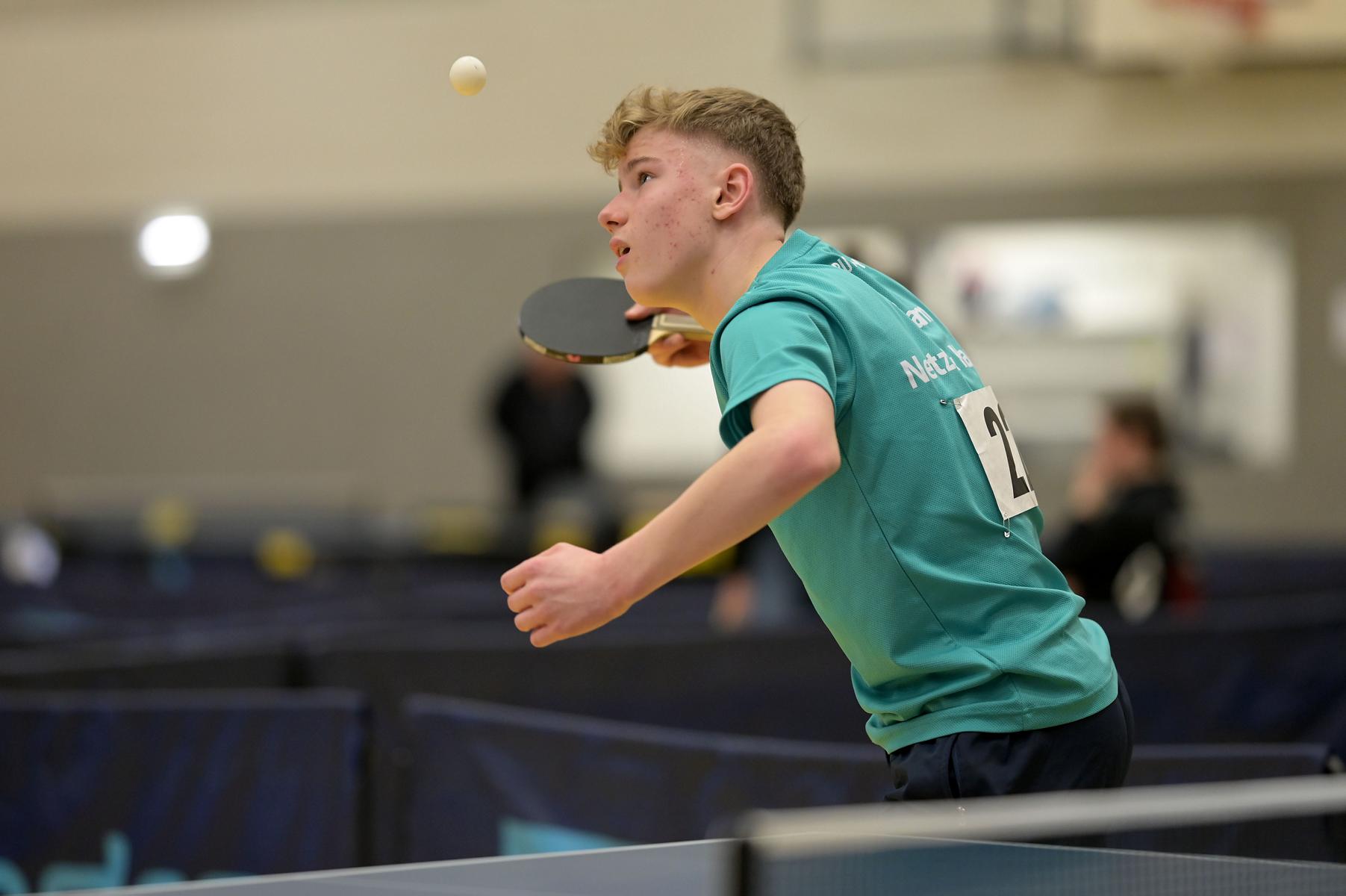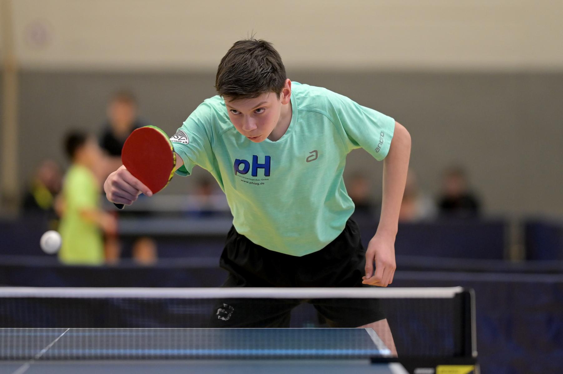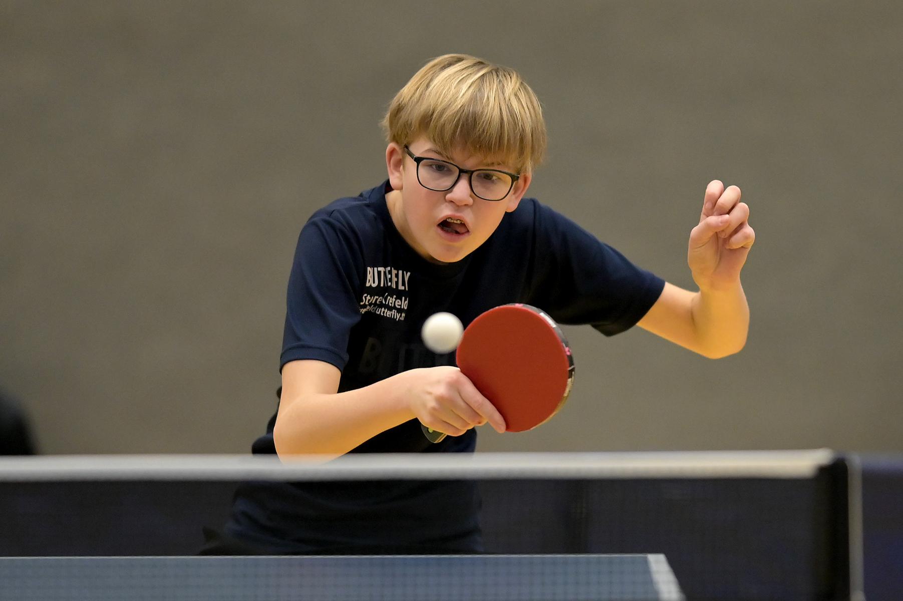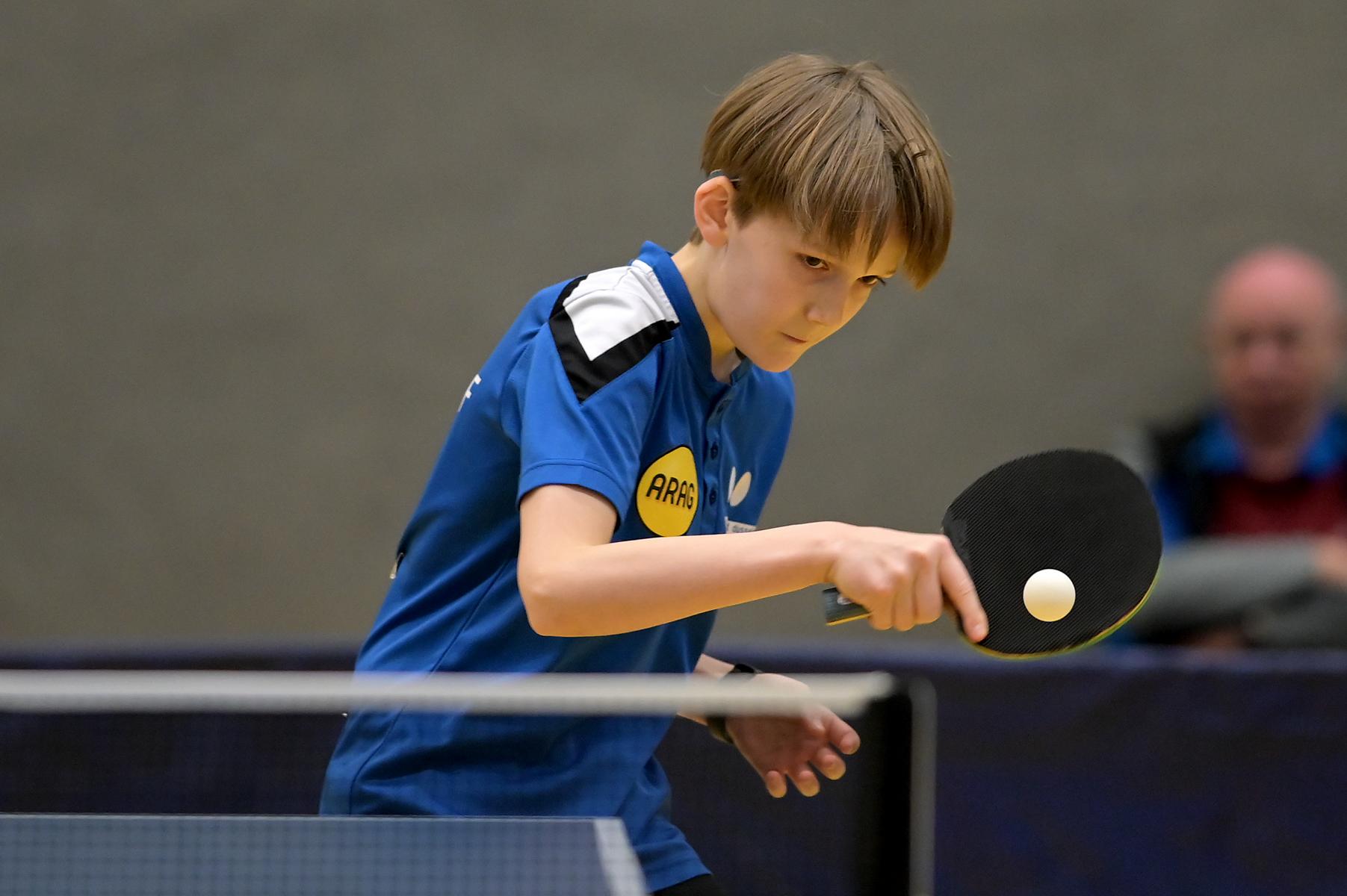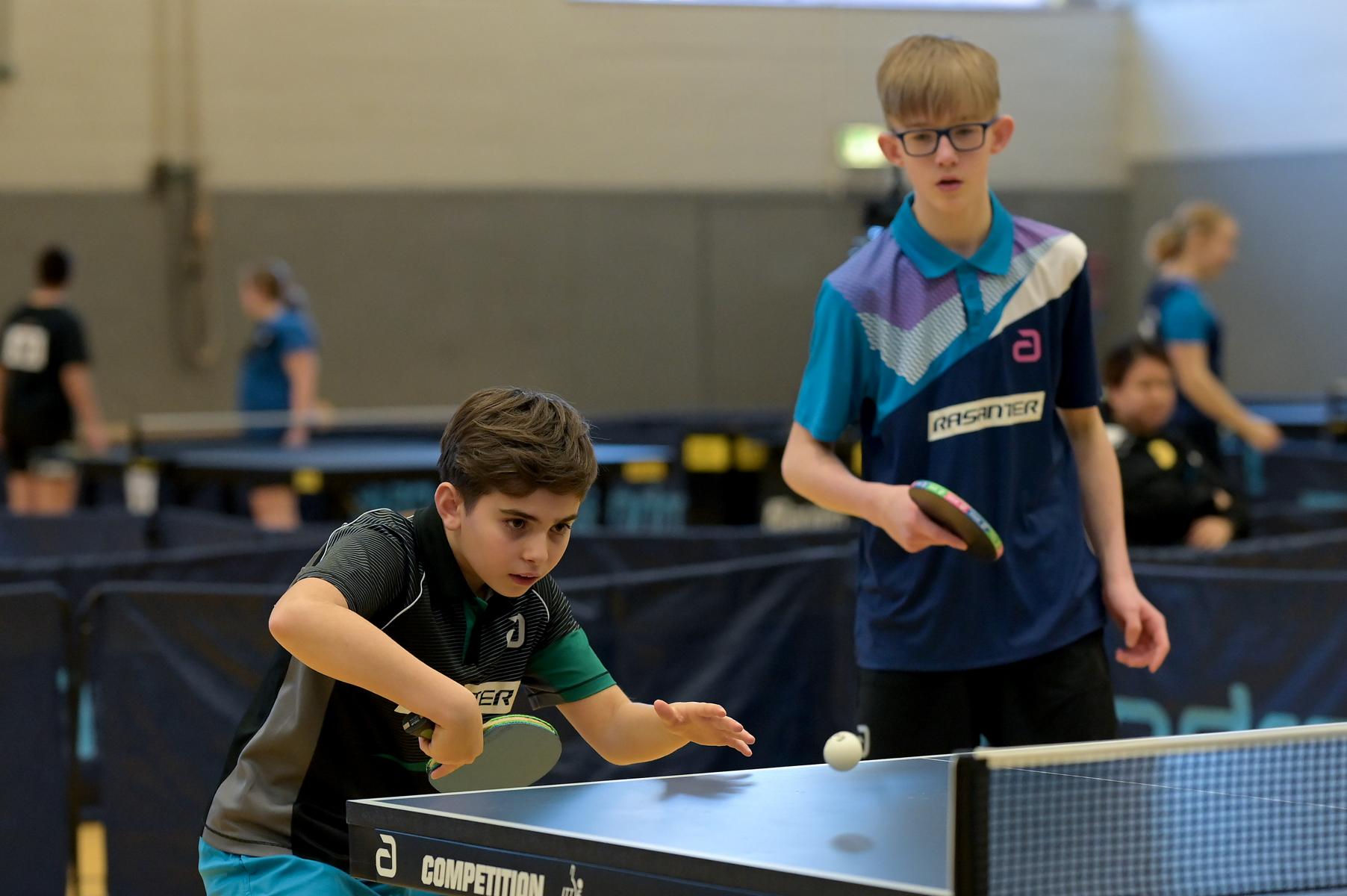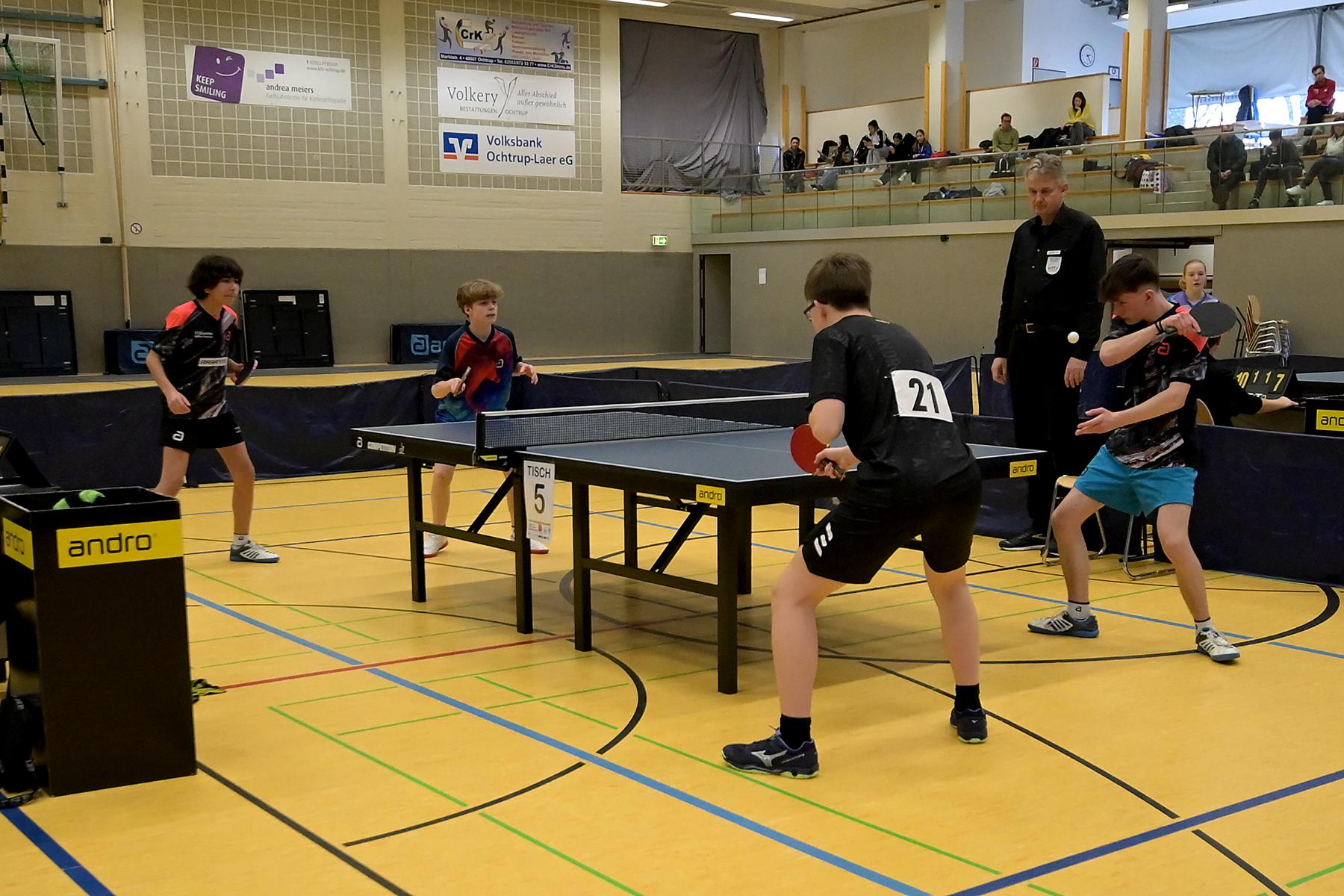 Bei den Jungen erreichte Top-Favorit Ole Brock ( TTC DJK Bad Westernkotten) souverän das Finale. Im gegenüber stand Finn Stockmann (Spvgg. Meiderich 06/95), der an diesem Wochenende ein tolles Turnier spielte und seine Chance nutzte, denn in der unteren Hälfte der KO-Runde „stolperten“ einige Favoriten. So kam es im Halbfinale zu den Paarungen Finn Stockmann gegen Amandus Vogl (TTC Bärbroich) und Ole spielte gegen Rahdeen Haghighat (1. FC Köln). Sowohl Finn als auch Ole gaben hier lediglich einen Satz ab und erreichten durch ihre 3:1-Siege das Finale.