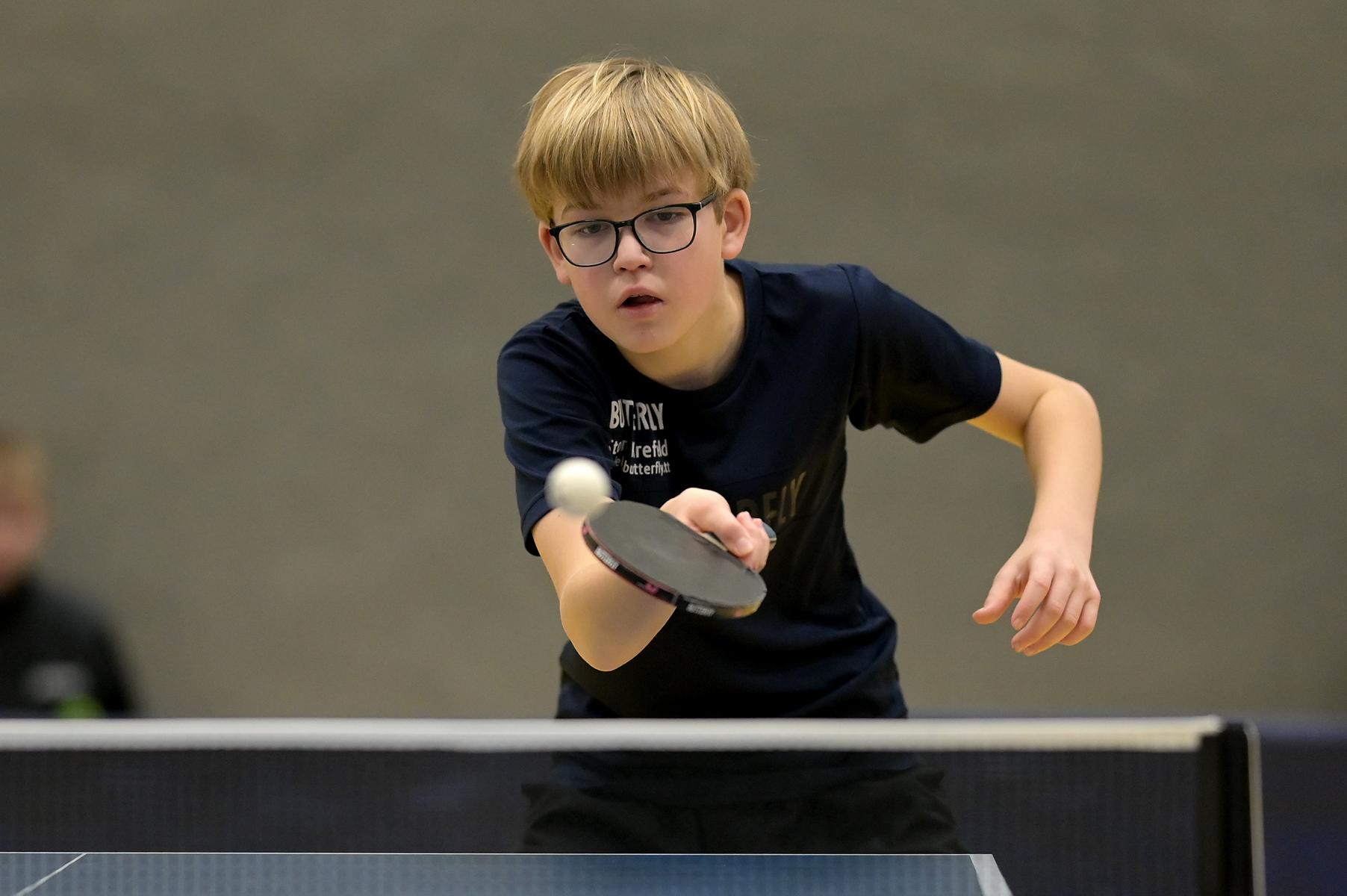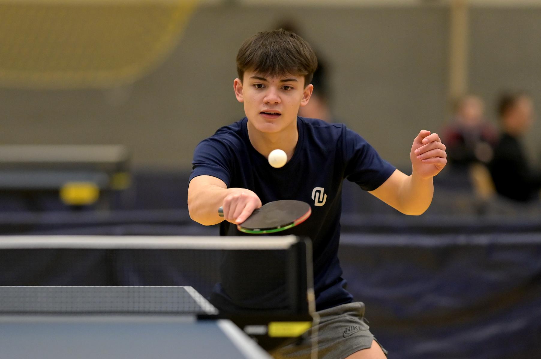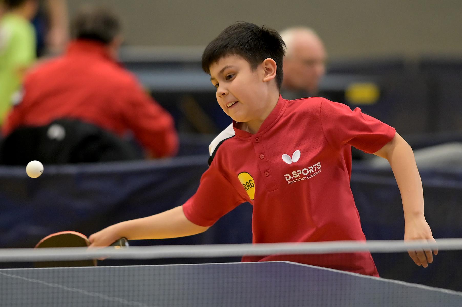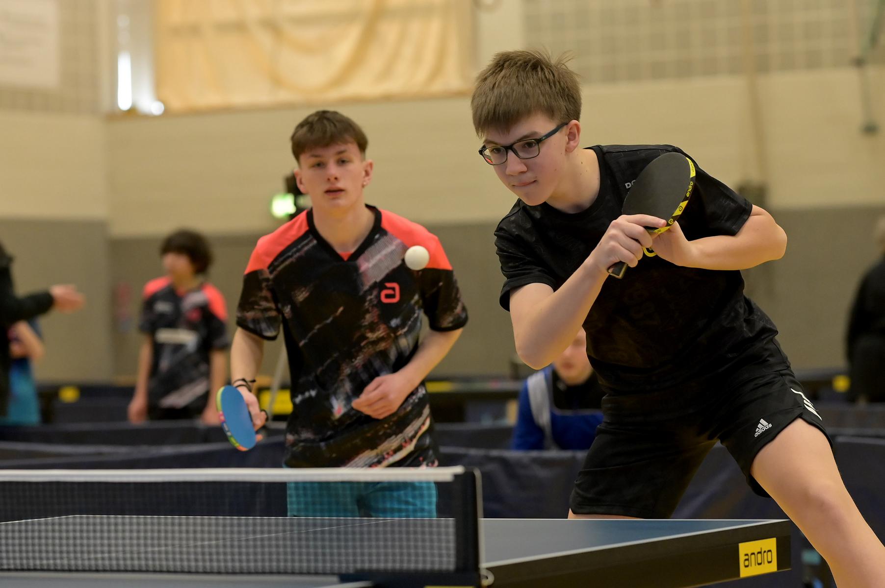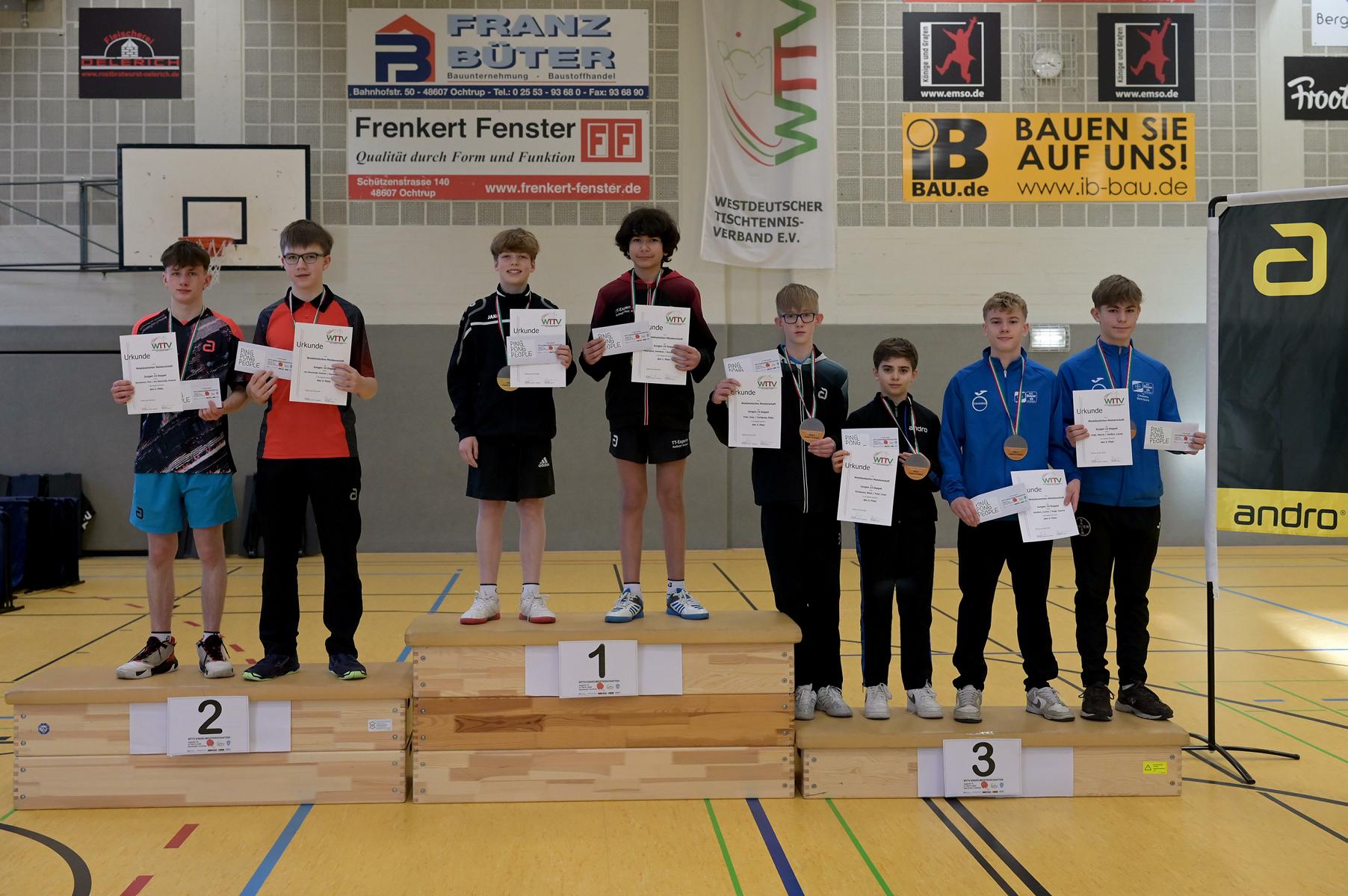 Bei den Jungen erreichte Top-Favorit Ole Brock ( TTC DJK Bad Westernkotten) souverän das Finale. Im gegenüber stand Finn Stockmann (Spvgg. Meiderich 06/95), der an diesem Wochenende ein tolles Turnier spielte und seine Chance nutzte, denn in der unteren Hälfte der KO-Runde „stolperten“ einige Favoriten. So kam es im Halbfinale zu den Paarungen Finn Stockmann gegen Amandus Vogl (TTC Bärbroich) und Ole spielte gegen Rahdeen Haghighat (1. FC Köln). Sowohl Finn als auch Ole gaben hier lediglich einen Satz ab und erreichten durch ihre 3:1-Siege das Finale.