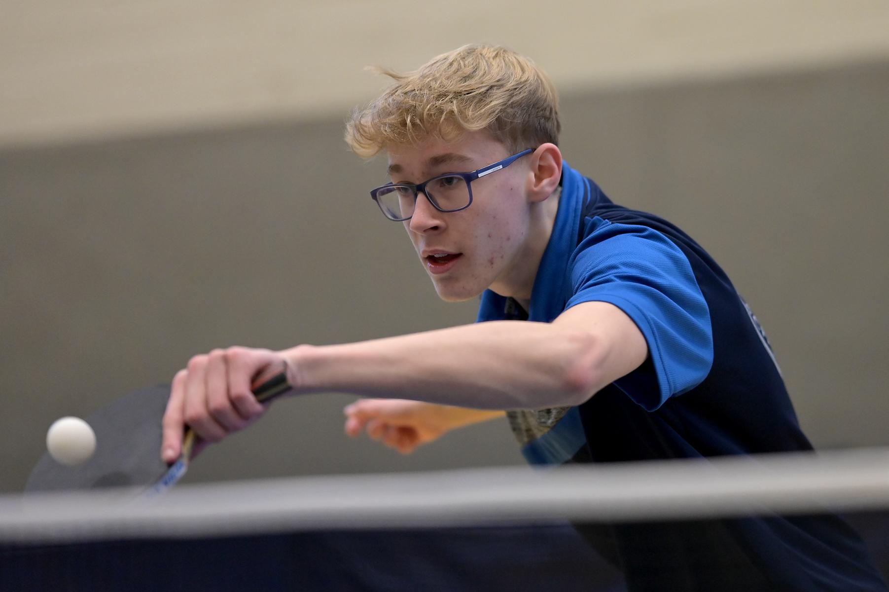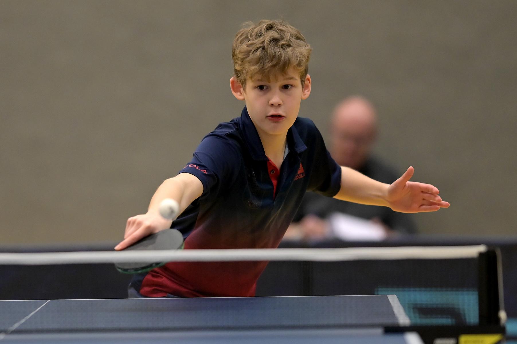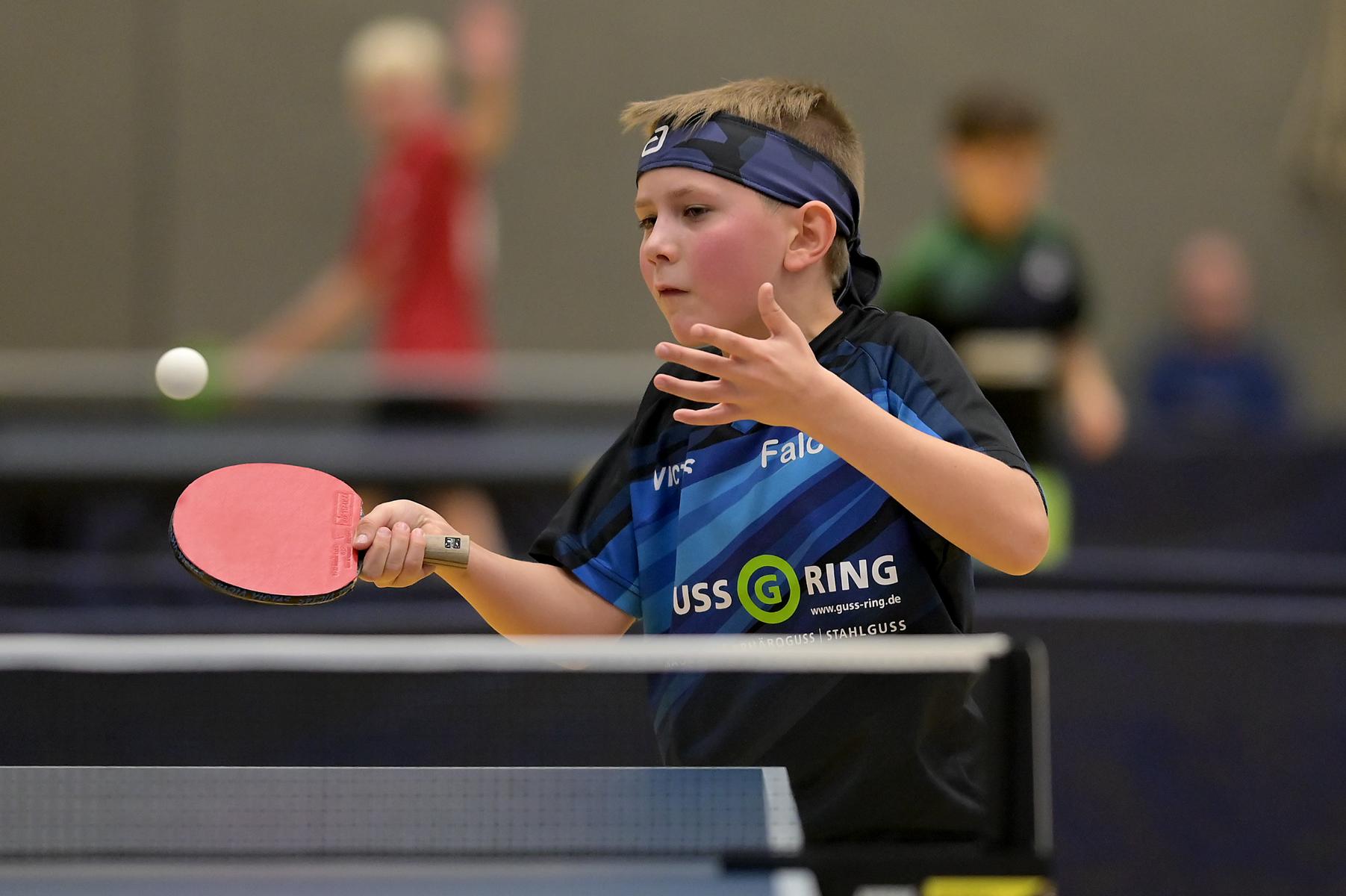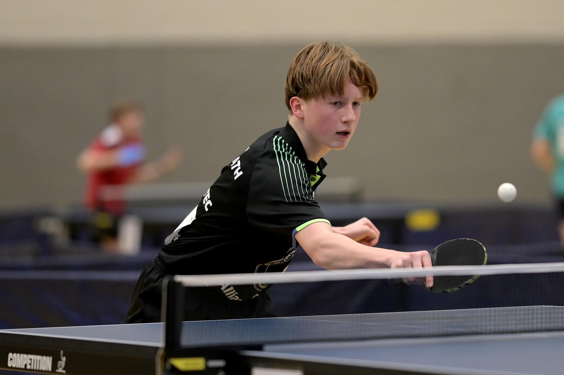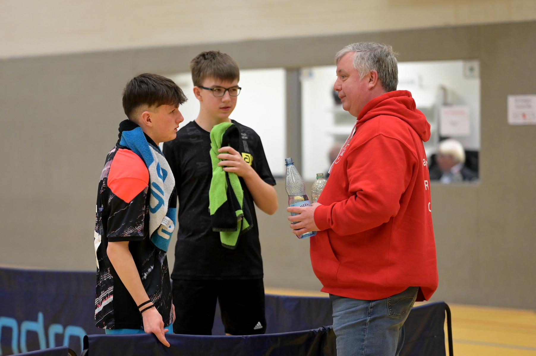 Bei den Jungen erreichte Top-Favorit Ole Brock ( TTC DJK Bad Westernkotten) souverän das Finale. Im gegenüber stand Finn Stockmann (Spvgg. Meiderich 06/95), der an diesem Wochenende ein tolles Turnier spielte und seine Chance nutzte, denn in der unteren Hälfte der KO-Runde „stolperten“ einige Favoriten. So kam es im Halbfinale zu den Paarungen Finn Stockmann gegen Amandus Vogl (TTC Bärbroich) und Ole spielte gegen Rahdeen Haghighat (1. FC Köln). Sowohl Finn als auch Ole gaben hier lediglich einen Satz ab und erreichten durch ihre 3:1-Siege das Finale.