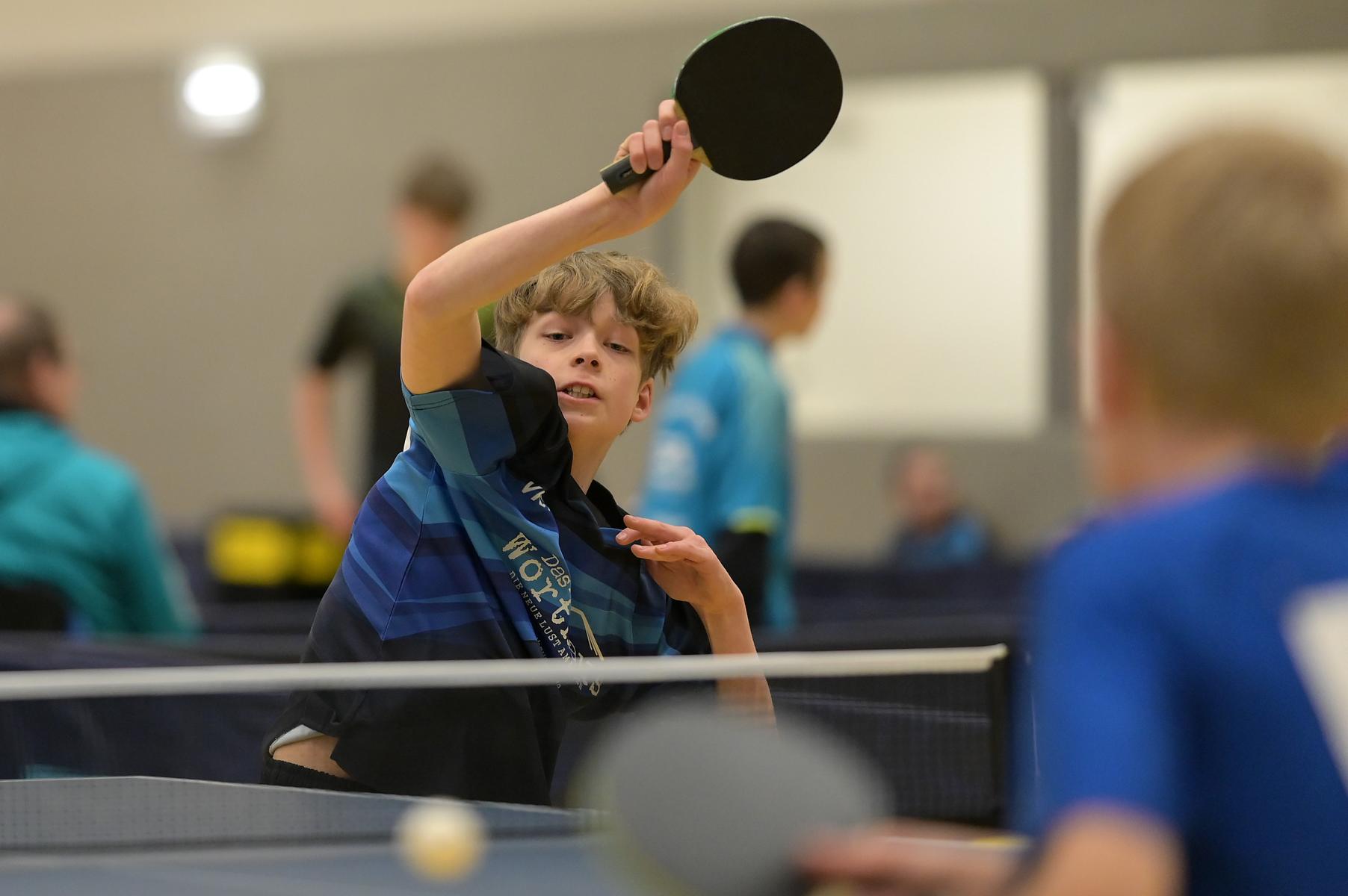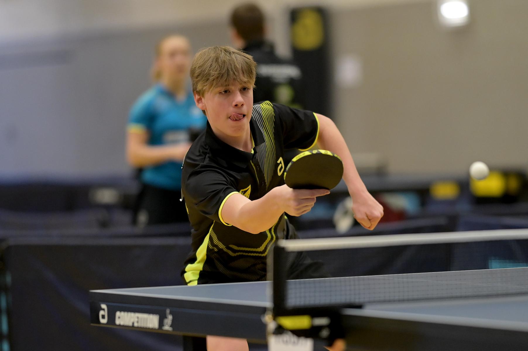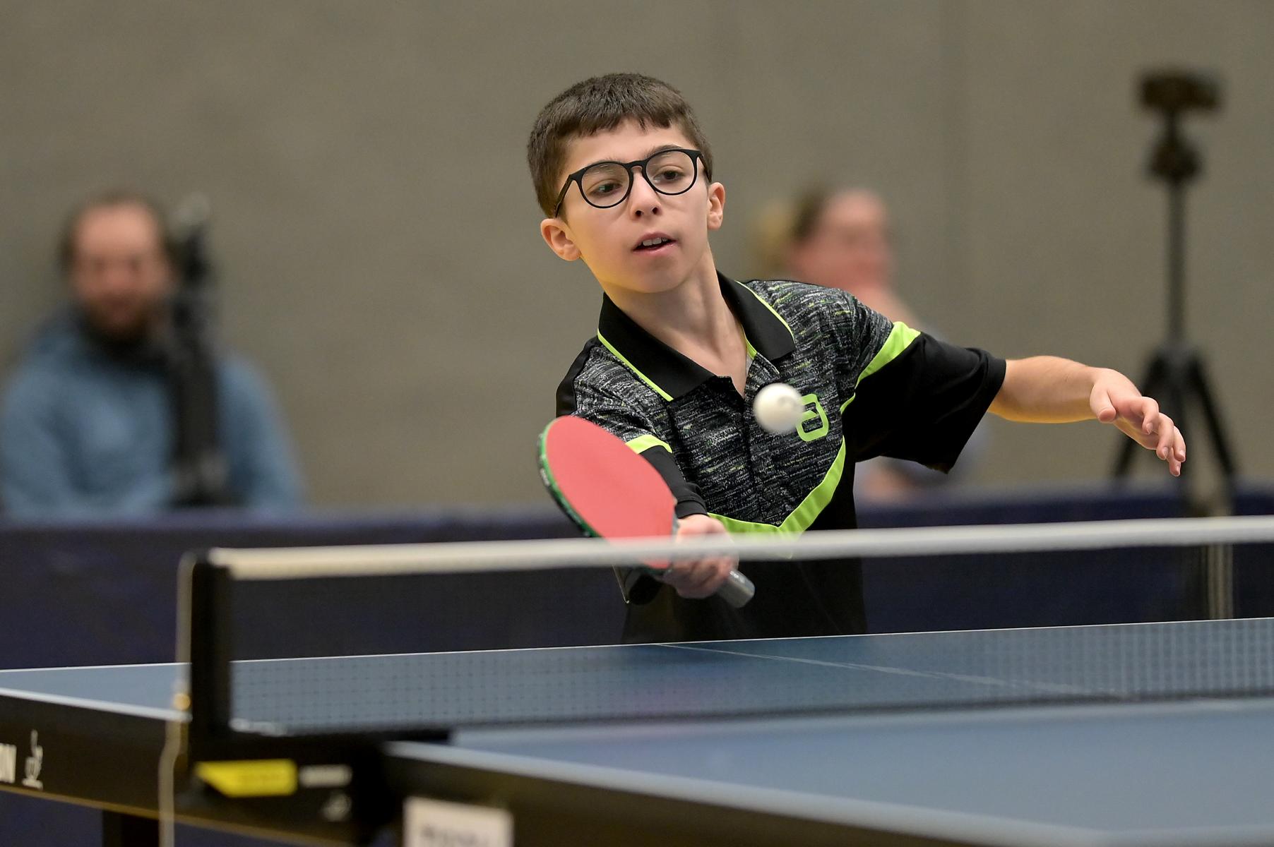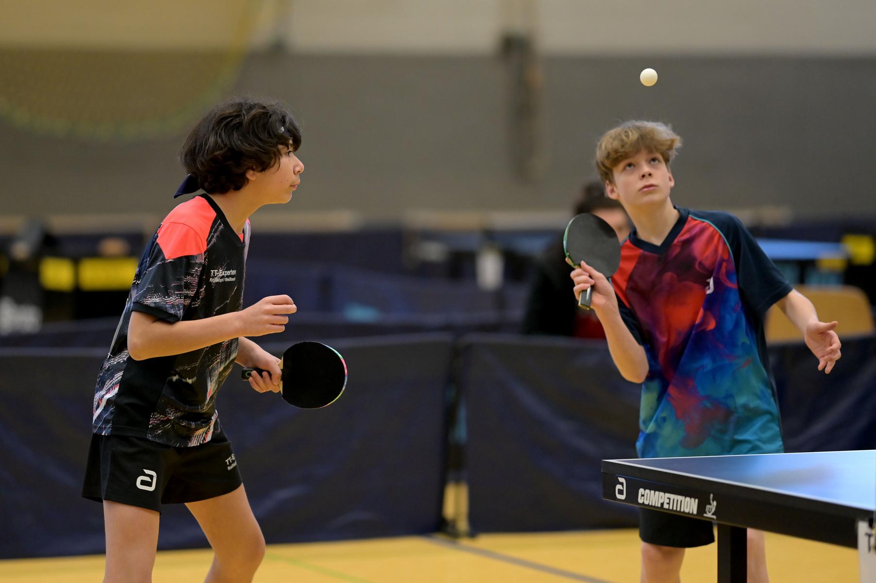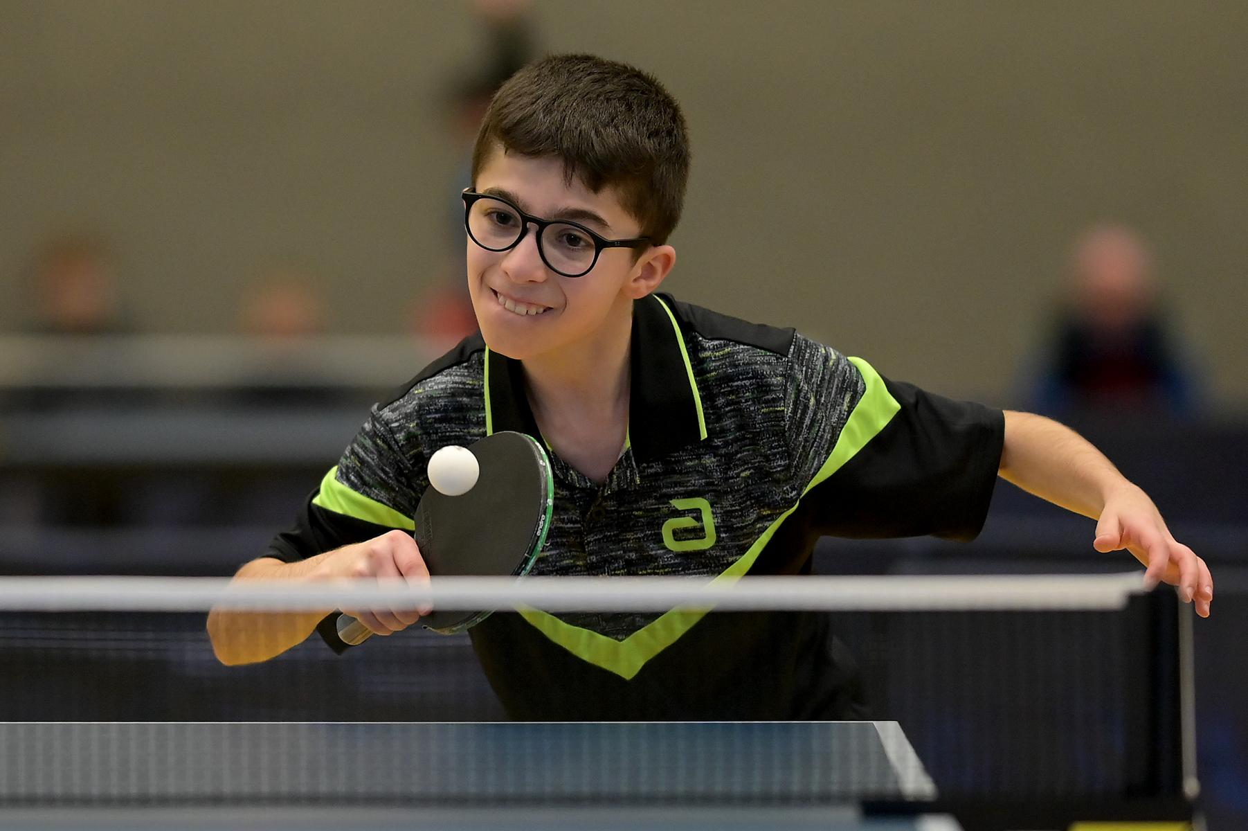 Bei den Jungen erreichte Top-Favorit Ole Brock ( TTC DJK Bad Westernkotten) souverän das Finale. Im gegenüber stand Finn Stockmann (Spvgg. Meiderich 06/95), der an diesem Wochenende ein tolles Turnier spielte und seine Chance nutzte, denn in der unteren Hälfte der KO-Runde „stolperten“ einige Favoriten. So kam es im Halbfinale zu den Paarungen Finn Stockmann gegen Amandus Vogl (TTC Bärbroich) und Ole spielte gegen Rahdeen Haghighat (1. FC Köln). Sowohl Finn als auch Ole gaben hier lediglich einen Satz ab und erreichten durch ihre 3:1-Siege das Finale.