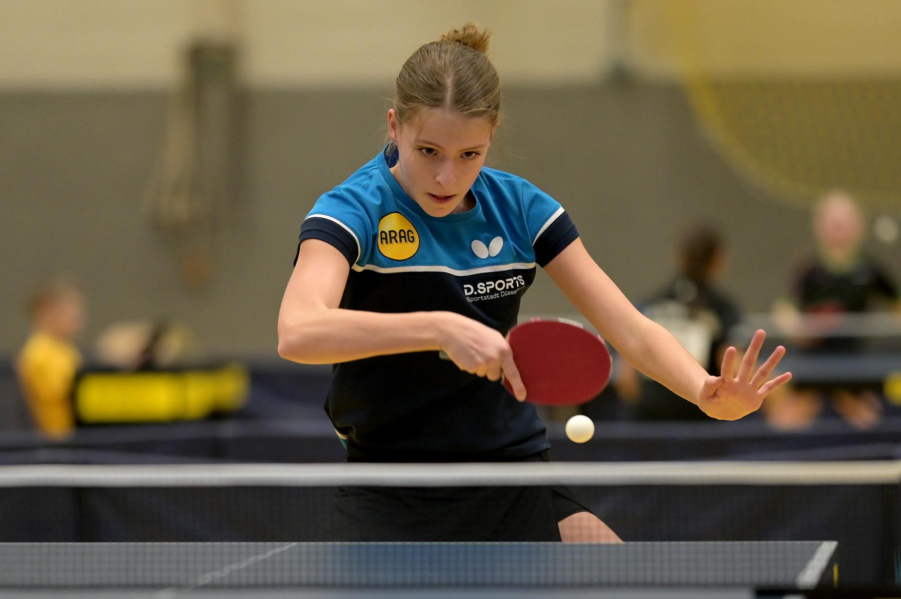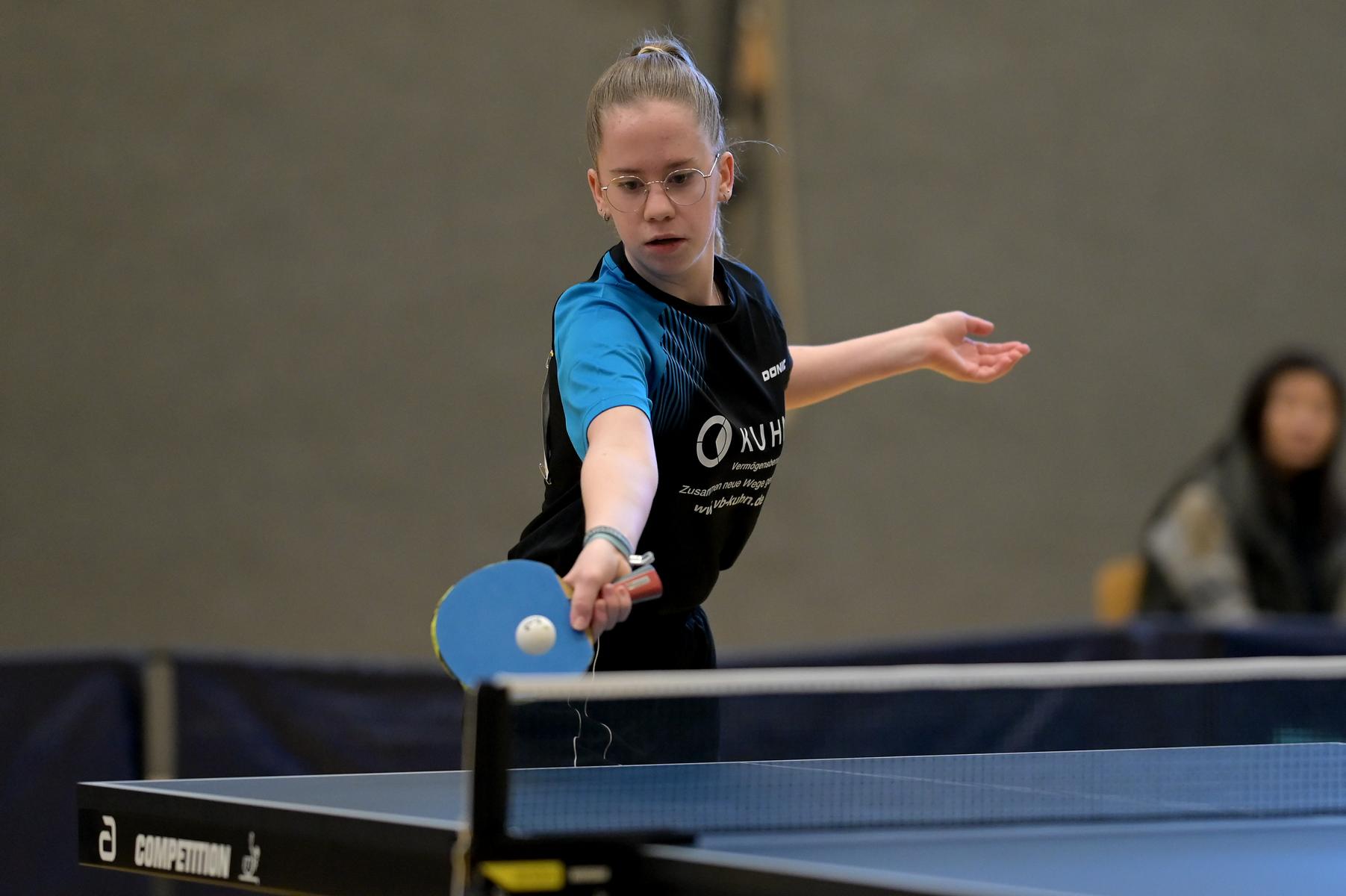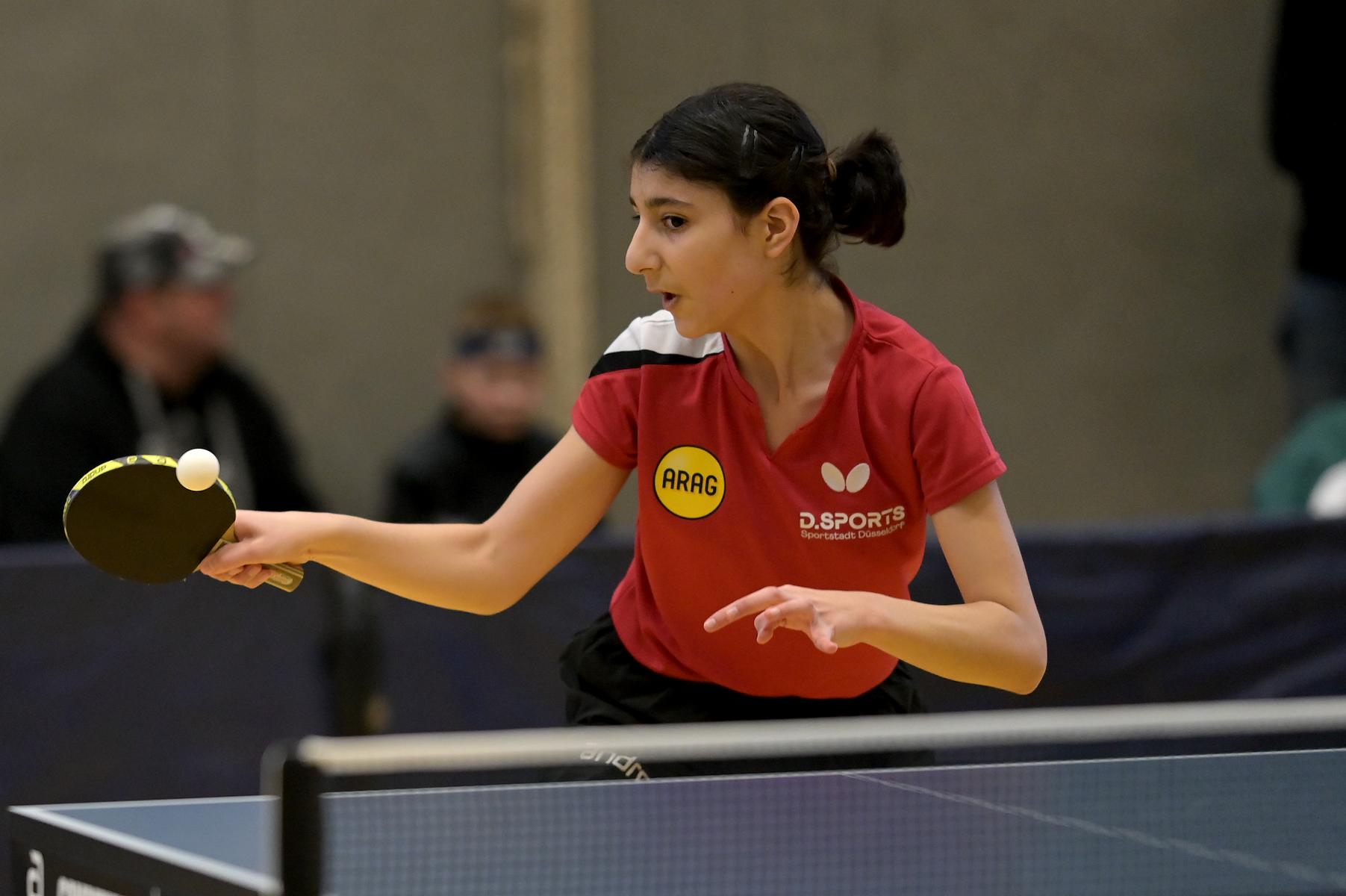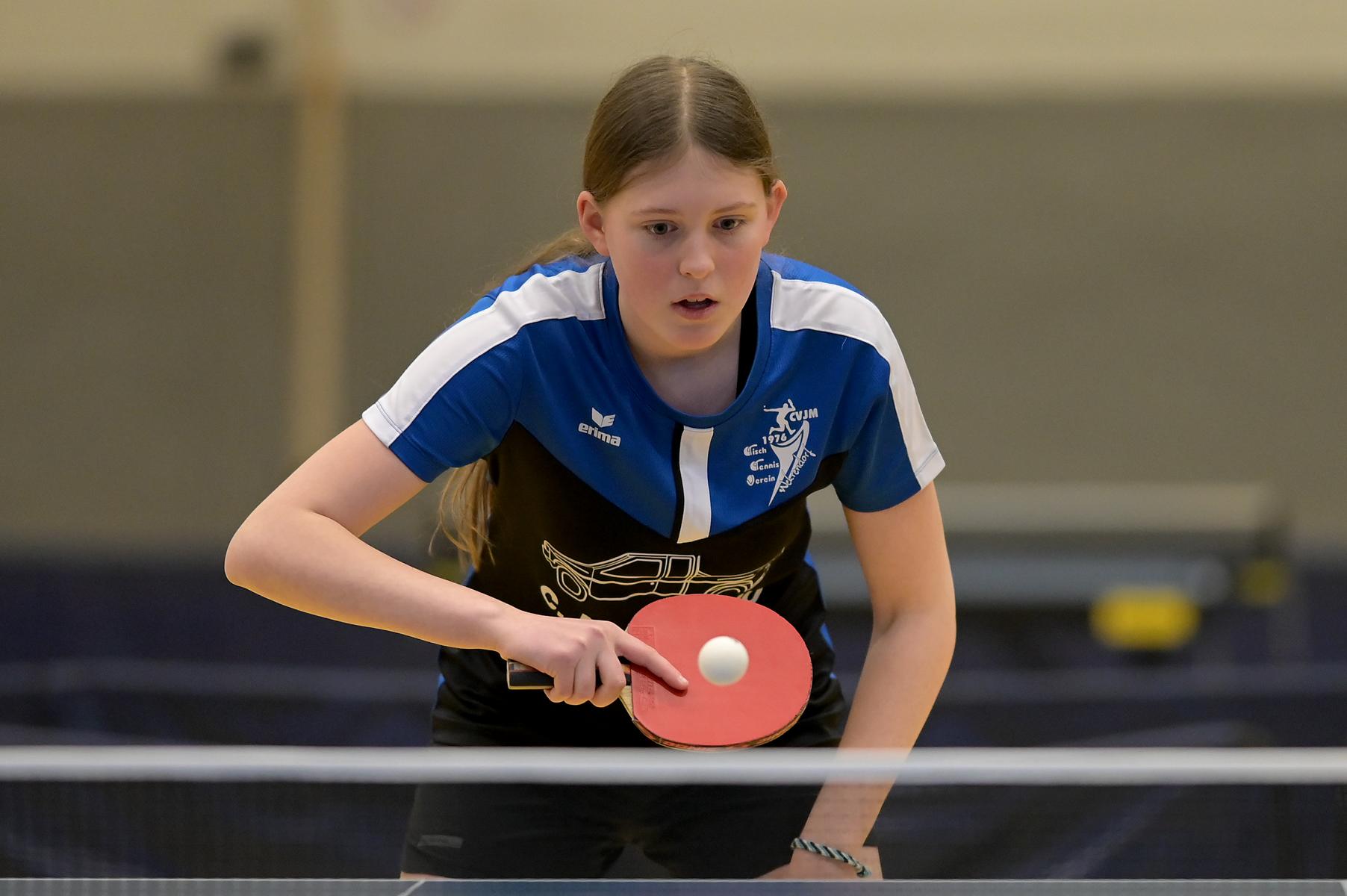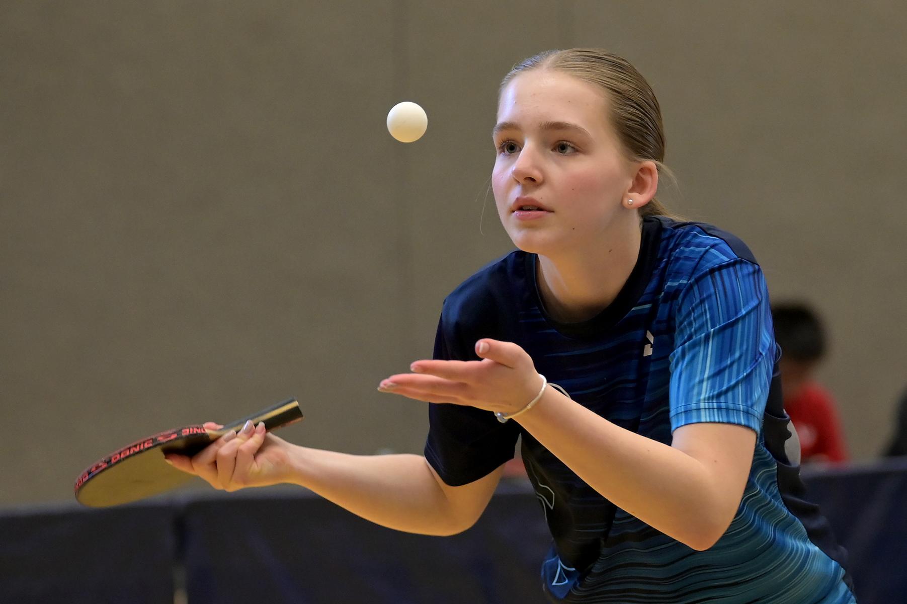 Im Mädchen-Einzel erreichten alle vier Gesetzten, Mariia Bodnar (DJK BW Annen), Linyun Wei (TG Neuss), Greta Bögershausen (Borussia Düsseldorf) und Frieda Strugholz (TTC DJK Bad Westernkotten), ohne größere Schwierigkeiten das Halbfinale. Dass die vier Mädchen leistungsmäßig sehr nah beieinander liegen, zeigt, dass die restlichen drei Spiele erst im Entscheidungssatz entschieden wurden. Mariia besiegte in einem sehr spannenden Match in der Vorschlussrunde Linyun mit 12:10 im fünften Satz. Auch das Spiel zwischen Greta und Frieda endete mit nur zwei Bällen Unterschied, hier behielt Frieda mit 11:9 im letzten Satz die Oberhand gegen Greta.
