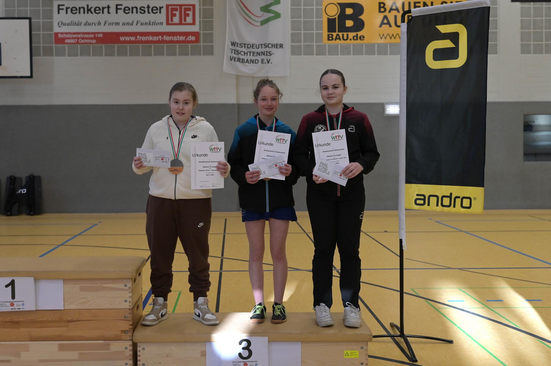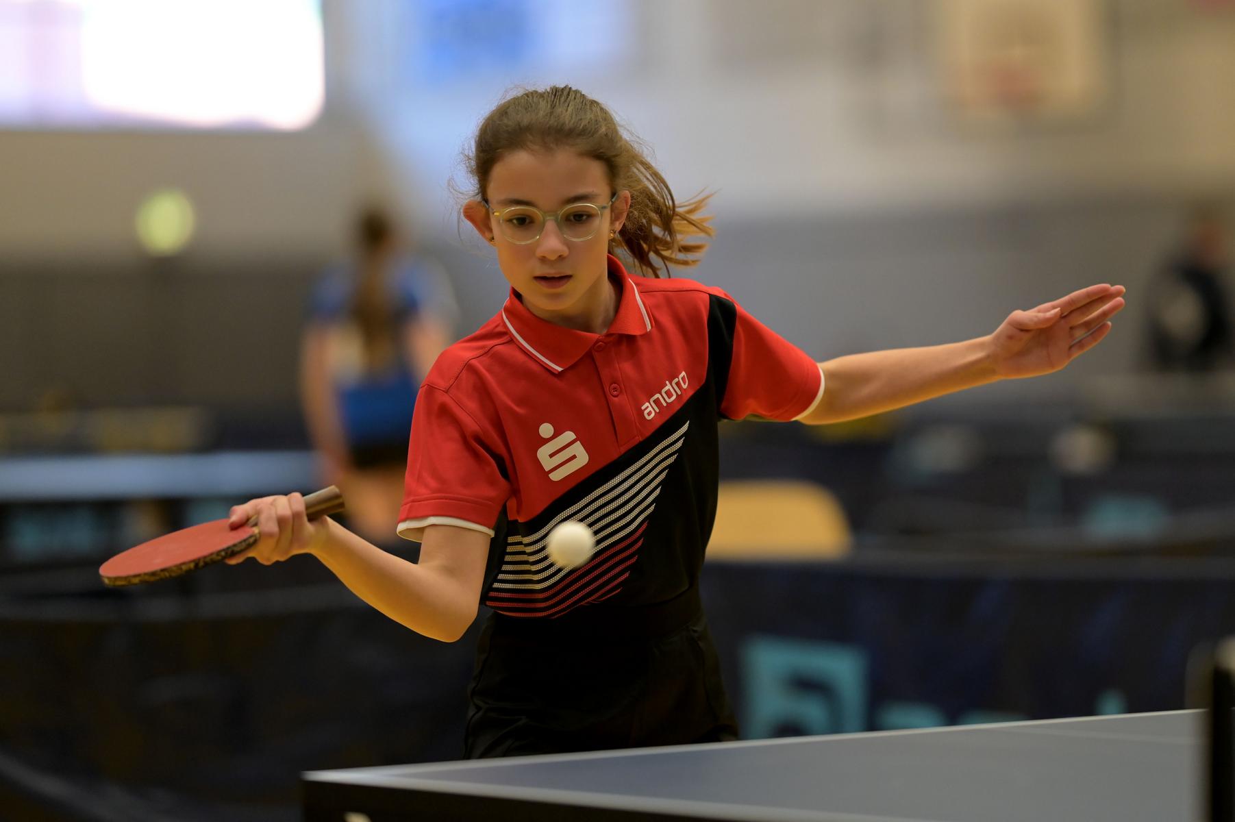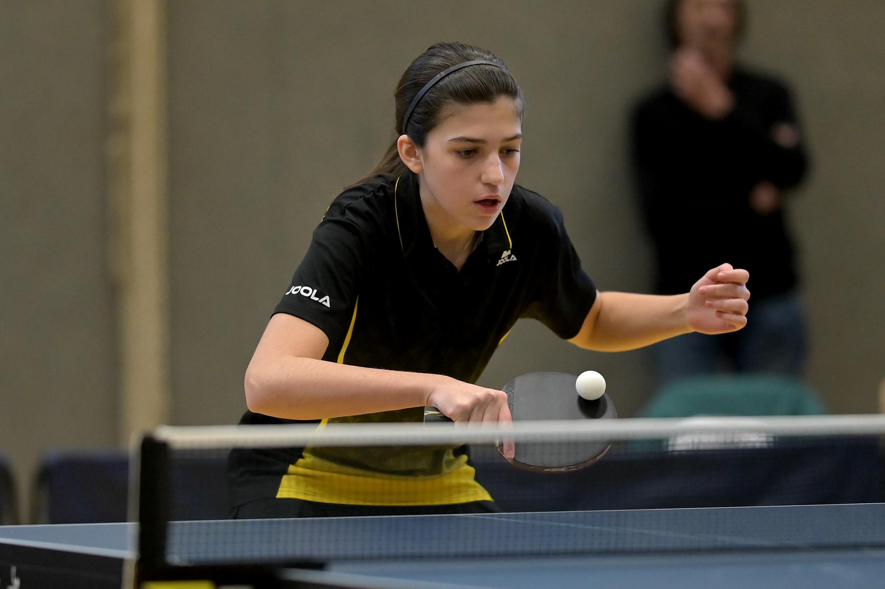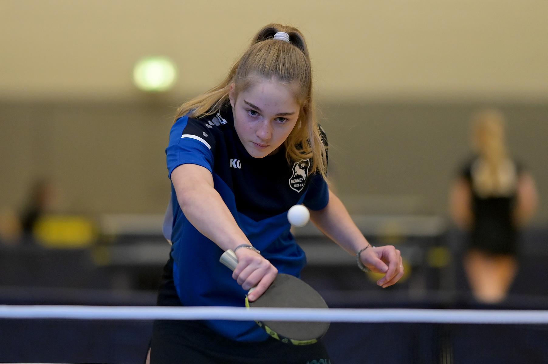 Im Mädchen-Einzel erreichten alle vier Gesetzten, Mariia Bodnar (DJK BW Annen), Linyun Wei (TG Neuss), Greta Bögershausen (Borussia Düsseldorf) und Frieda Strugholz (TTC DJK Bad Westernkotten), ohne größere Schwierigkeiten das Halbfinale. Dass die vier Mädchen leistungsmäßig sehr nah beieinander liegen, zeigt, dass die restlichen drei Spiele erst im Entscheidungssatz entschieden wurden. Mariia besiegte in einem sehr spannenden Match in der Vorschlussrunde Linyun mit 12:10 im fünften Satz. Auch das Spiel zwischen Greta und Frieda endete mit nur zwei Bällen Unterschied, hier behielt Frieda mit 11:9 im letzten Satz die Oberhand gegen Greta.