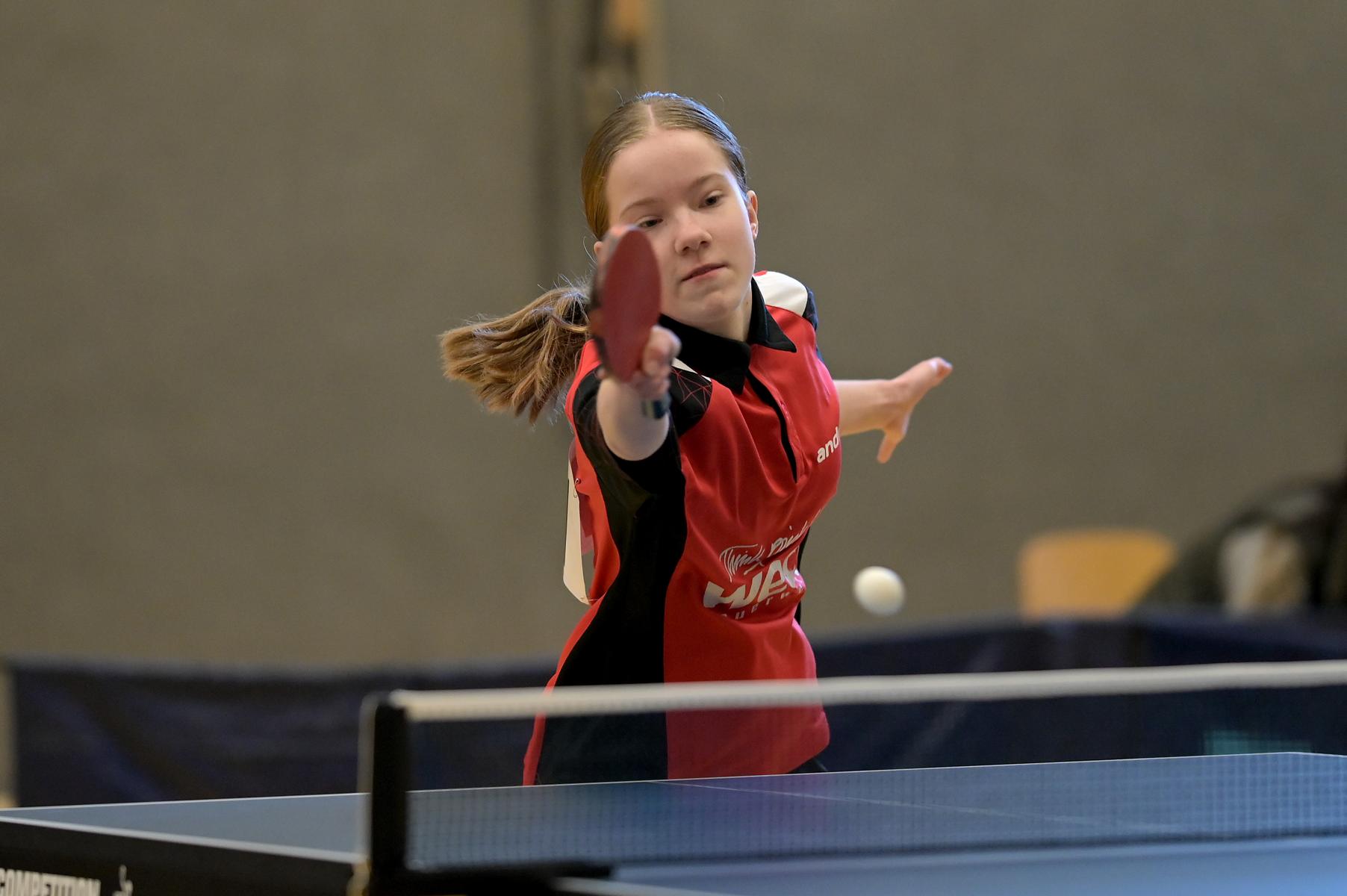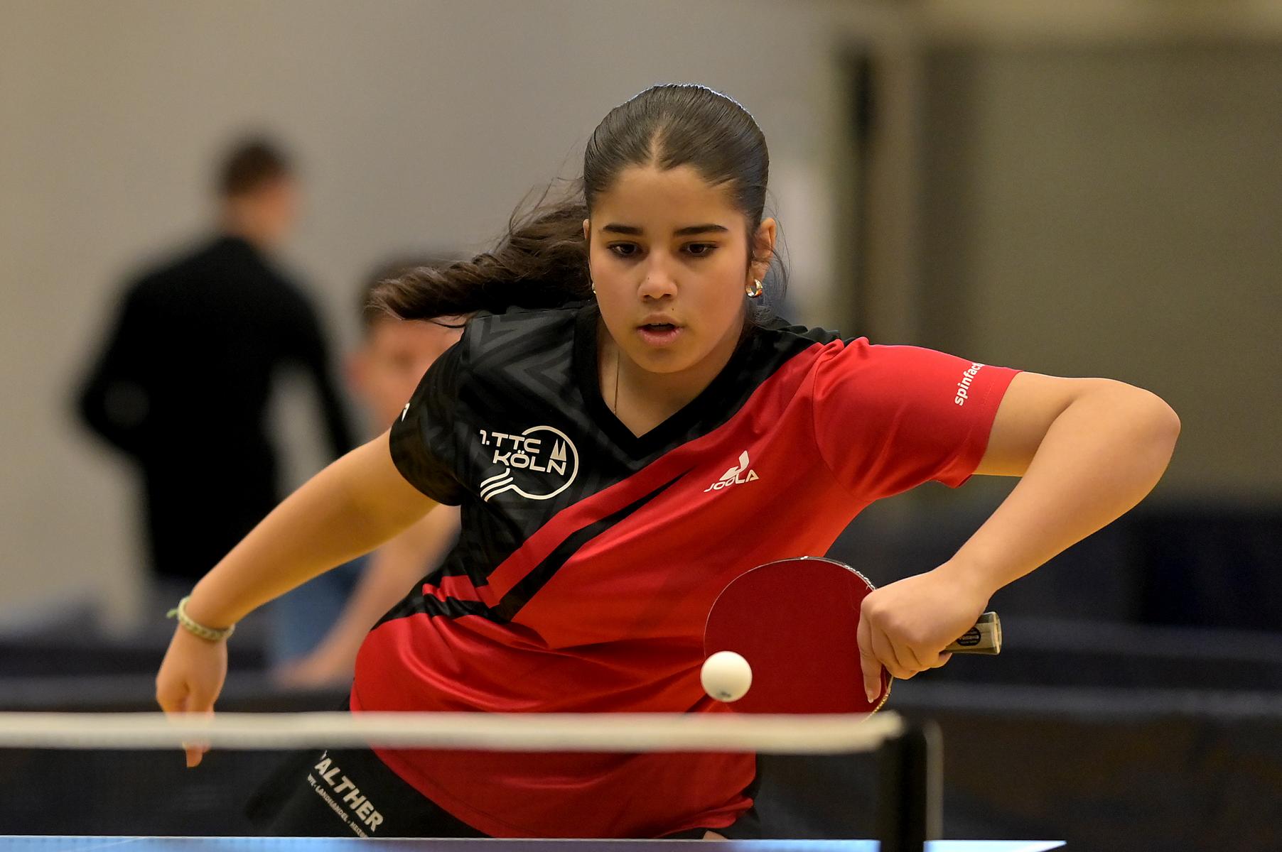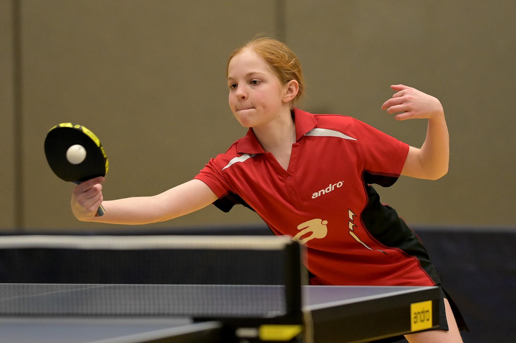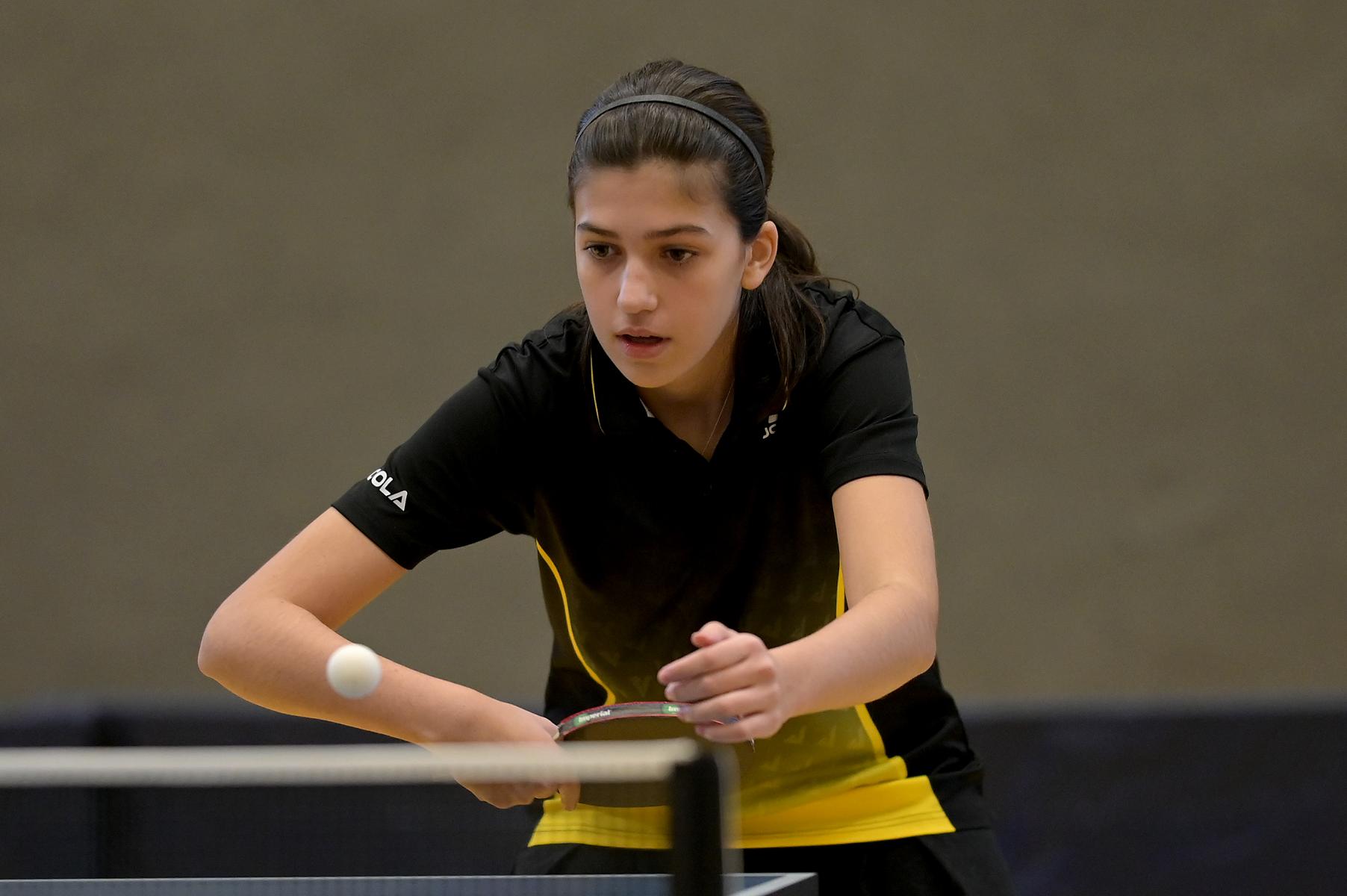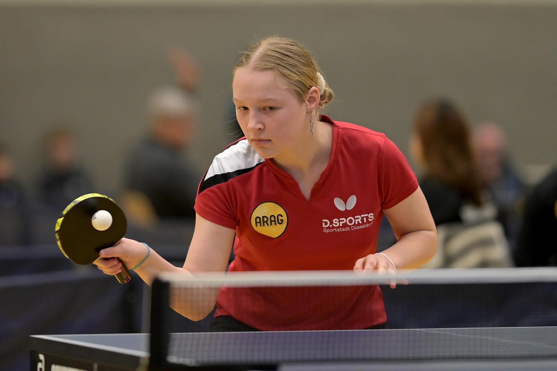 Im Mädchen-Einzel erreichten alle vier Gesetzten, Mariia Bodnar (DJK BW Annen), Linyun Wei (TG Neuss), Greta Bögershausen (Borussia Düsseldorf) und Frieda Strugholz (TTC DJK Bad Westernkotten), ohne größere Schwierigkeiten das Halbfinale. Dass die vier Mädchen leistungsmäßig sehr nah beieinander liegen, zeigt, dass die restlichen drei Spiele erst im Entscheidungssatz entschieden wurden. Mariia besiegte in einem sehr spannenden Match in der Vorschlussrunde Linyun mit 12:10 im fünften Satz. Auch das Spiel zwischen Greta und Frieda endete mit nur zwei Bällen Unterschied, hier behielt Frieda mit 11:9 im letzten Satz die Oberhand gegen Greta.