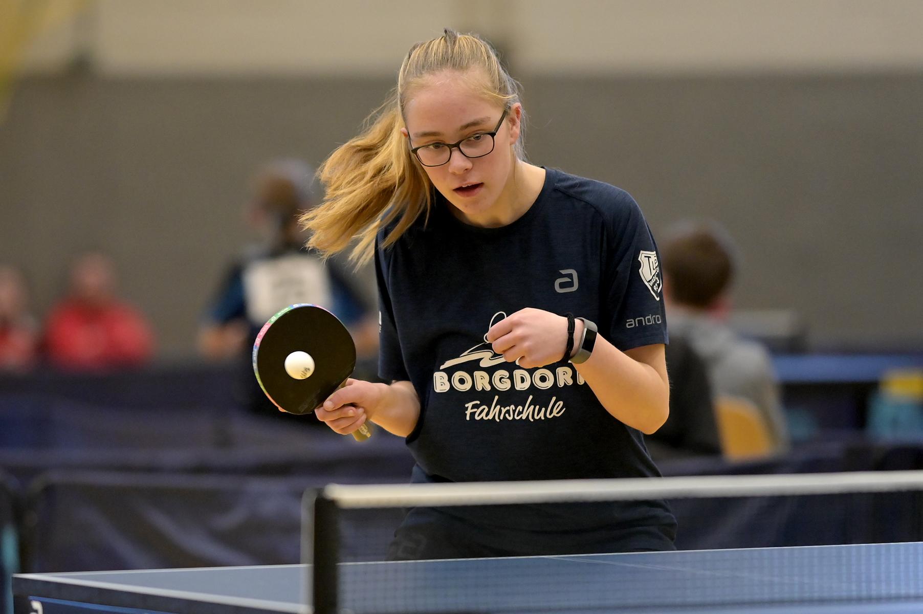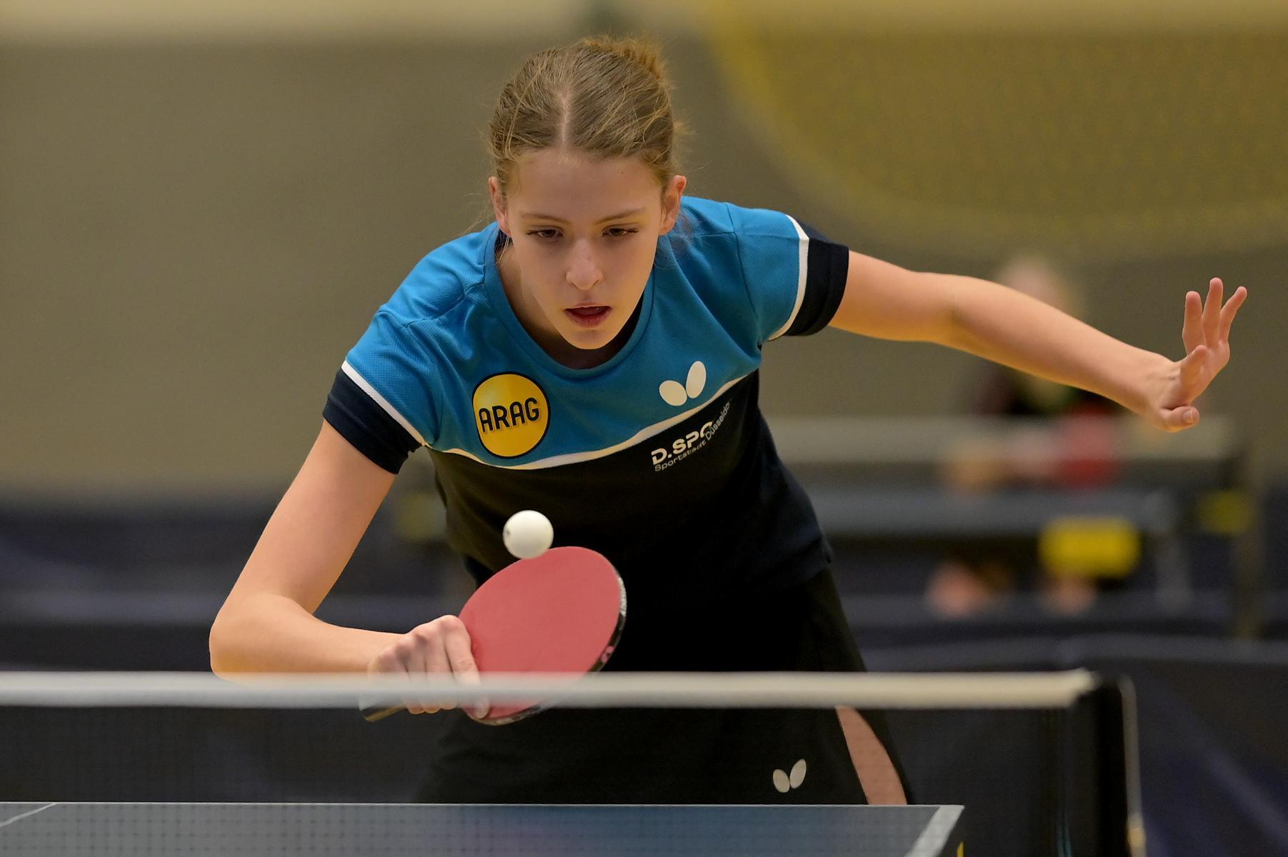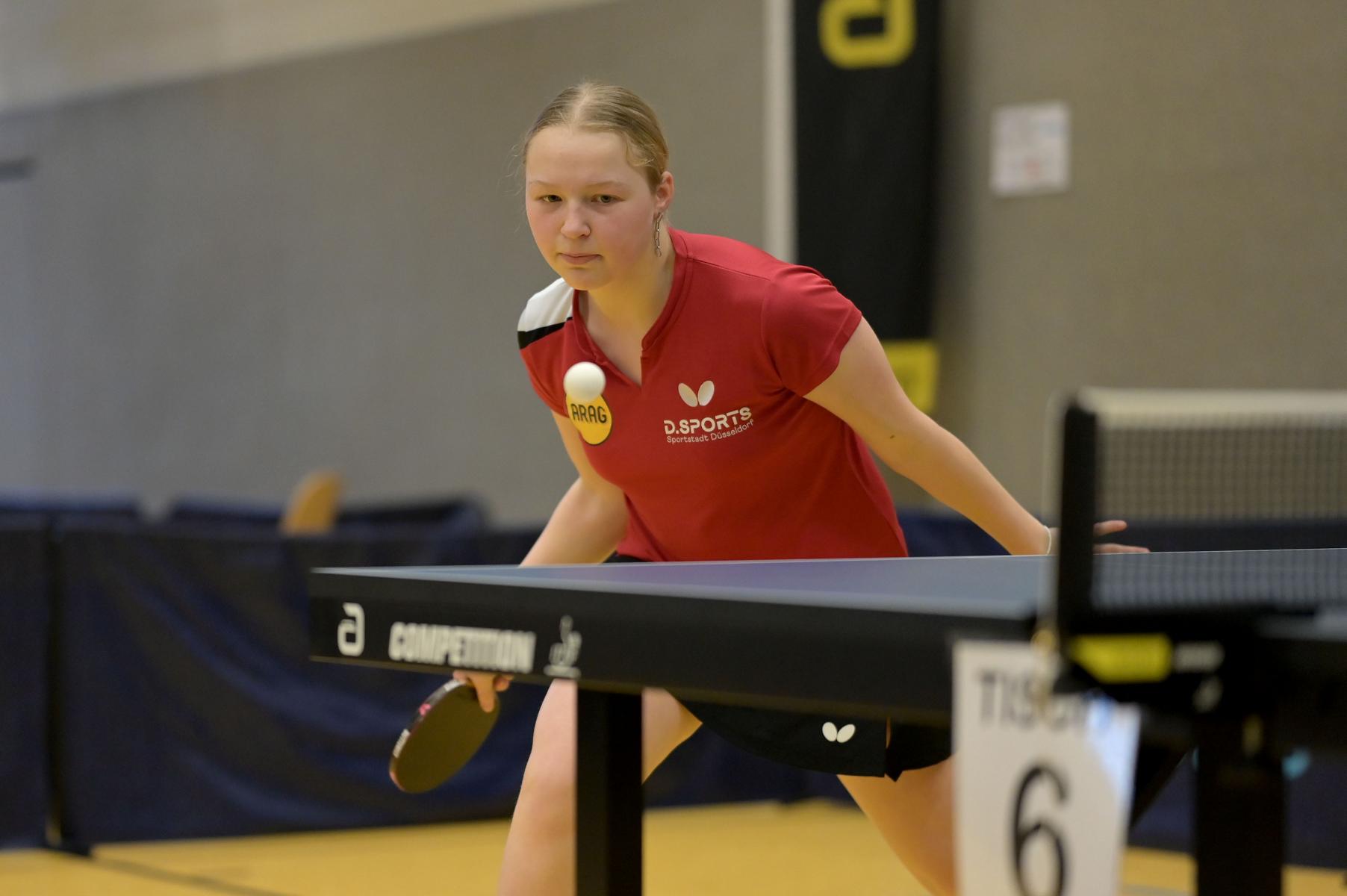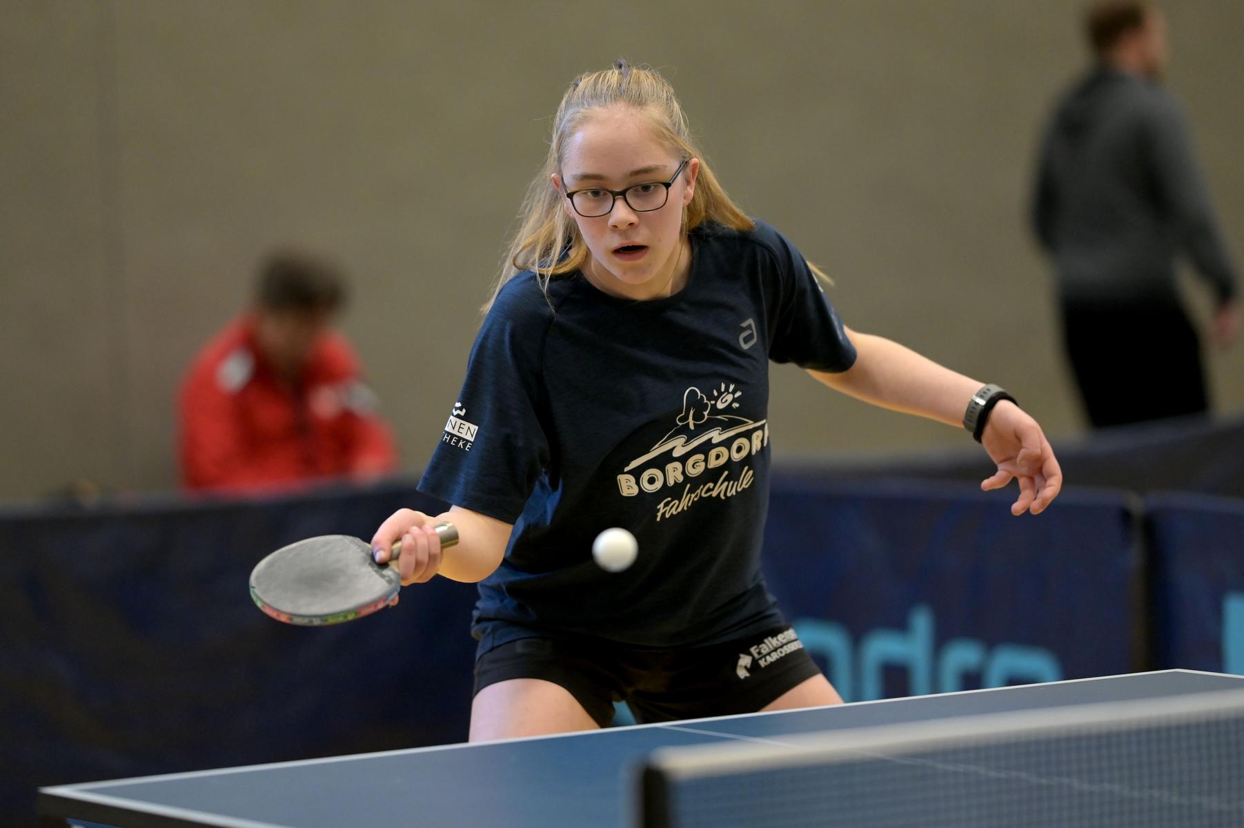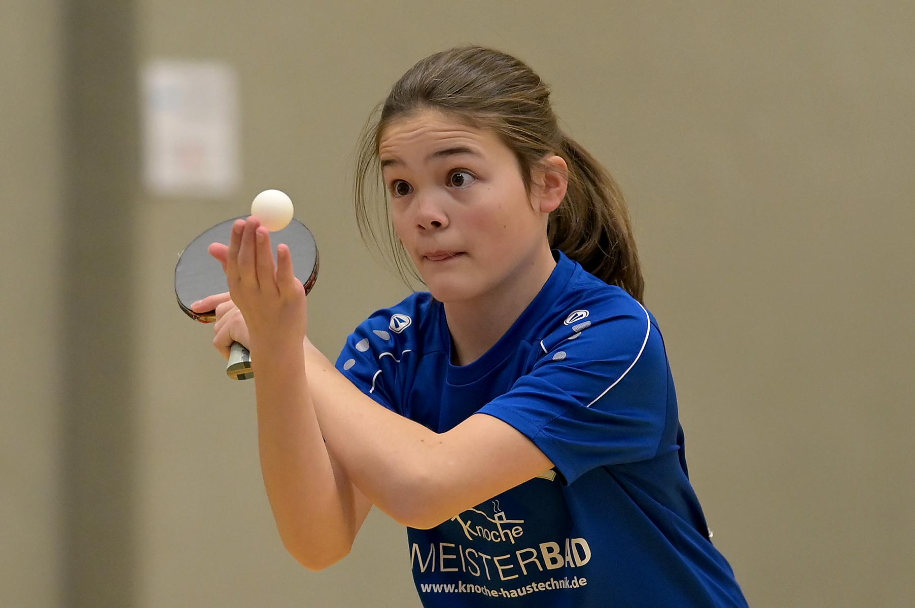 Im Mädchen-Einzel erreichten alle vier Gesetzten, Mariia Bodnar (DJK BW Annen), Linyun Wei (TG Neuss), Greta Bögershausen (Borussia Düsseldorf) und Frieda Strugholz (TTC DJK Bad Westernkotten), ohne größere Schwierigkeiten das Halbfinale. Dass die vier Mädchen leistungsmäßig sehr nah beieinander liegen, zeigt, dass die restlichen drei Spiele erst im Entscheidungssatz entschieden wurden. Mariia besiegte in einem sehr spannenden Match in der Vorschlussrunde Linyun mit 12:10 im fünften Satz. Auch das Spiel zwischen Greta und Frieda endete mit nur zwei Bällen Unterschied, hier behielt Frieda mit 11:9 im letzten Satz die Oberhand gegen Greta.