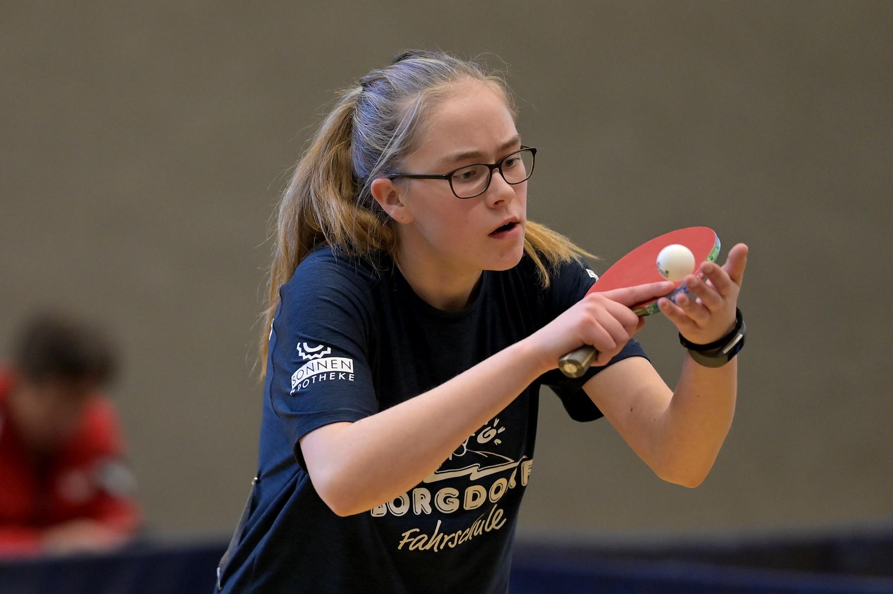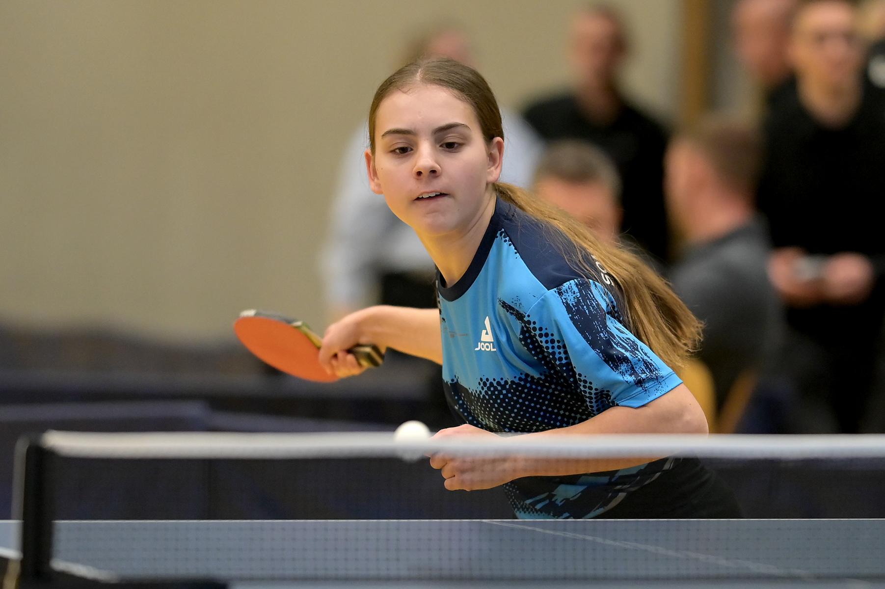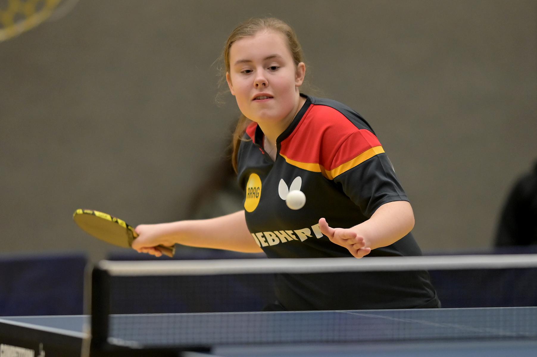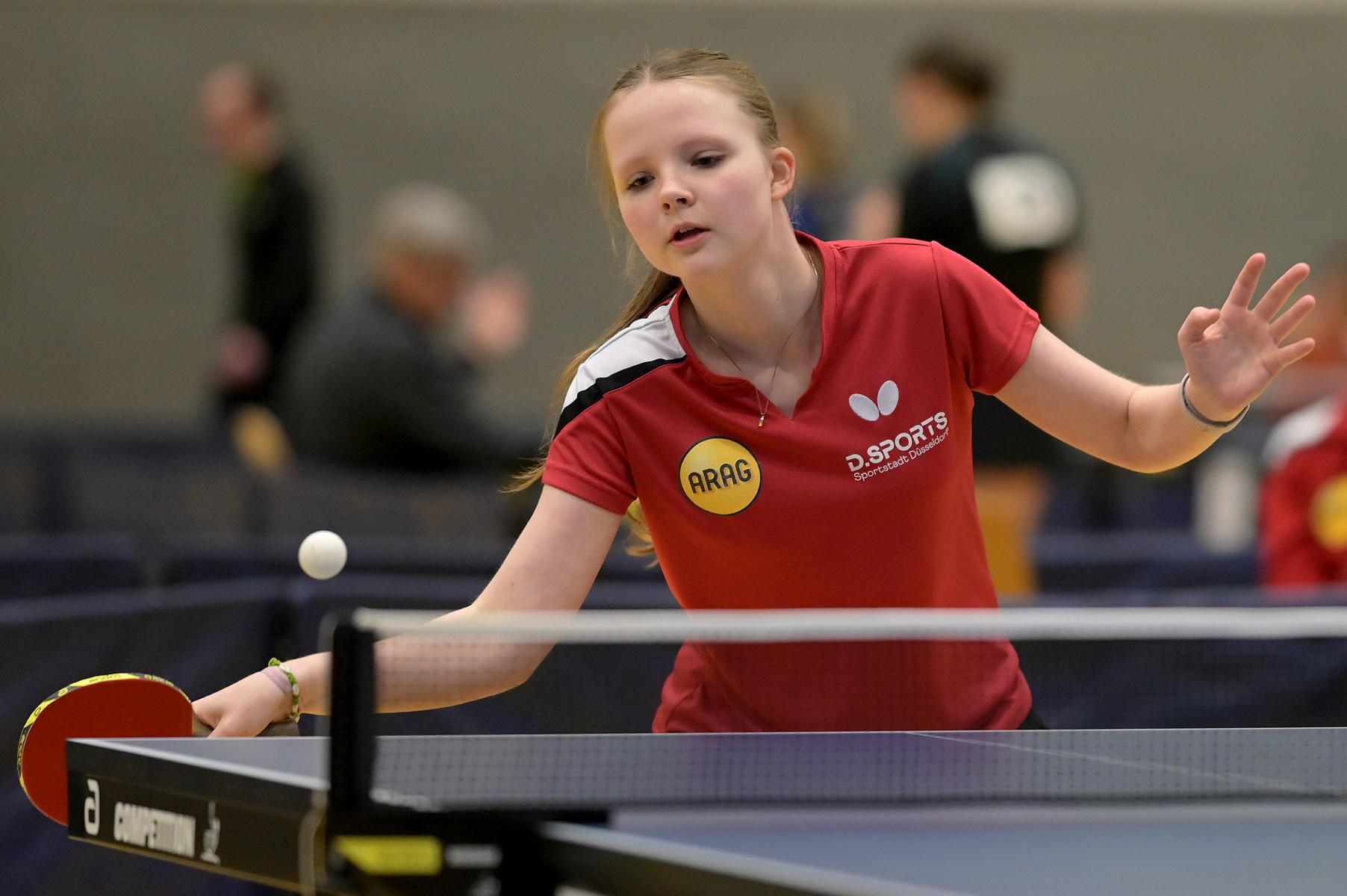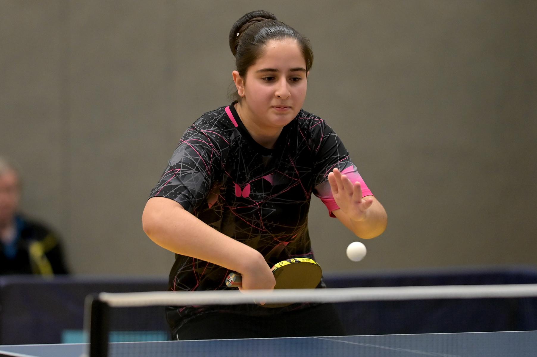 Im Mädchen-Einzel erreichten alle vier Gesetzten, Mariia Bodnar (DJK BW Annen), Linyun Wei (TG Neuss), Greta Bögershausen (Borussia Düsseldorf) und Frieda Strugholz (TTC DJK Bad Westernkotten), ohne größere Schwierigkeiten das Halbfinale. Dass die vier Mädchen leistungsmäßig sehr nah beieinander liegen, zeigt, dass die restlichen drei Spiele erst im Entscheidungssatz entschieden wurden. Mariia besiegte in einem sehr spannenden Match in der Vorschlussrunde Linyun mit 12:10 im fünften Satz. Auch das Spiel zwischen Greta und Frieda endete mit nur zwei Bällen Unterschied, hier behielt Frieda mit 11:9 im letzten Satz die Oberhand gegen Greta.