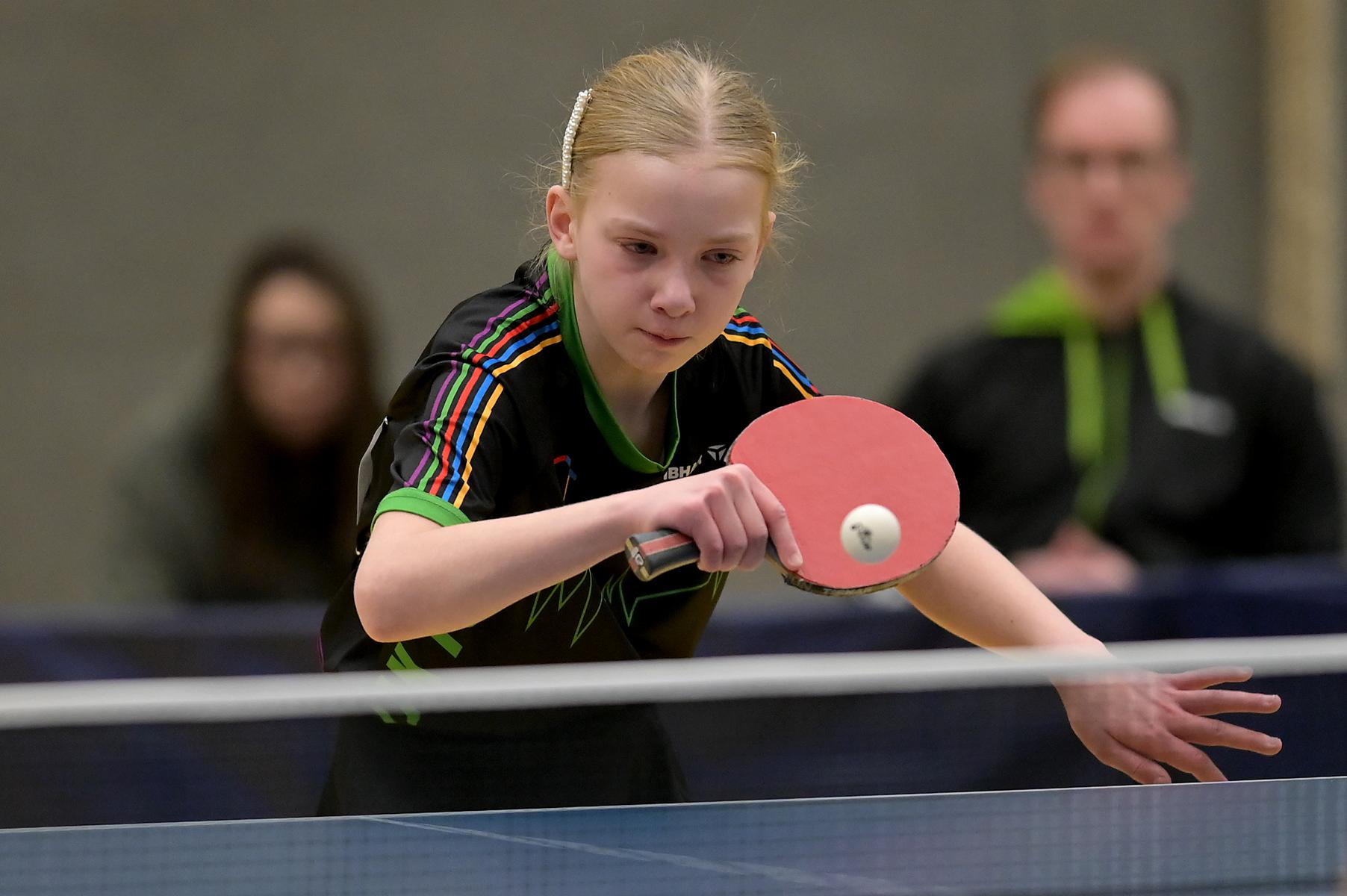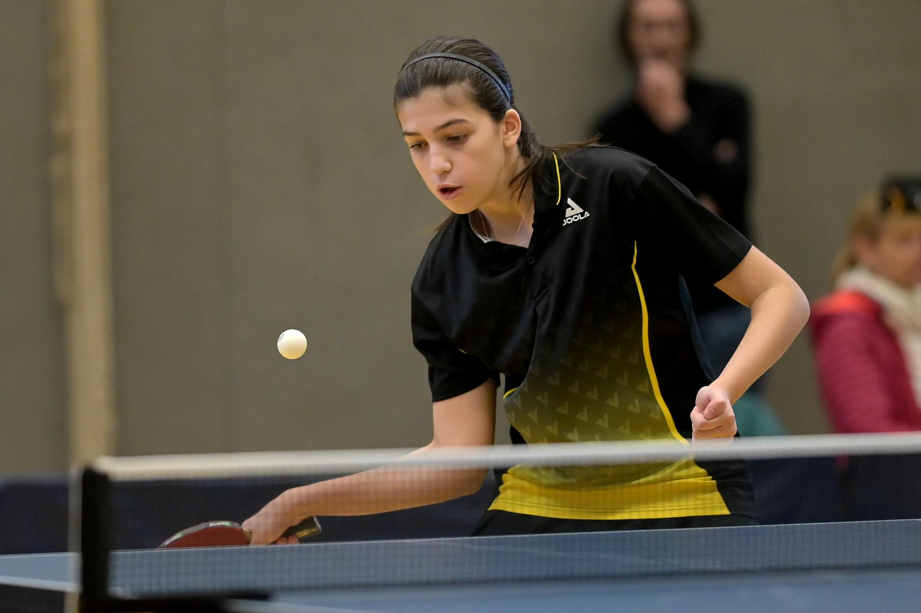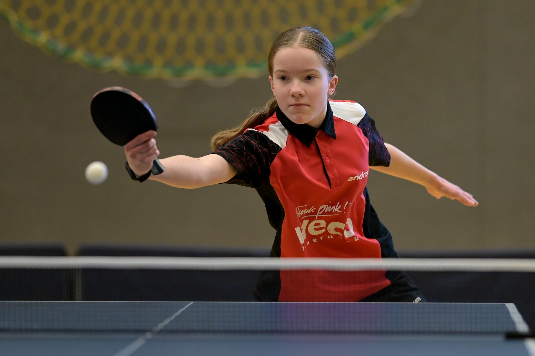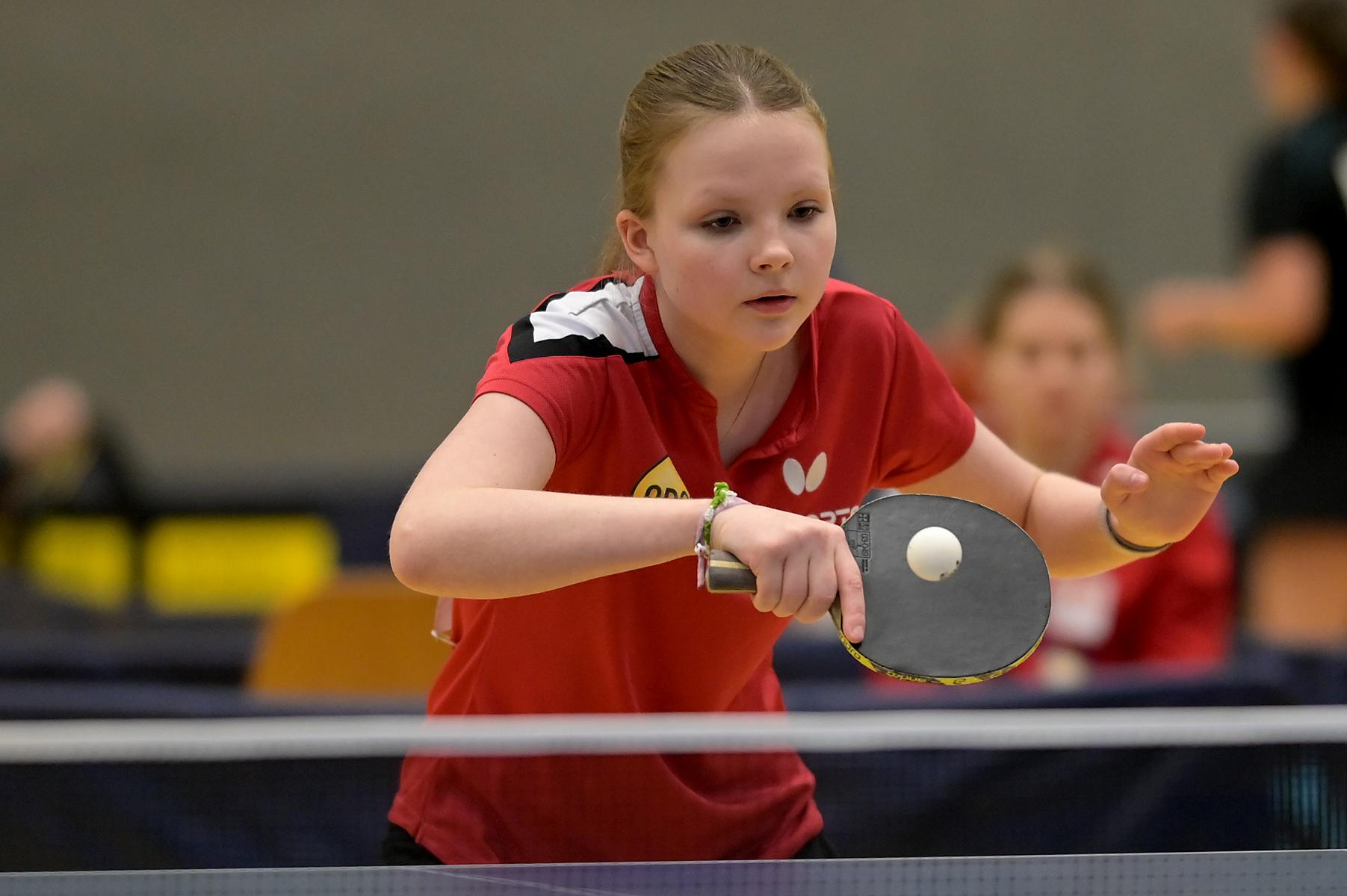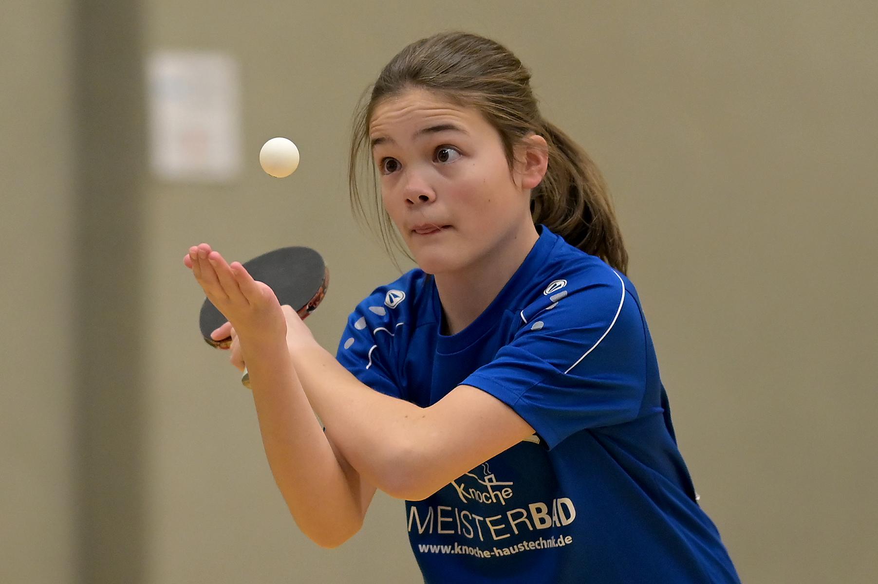 Im Mädchen-Einzel erreichten alle vier Gesetzten, Mariia Bodnar (DJK BW Annen), Linyun Wei (TG Neuss), Greta Bögershausen (Borussia Düsseldorf) und Frieda Strugholz (TTC DJK Bad Westernkotten), ohne größere Schwierigkeiten das Halbfinale. Dass die vier Mädchen leistungsmäßig sehr nah beieinander liegen, zeigt, dass die restlichen drei Spiele erst im Entscheidungssatz entschieden wurden. Mariia besiegte in einem sehr spannenden Match in der Vorschlussrunde Linyun mit 12:10 im fünften Satz. Auch das Spiel zwischen Greta und Frieda endete mit nur zwei Bällen Unterschied, hier behielt Frieda mit 11:9 im letzten Satz die Oberhand gegen Greta.