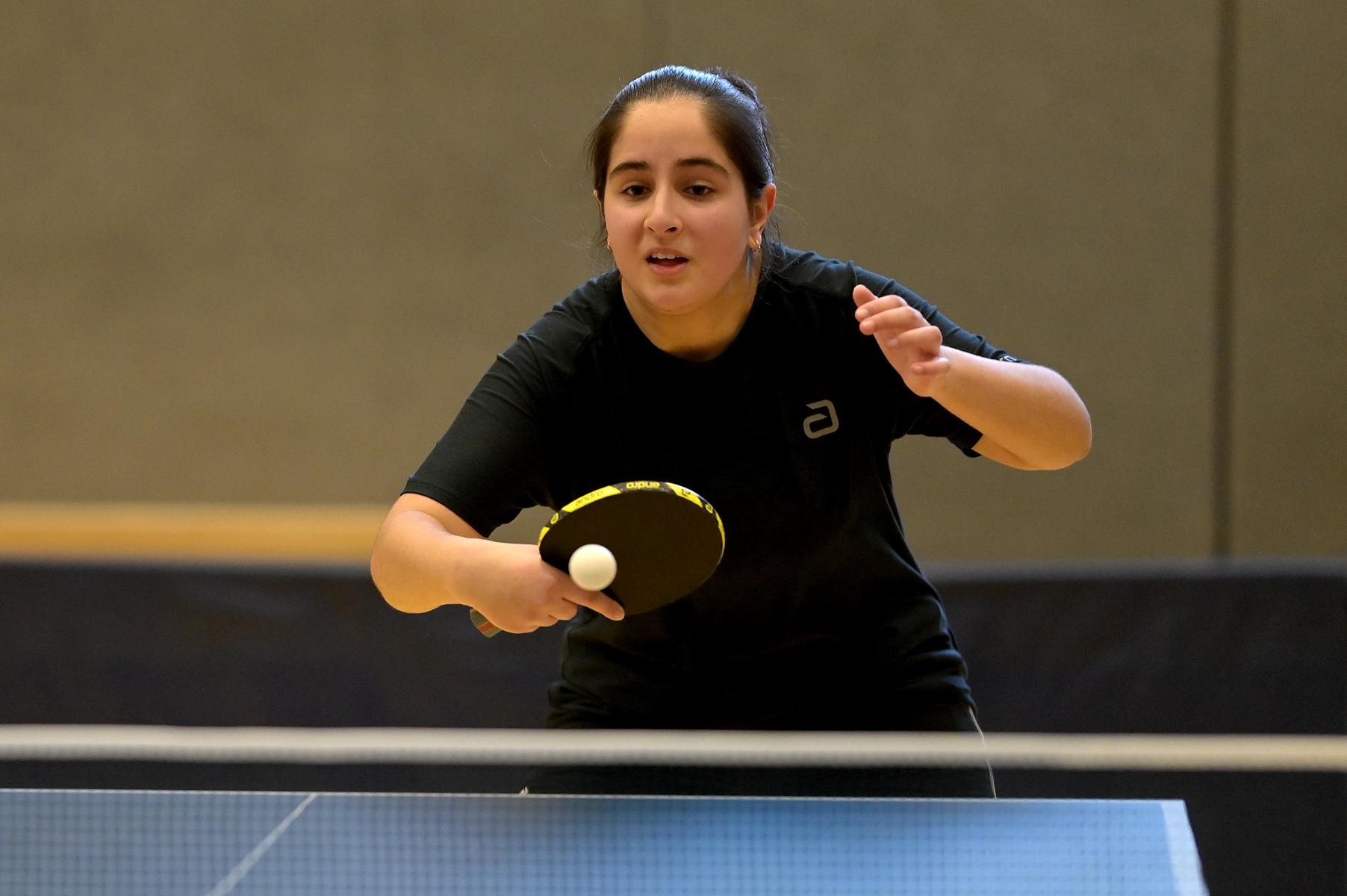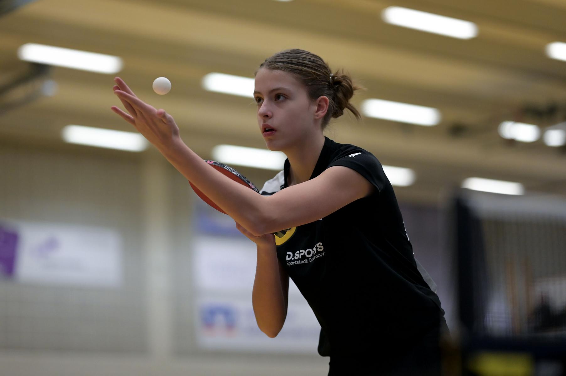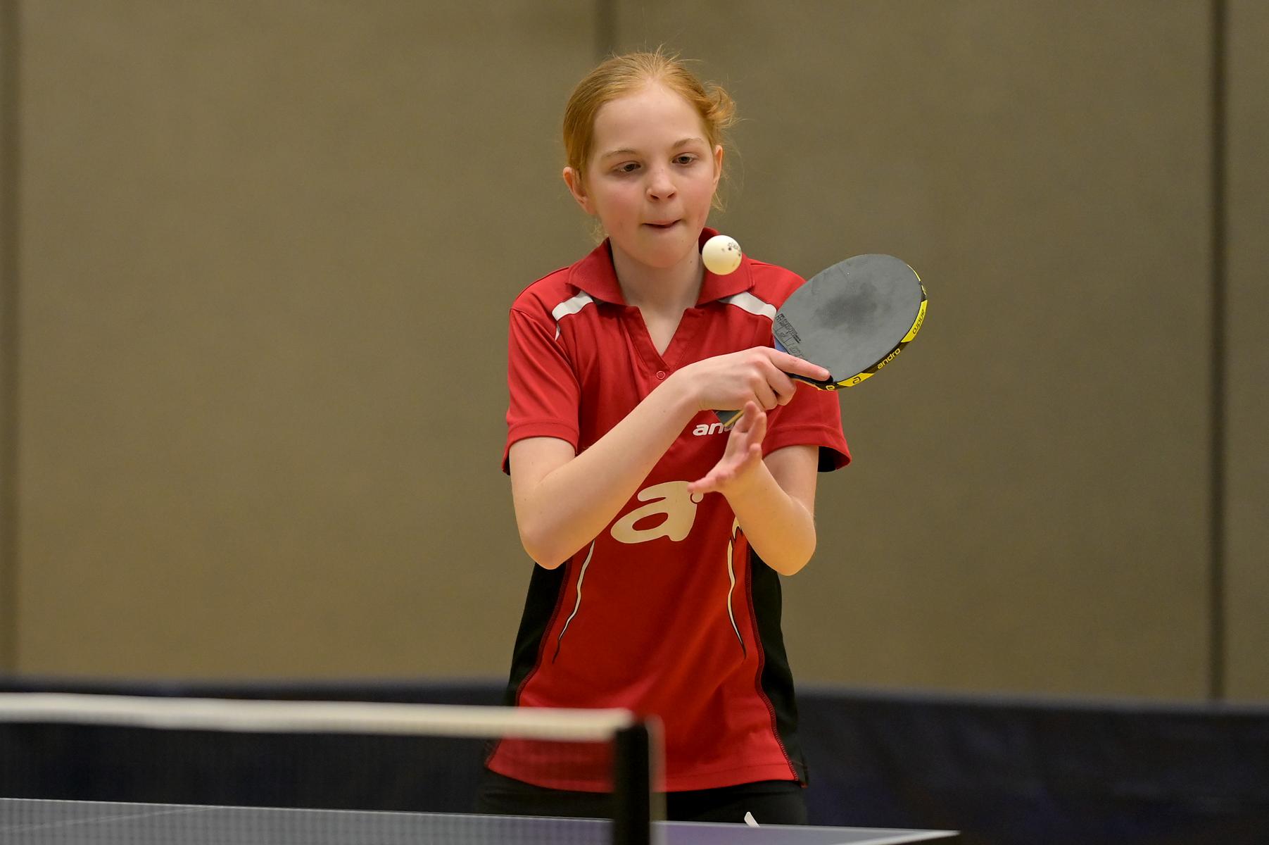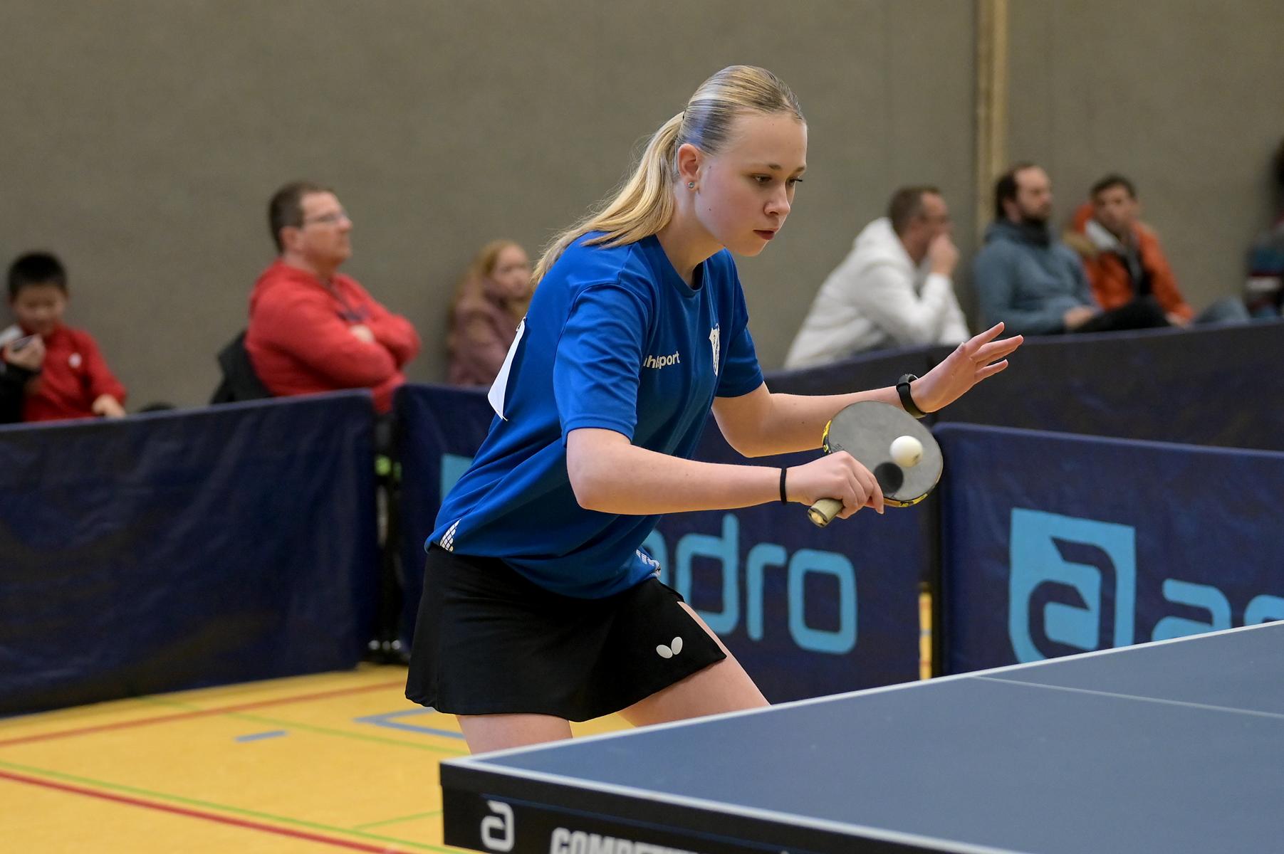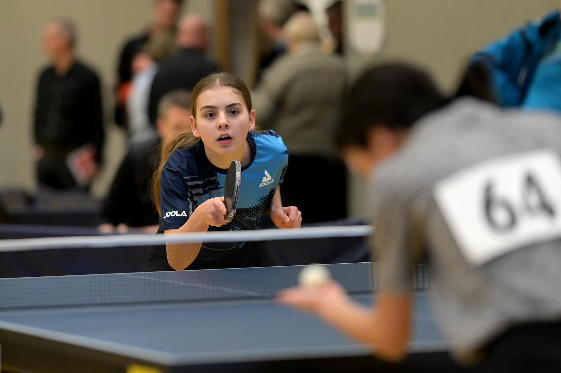 Im Mädchen-Einzel erreichten alle vier Gesetzten, Mariia Bodnar (DJK BW Annen), Linyun Wei (TG Neuss), Greta Bögershausen (Borussia Düsseldorf) und Frieda Strugholz (TTC DJK Bad Westernkotten), ohne größere Schwierigkeiten das Halbfinale. Dass die vier Mädchen leistungsmäßig sehr nah beieinander liegen, zeigt, dass die restlichen drei Spiele erst im Entscheidungssatz entschieden wurden. Mariia besiegte in einem sehr spannenden Match in der Vorschlussrunde Linyun mit 12:10 im fünften Satz. Auch das Spiel zwischen Greta und Frieda endete mit nur zwei Bällen Unterschied, hier behielt Frieda mit 11:9 im letzten Satz die Oberhand gegen Greta.