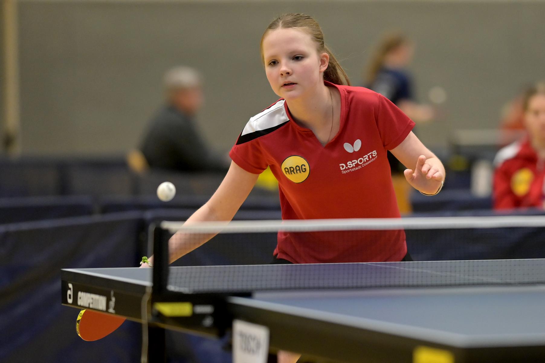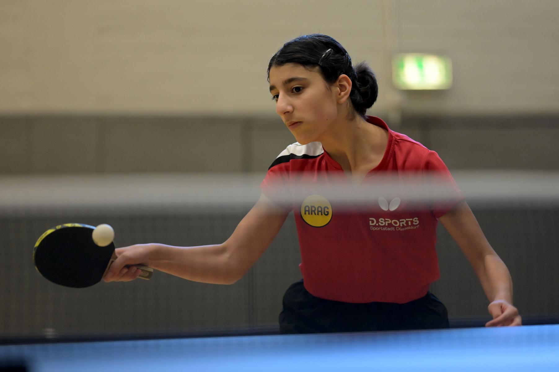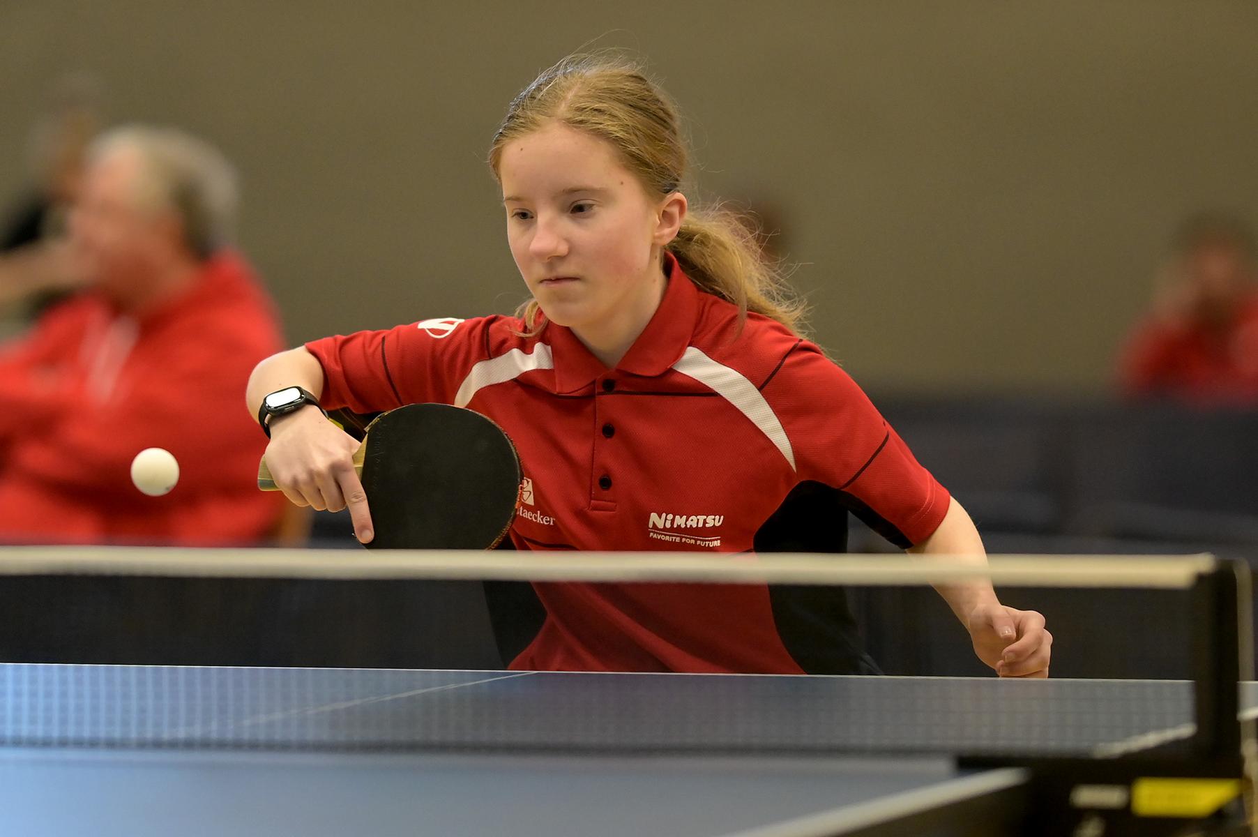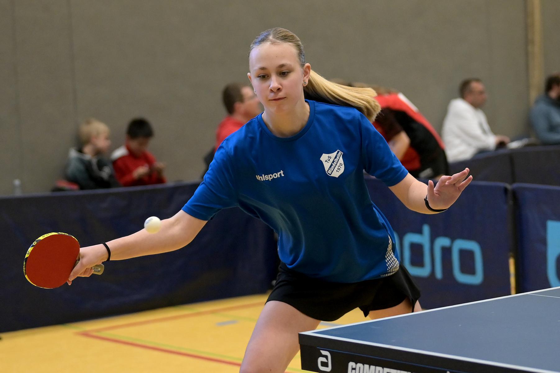 Im Mädchen-Einzel erreichten alle vier Gesetzten, Mariia Bodnar (DJK BW Annen), Linyun Wei (TG Neuss), Greta Bögershausen (Borussia Düsseldorf) und Frieda Strugholz (TTC DJK Bad Westernkotten), ohne größere Schwierigkeiten das Halbfinale. Dass die vier Mädchen leistungsmäßig sehr nah beieinander liegen, zeigt, dass die restlichen drei Spiele erst im Entscheidungssatz entschieden wurden. Mariia besiegte in einem sehr spannenden Match in der Vorschlussrunde Linyun mit 12:10 im fünften Satz. Auch das Spiel zwischen Greta und Frieda endete mit nur zwei Bällen Unterschied, hier behielt Frieda mit 11:9 im letzten Satz die Oberhand gegen Greta.