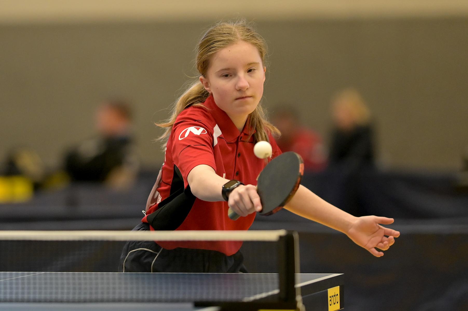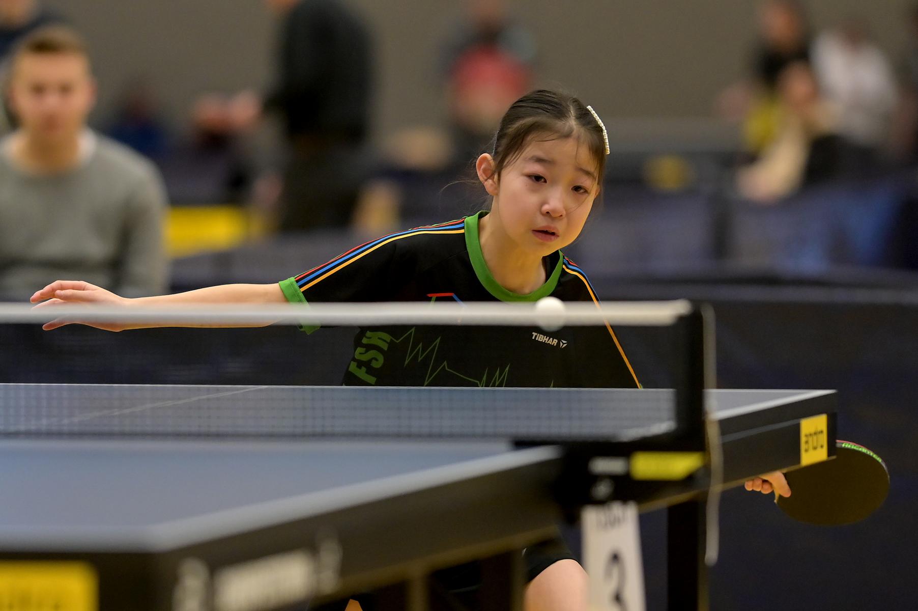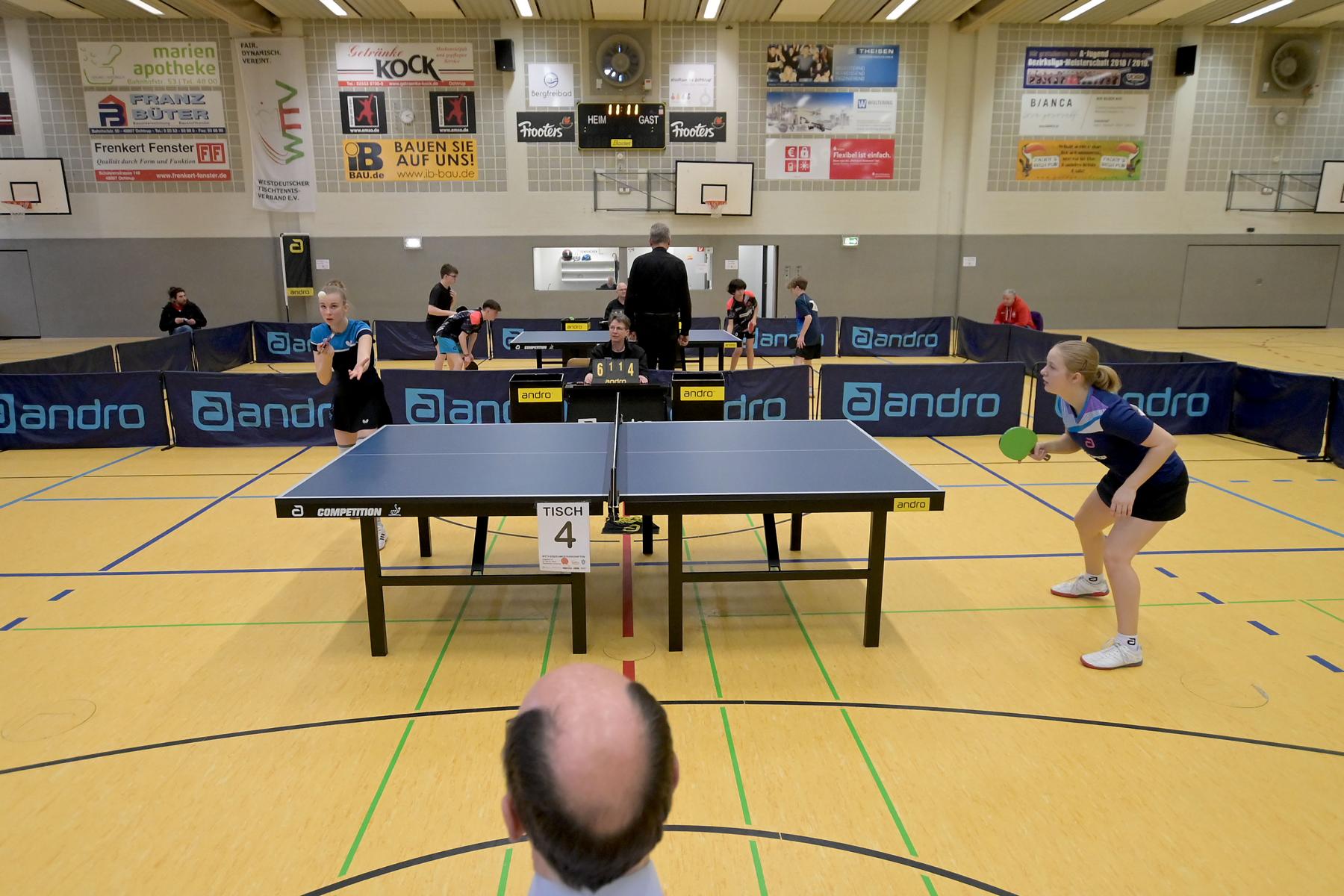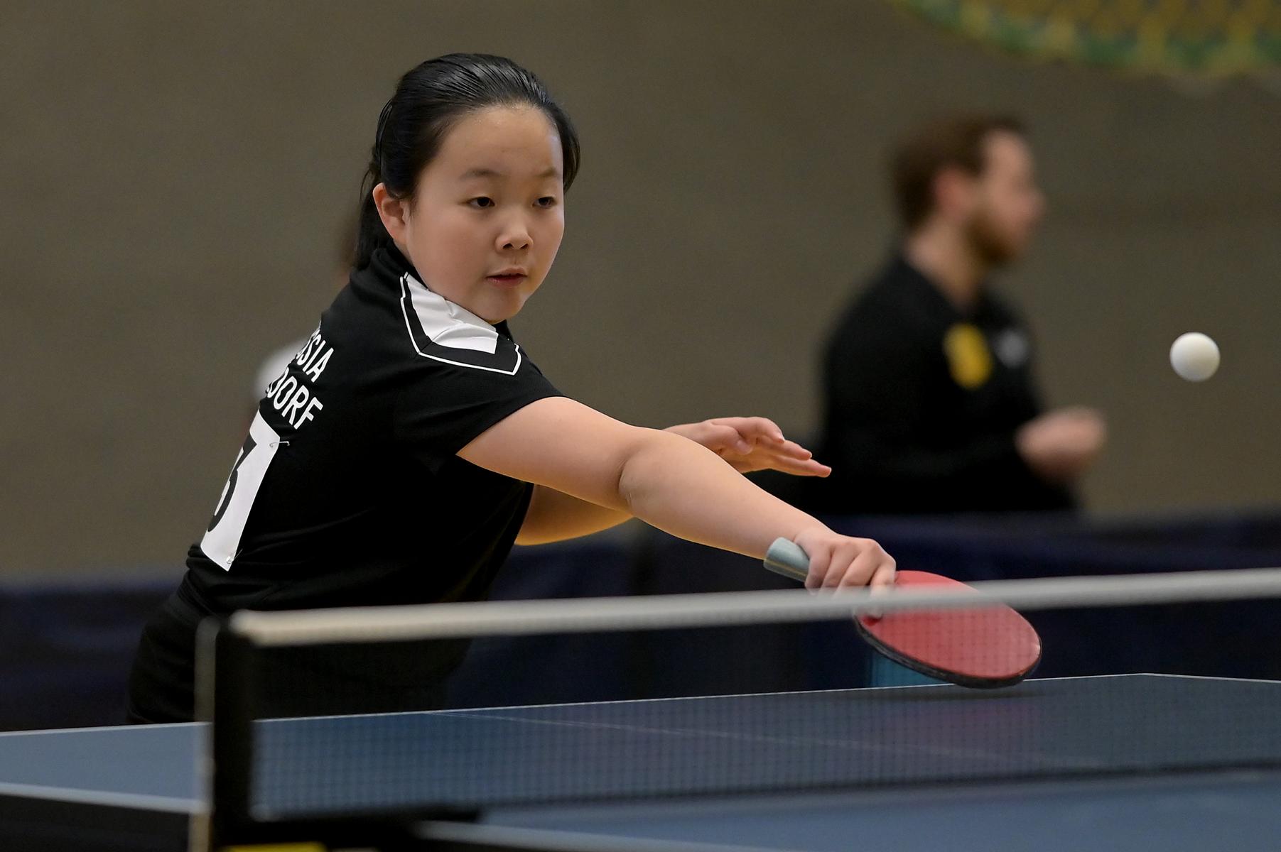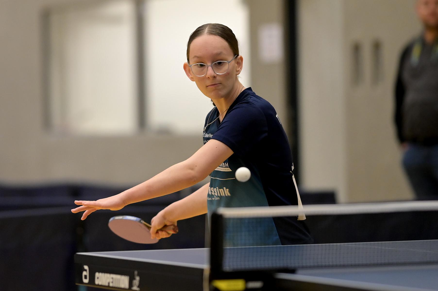 Im Mädchen-Einzel erreichten alle vier Gesetzten, Mariia Bodnar (DJK BW Annen), Linyun Wei (TG Neuss), Greta Bögershausen (Borussia Düsseldorf) und Frieda Strugholz (TTC DJK Bad Westernkotten), ohne größere Schwierigkeiten das Halbfinale. Dass die vier Mädchen leistungsmäßig sehr nah beieinander liegen, zeigt, dass die restlichen drei Spiele erst im Entscheidungssatz entschieden wurden. Mariia besiegte in einem sehr spannenden Match in der Vorschlussrunde Linyun mit 12:10 im fünften Satz. Auch das Spiel zwischen Greta und Frieda endete mit nur zwei Bällen Unterschied, hier behielt Frieda mit 11:9 im letzten Satz die Oberhand gegen Greta.