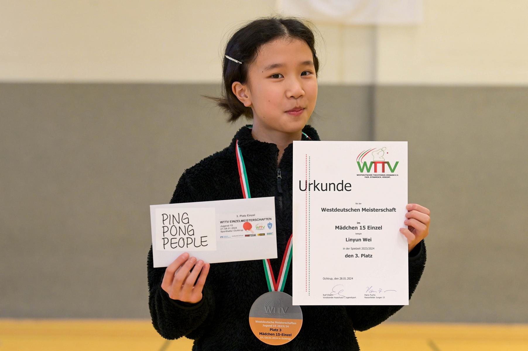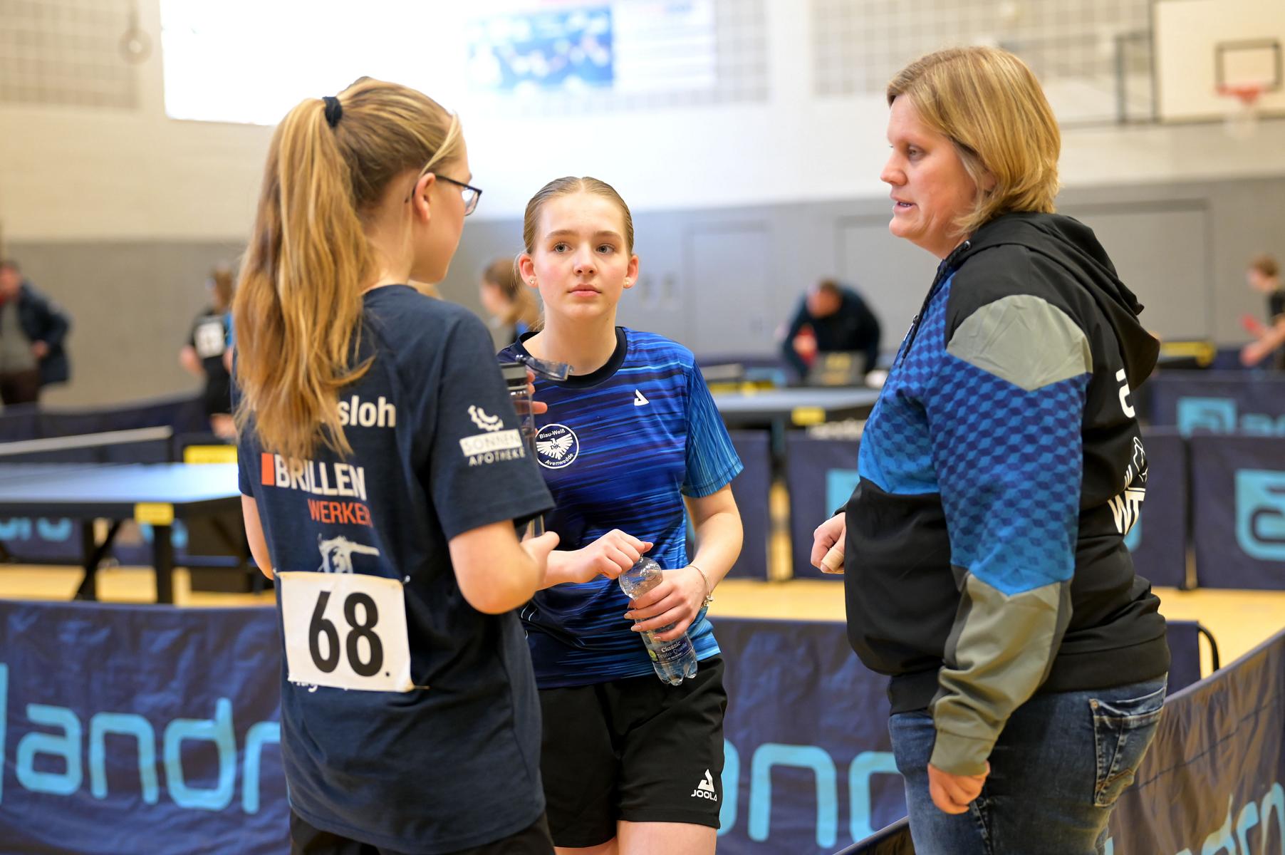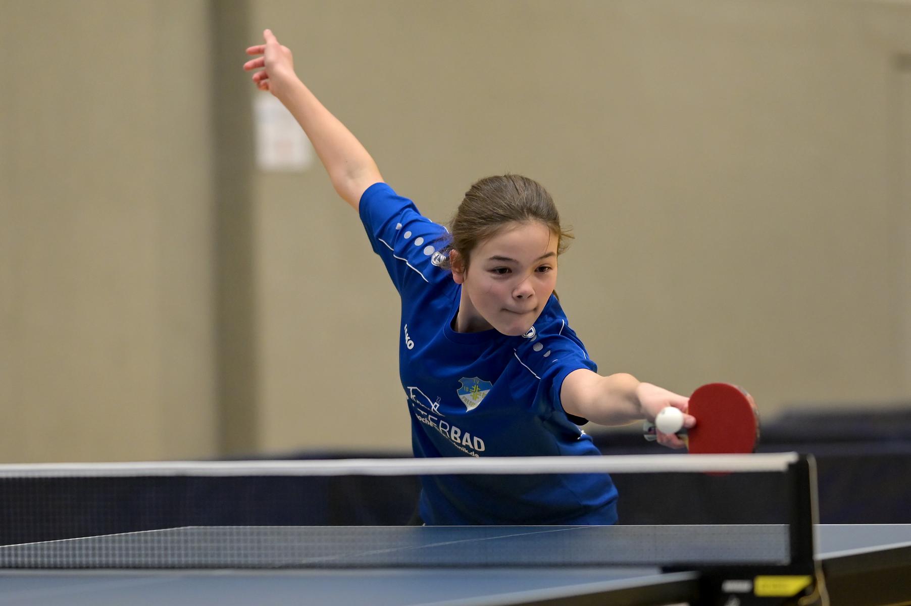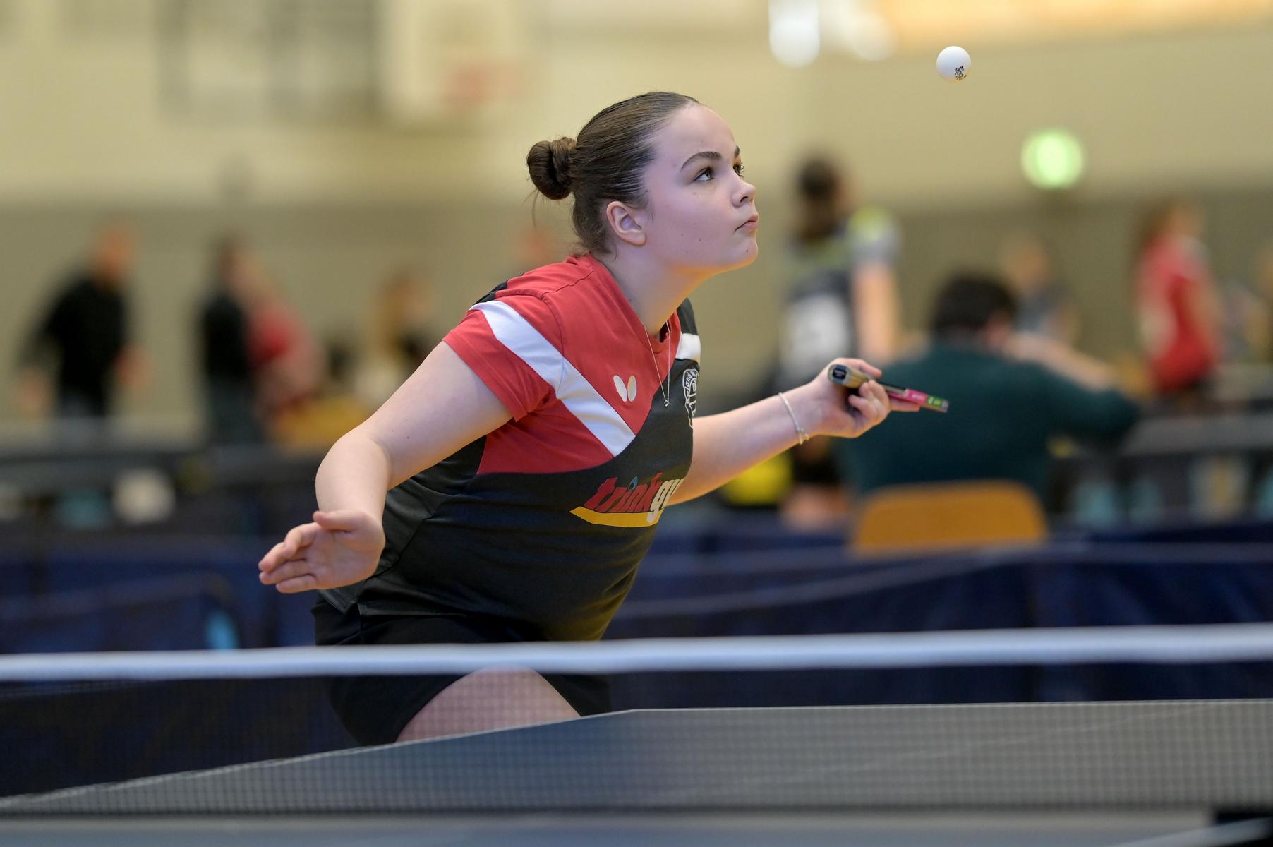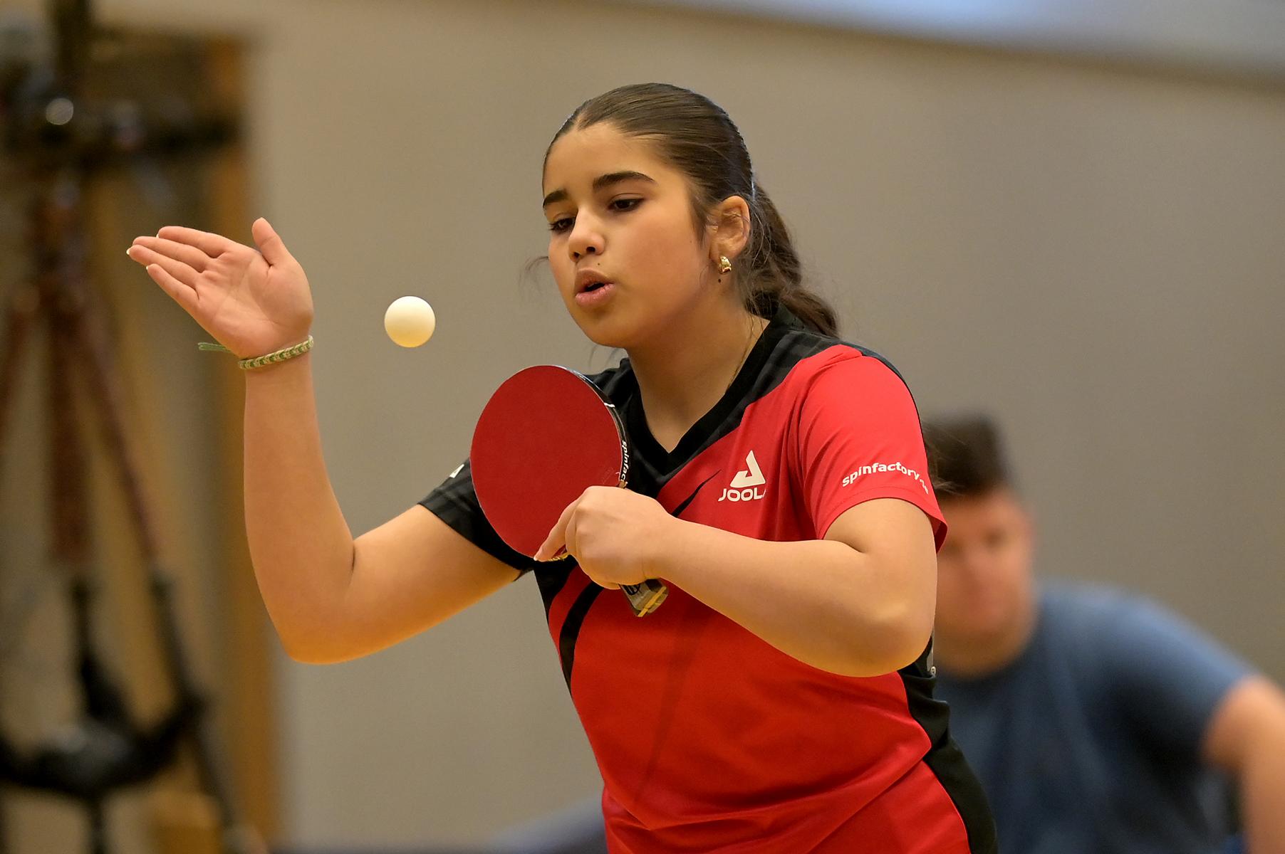 Im Mädchen-Einzel erreichten alle vier Gesetzten, Mariia Bodnar (DJK BW Annen), Linyun Wei (TG Neuss), Greta Bögershausen (Borussia Düsseldorf) und Frieda Strugholz (TTC DJK Bad Westernkotten), ohne größere Schwierigkeiten das Halbfinale. Dass die vier Mädchen leistungsmäßig sehr nah beieinander liegen, zeigt, dass die restlichen drei Spiele erst im Entscheidungssatz entschieden wurden. Mariia besiegte in einem sehr spannenden Match in der Vorschlussrunde Linyun mit 12:10 im fünften Satz. Auch das Spiel zwischen Greta und Frieda endete mit nur zwei Bällen Unterschied, hier behielt Frieda mit 11:9 im letzten Satz die Oberhand gegen Greta.