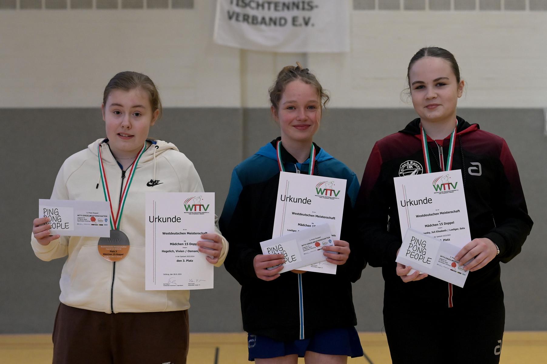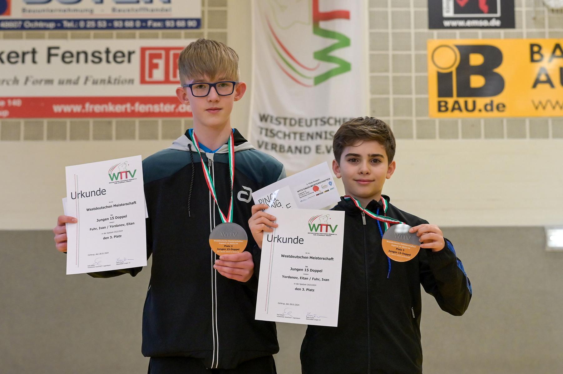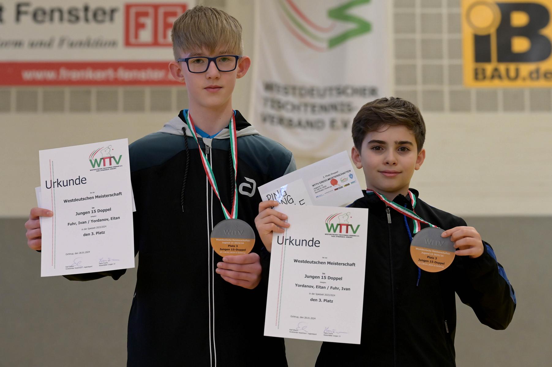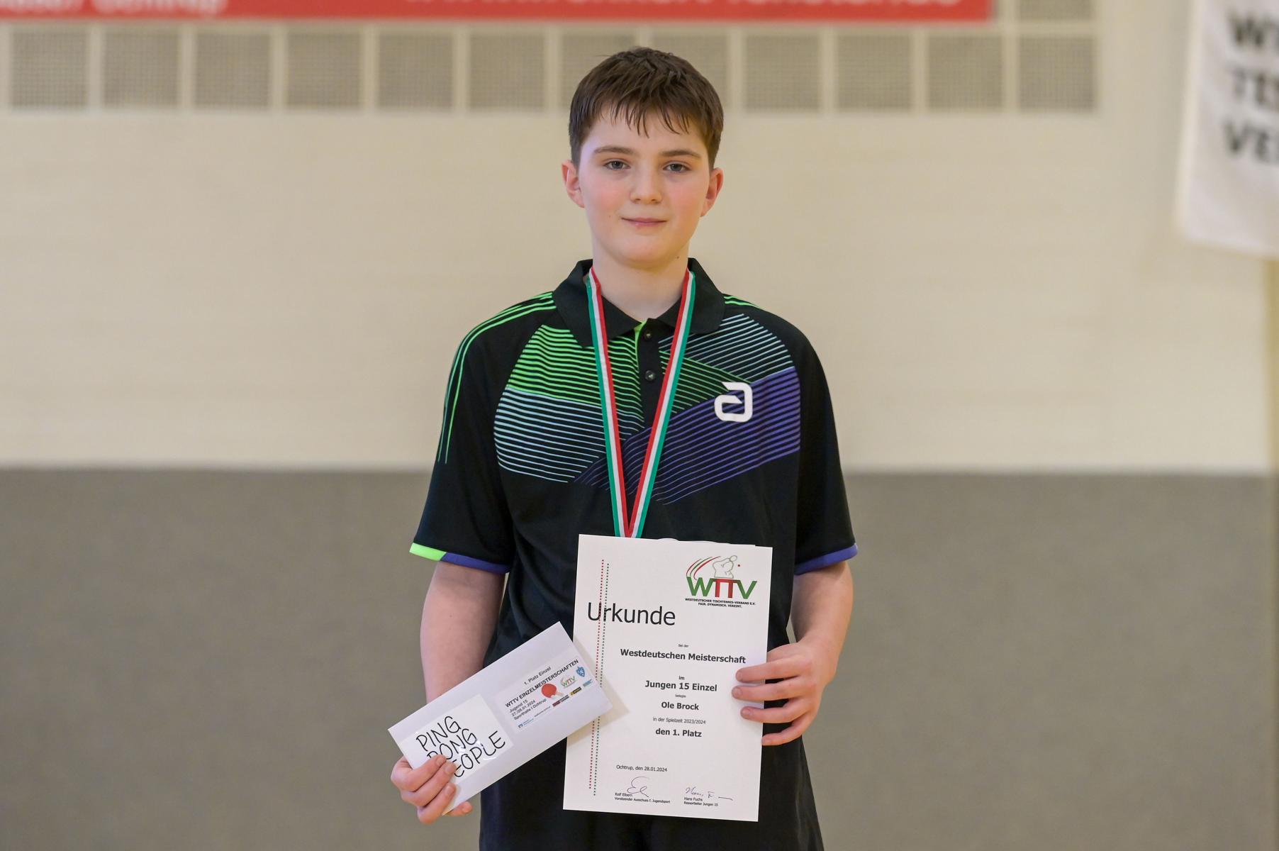 Mariia Bodnar (DJK BW Annen) und Ole Brock (TTC DJK Bad Westernkotten) sind die neuen Westdeutschen Meister der Mädchen 15 und Jungen 15. Ihren zweiten Titel holte sich Mariia im Doppel an der Seite von Frieda Strugholz (TTC DJK Bad Westernkotten). Sieger im Doppel der Jungen wurden Charlie Groninger (Burtscheider TV) und Rahdeen Haghighat (1. FC Köln). Herzlichen Glückwunsch!