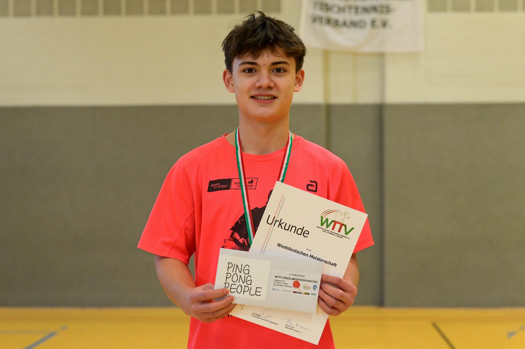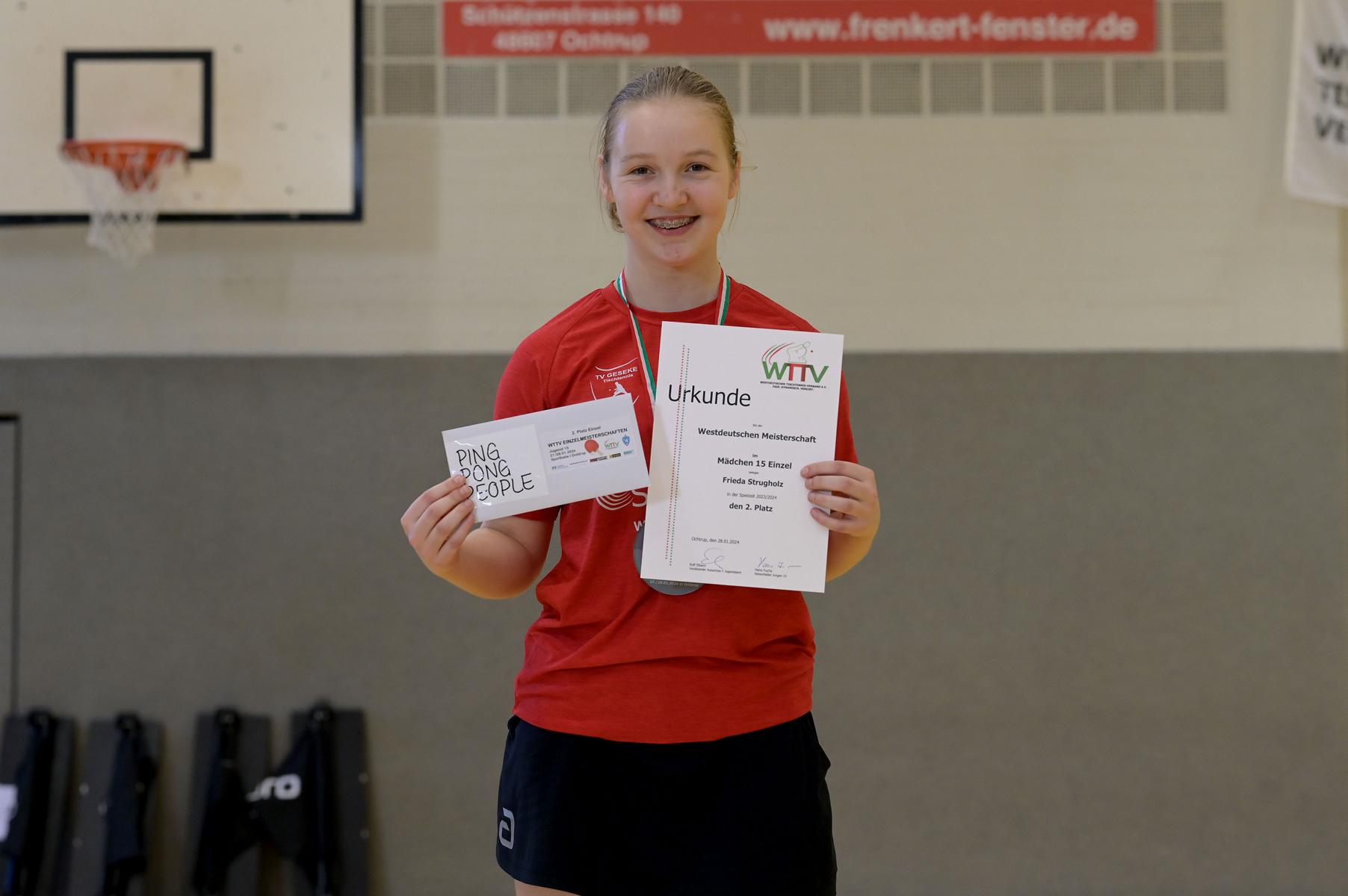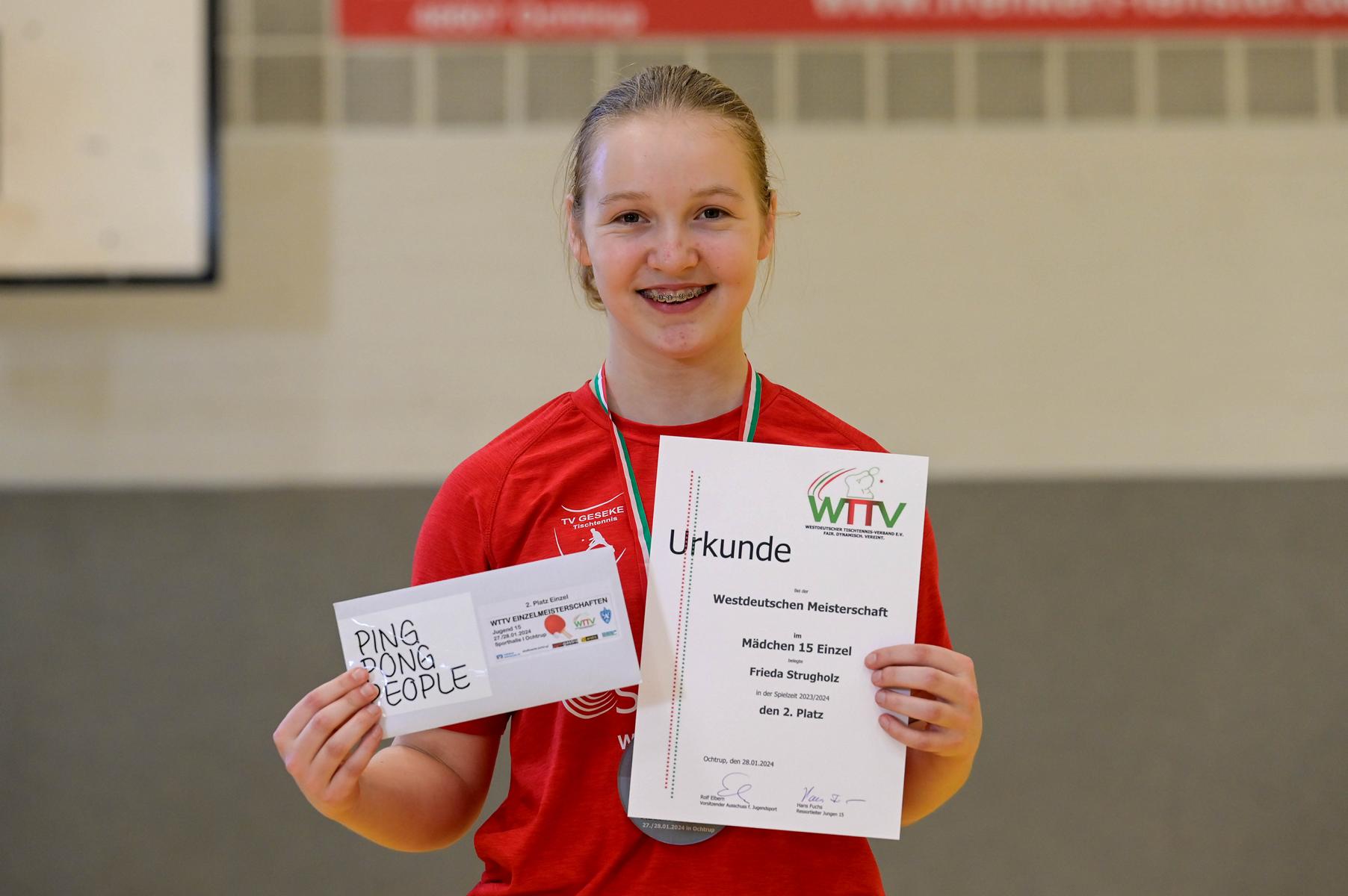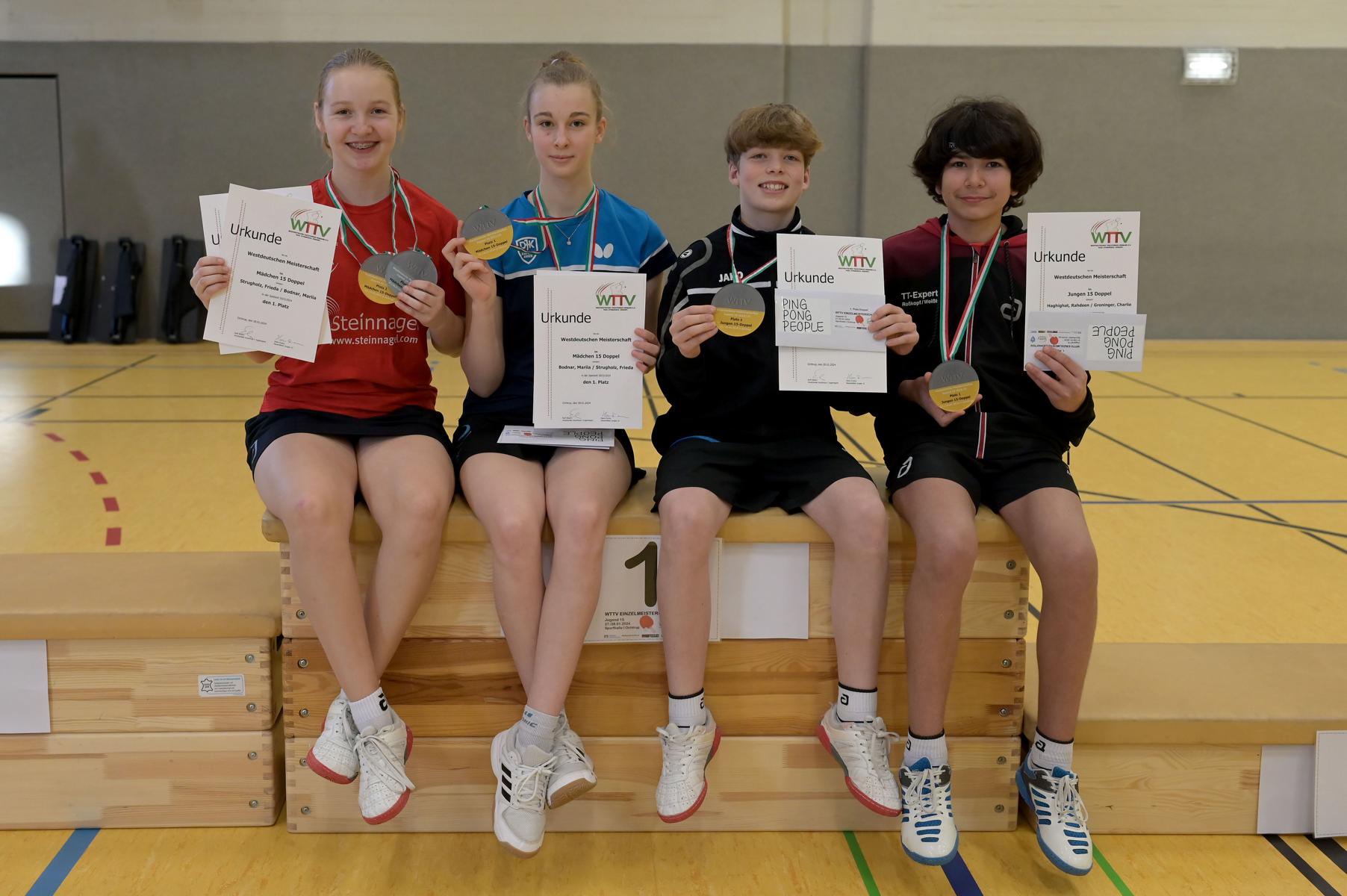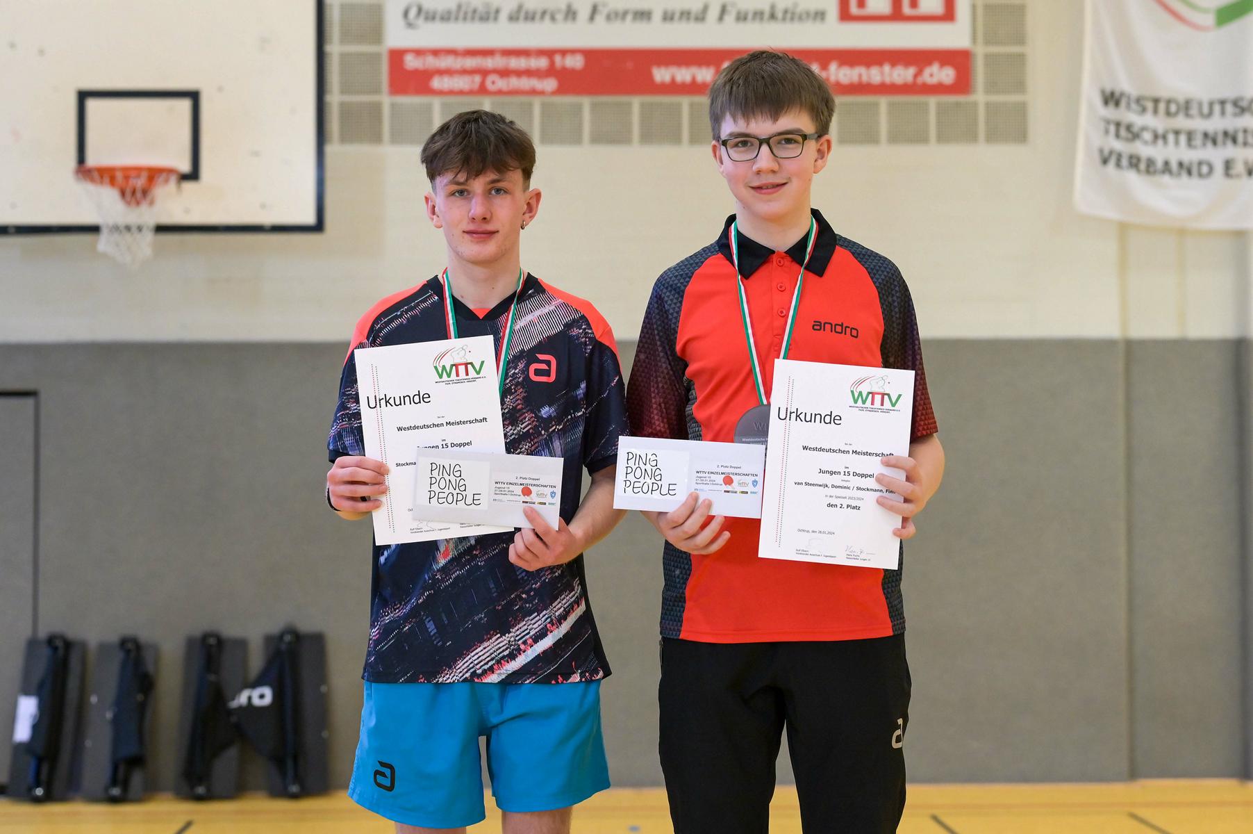 Mariia Bodnar (DJK BW Annen) und Ole Brock (TTC DJK Bad Westernkotten) sind die neuen Westdeutschen Meister der Mädchen 15 und Jungen 15. Ihren zweiten Titel holte sich Mariia im Doppel an der Seite von Frieda Strugholz (TTC DJK Bad Westernkotten). Sieger im Doppel der Jungen wurden Charlie Groninger (Burtscheider TV) und Rahdeen Haghighat (1. FC Köln). Herzlichen Glückwunsch!