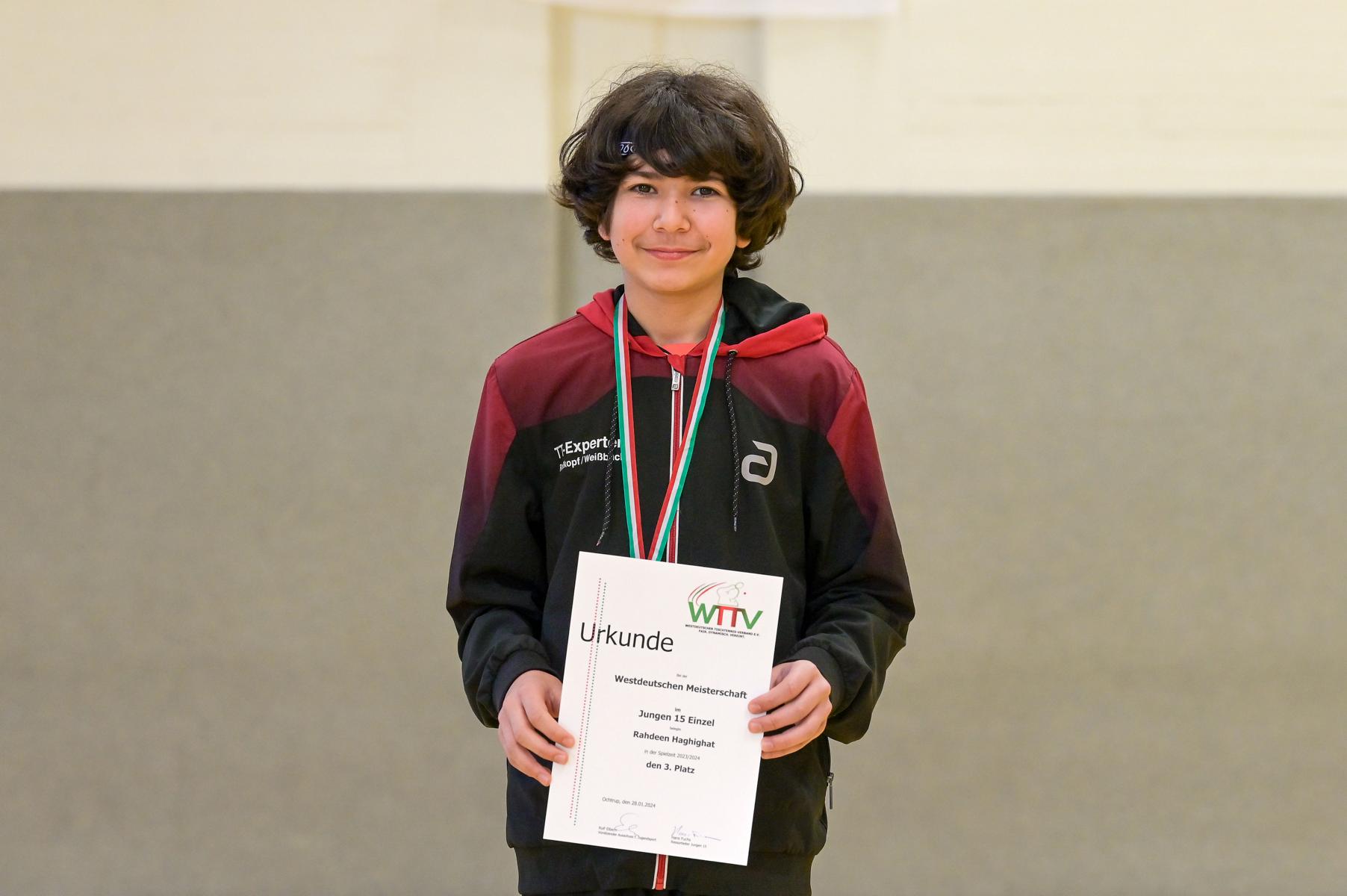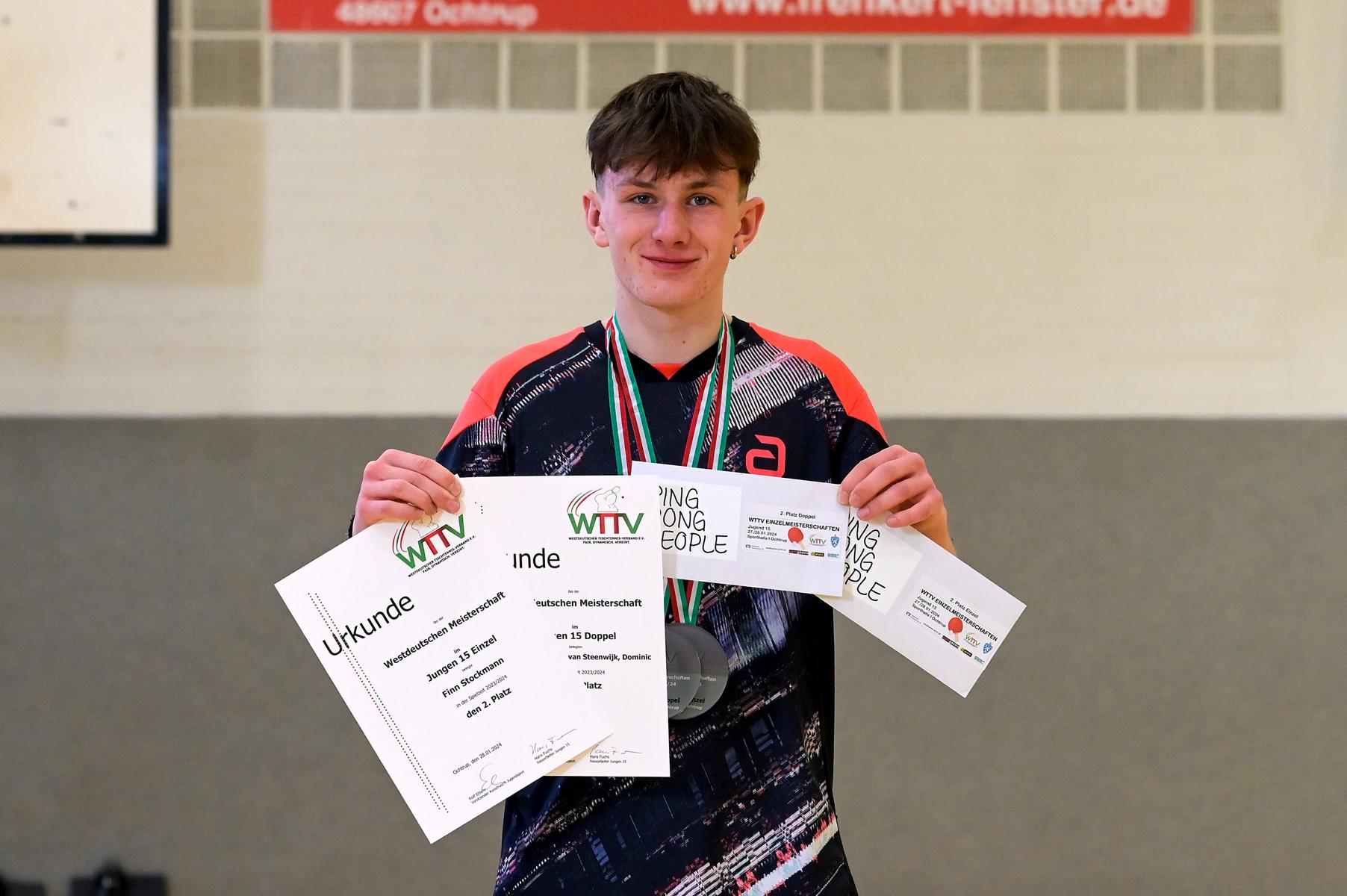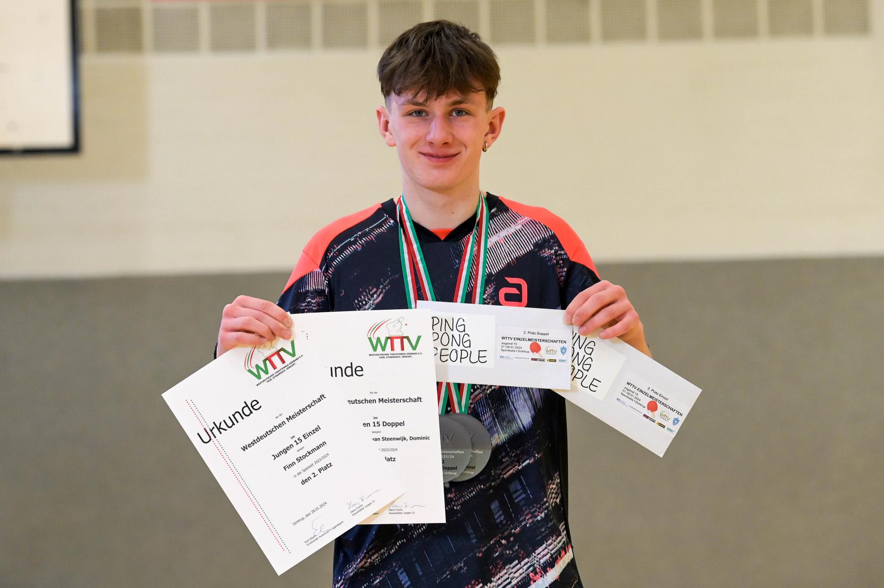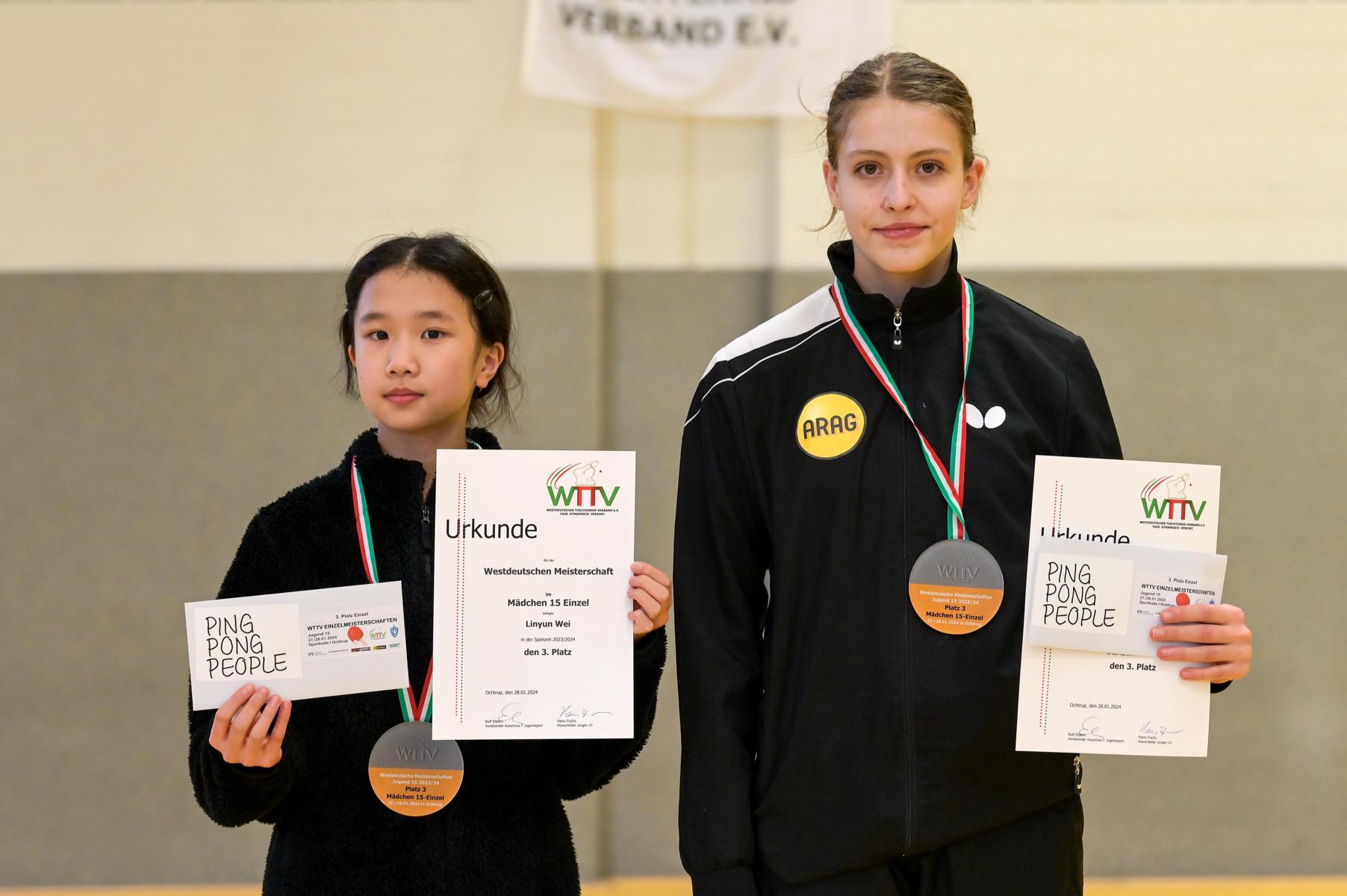 Mariia Bodnar (DJK BW Annen) und Ole Brock (TTC DJK Bad Westernkotten) sind die neuen Westdeutschen Meister der Mädchen 15 und Jungen 15. Ihren zweiten Titel holte sich Mariia im Doppel an der Seite von Frieda Strugholz (TTC DJK Bad Westernkotten). Sieger im Doppel der Jungen wurden Charlie Groninger (Burtscheider TV) und Rahdeen Haghighat (1. FC Köln). Herzlichen Glückwunsch!
