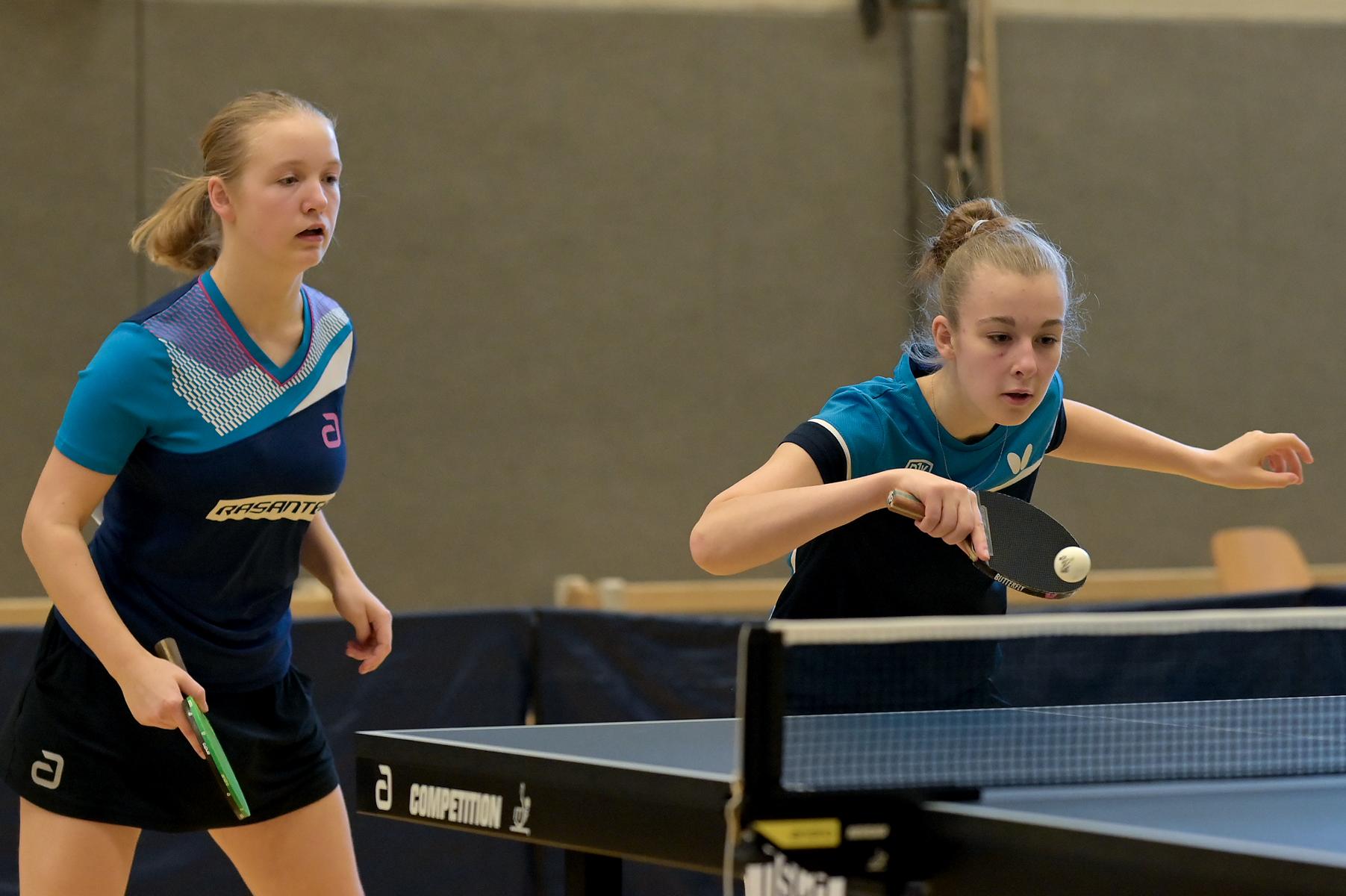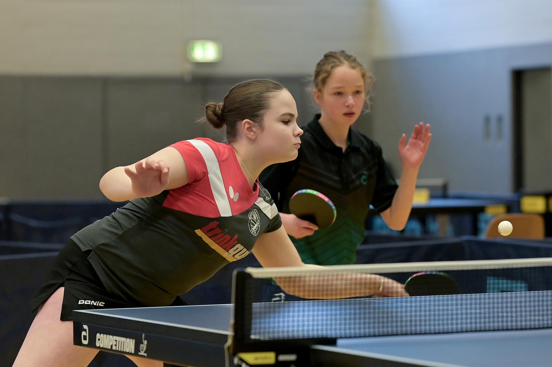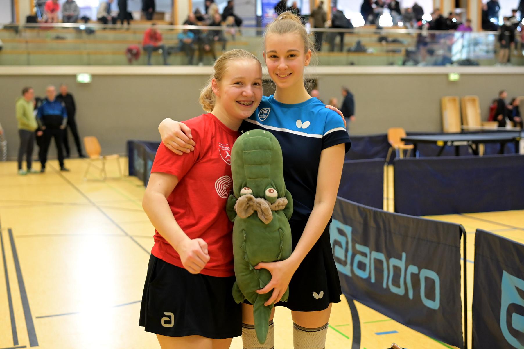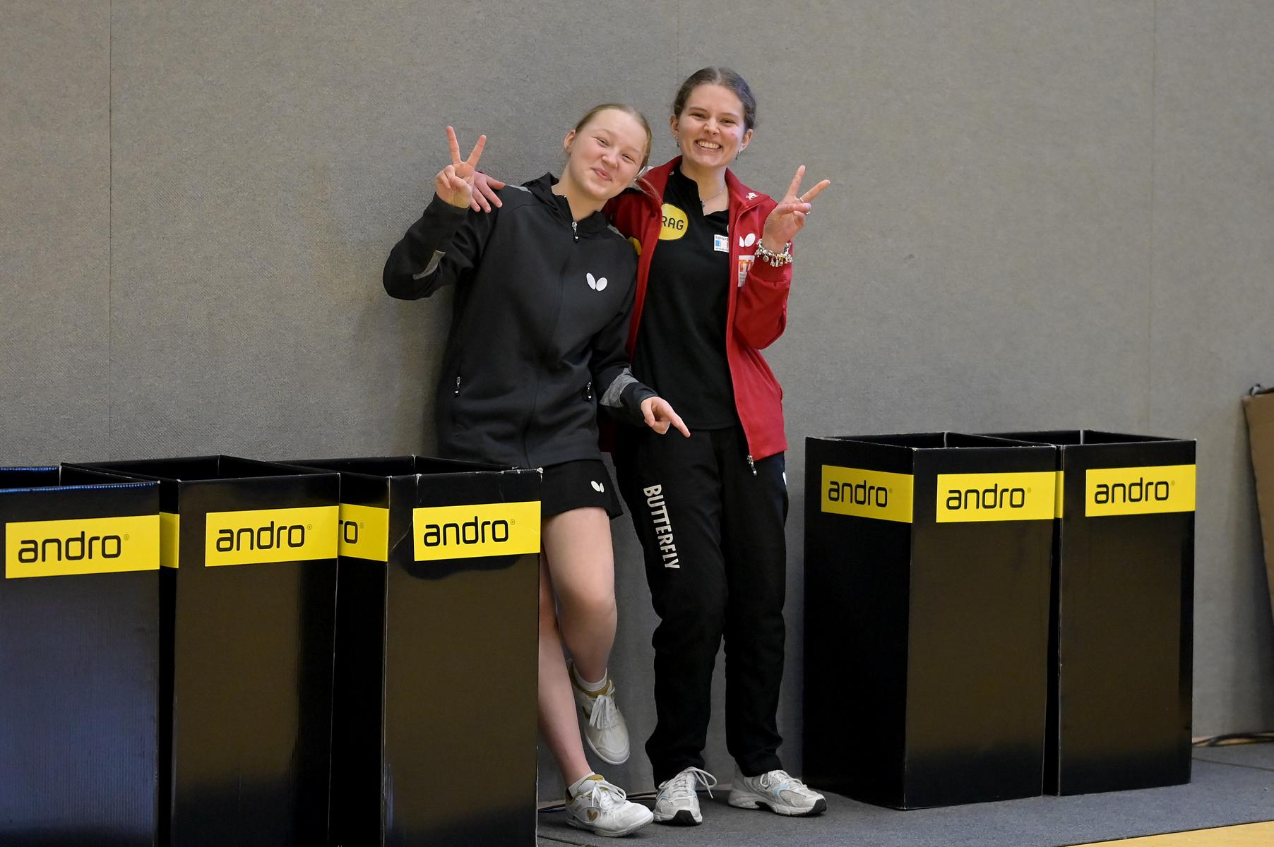 Im Mädchen-Doppel traten dann die beiden Finalteilnehmerinnen im Einzel, Frieda und Mariia, zusammen an und wurden am Ende ihrer Favoritenrolle gerecht. Allerdings mussten sie gegen das Düsseldorfer Duo Greta Bögershausen und Sofiia Zhmudenko, die ohne Satzverlust ins Endspiel einzogen, hart kämpfen, bevor sie am Ende nach fünf hart umkämpften Sätzen jubeln konnten.