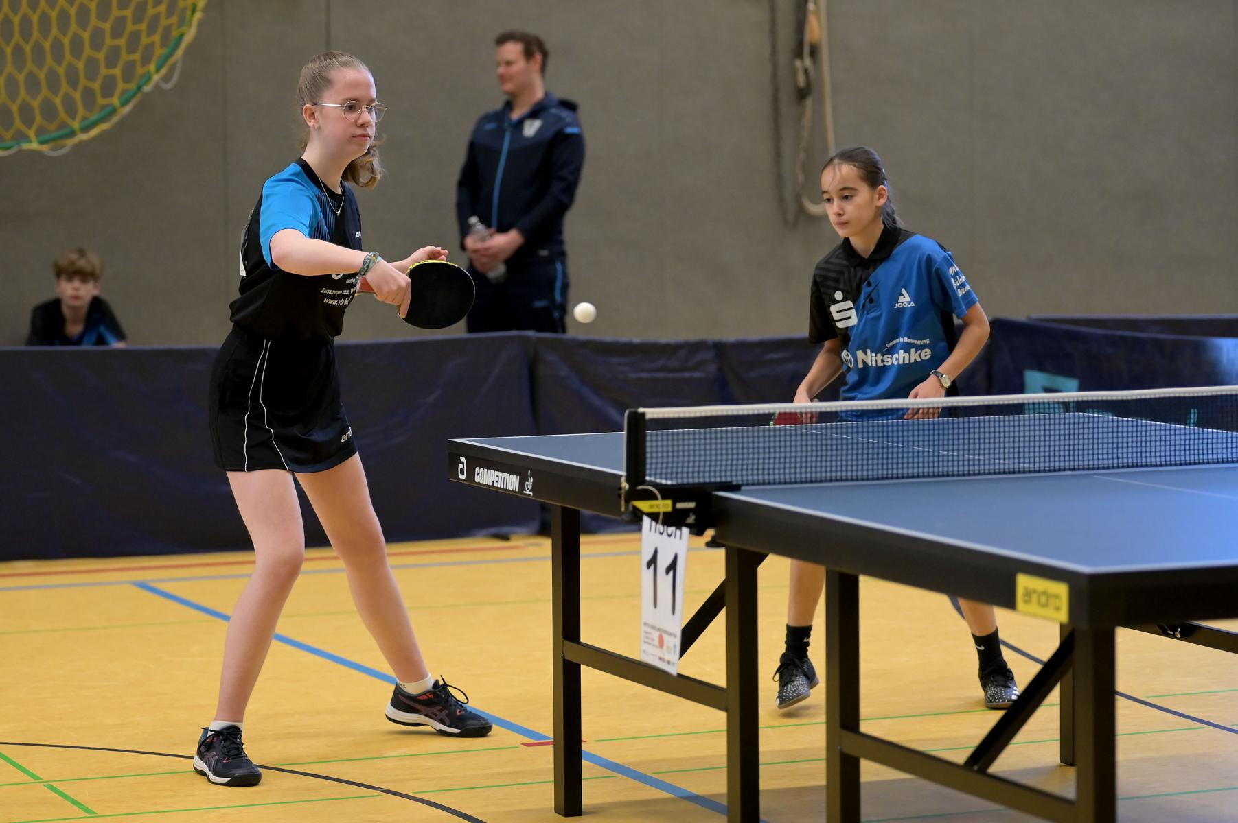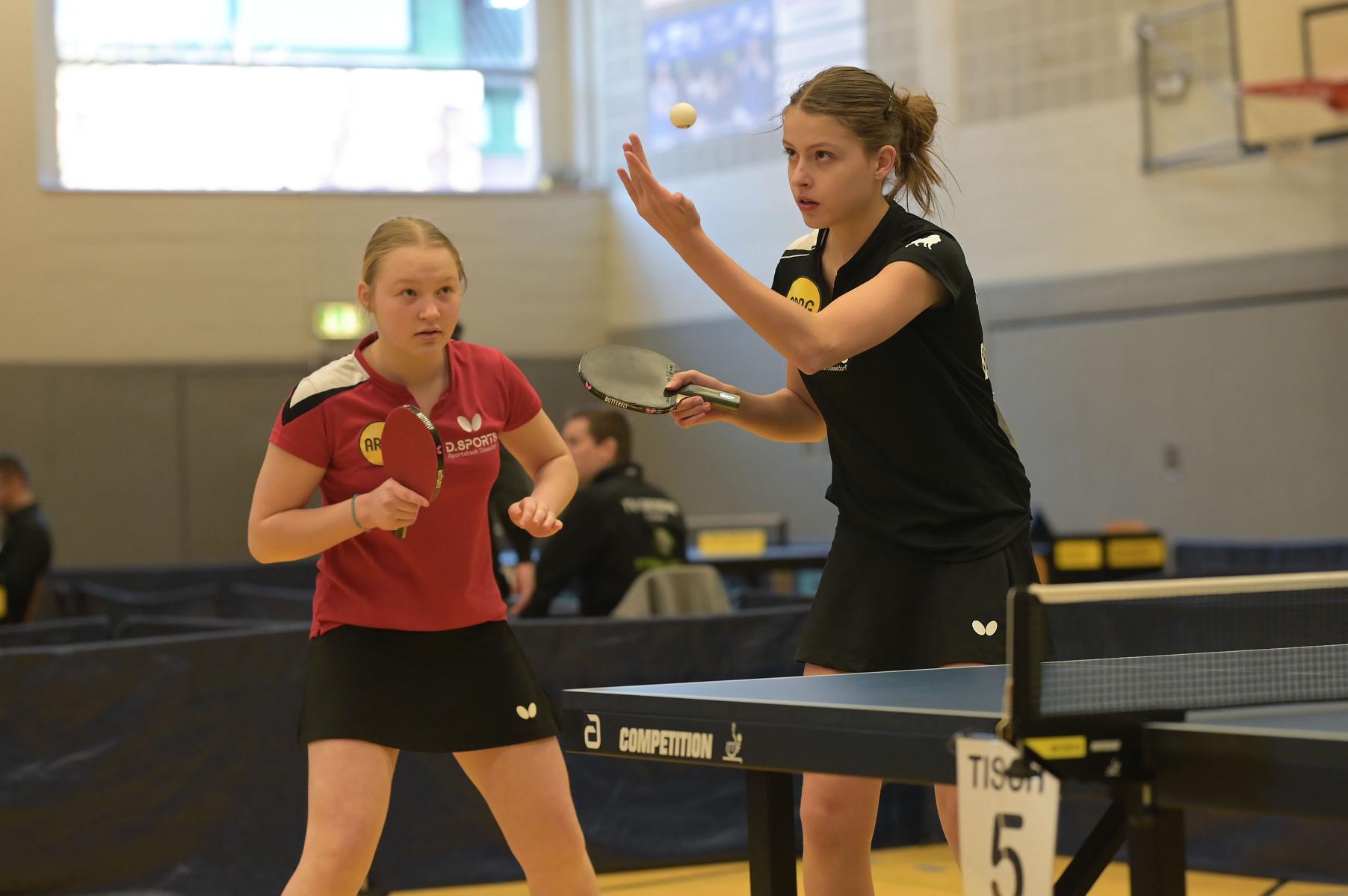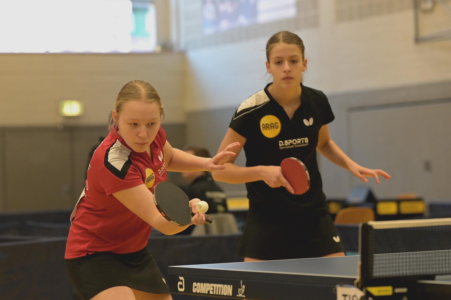 Im Mädchen-Doppel traten dann die beiden Finalteilnehmerinnen im Einzel, Frieda und Mariia, zusammen an und wurden am Ende ihrer Favoritenrolle gerecht. Allerdings mussten sie gegen das Düsseldorfer Duo Greta Bögershausen und Sofiia Zhmudenko, die ohne Satzverlust ins Endspiel einzogen, hart kämpfen, bevor sie am Ende nach fünf hart umkämpften Sätzen jubeln konnten.