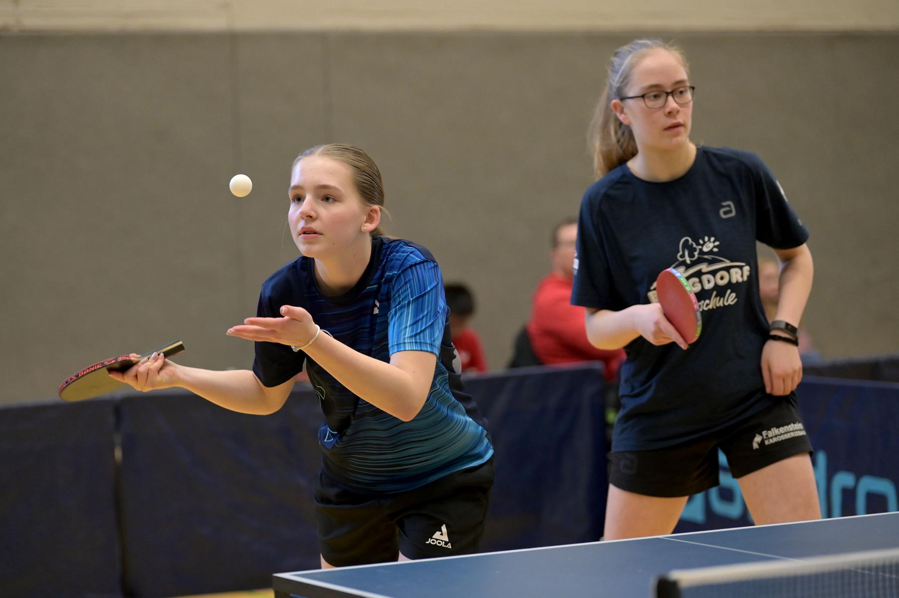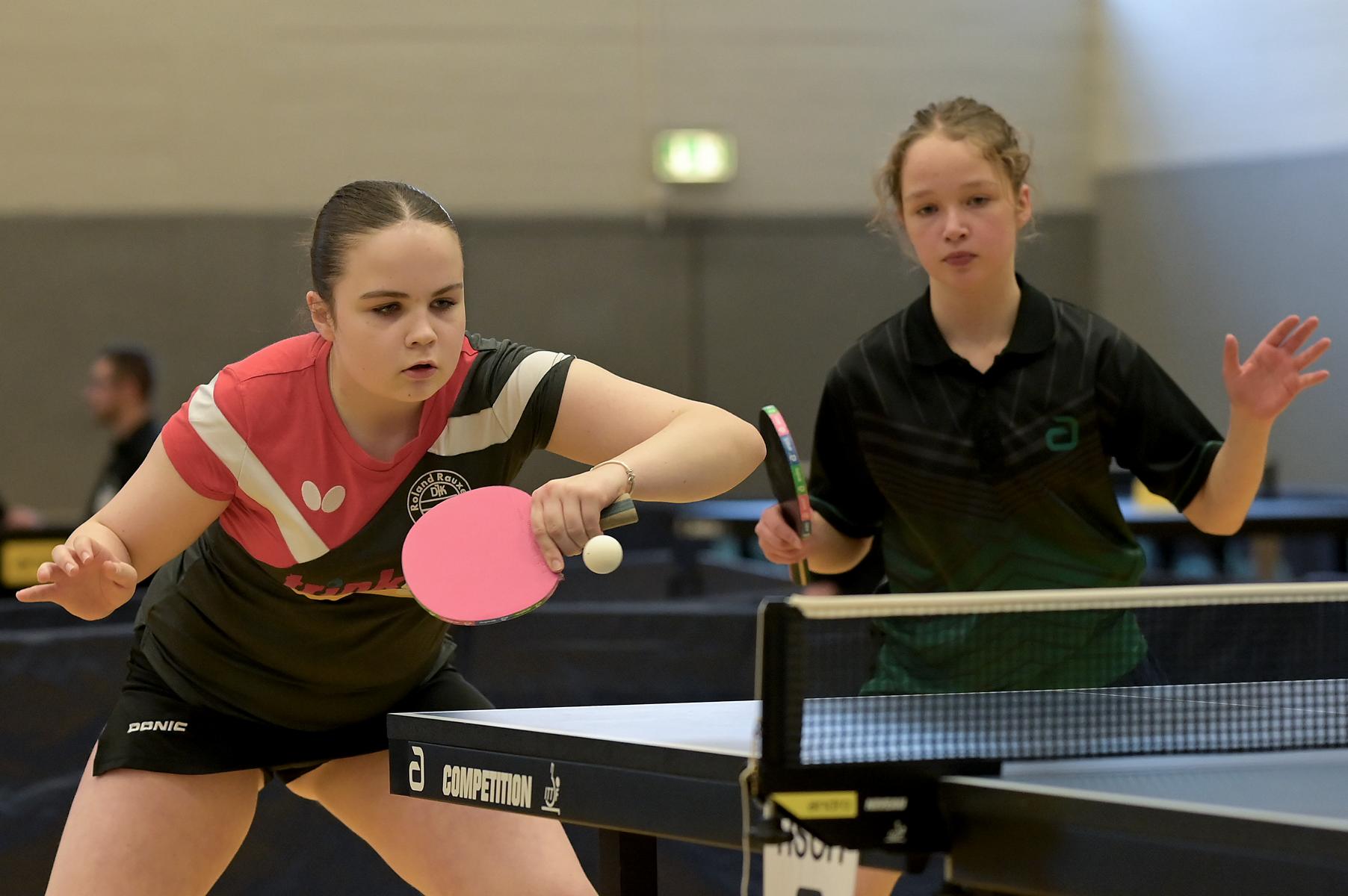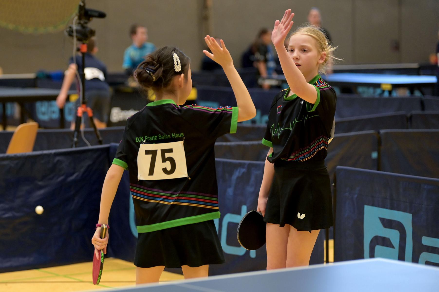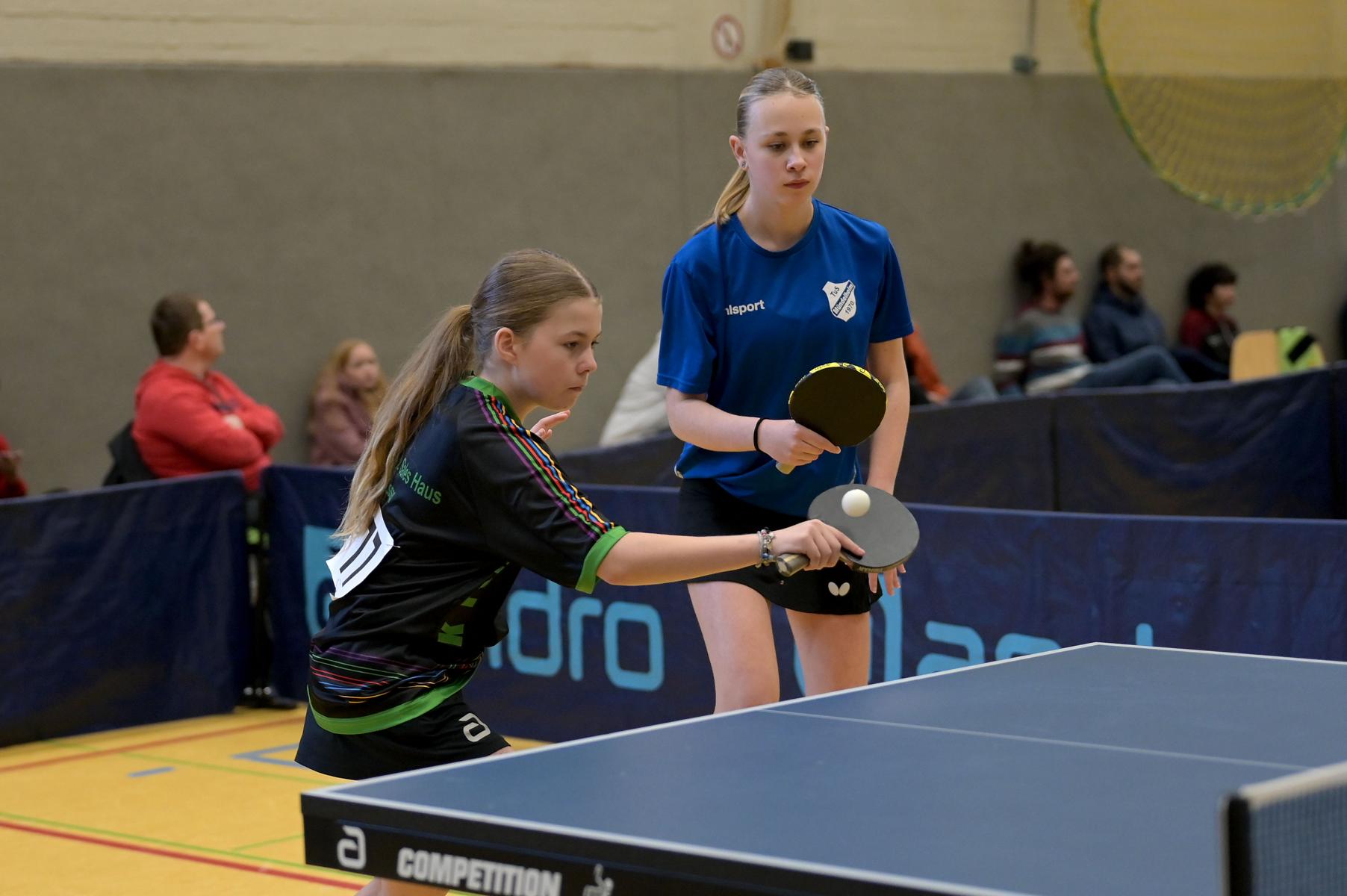 Im Mädchen-Doppel traten dann die beiden Finalteilnehmerinnen im Einzel, Frieda und Mariia, zusammen an und wurden am Ende ihrer Favoritenrolle gerecht. Allerdings mussten sie gegen das Düsseldorfer Duo Greta Bögershausen und Sofiia Zhmudenko, die ohne Satzverlust ins Endspiel einzogen, hart kämpfen, bevor sie am Ende nach fünf hart umkämpften Sätzen jubeln konnten.
