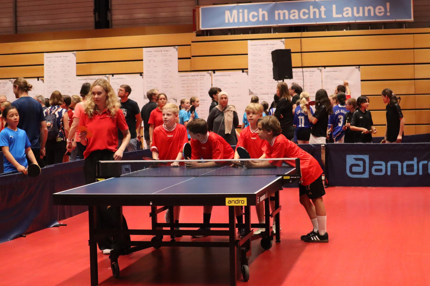 Insgesamt haben in diesem Jahr rund 600 Kinder an den verschiedenen Vorrunden und dem Landesfinale des Milchcups teilgenommen. Die Jubiläumsausgabe des Milchcups war ein echtes Highlight! Seit einem Vierteljahrhundert ist der Wettbewerb fester Bestandteil des Schullebens und hat sich zum größten Tischtennisturnier für Schulen im WTTV entwickelt. Die Stimmung im DTTZ war entsprechend ausgelassen – ob beim Anfeuern der Mitschülerinnen und Mitschüler, bei spannenden Ballwechseln an den Tischen oder beim gemeinsamen Jubel über gelungene Punkte: Die Freude am Spiel war überall spürbar.