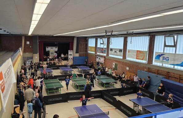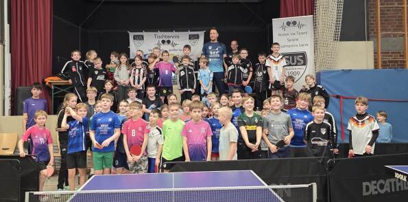 Alles was es braucht sind zwei Schläger, ein Ball, ein Netz und ein Tisch. Was in Parks und auf Spielplätzen häufig zu beobachten ist, ist auch auf dem Schulhof der Ludgerischule in Neuenkirchen anzutreffen. In jeder großen Pause sind die drei Tischtennisplatten komplett belegt und es wird „Rundlauf gezockt“. Ein Grund dafür: Die Kooperation der Grundschule mit der Tischtennisabteilung von SuS Neuenkirchen. 2019 wurde eine Tischtennis-AG ins Leben gerufen, seitdem praktizieren jeweils 20 Kinder in den Herbst- und Wintermonaten unter Anleitung von Anne und Thomas Kothe den schnellen Ballsport und bringen Ping Pong anschließend in die Klassenzimmer und auf den Schulhof. Höhepunkt des Ganzen: Am vergangenen Samstag fanden zum dritten Mal auf Ortsebene die „mini-Meisterschaften“, ausgerufen vom Deutschen Tischtennis Bund und organisiert von der SuS-Tischtennisabteilung, in der Ludgeri-Sporthalle statt. Deren 1. Vorsitzende Thomas Kothe zeigte sich während des Turniers sehr zufrieden: „Es haben sich insgesamt 53 Kinder in drei Altersklassen angemeldet, damit haben wir mit Abstand das größte Turnier im Tischtennisbezirk Münsterland. Es macht uns schon ein wenig stolz, dass unser Angebot in Neuenkirchen und Umgebung so gut angenommen wird.“ Und Dennis Hessing vom Vorstand ergänzt: „Auf der einen Seite steckt in so einem Turnier viel Arbeit. Über 20 Erwachsene aus unserer Abteilung, dazu einige Kinder und Eltern, sind eingespannt. Aber diese Arbeit lohnt sich jedes Jahr wieder auf´s Neue. Tischtennis boomt in unserer Abteilung und in Neuenkirchen.“