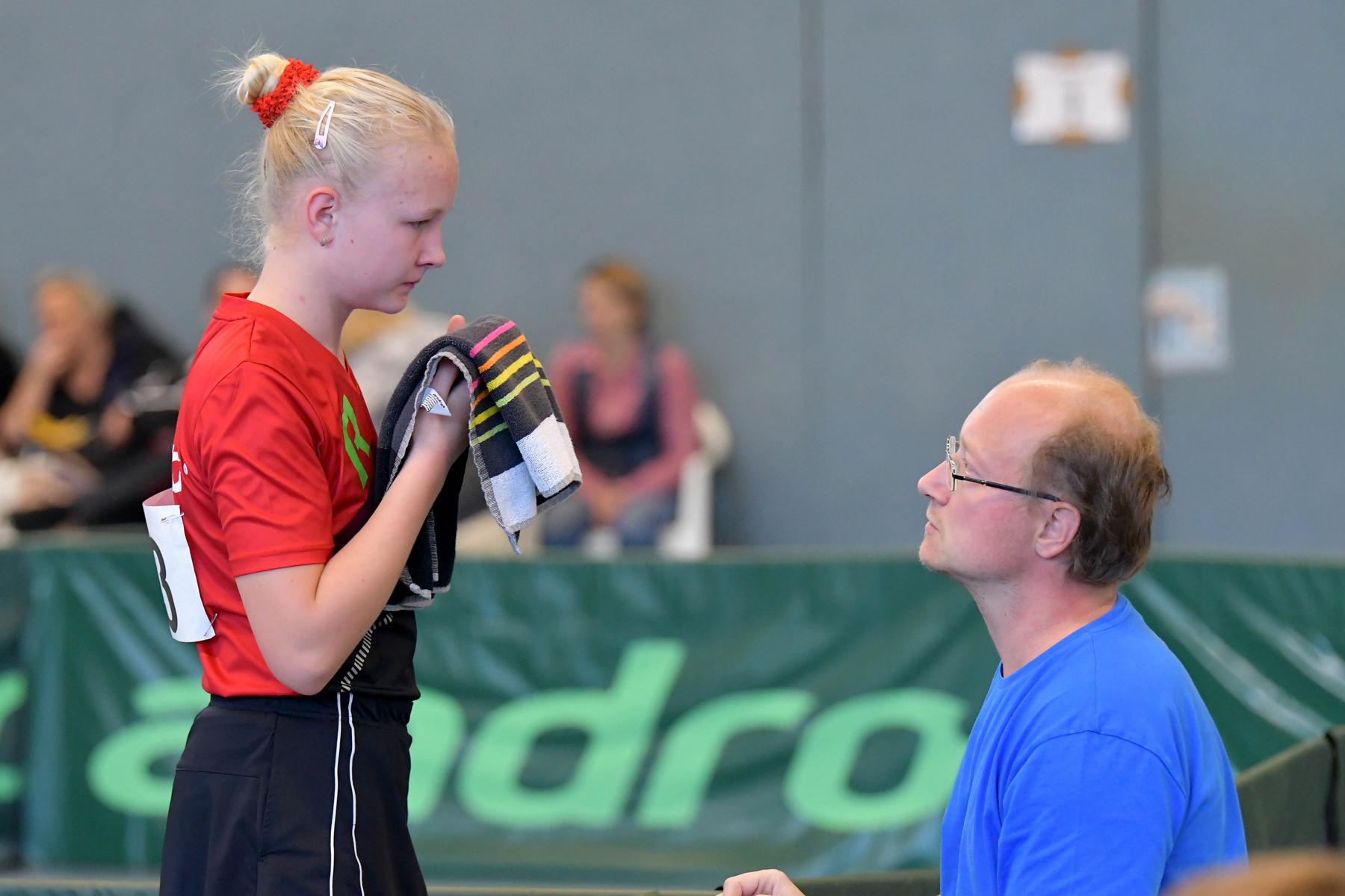 Nach dem Spiel fand unser WTTV-Cheftrainer Stephan Schulte-Kellinghaus noch einige Worte zum Turnierverlauf. Zu den Schülerinnen sagte er, dass er davon ausgegangen ist, dass Hannah Pollmeiner und Melinda Maiwald das Ticket für das DTTB Top 48 lösen. Beide haben gut trainiert und Hannah hat zum Schluss konstanter gespielt und sicherte sich so Platz eins. Zu sportlichen Entwicklung der Schülerinnen sagte er, dass beide noch viel Potential haben. Besonders gefreut hat er sich über die vielen guten Spiele, die zu sehen waren. „Verschiedene Spielsysteme und Materialien haben zu einem guten Turnierverlauf beigetragen“. Aus seiner Sicht ist das Niveau besser als in der Vergangenheit. Das verletzungsbedingte Ausscheiden von Medeea Grozav-Marcu fand er sehr bedauerlich und wünscht ihr auf diesem Weg alles Gute. Schulte-Kellinghaus war davon überzeugt, dass sie ein Wörtchen bei den vorderen Platzierungen hätte mitreden können.