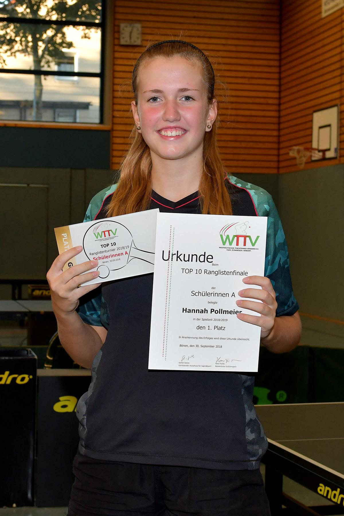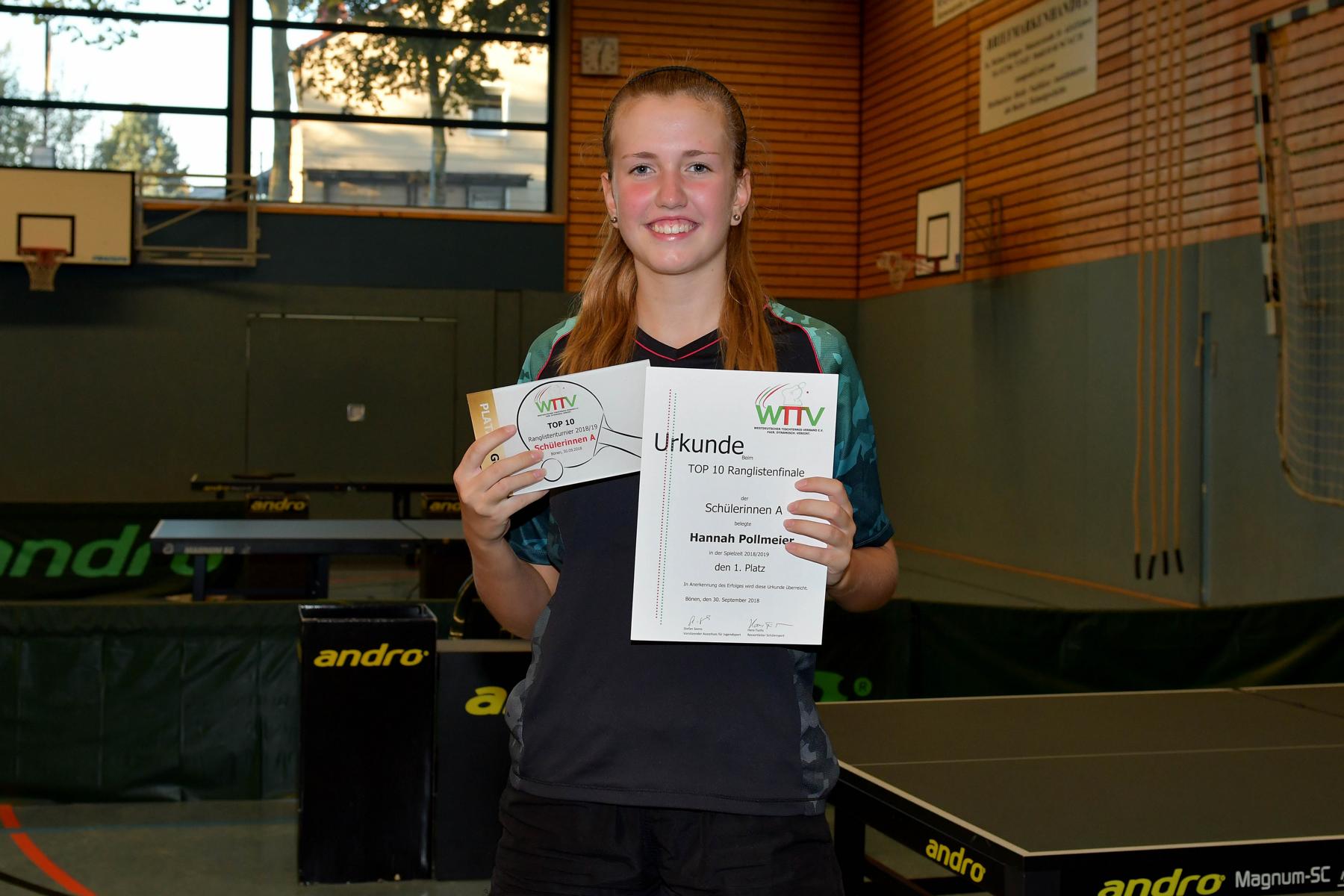 Hannah Pollmeier (TTV Hövelhof) und Marco Stefanidis (Heilinghauser SV) gewinnen die WTTV Ranglistenturniere TOP 12/10.