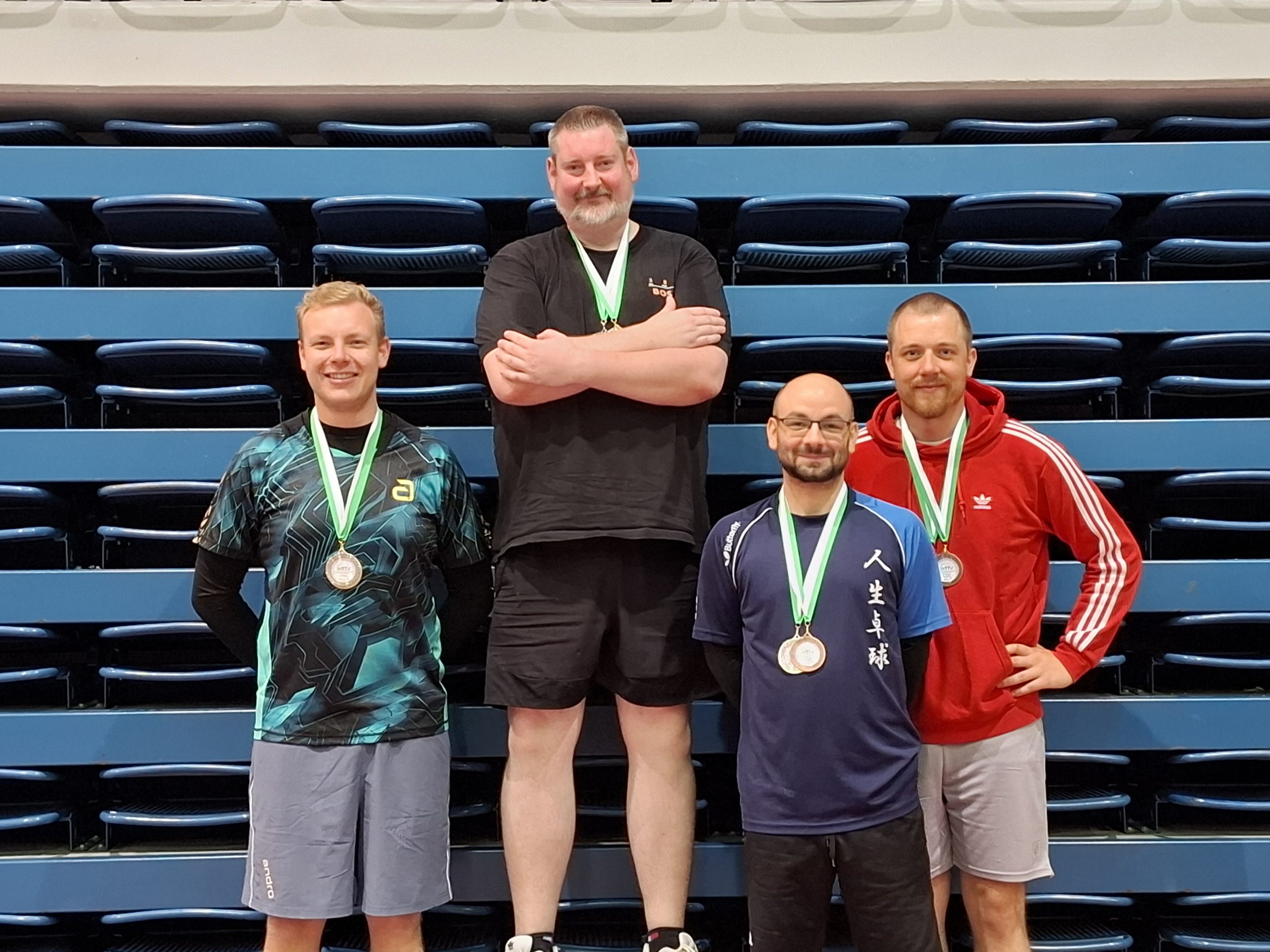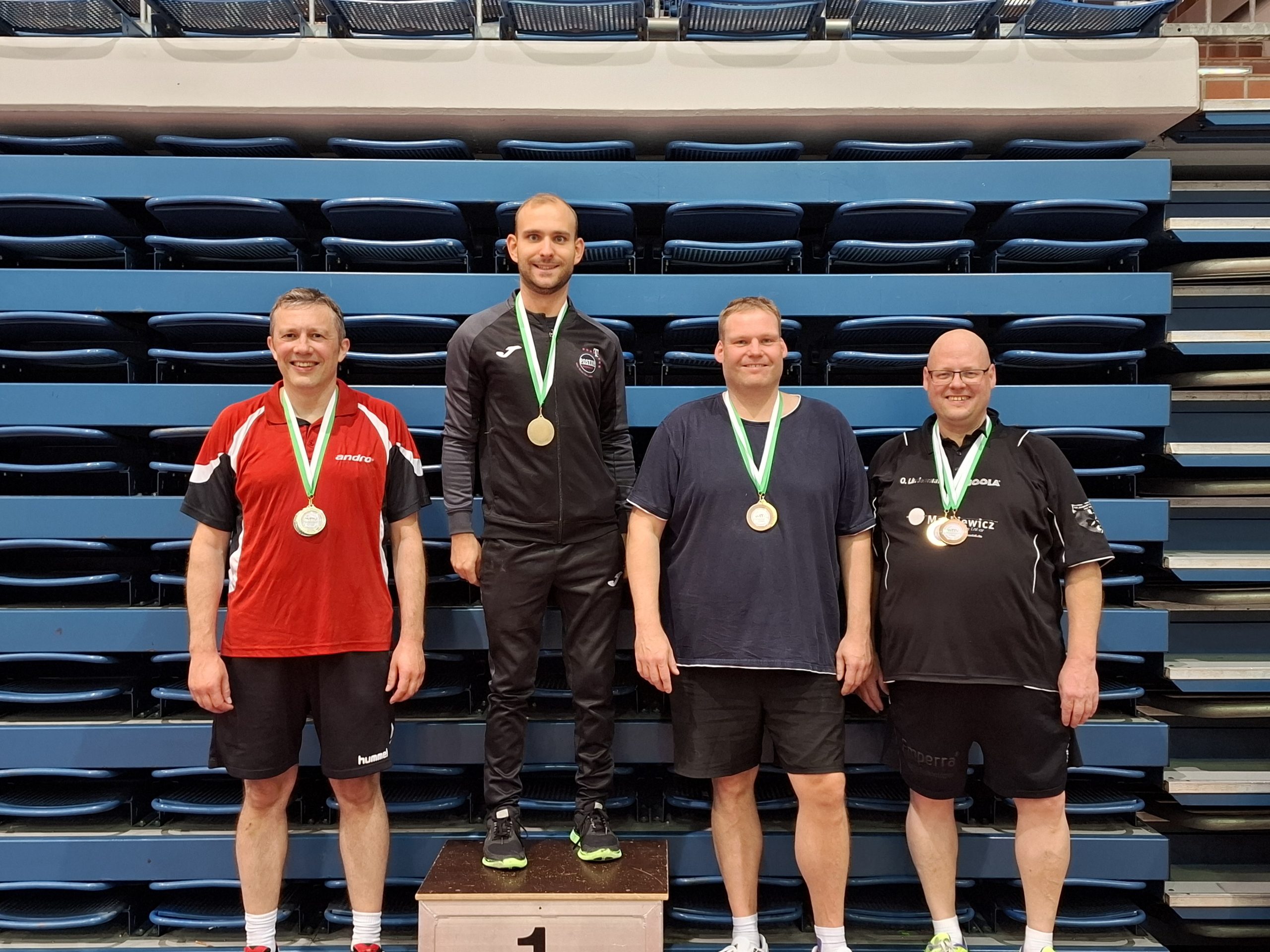 - Herren F Einzel (v.l.n.r.): Marco Schütte (CVJM Heepen), Linus Oberste-Frielinghaus (Gadderbaumer TV), Cornelia Krüger (TPSV), Tim Niggemann (VfB Fichte)