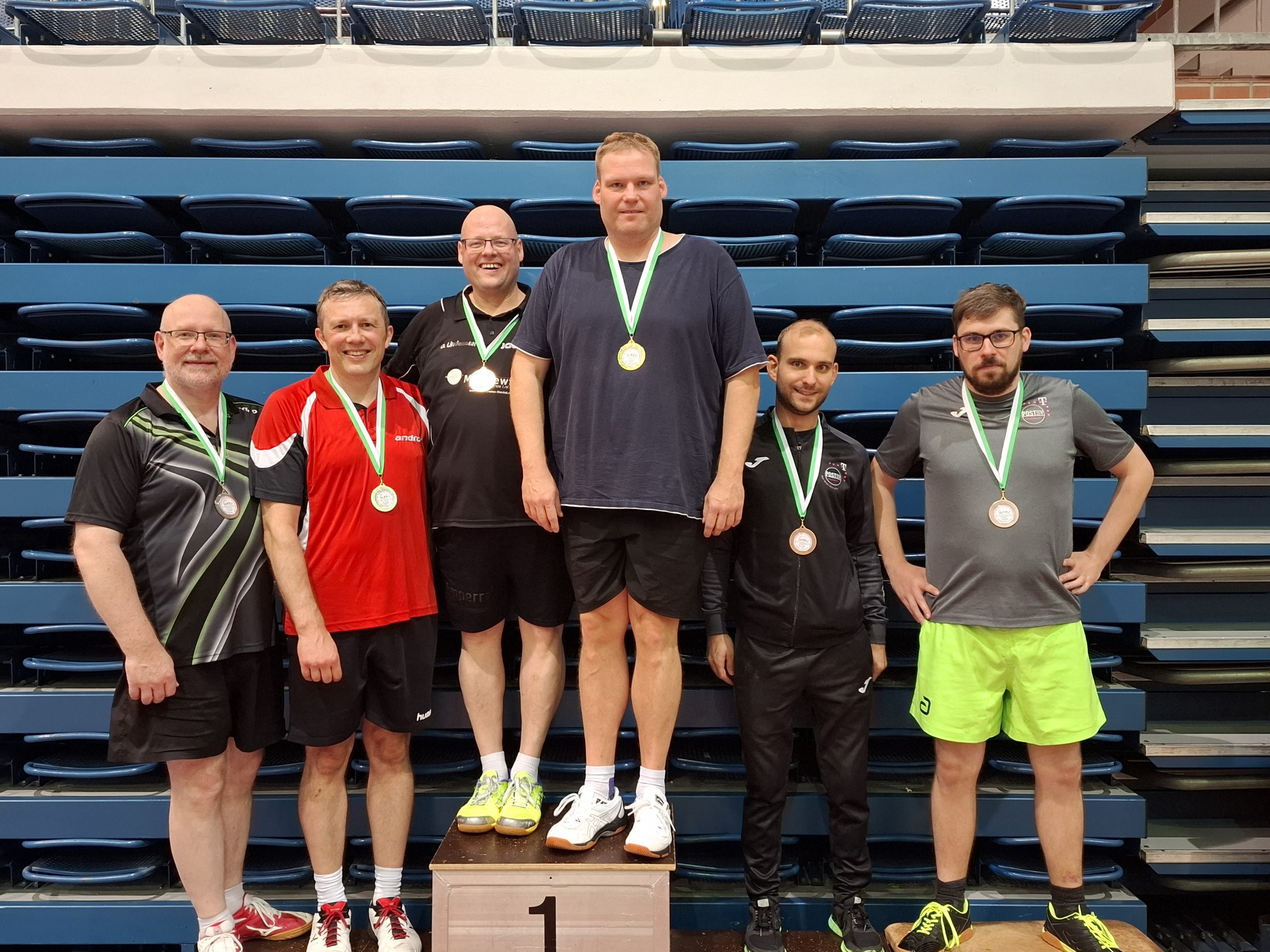 - Herren D Doppel (v.l.n.r.): Marc Ramsel (Spvg. Heepen), Andre Wöhrmann (SV Gadderbaum), Olaf Lindemann (TuS Hillegossen), Olaf Winkenjohann (DJK BW Bielefeld), Christoph Drewitz, Sebastian Büttner (beide TPSV)