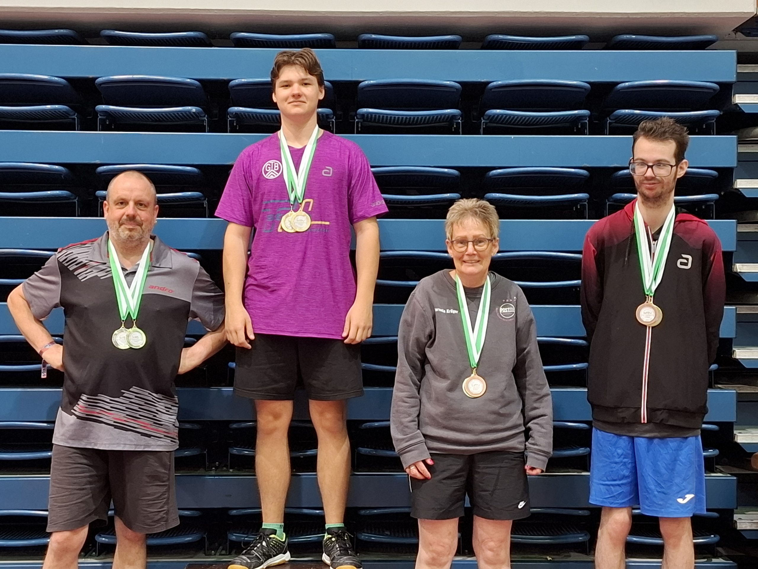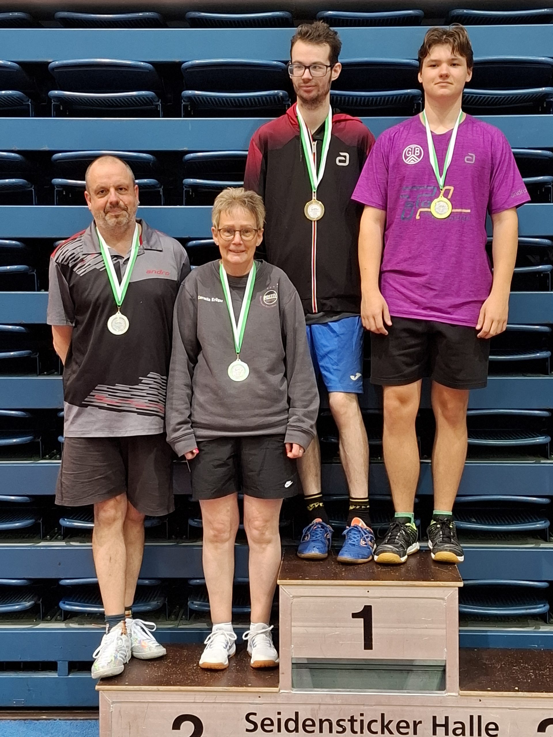 - Herren F Doppel (v.l.n.r.): Marco Schütte (CVJM Heepen), Cornelia Krüger (TPSV), Tim Niggemann (VfB Fichte), Linus Oberste-Frielinghaus (Gadderbaumer TV)