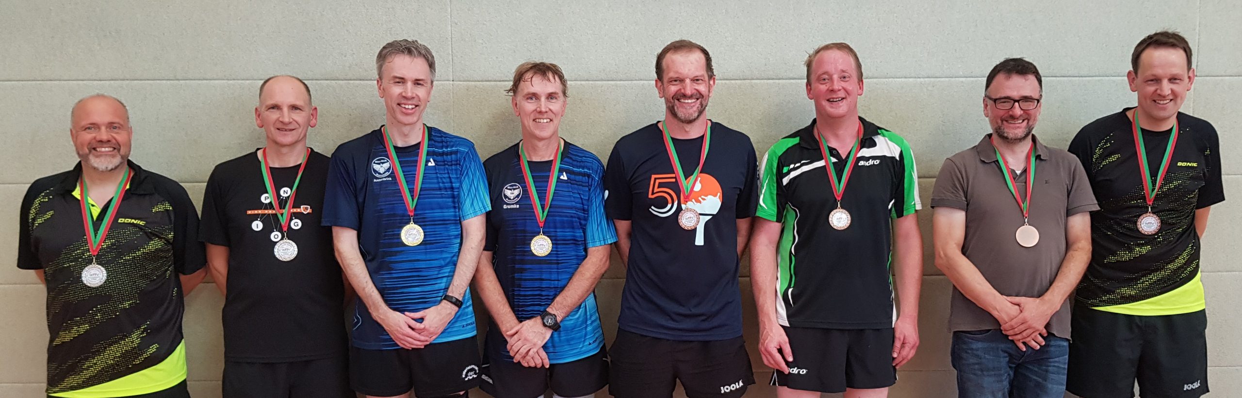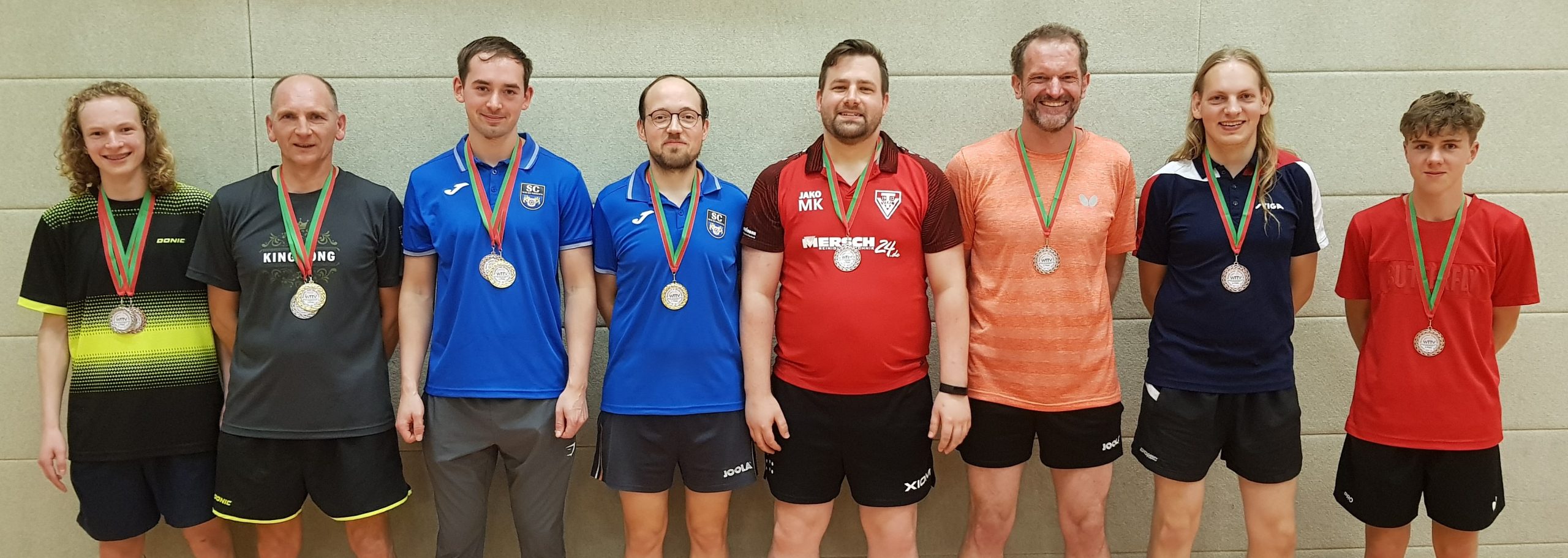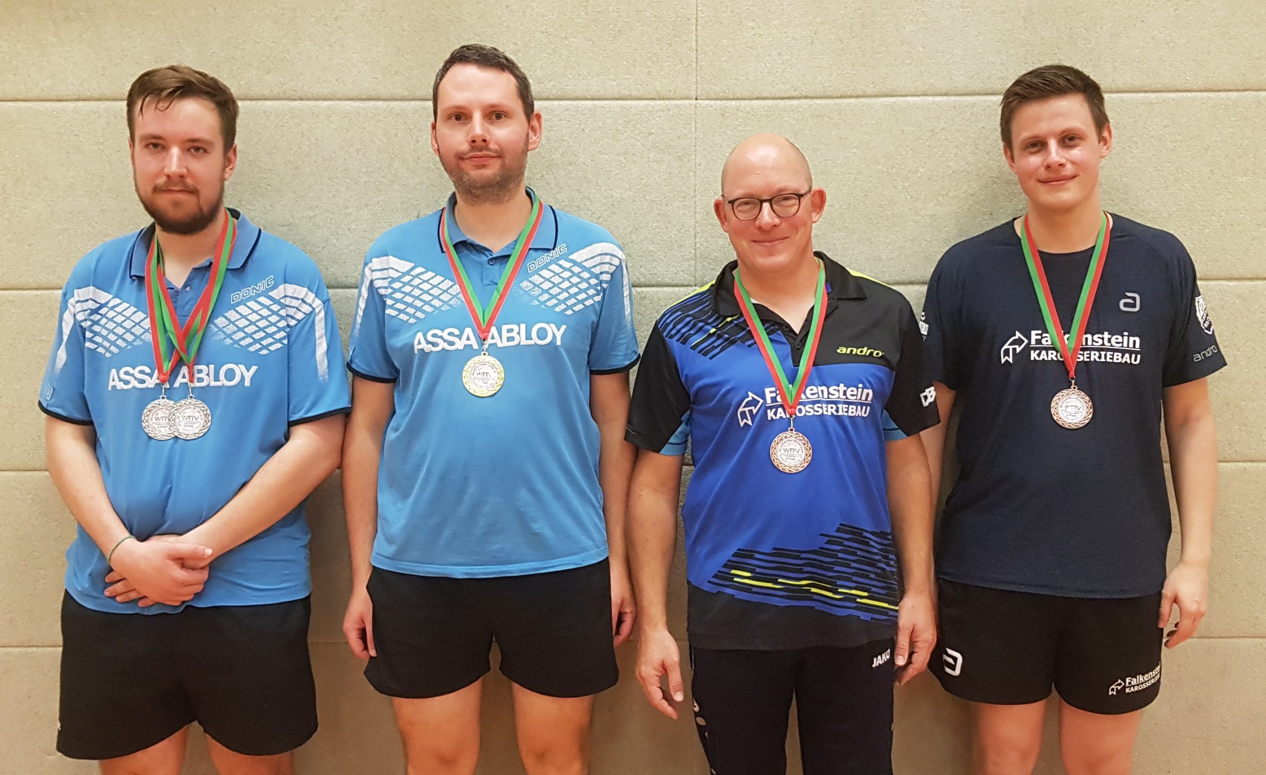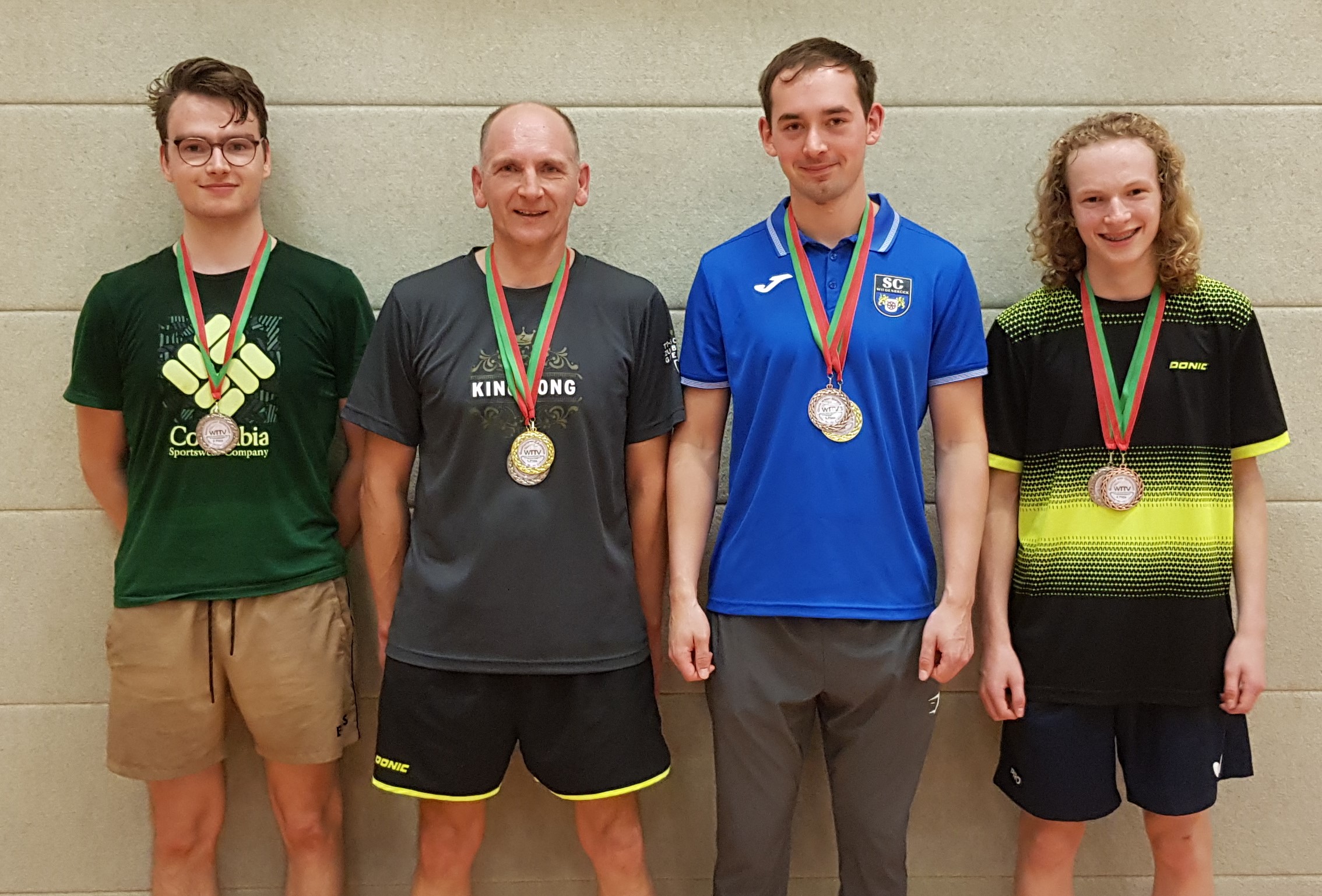 - Damen/Herren C Einzel: v.l. 2. Can Ward, 1. Ludger Terhechte, 3. Luca Gosemärker und Jan Merta