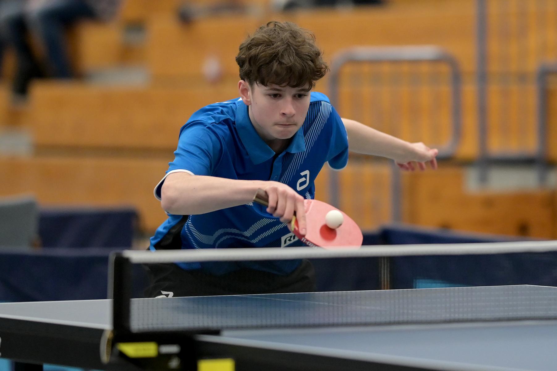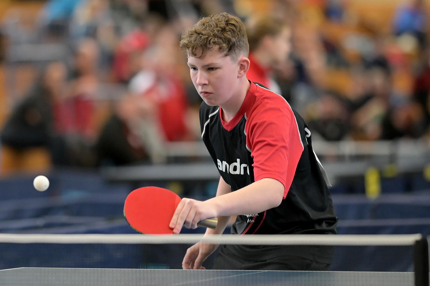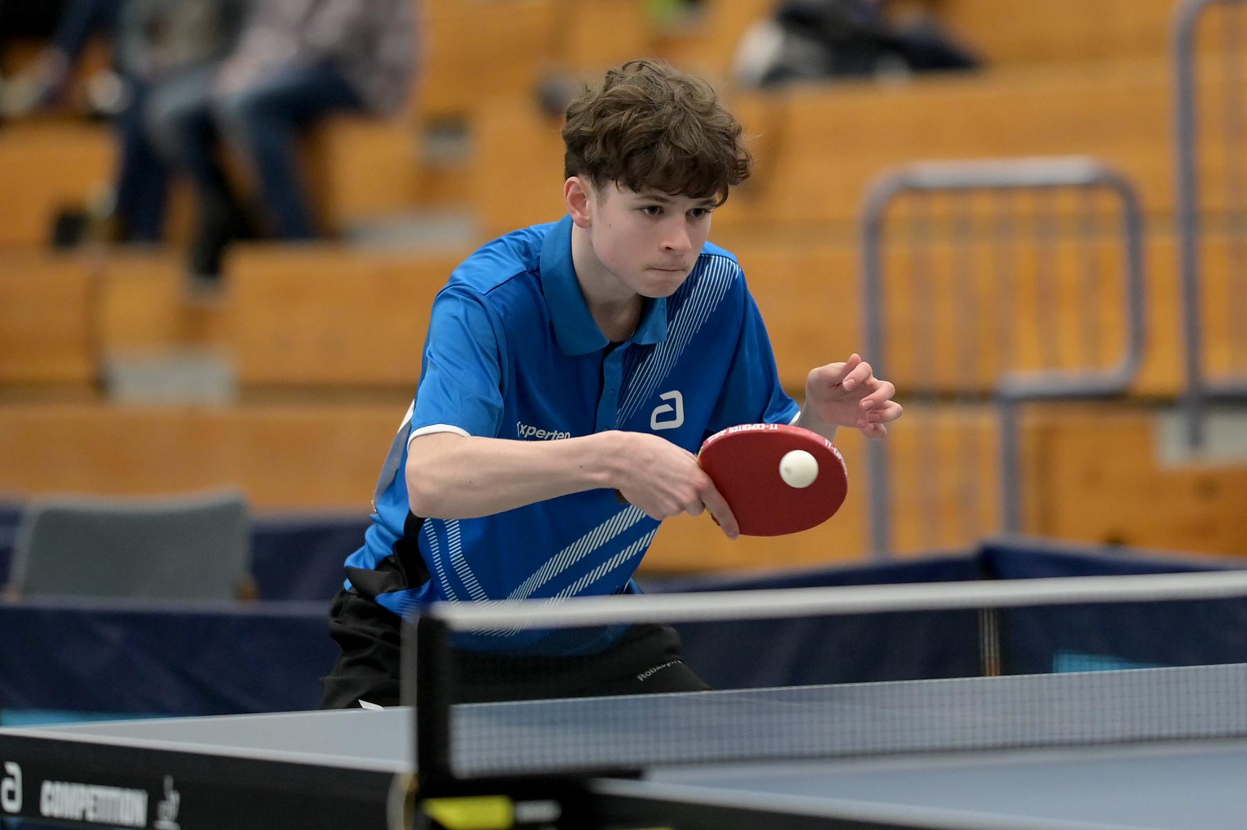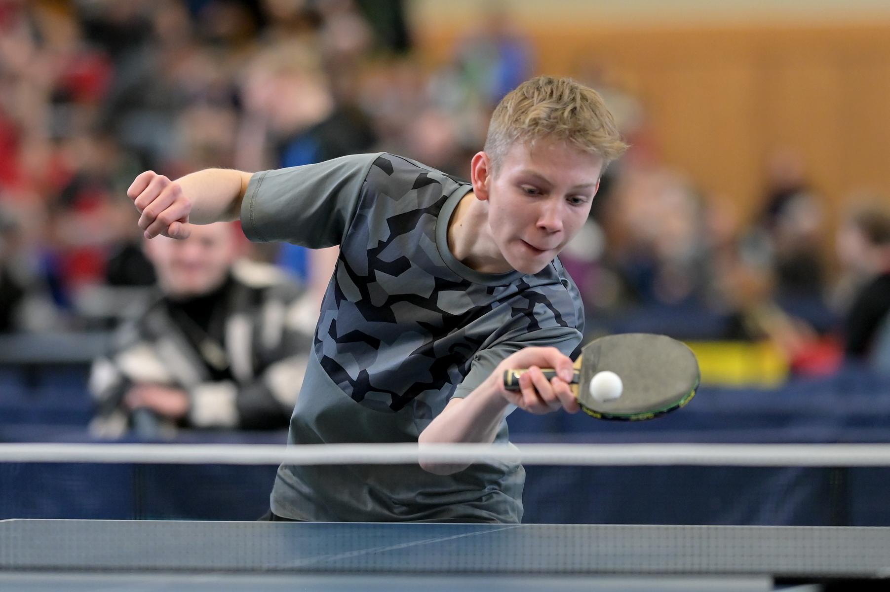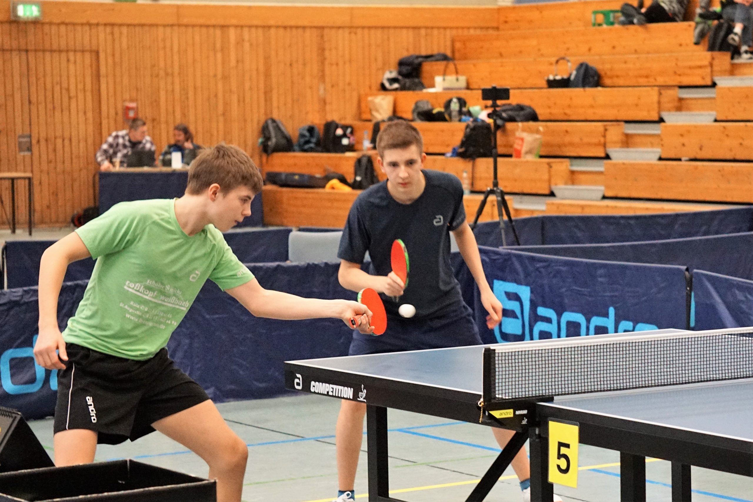 Ähnlich wie bei den Mädchen, wollte sich dann auch Friedrich, an der Seite von Nico Thönnissen, den Doppelerfolg holen. Doch sie trafen im Finale mit Adrian Gossow und Johann Mahl auf ein sehr gute links-rechts Kombination. Adrian und Johann waren von Beginn an hellwach und konnten sich eine 2:0-Führung erspielen. Doch dann fanden Friedrich und Nico immer bessere Lösungen und konnten sich ins Spiel zurück kämpfen und auf 2:2 ausgleichen. Der letzte Satz musste also die Entscheidung bringen. Hier spielten Adrian und Johann wieder sehr stark auf und holten sich diesen mit 11:3.