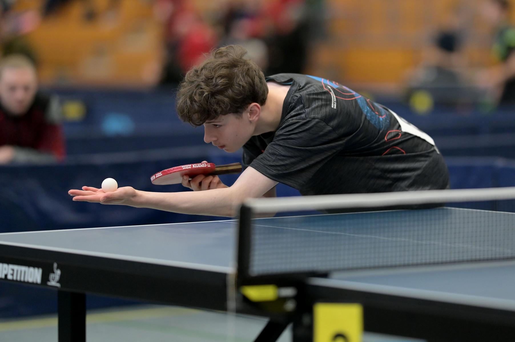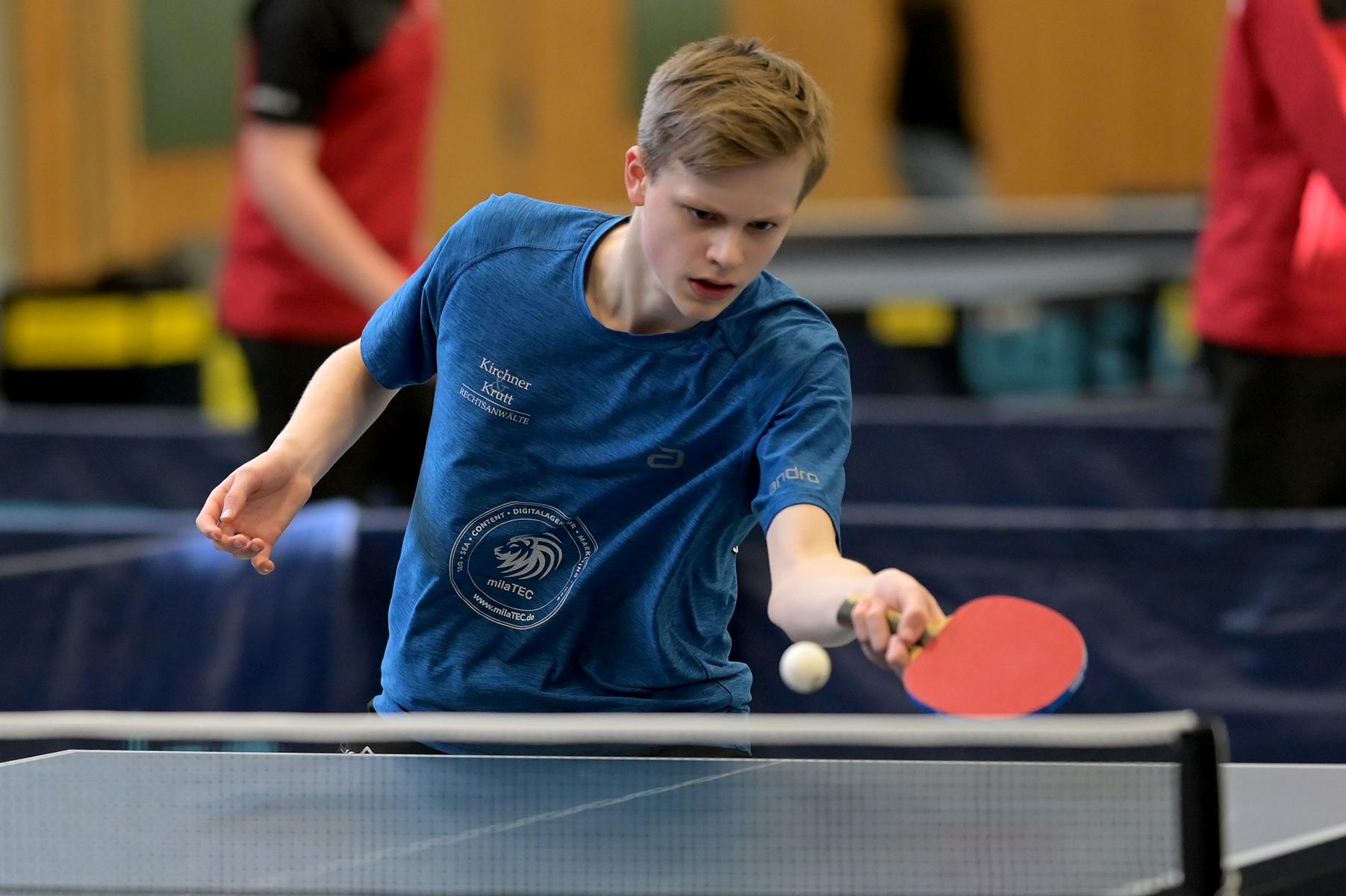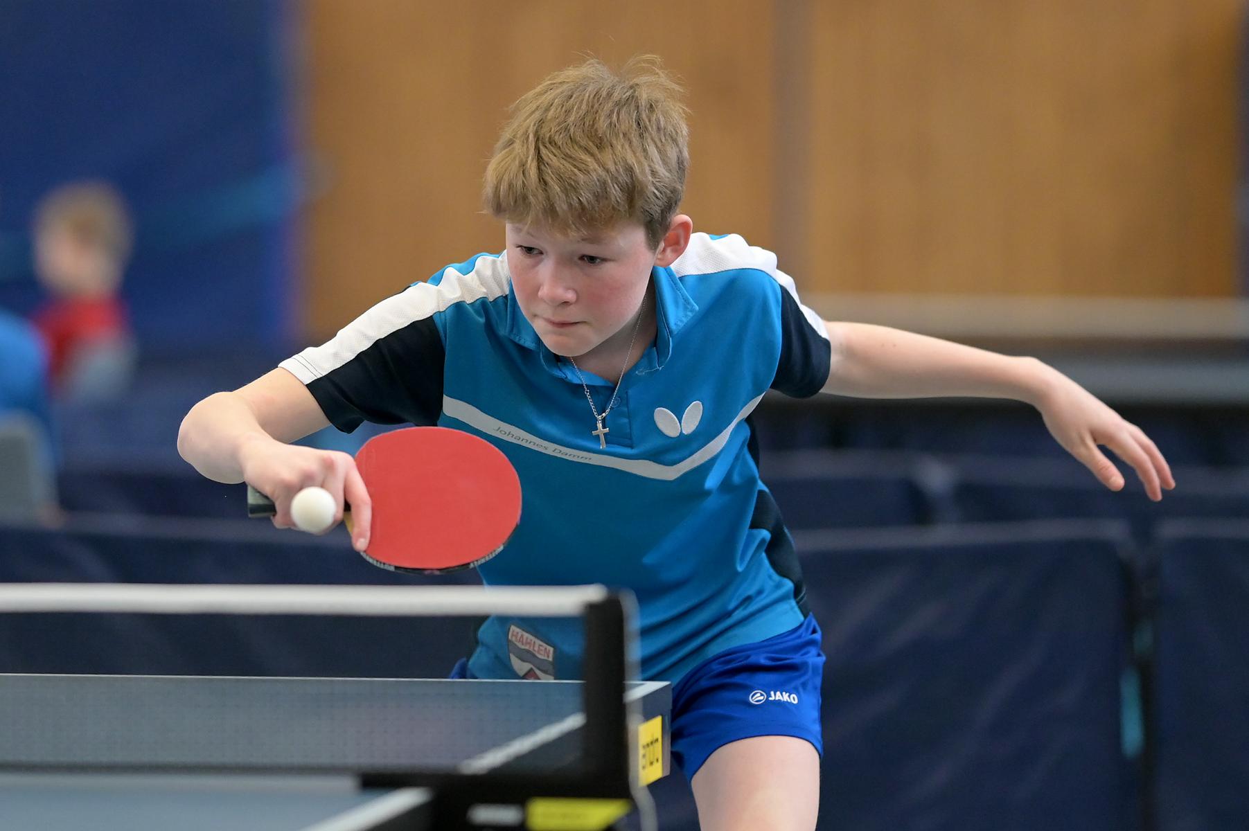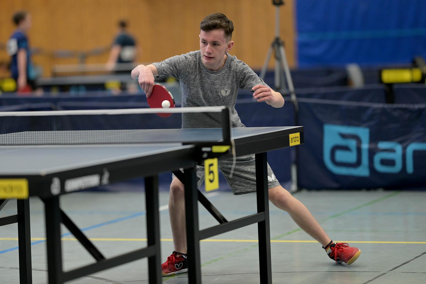 Ähnlich wie bei den Mädchen, wollte sich dann auch Friedrich, an der Seite von Nico Thönnissen, den Doppelerfolg holen. Doch sie trafen im Finale mit Adrian Gossow und Johann Mahl auf ein sehr gute links-rechts Kombination. Adrian und Johann waren von Beginn an hellwach und konnten sich eine 2:0-Führung erspielen. Doch dann fanden Friedrich und Nico immer bessere Lösungen und konnten sich ins Spiel zurück kämpfen und auf 2:2 ausgleichen. Der letzte Satz musste also die Entscheidung bringen. Hier spielten Adrian und Johann wieder sehr stark auf und holten sich diesen mit 11:3.