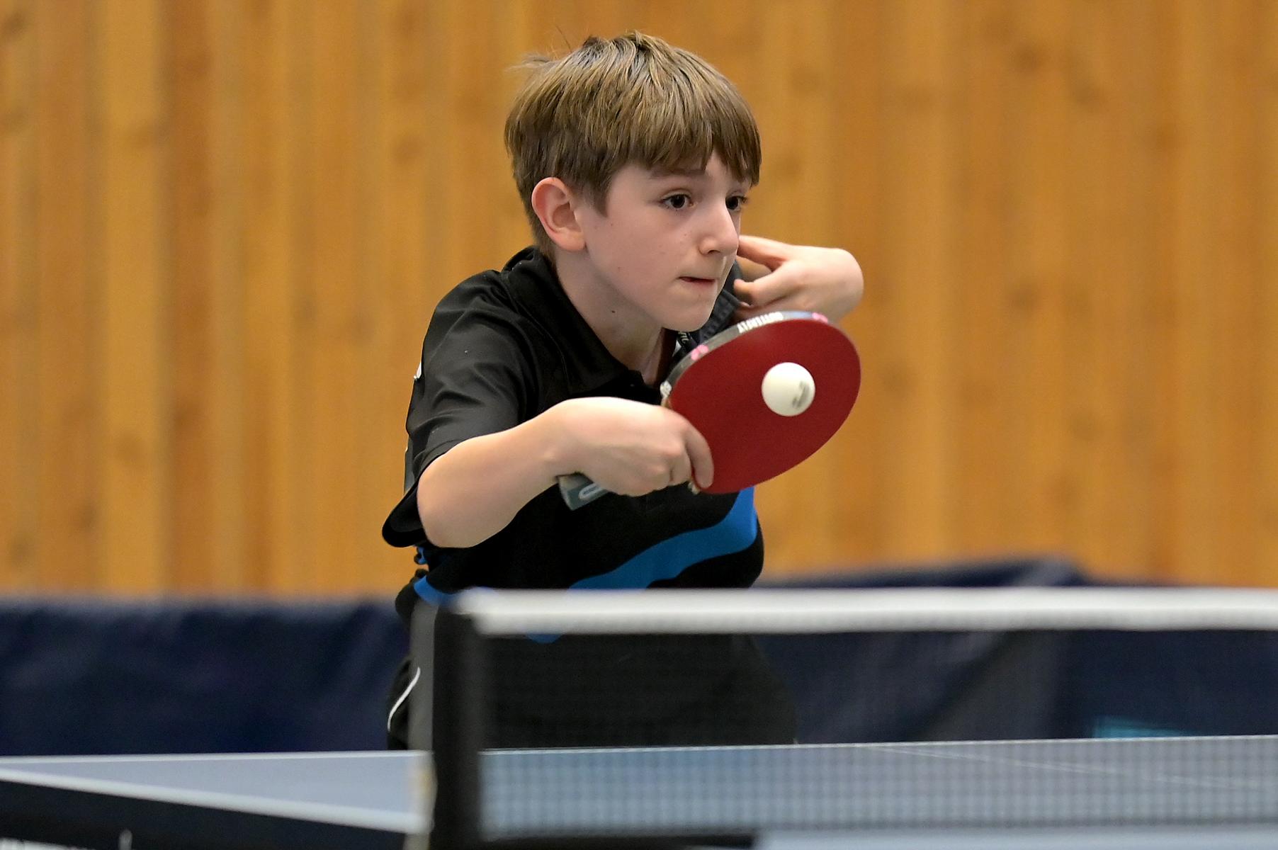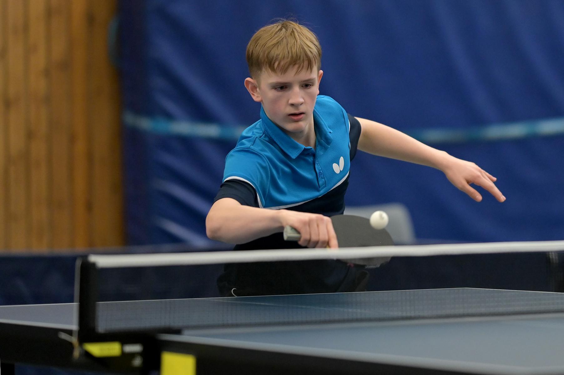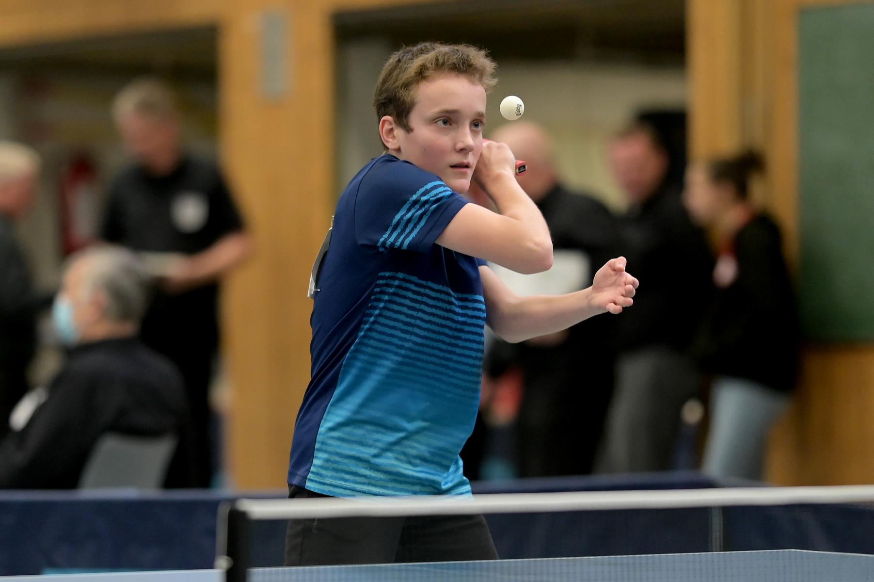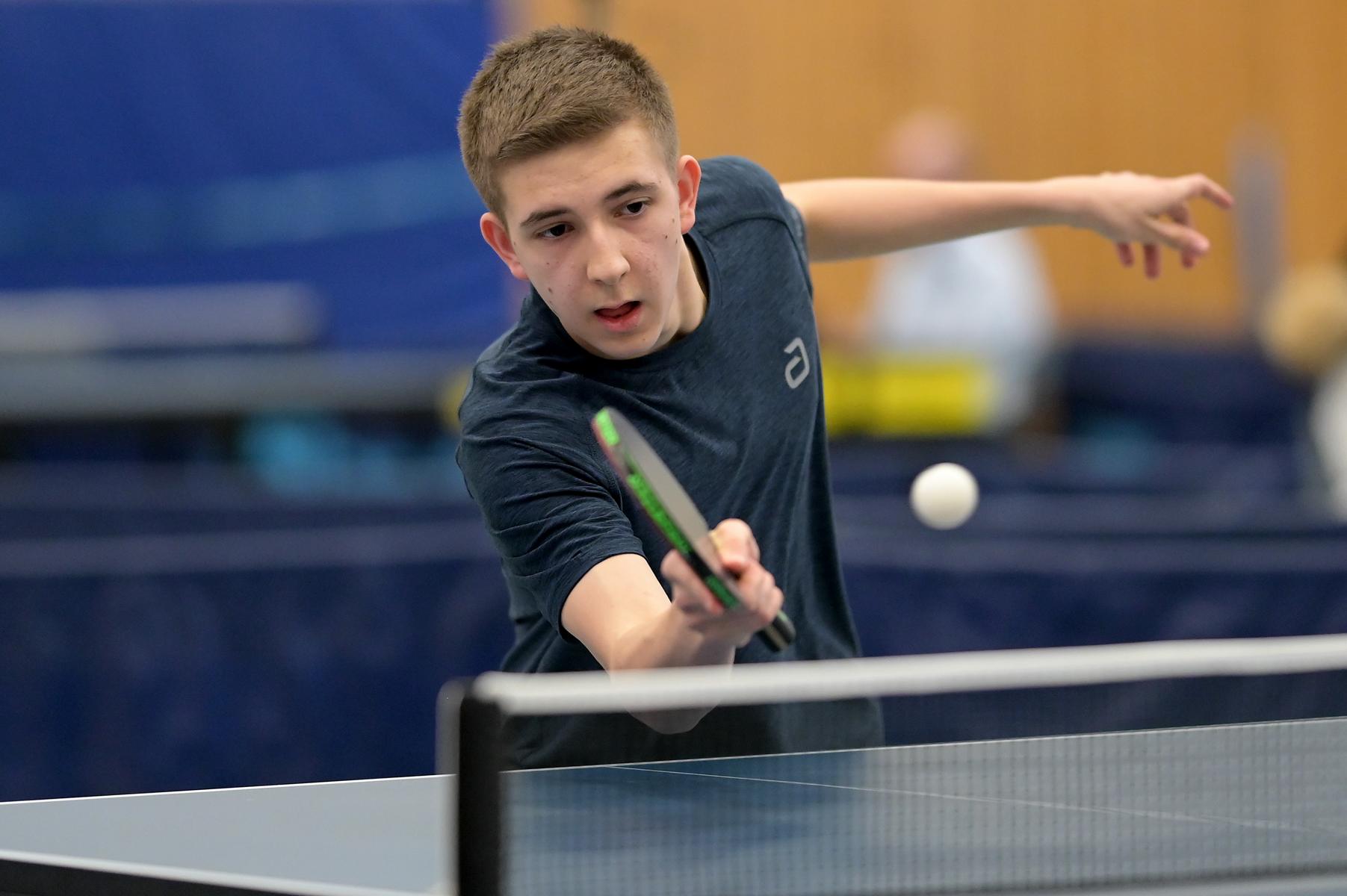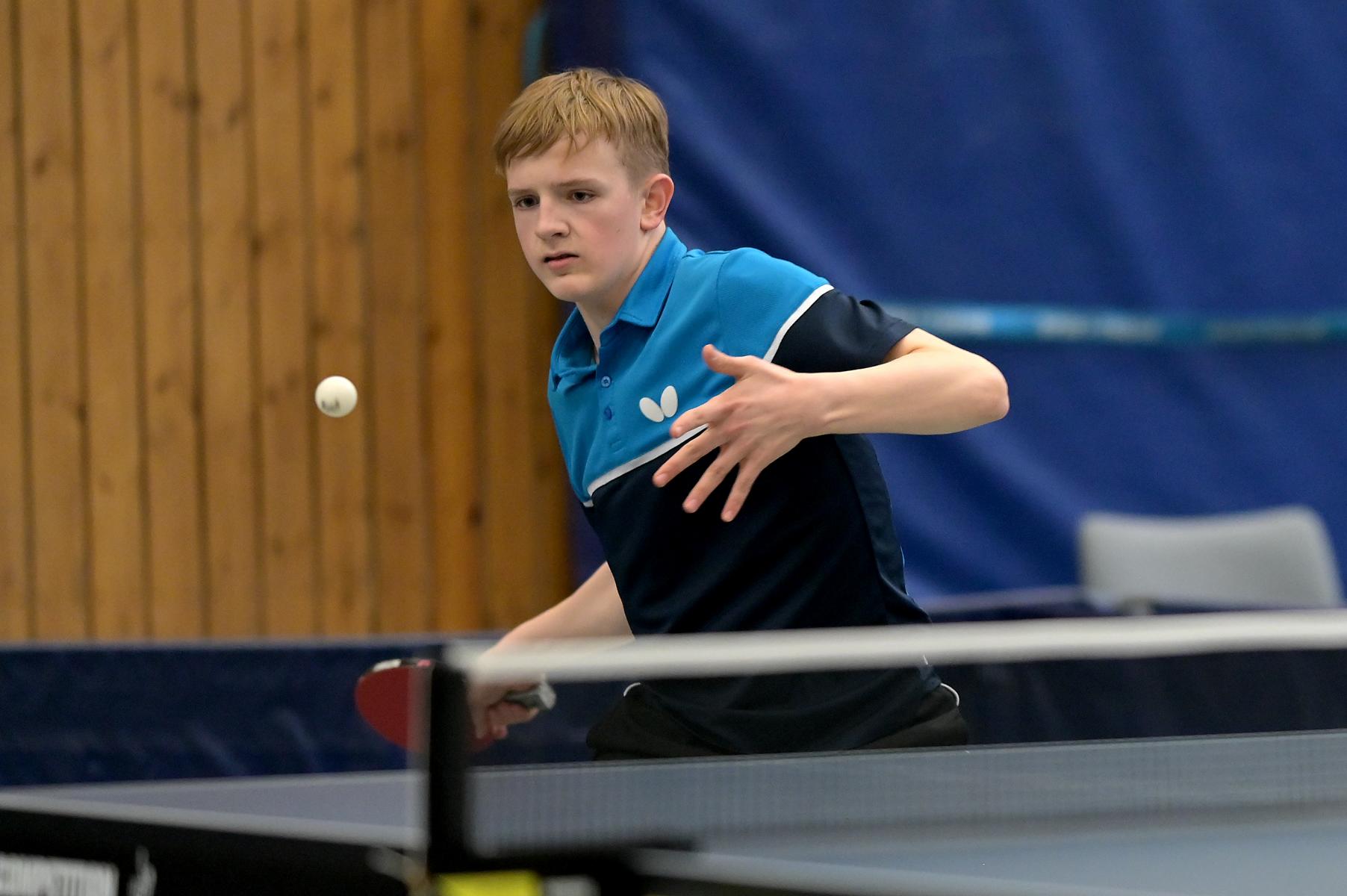 Ähnlich wie bei den Mädchen, wollte sich dann auch Friedrich, an der Seite von Nico Thönnissen, den Doppelerfolg holen. Doch sie trafen im Finale mit Adrian Gossow und Johann Mahl auf ein sehr gute links-rechts Kombination. Adrian und Johann waren von Beginn an hellwach und konnten sich eine 2:0-Führung erspielen. Doch dann fanden Friedrich und Nico immer bessere Lösungen und konnten sich ins Spiel zurück kämpfen und auf 2:2 ausgleichen. Der letzte Satz musste also die Entscheidung bringen. Hier spielten Adrian und Johann wieder sehr stark auf und holten sich diesen mit 11:3.