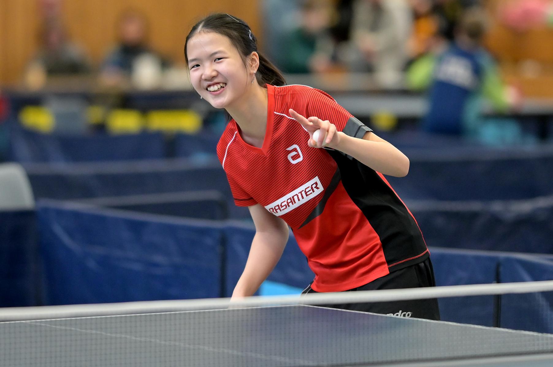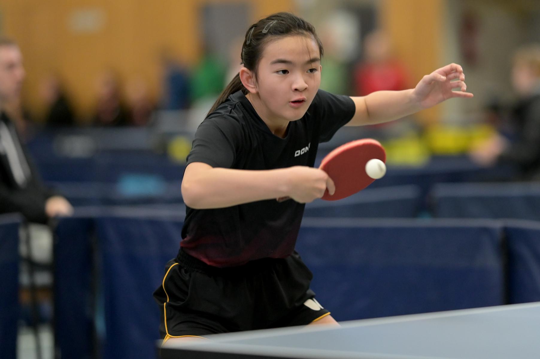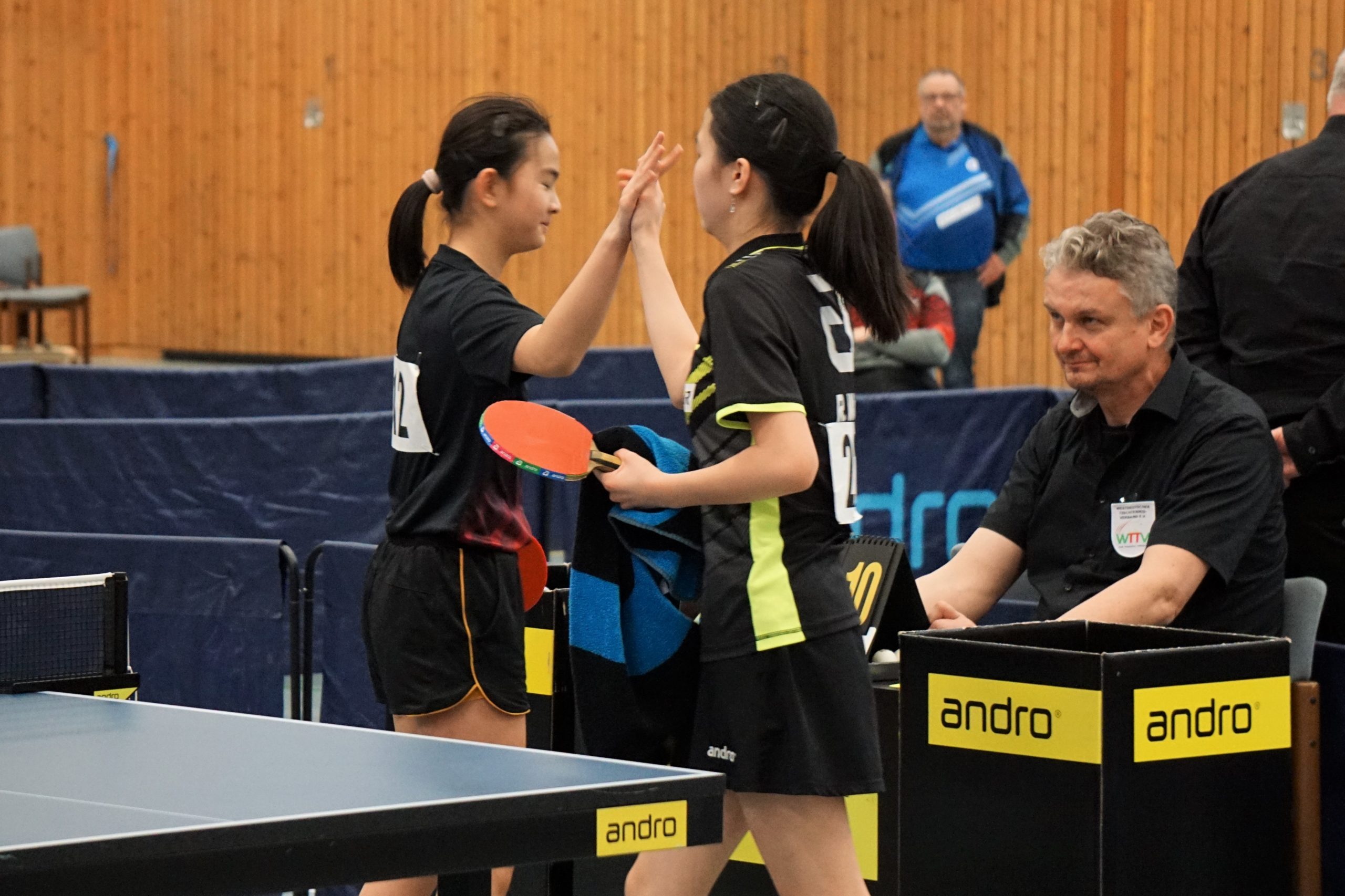 Gemeinsam standen Rhea und Ruoqi, durch eine 3:1-Erfolg gegen Greta Bögershausen und Marharyta Pavliuk, dann auch im Finale des Mädchen-Doppels gegen Sina Meens und Frieda Strugholz, die mit 3:0 gegen Ihlona Buhai und Sofiia Zhmudenko gewannen. In einem sehr ausgeglichenen und spannenden Spiel könnten sich am Ende Sina und Frieda mit 11:9 im Entscheidungssatz durchsetzen und den Doppelerfolg von Rhea bei diesen Westdeutschen vereiteln.