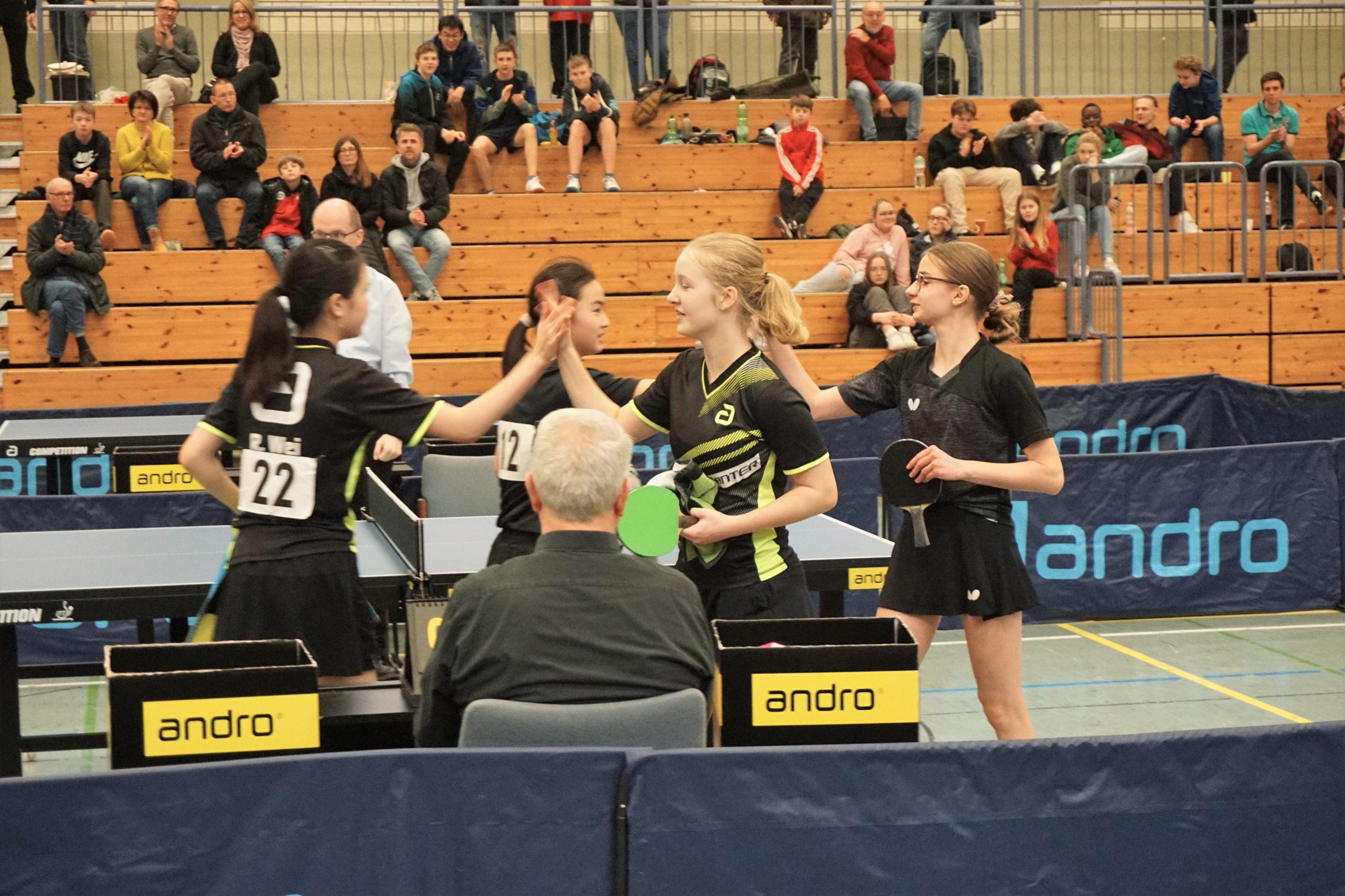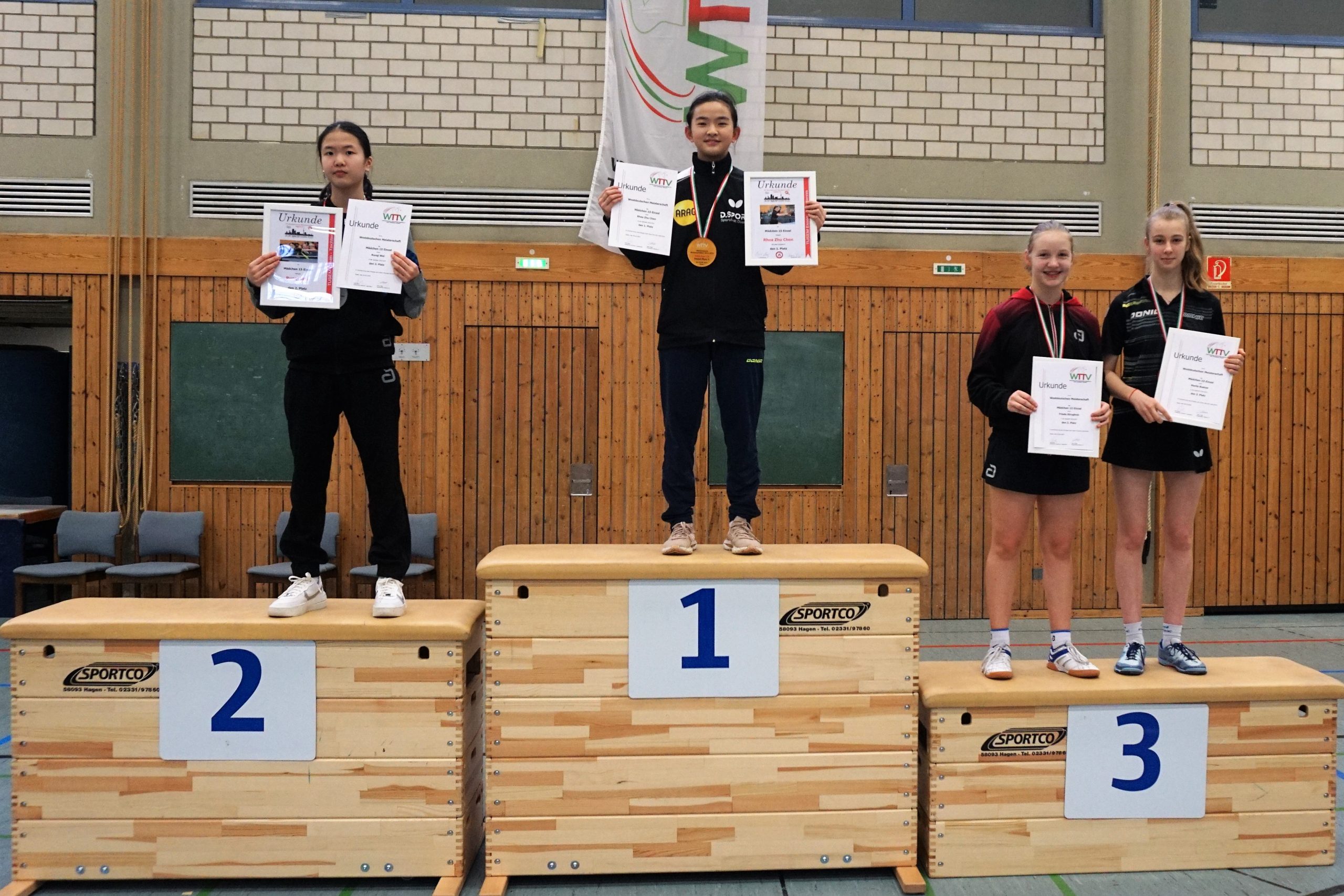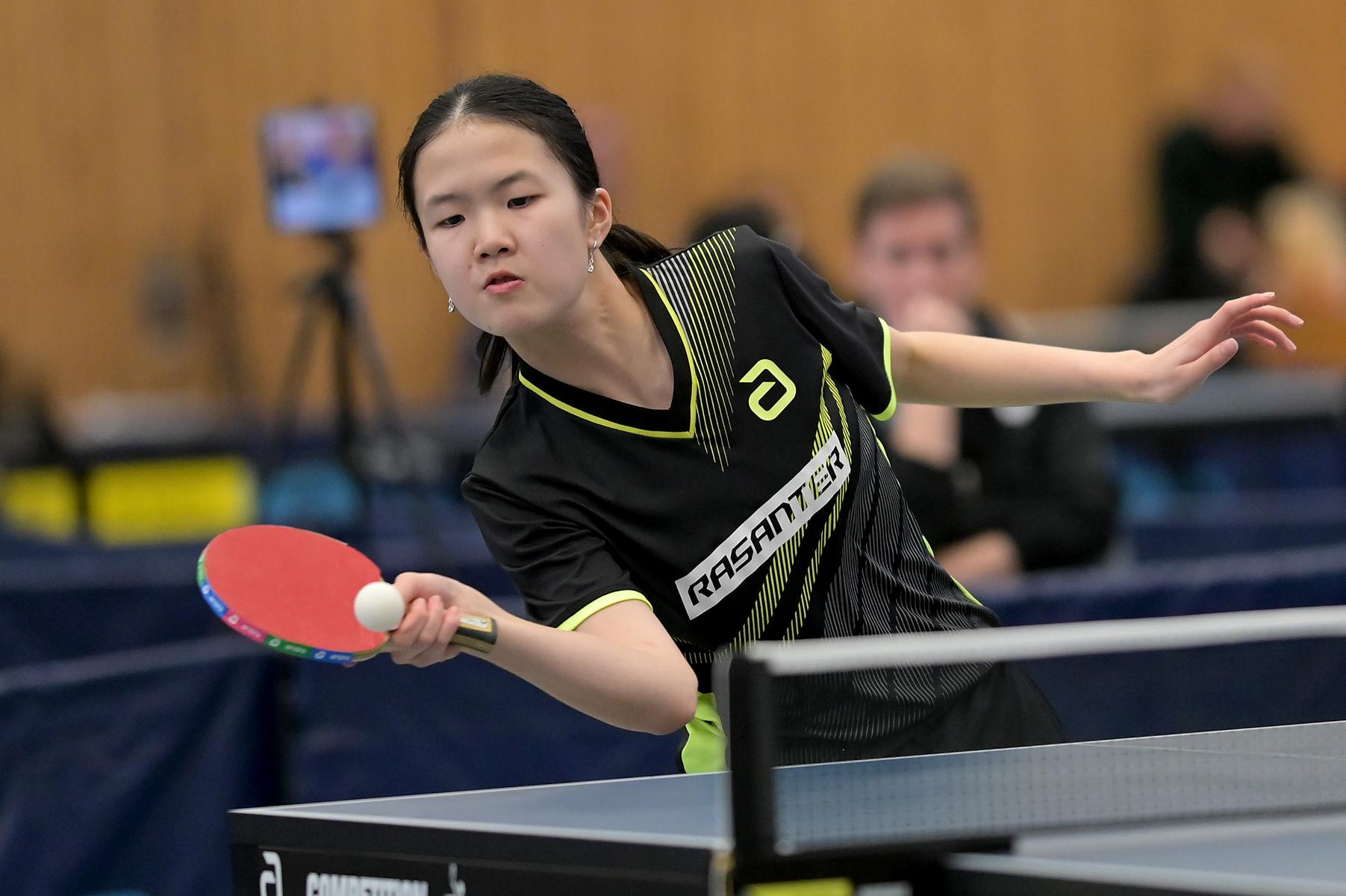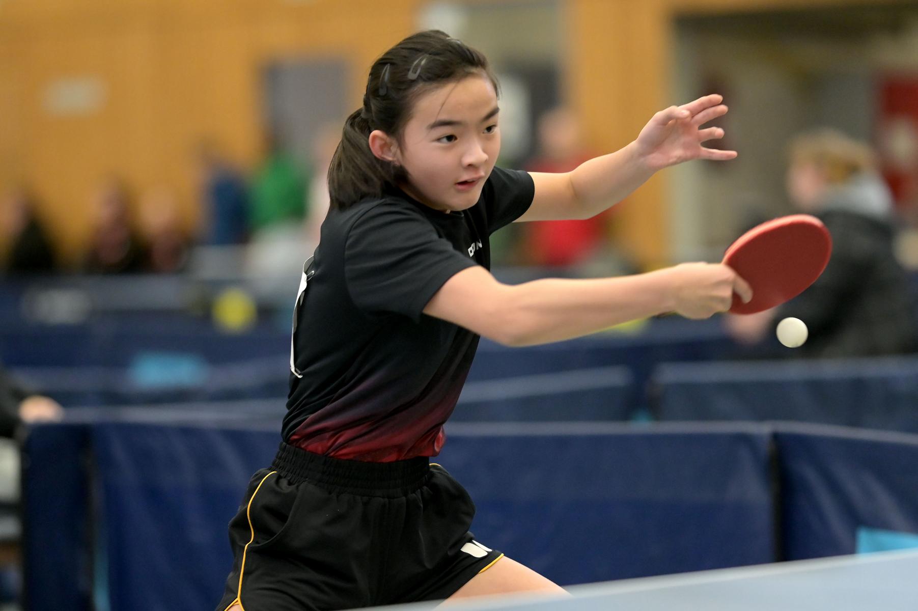 Gemeinsam standen Rhea und Ruoqi, durch eine 3:1-Erfolg gegen Greta Bögershausen und Marharyta Pavliuk, dann auch im Finale des Mädchen-Doppels gegen Sina Meens und Frieda Strugholz, die mit 3:0 gegen Ihlona Buhai und Sofiia Zhmudenko gewannen. In einem sehr ausgeglichenen und spannenden Spiel könnten sich am Ende Sina und Frieda mit 11:9 im Entscheidungssatz durchsetzen und den Doppelerfolg von Rhea bei diesen Westdeutschen vereiteln.