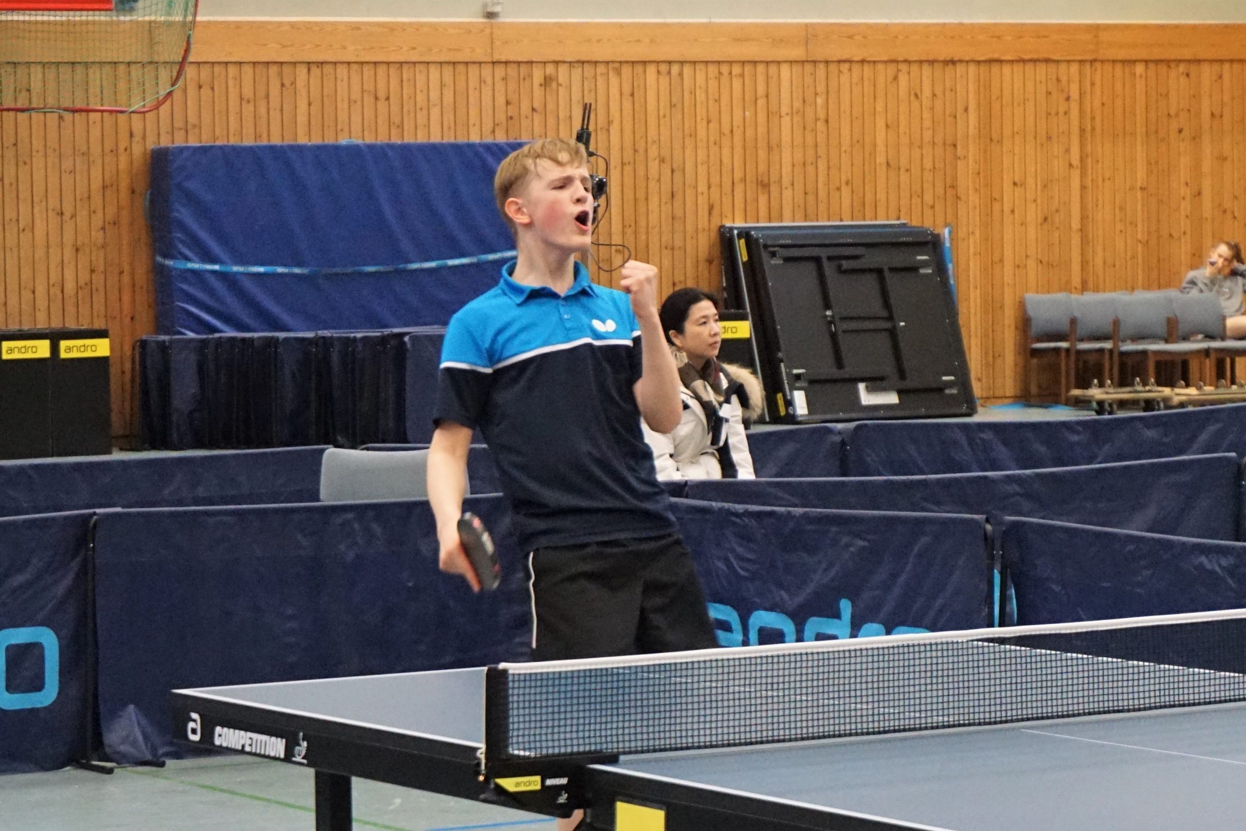 Friedrich spielte im Halbfinale sehr stark und ließ Nico beim 3:1-Sieg wenig Chancen das Blatt zu drehen. Das Spiel zwischen Alex und Johann begeisterte die zahlreichen Zuschauer in Essen. Viele lange Ballwechsel auf hohem Niveau in dem Fünfsatzspiel und am Ende konnte sich Johann über einen 3:2-Sieg freuen, nachdem er bereits mit 1:2 in Rückstand geriet.