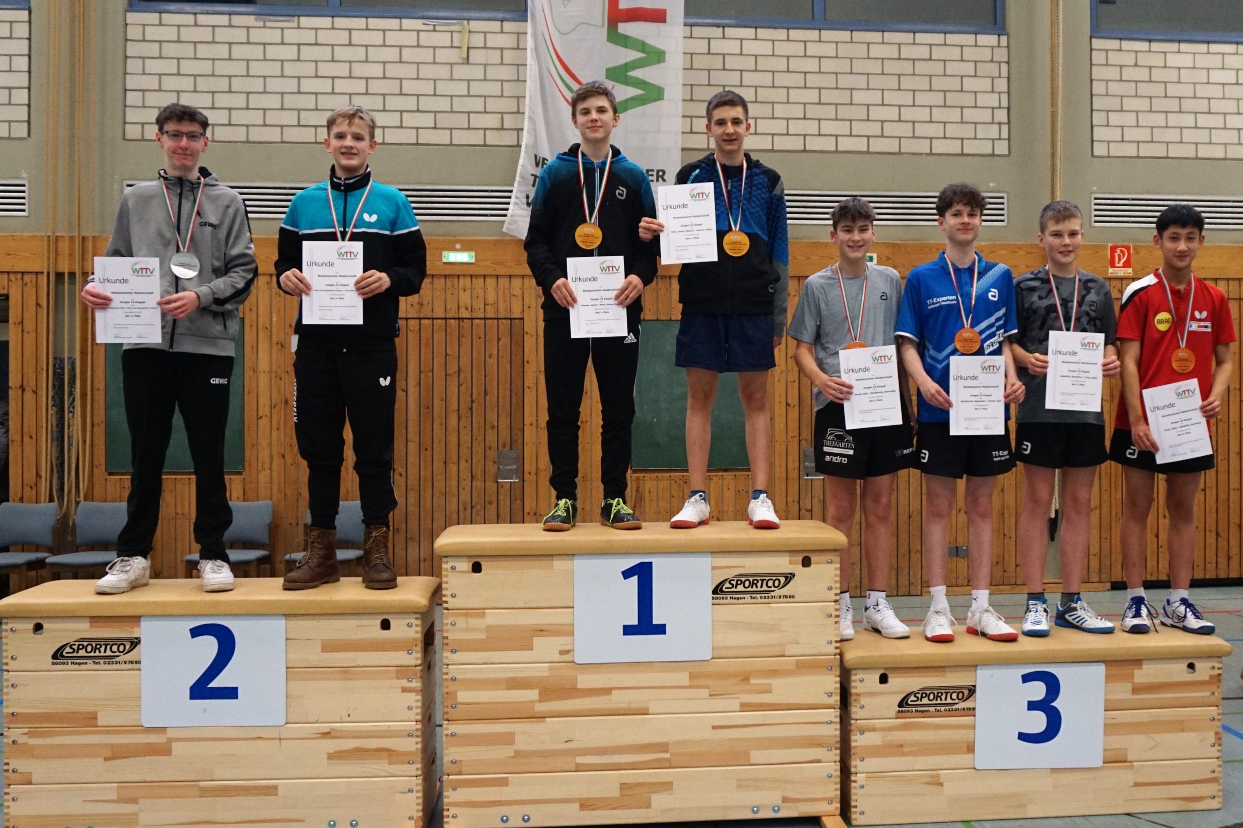 Bei den Jungen 15 verlief der Turnierverlauf sehr ähnlich. Auch hier standen mit Friedrich Kühn von Burgsdorff gegen Nico Thönnissen und Alexander Sahakiants gegen Johann Mahl die vier Favoriten im Halbfinale. Alle vier Jungs hatten sich bereits durch ihre guten nationalen Leistungen einen Startplatz für die Deutschen Meisterschaften U15 gesichert, sich es sich aber trotzdem nicht nehmen lassen, um den Titel des Westdeutschen Meisters zu kämpfen. Dafür schon einmal großen Respekt und ein herzliches Dankeschön!