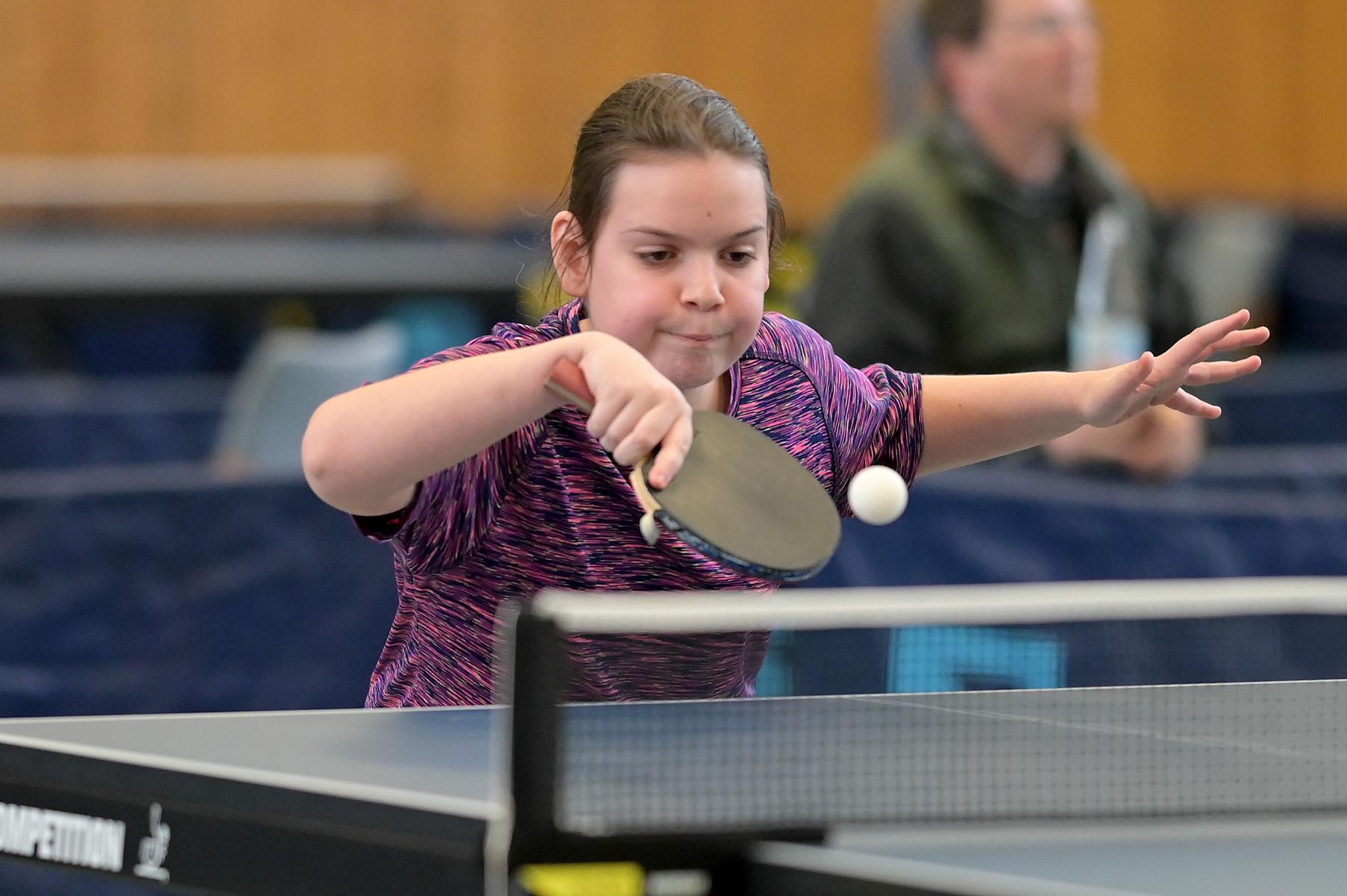 Hier entwickelte sich das erwartet knappe Spiel der beiden Freundinnen. Alle Sätze wurden lediglich mit zwei Punkten Unterschied entschieden und Rhea hatte an diesem Tag mit einem 11:9 11:9 9:11 und 12:10 die Nase vorn und holte sich ihren ersten Westdeutschen Einzeltitel.