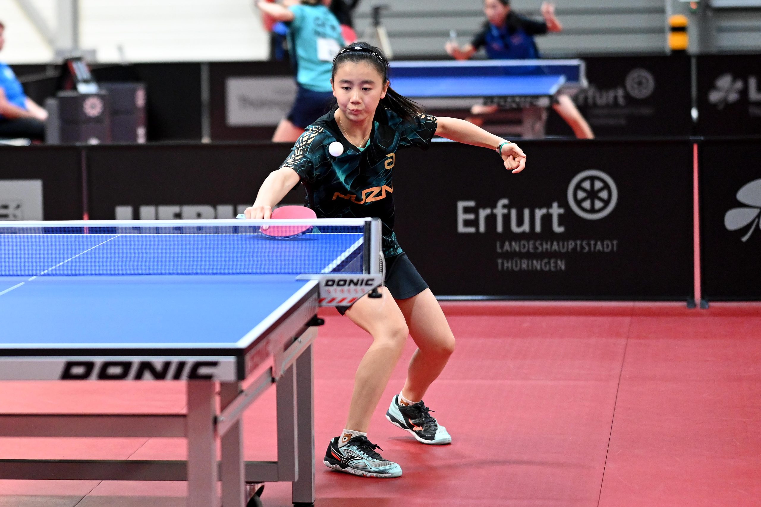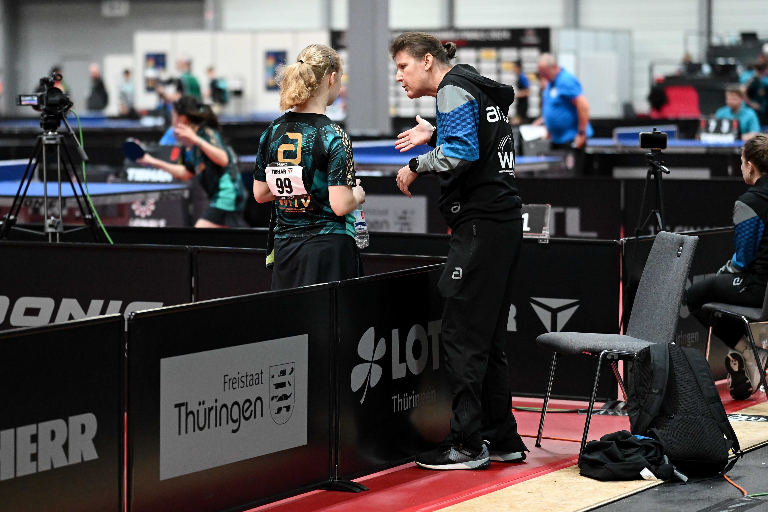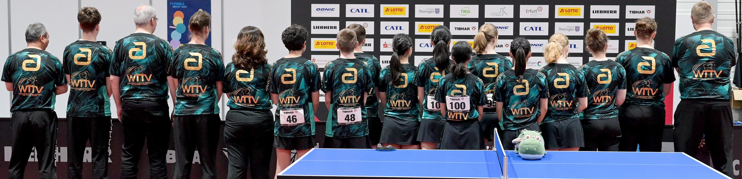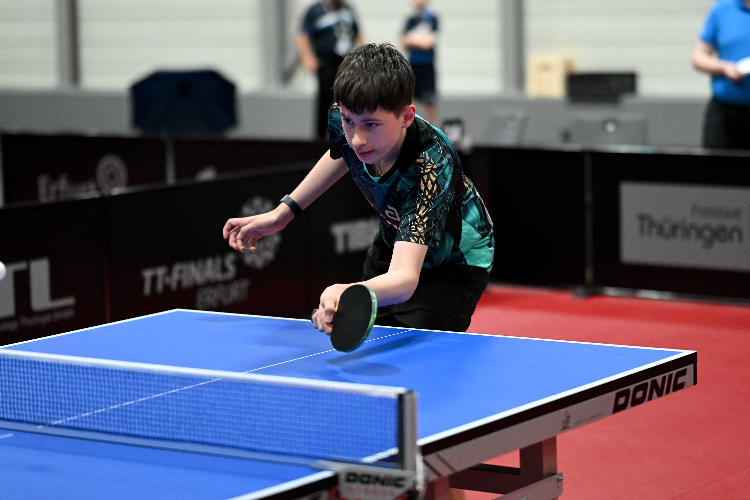 Nach dem sensationellem Ergebnis der Jugend 19 bei den TT-Finals in Erfurt starteten ab Freitagnachmittag mit Mariia Bodnar (DJK BW Annen), Greta Bögershausen (Borussia Düsseldorf), Rhea Zhu Chen (Borussia Düsseldorf), Emma Li (Borussia Düsseldorf), Frida Strugholz (TTC DJK Bad Westernkotten), Linyun Wei (TG Neuss) und Ruoqi Wei (TG Neuss) sieben Mädchen und fünf Jungen in das Turnier der Jugend 15.