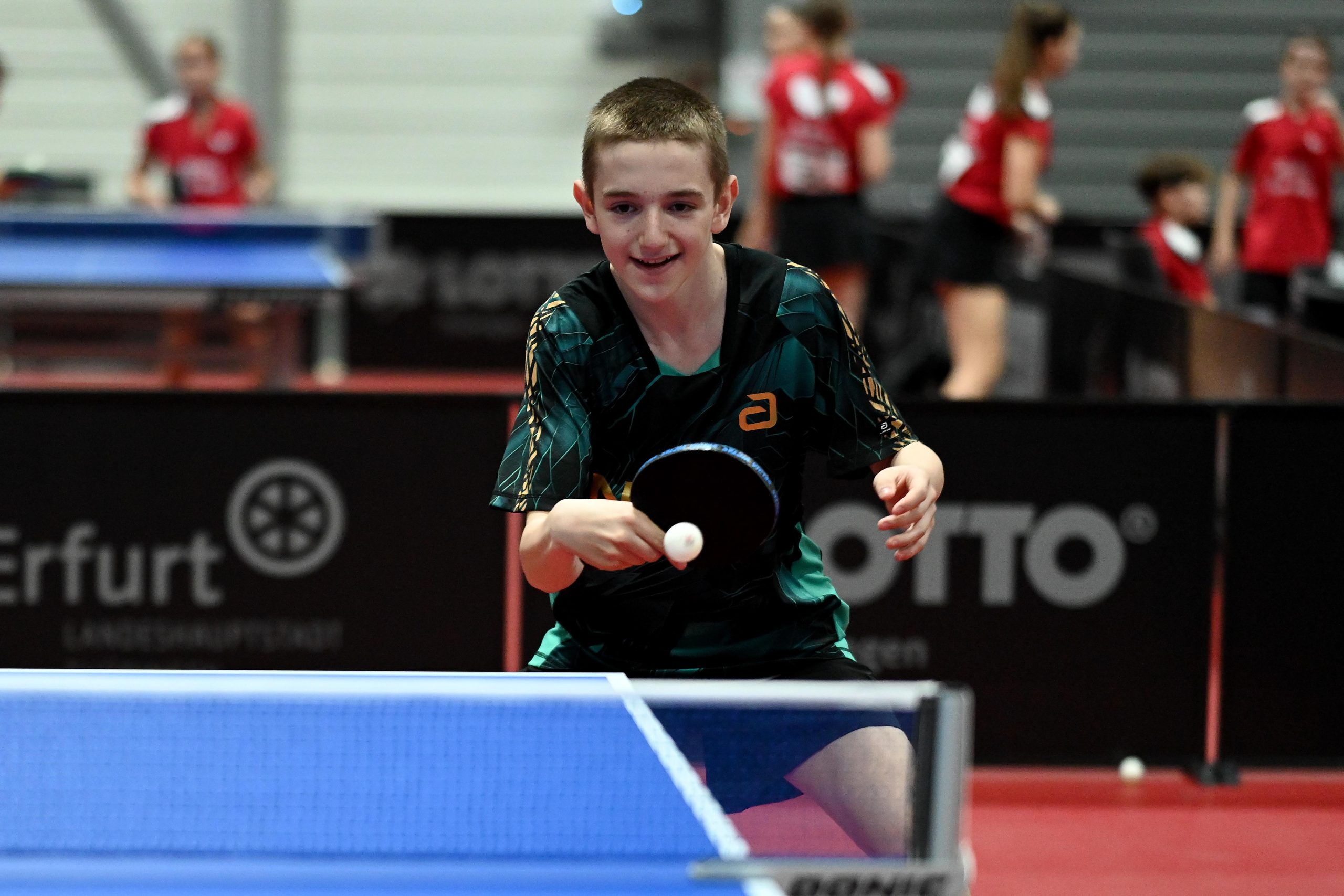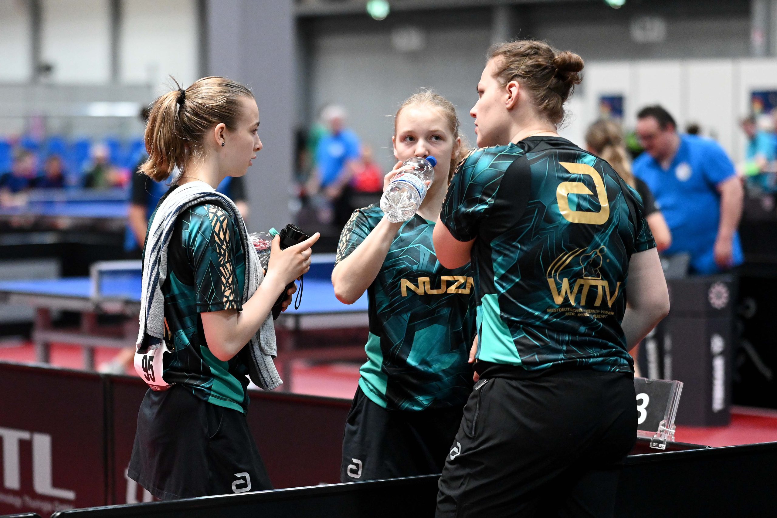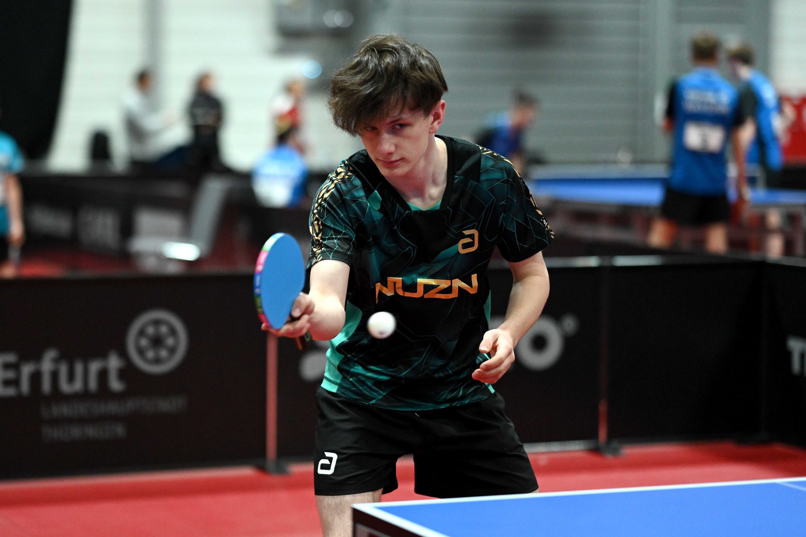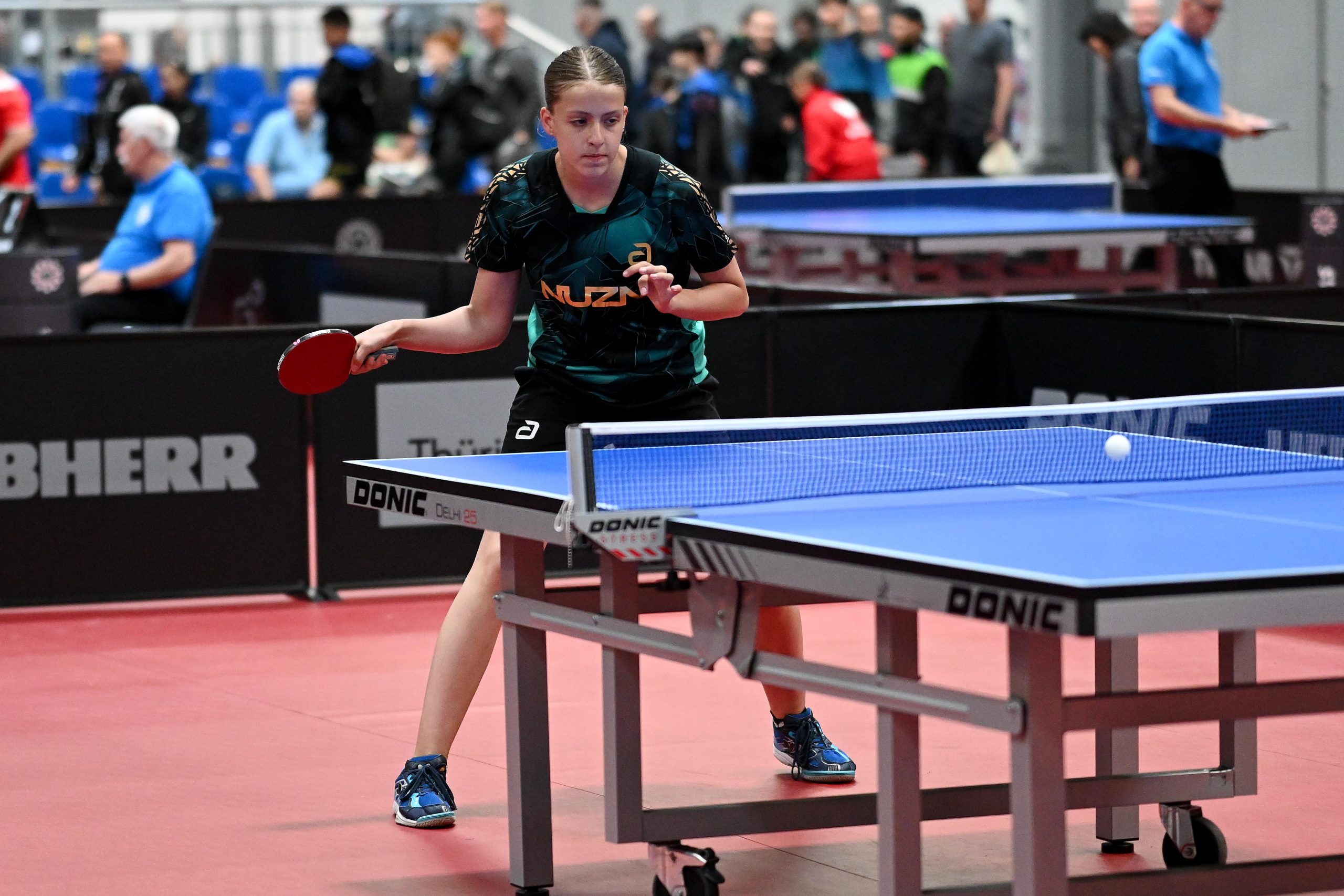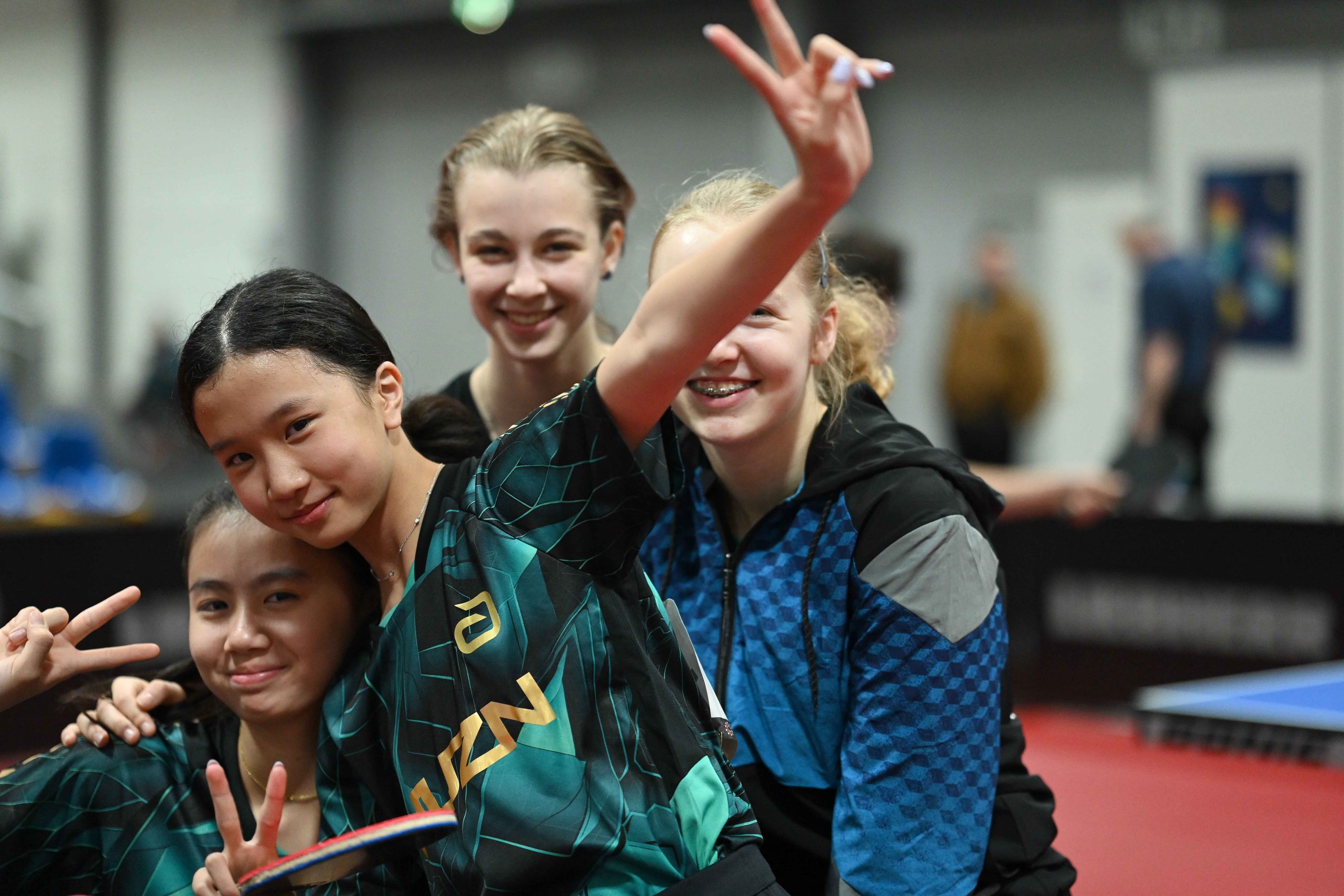 Nach dem sensationellem Ergebnis der Jugend 19 bei den TT-Finals in Erfurt starteten ab Freitagnachmittag mit Mariia Bodnar (DJK BW Annen), Greta Bögershausen (Borussia Düsseldorf), Rhea Zhu Chen (Borussia Düsseldorf), Emma Li (Borussia Düsseldorf), Frida Strugholz (TTC DJK Bad Westernkotten), Linyun Wei (TG Neuss) und Ruoqi Wei (TG Neuss) sieben Mädchen und fünf Jungen in das Turnier der Jugend 15.
