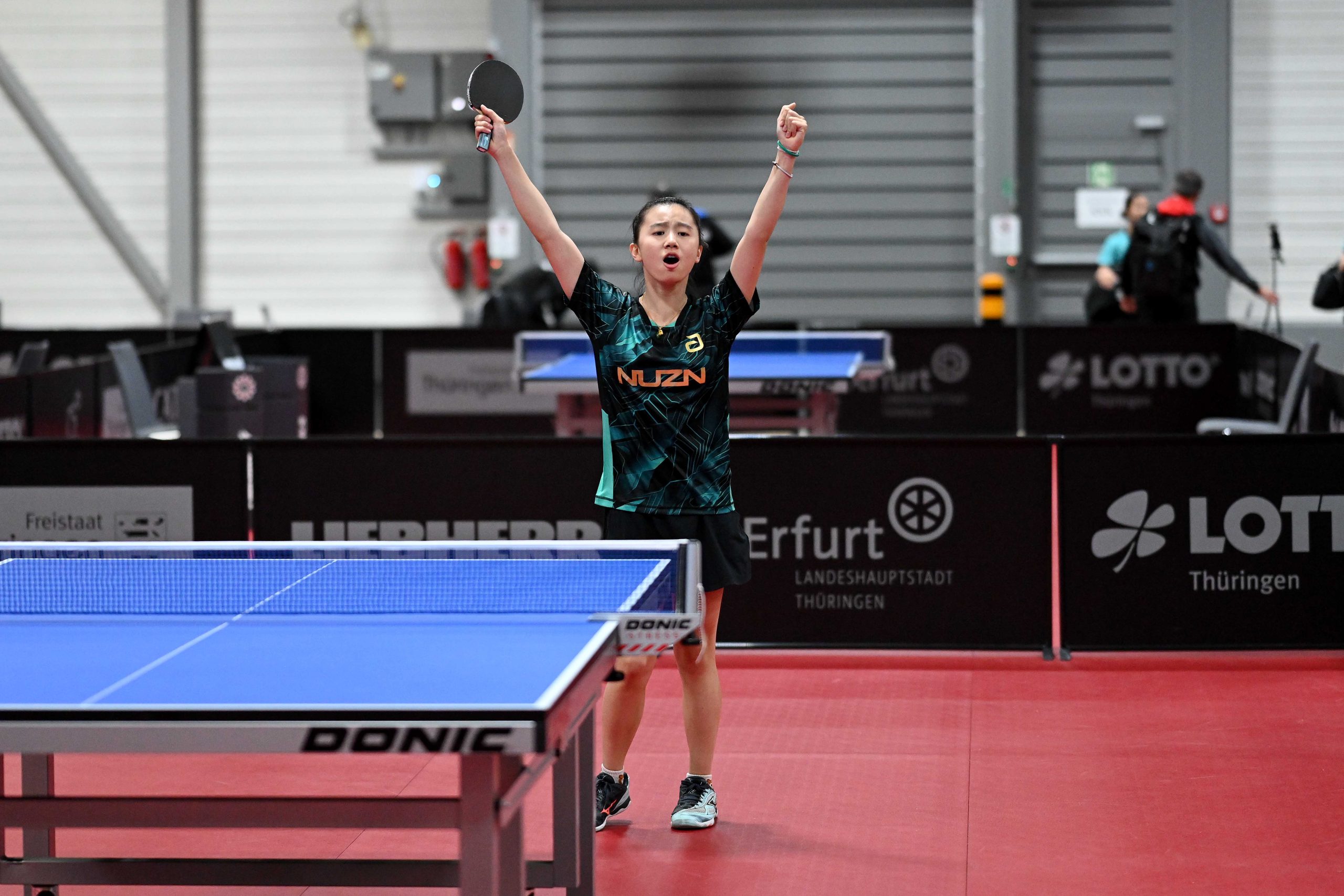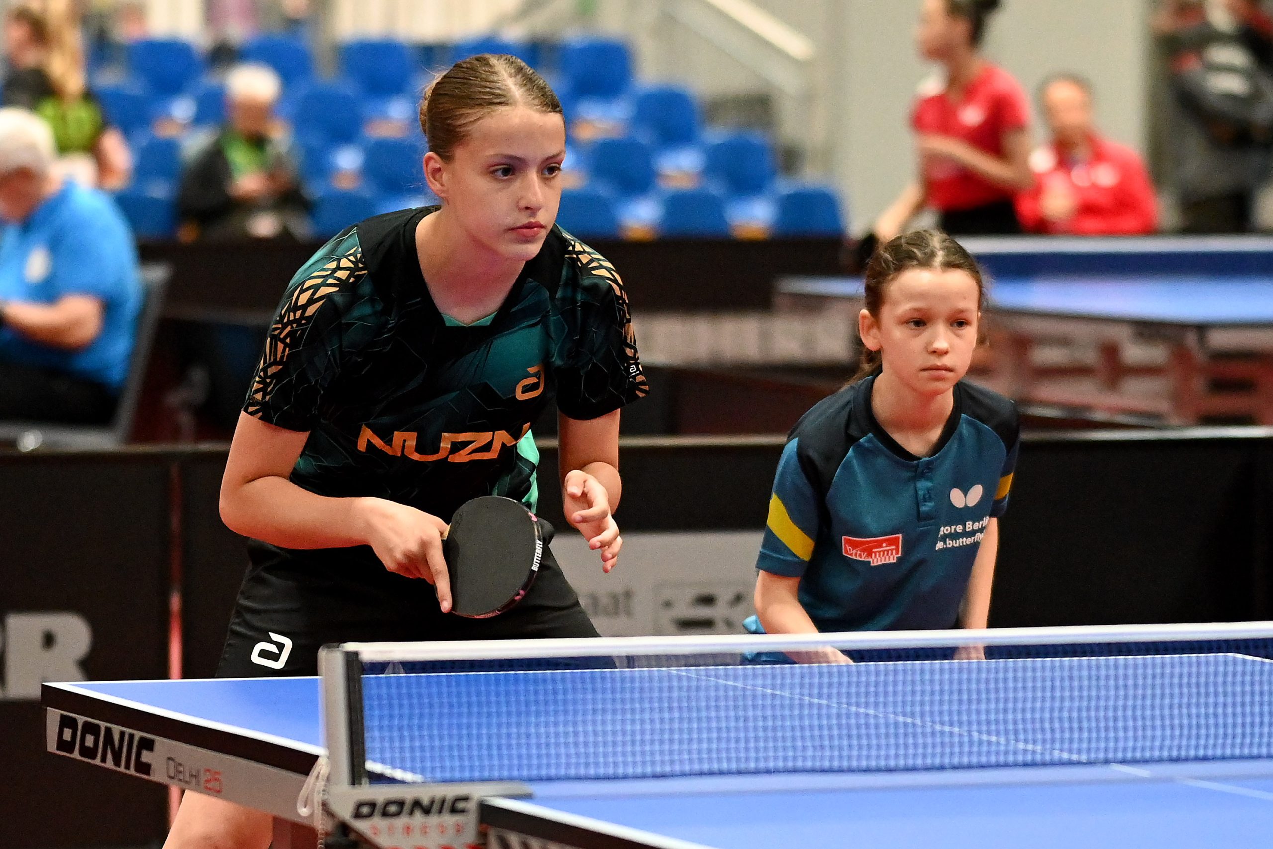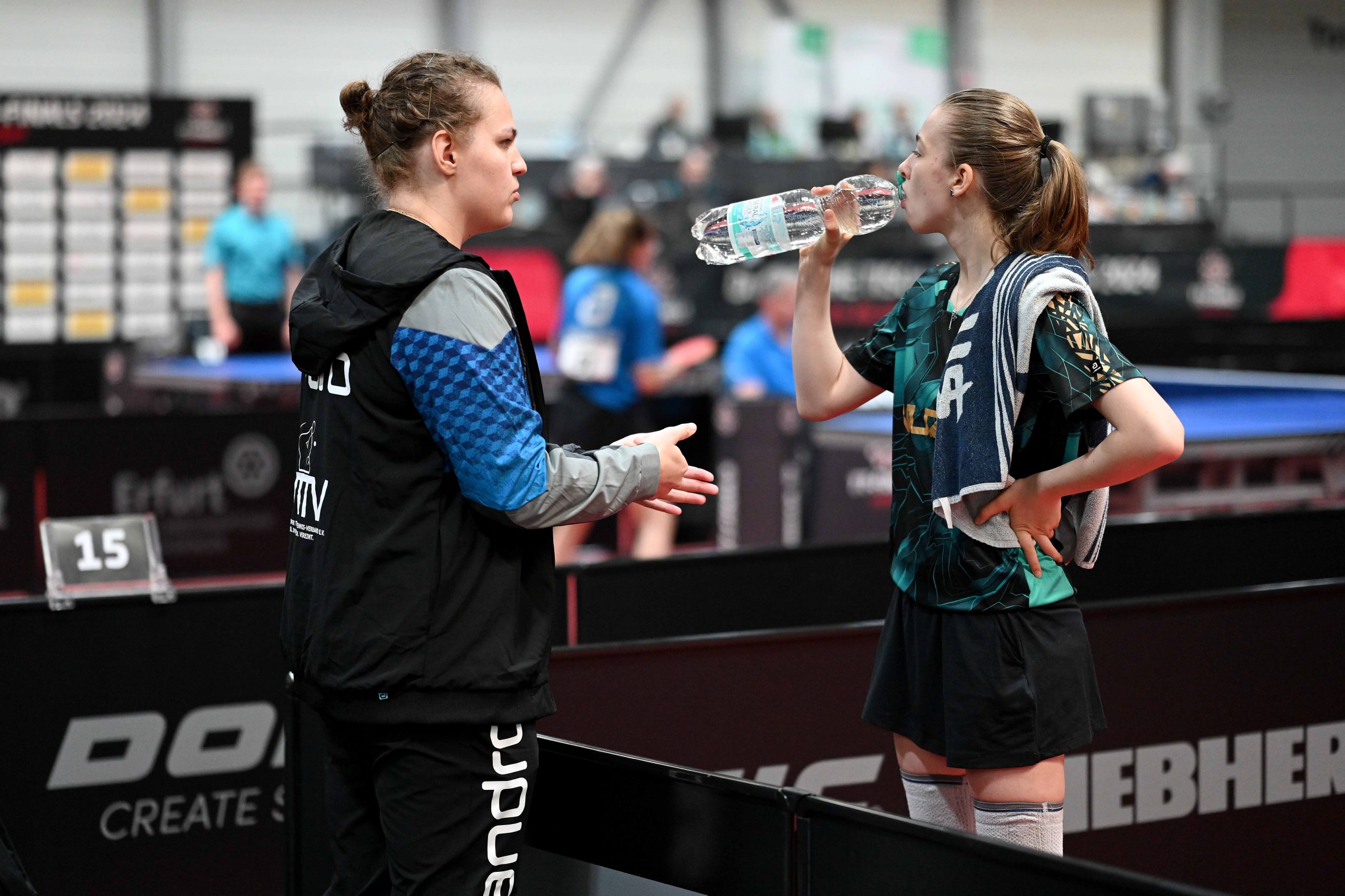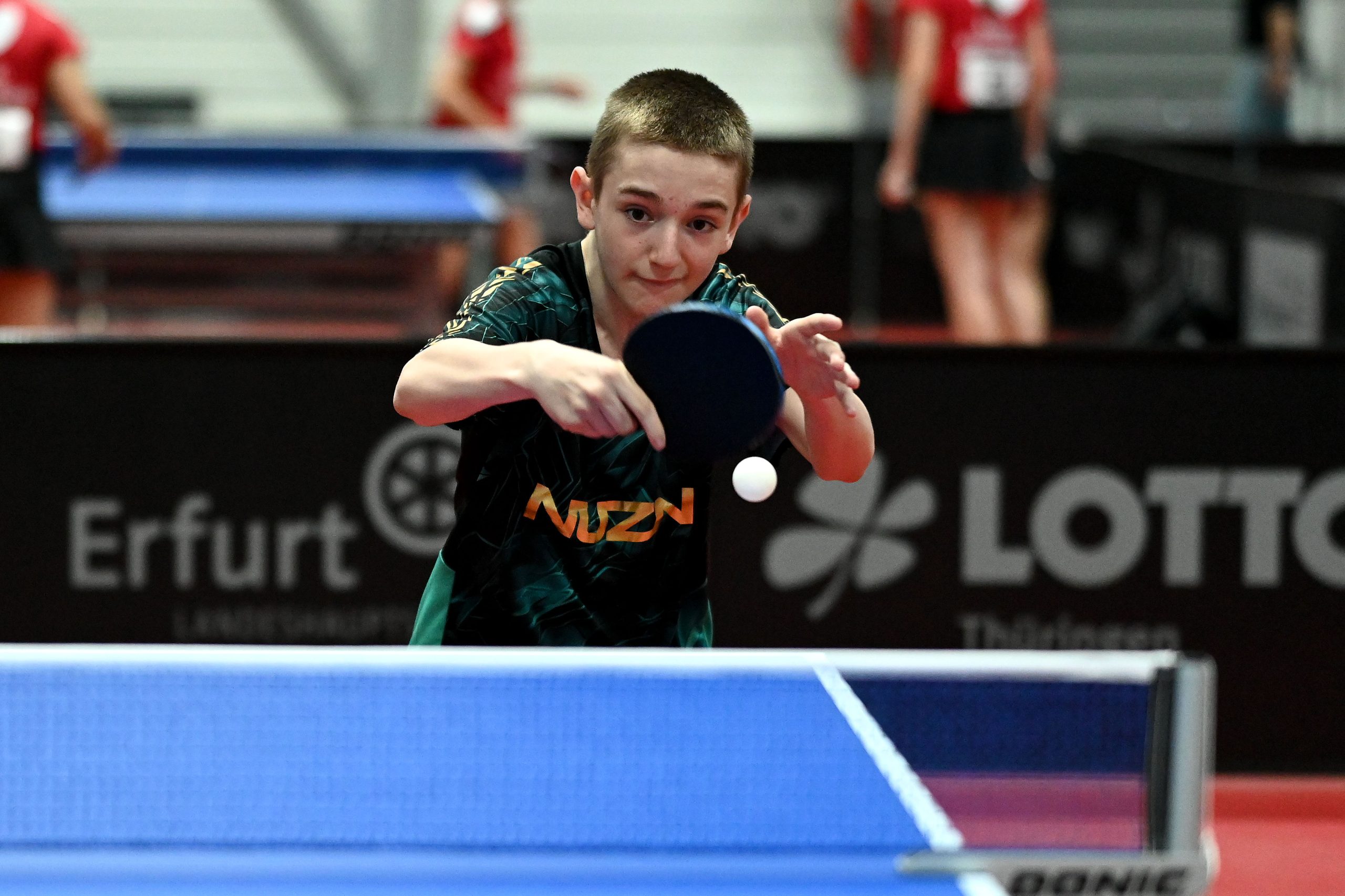 Nach dem sensationellem Ergebnis der Jugend 19 bei den TT-Finals in Erfurt starteten ab Freitagnachmittag mit Mariia Bodnar (DJK BW Annen), Greta Bögershausen (Borussia Düsseldorf), Rhea Zhu Chen (Borussia Düsseldorf), Emma Li (Borussia Düsseldorf), Frida Strugholz (TTC DJK Bad Westernkotten), Linyun Wei (TG Neuss) und Ruoqi Wei (TG Neuss) sieben Mädchen und fünf Jungen in das Turnier der Jugend 15.