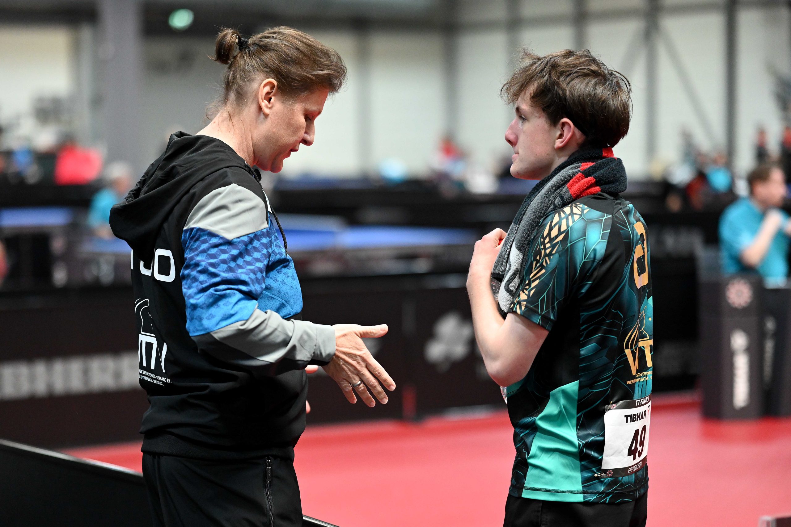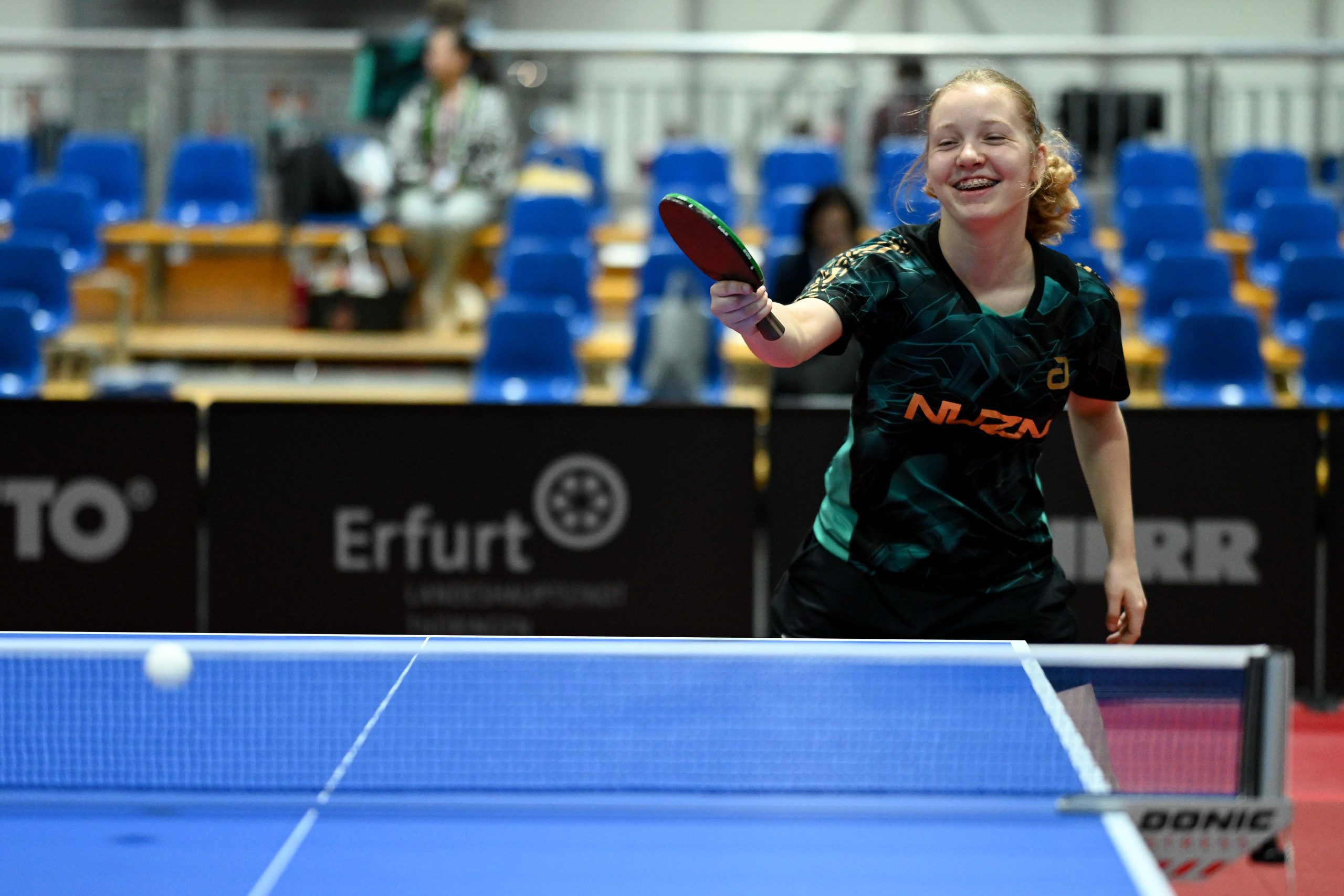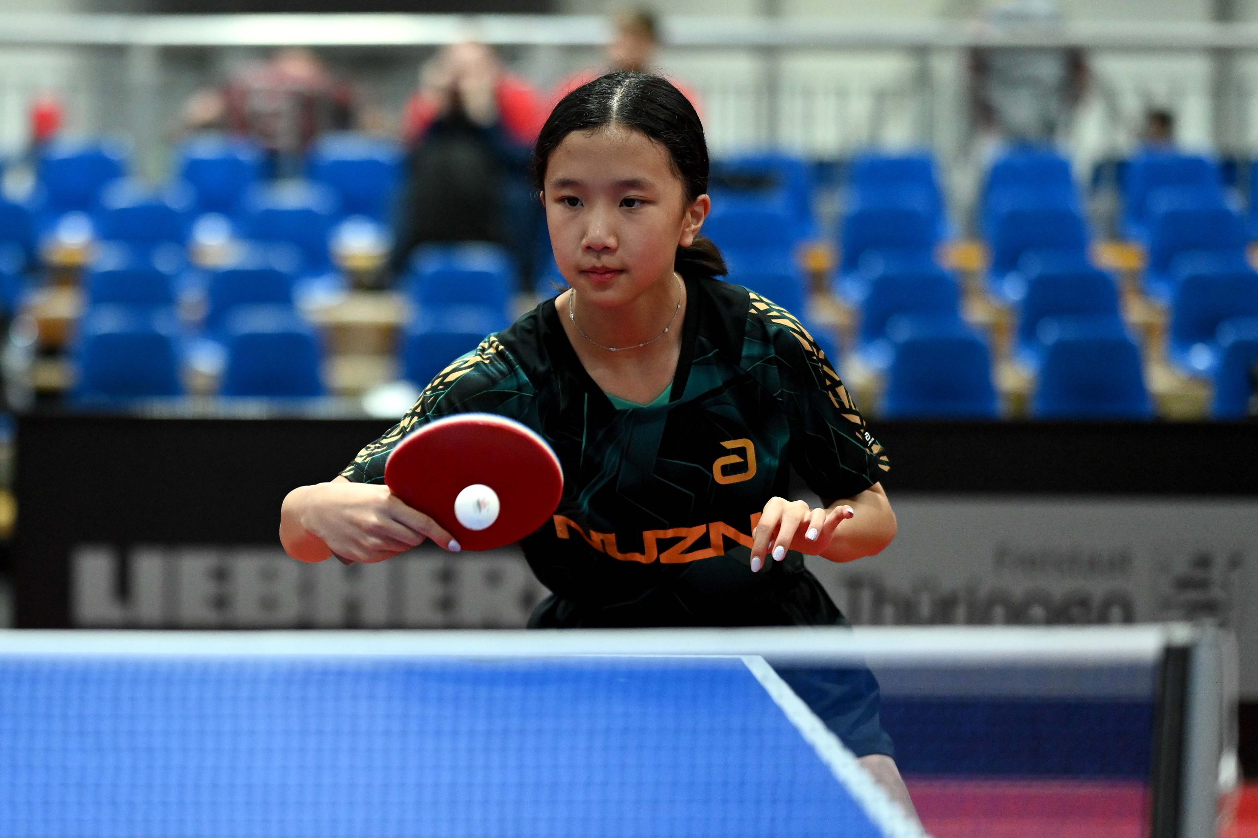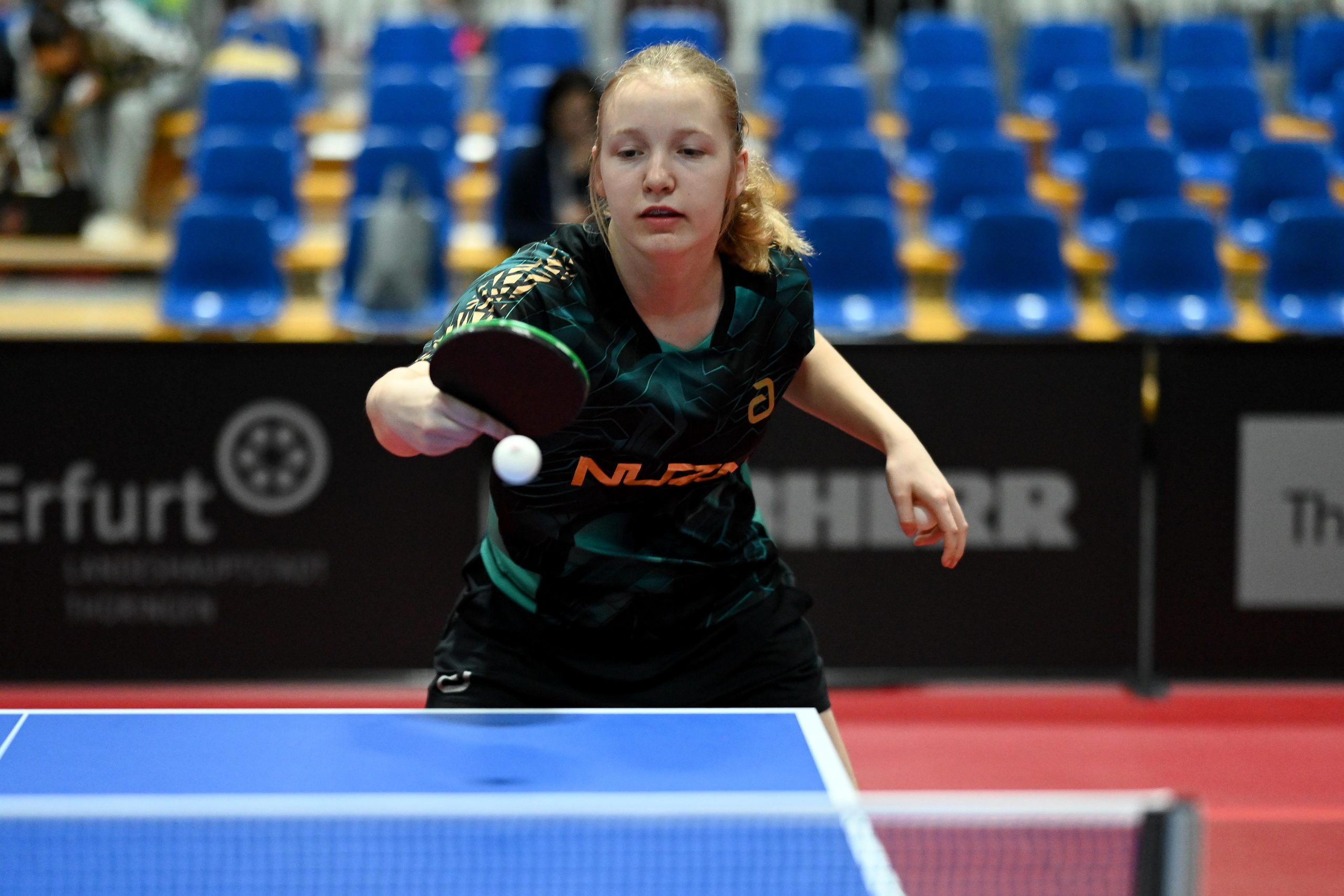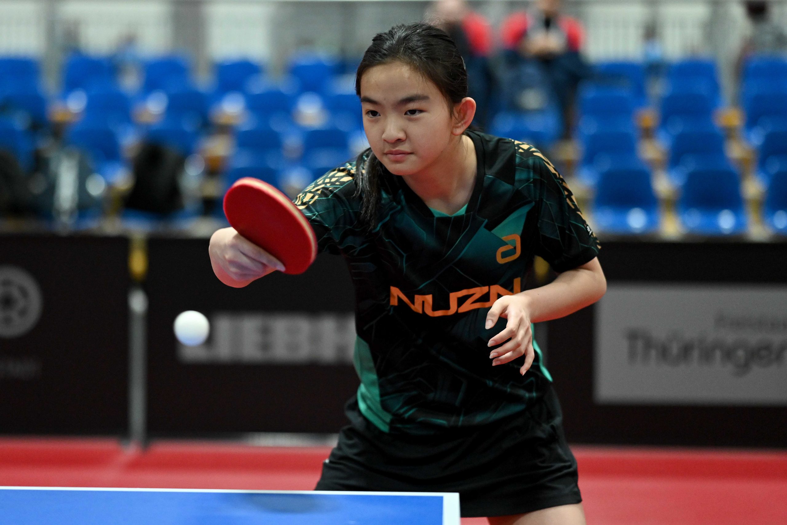 Nach dem sensationellem Ergebnis der Jugend 19 bei den TT-Finals in Erfurt starteten ab Freitagnachmittag mit Mariia Bodnar (DJK BW Annen), Greta Bögershausen (Borussia Düsseldorf), Rhea Zhu Chen (Borussia Düsseldorf), Emma Li (Borussia Düsseldorf), Frida Strugholz (TTC DJK Bad Westernkotten), Linyun Wei (TG Neuss) und Ruoqi Wei (TG Neuss) sieben Mädchen und fünf Jungen in das Turnier der Jugend 15.