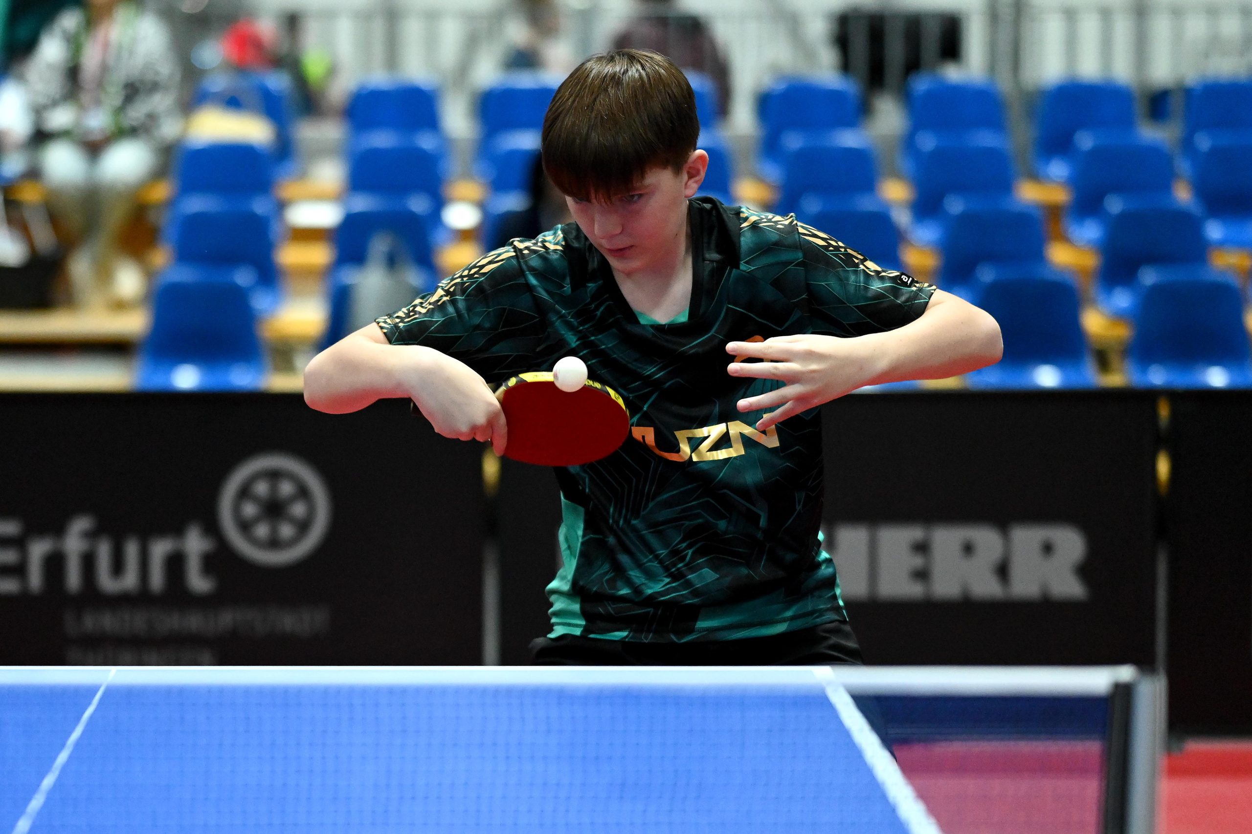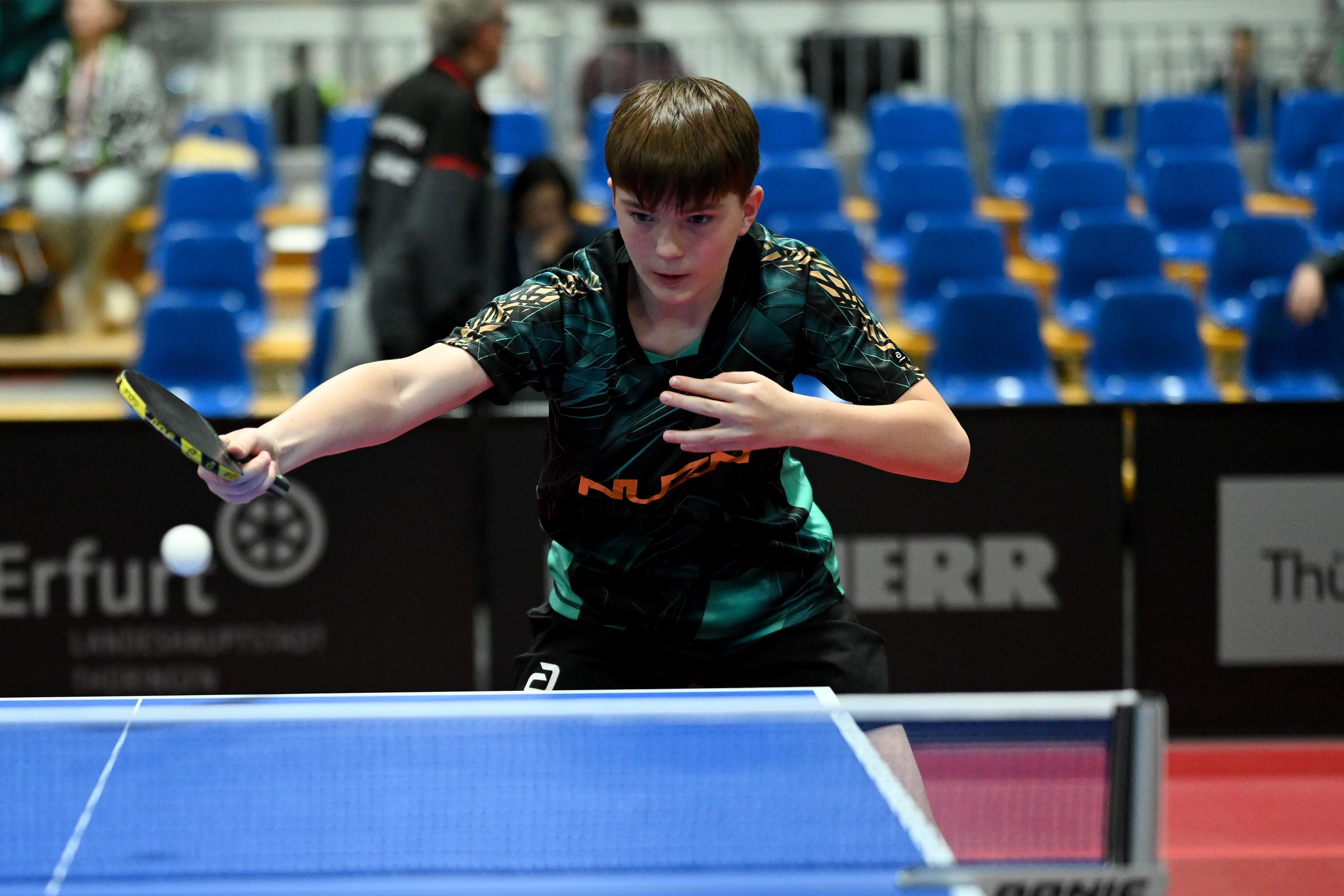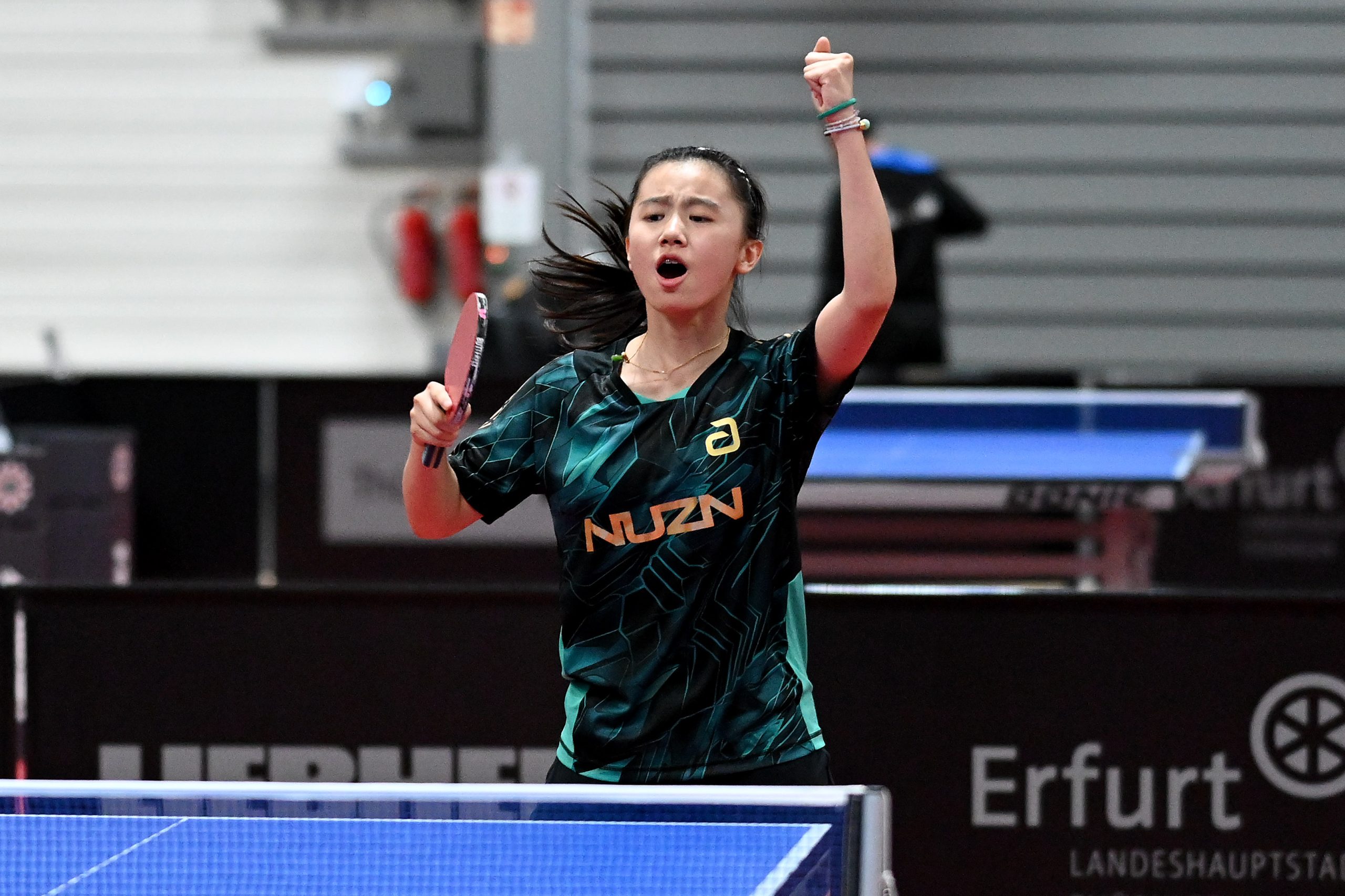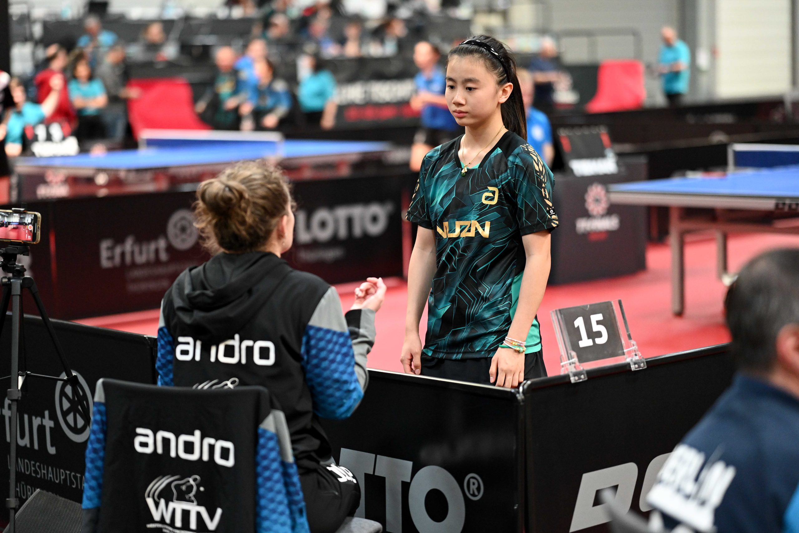 Nach dem sensationellem Ergebnis der Jugend 19 bei den TT-Finals in Erfurt starteten ab Freitagnachmittag mit Mariia Bodnar (DJK BW Annen), Greta Bögershausen (Borussia Düsseldorf), Rhea Zhu Chen (Borussia Düsseldorf), Emma Li (Borussia Düsseldorf), Frida Strugholz (TTC DJK Bad Westernkotten), Linyun Wei (TG Neuss) und Ruoqi Wei (TG Neuss) sieben Mädchen und fünf Jungen in das Turnier der Jugend 15.