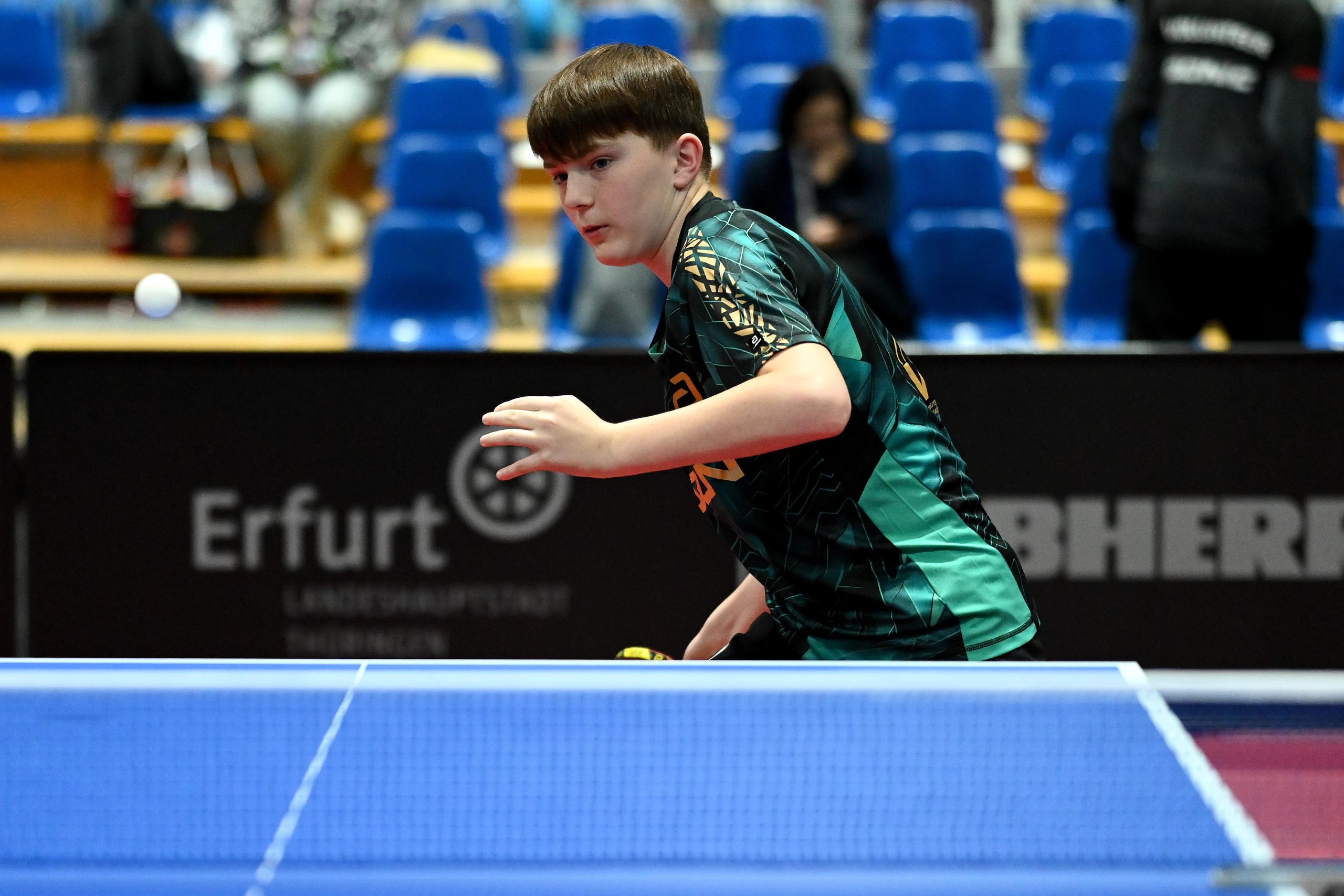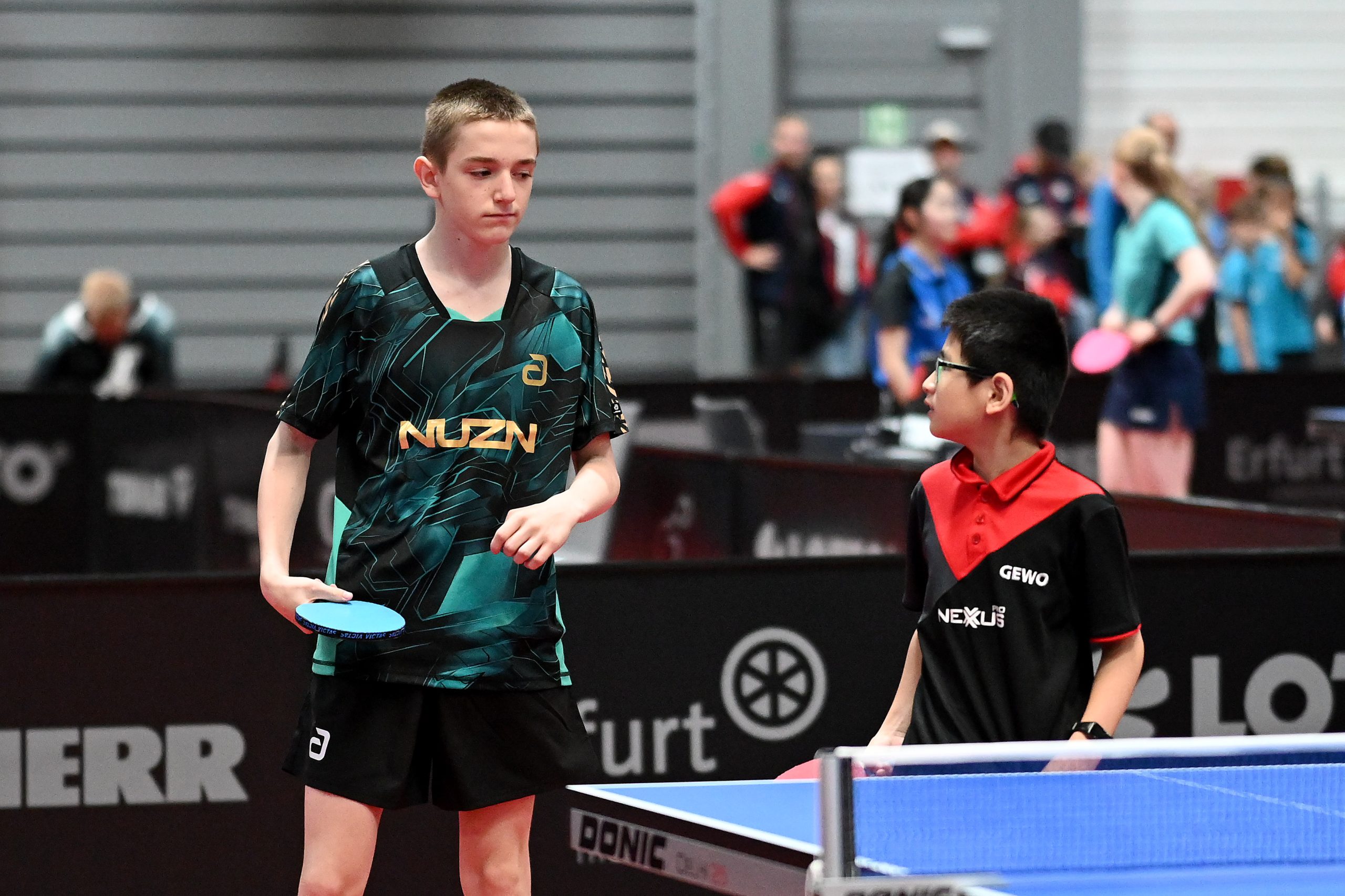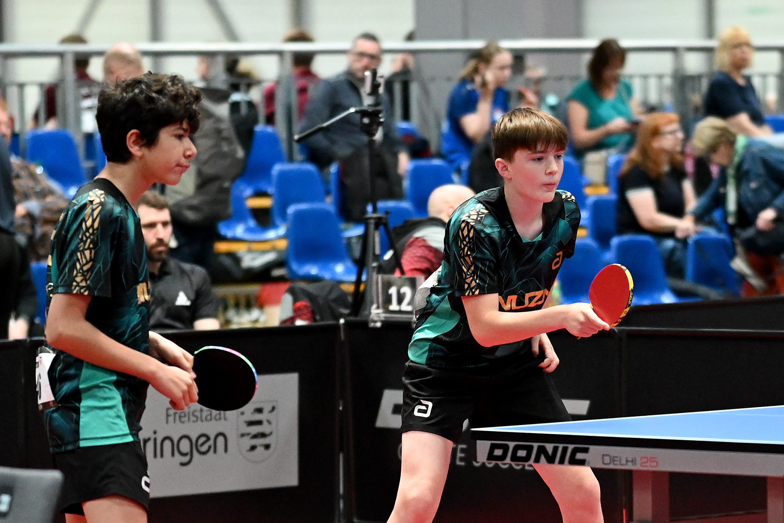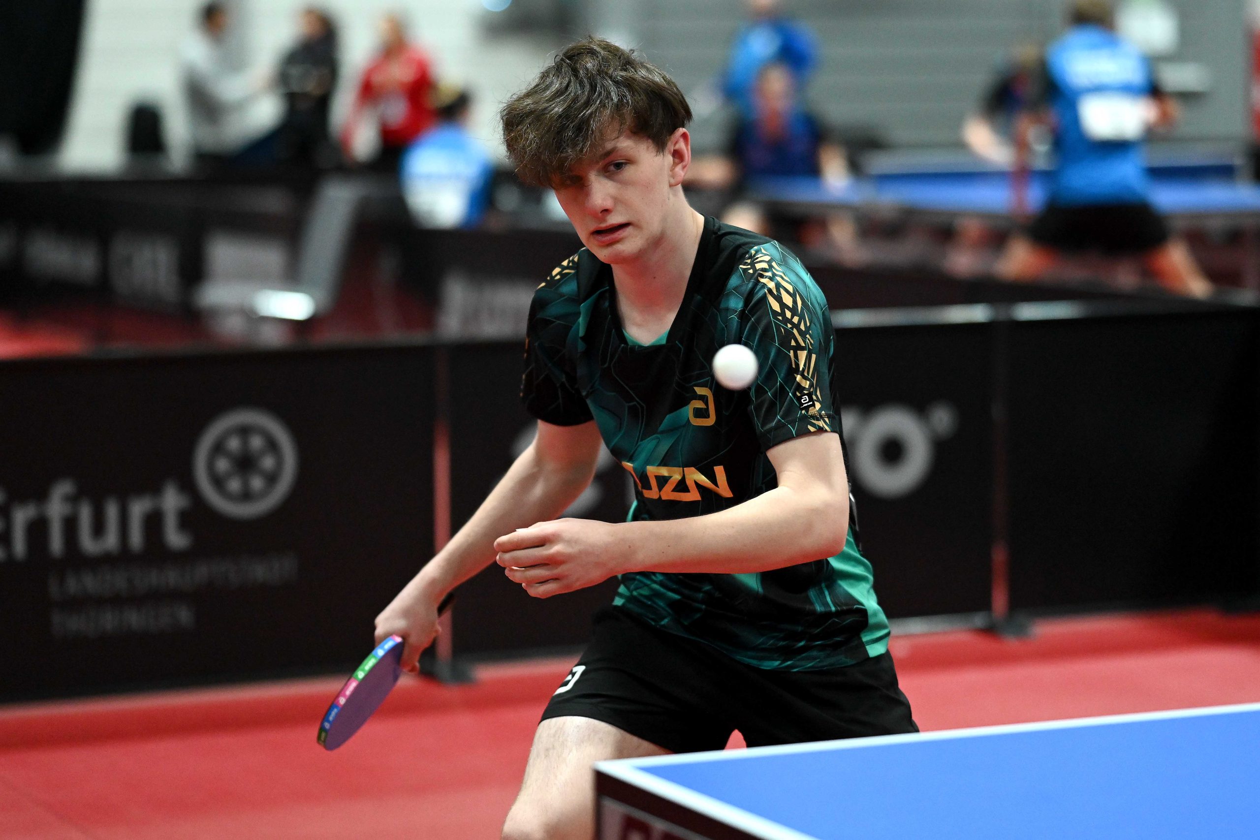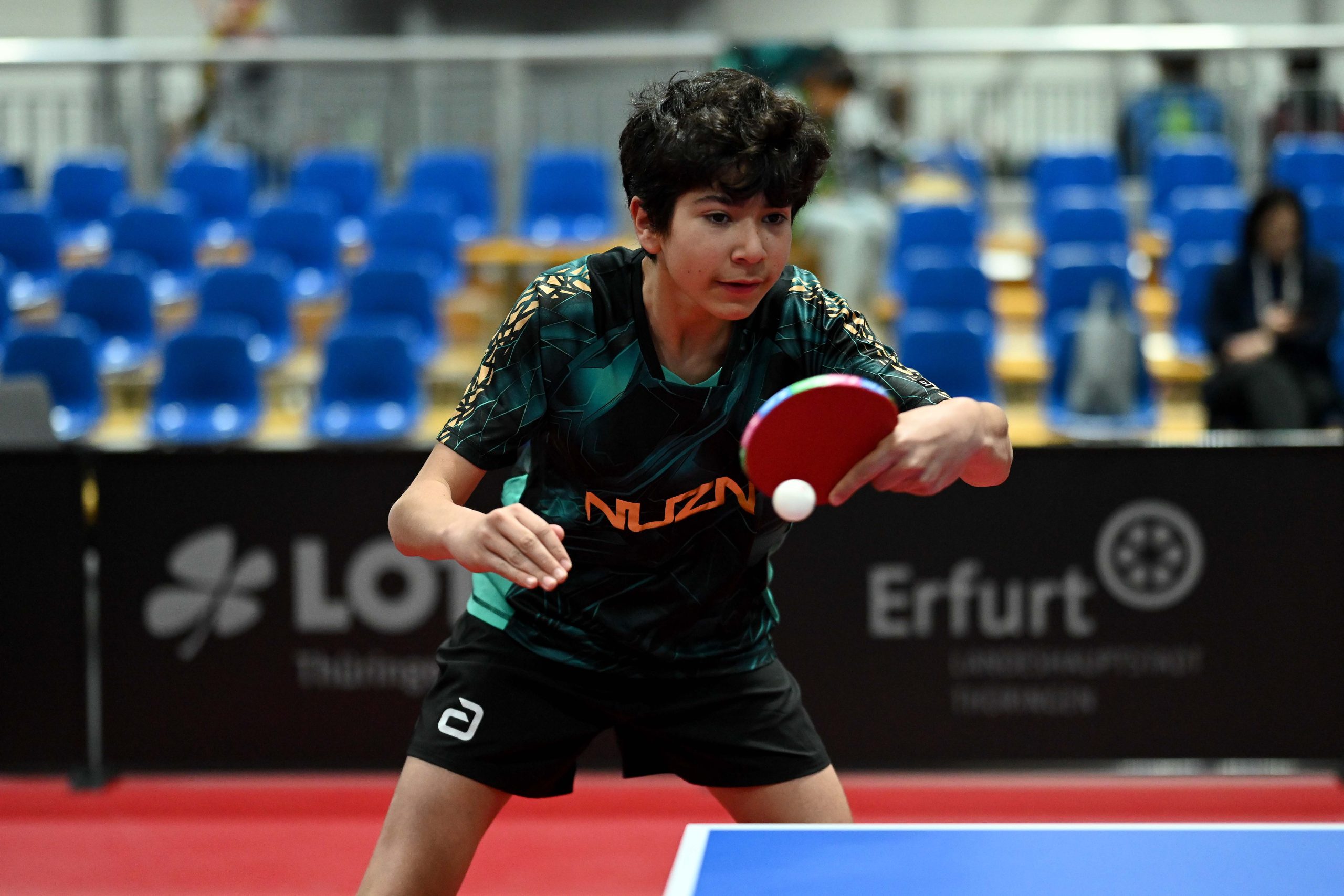 Nach dem sensationellem Ergebnis der Jugend 19 bei den TT-Finals in Erfurt starteten ab Freitagnachmittag mit Mariia Bodnar (DJK BW Annen), Greta Bögershausen (Borussia Düsseldorf), Rhea Zhu Chen (Borussia Düsseldorf), Emma Li (Borussia Düsseldorf), Frida Strugholz (TTC DJK Bad Westernkotten), Linyun Wei (TG Neuss) und Ruoqi Wei (TG Neuss) sieben Mädchen und fünf Jungen in das Turnier der Jugend 15.