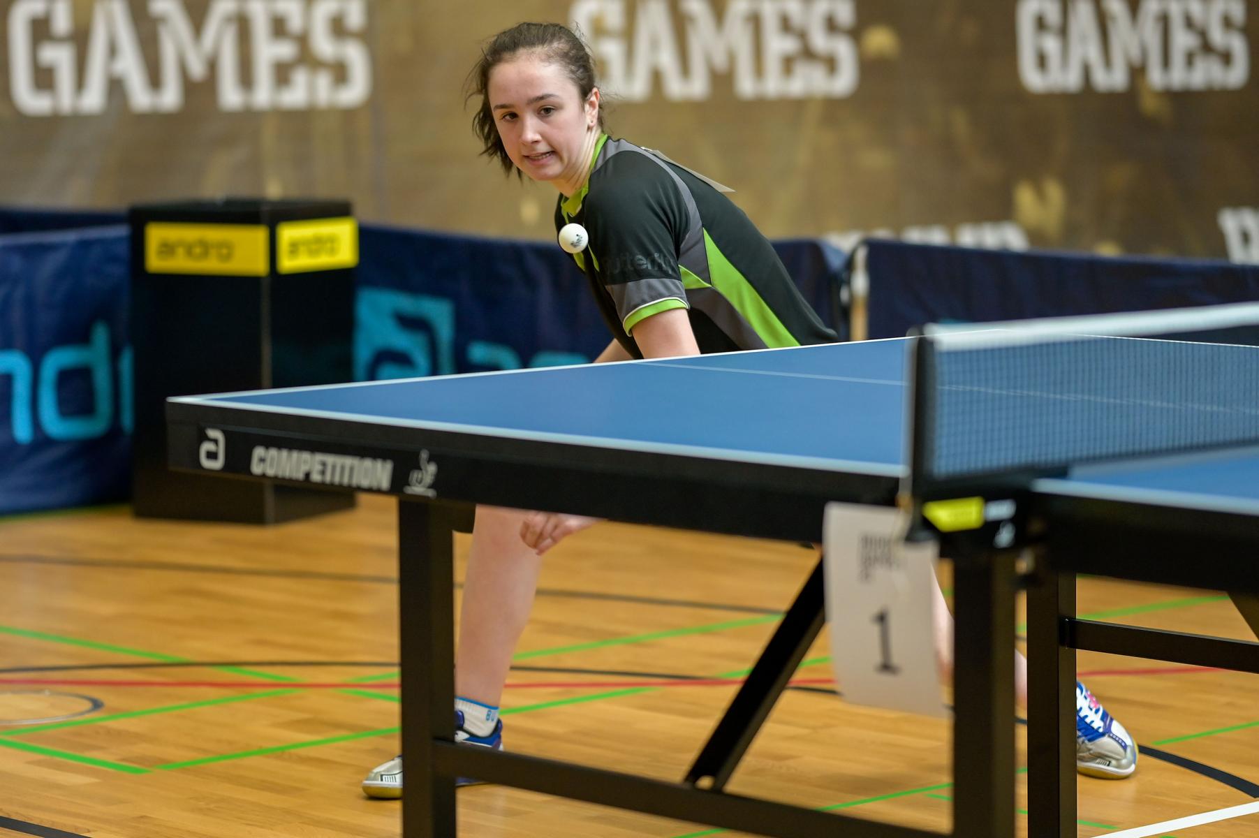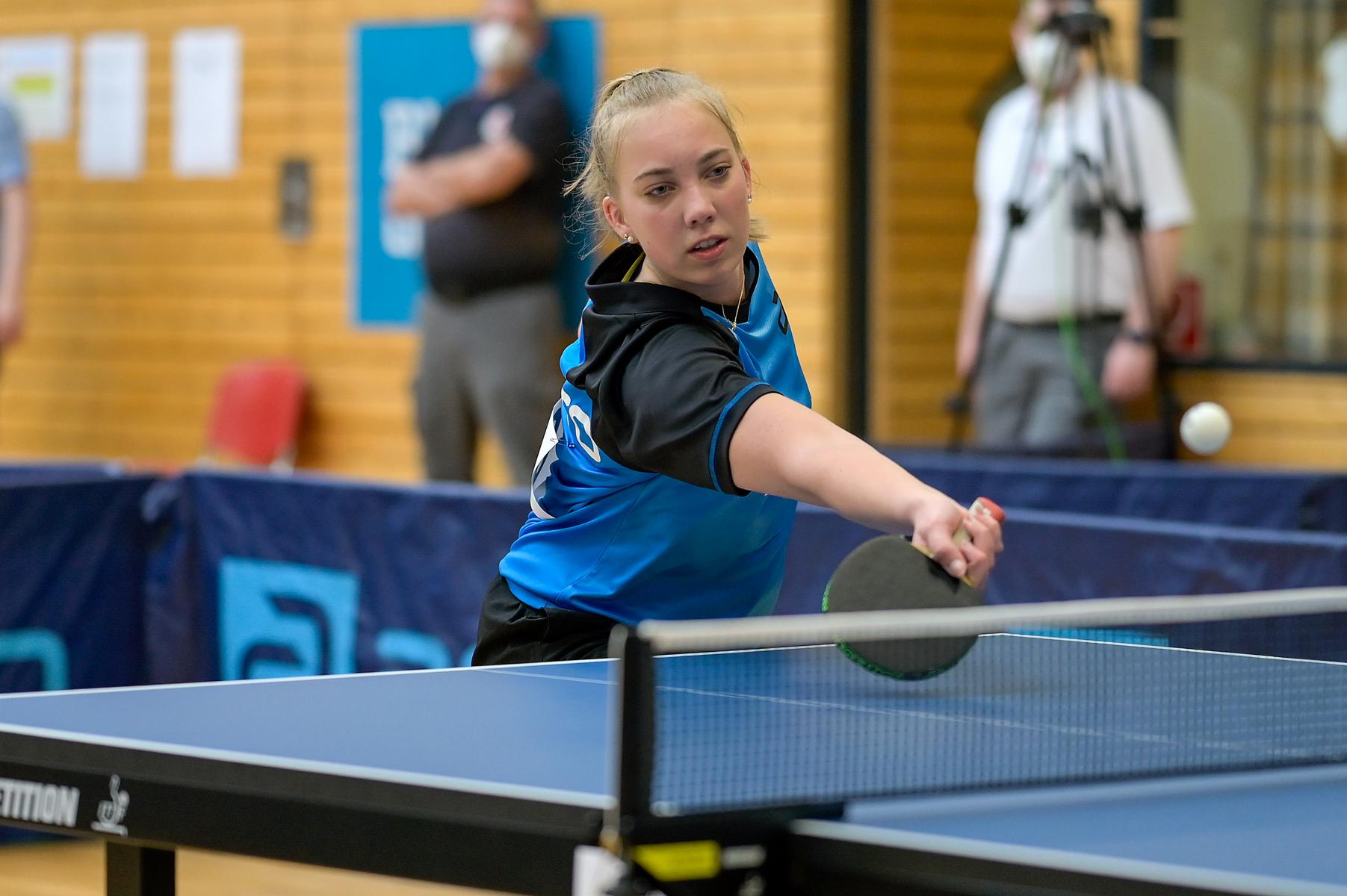 Die Mädchen U18 spielen zuerst in einer Gruppe. Für die anschließenden Halbfinalspiele konnten sich Luis Düchting (TTV Hövelhof), Eireen Kalaitzidou (Borussia Düsseldorf), Melinda Maiwald (TTV Hövelhof) und Lea Vehreschild (DJK Rhenania Kleve) qualifizieren. Angela Degueldre (TTC GW Brauweiler) konnte sich gegen die starken Konkurrentinnen nicht durchsetzen und schied als fünfte aus. Im ersten Halbfinale konnte sich Luisa gegen Lea mit 3:1 durchsetzen und zog ebenso ins Finale wie Eireen ein, die in einem Match auf Augenhöhe mit 3:1 gegen Melinda gewann.