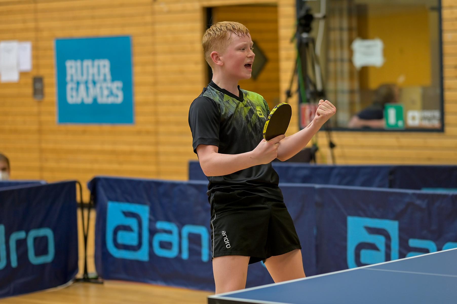 Der NRW-Cup 2021 wurde im Rahmen der Ruhr Games in der Rundsporthalle auf dem Stadiongelände des VFL Bochum ausgetragen. Die ehrenamtlichen Mitarbeiter des WTTV unter der Leitung von Thorsten Krüger haben hervorragende Bedingungen für dieses erste Turnier nach langer Zeit geschaffen. Die Kaderspieler*innen freuten sich darauf, nach über einem Jahr wieder in einem Wettkampf ihre Form abzurufen. Fünf Mädchen und acht Jungen gingen an den Start und zeigten, dass sie das Spiel mit dem kleinen weißen Ball nicht verlernt haben. Aufgrund der Corona-Regeln waren Zuschauer nicht erlaubt. Für all diejenigen, die Zuhause bleiben mussten, hat Sportdeutschland TV die Spiele von zwei Tischen im Livestream übertragen.