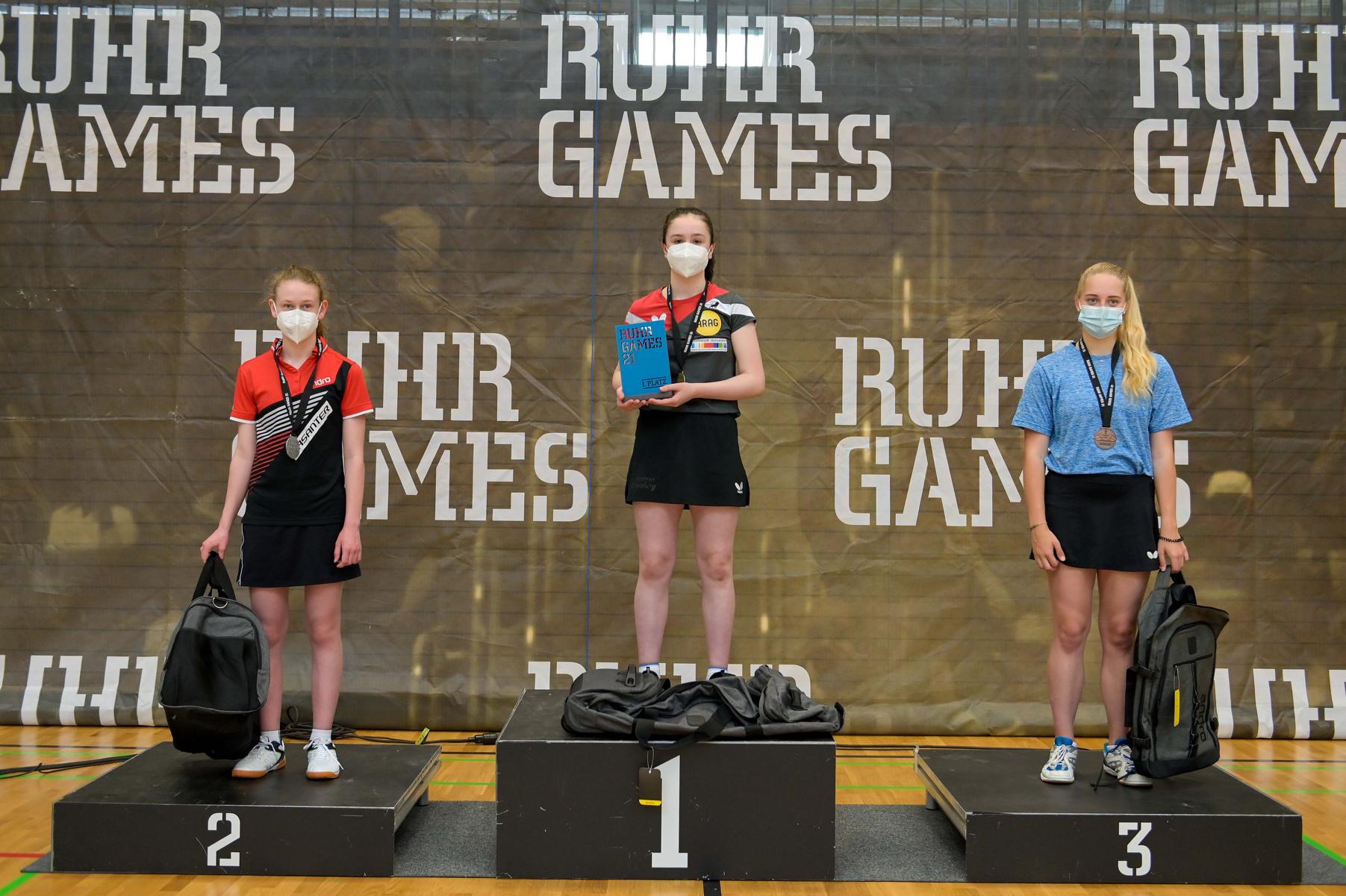 Eireen Kalaizidou (Borussia Düsseldorf) revanchierte sich im hochklassigen Finale der Mädchen für die Gruppenniederlage gegen Luisa Düchting. Mit 11:5, 11:7, 11:8, 8:11 und 11:5 konnte sie sich im Endspiel durchsetzen und durfte sich zum Schluss des Tages die Goldmedaille umhängen.