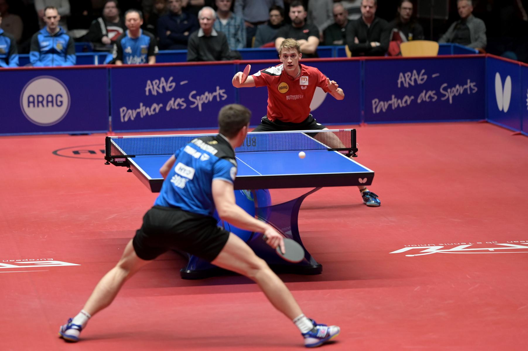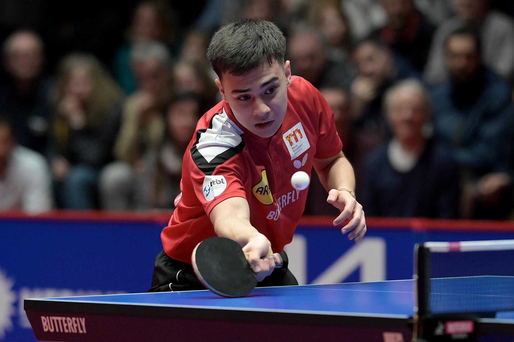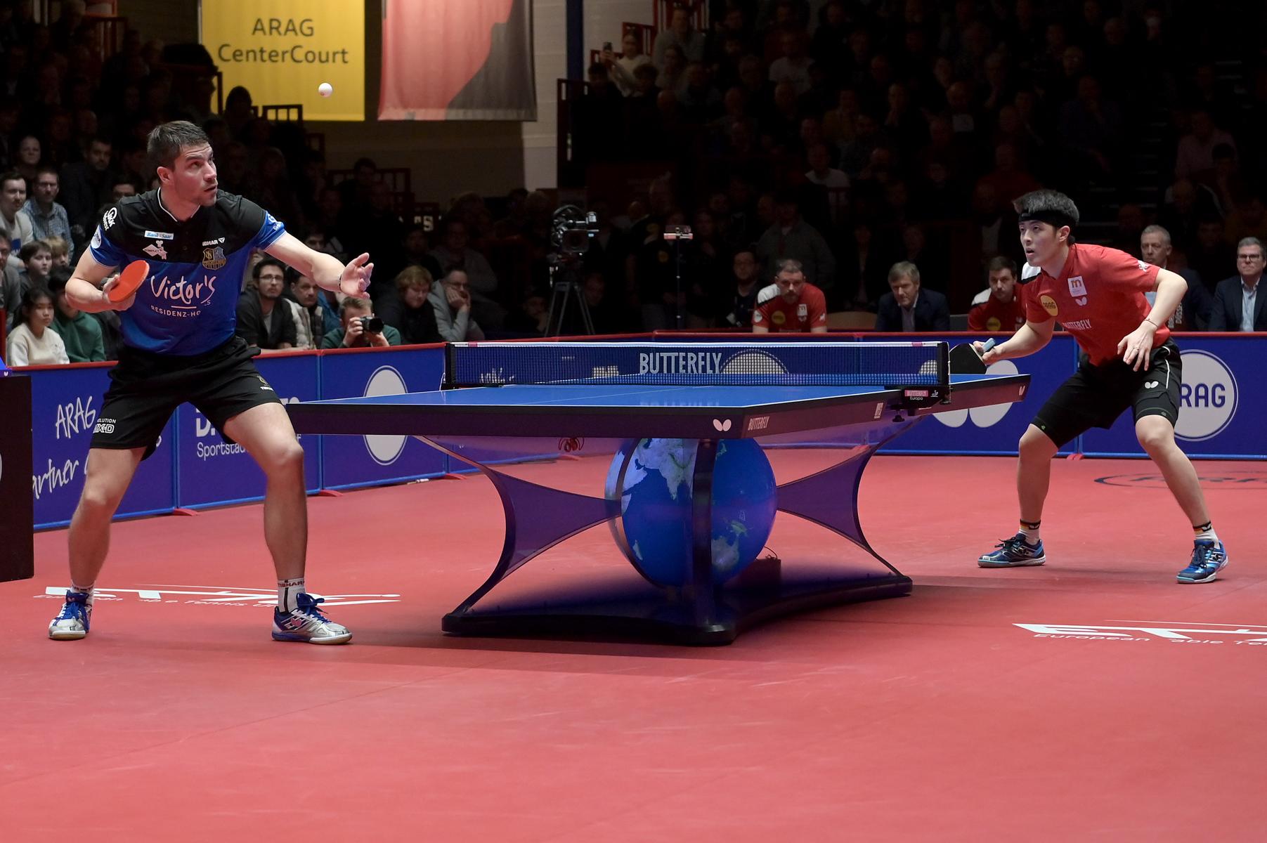 Patrick Franziska ( Saarbrücken ) gegen Dang Qiu ( Düsseldorf ) Foto: Jörg Fuhrmann