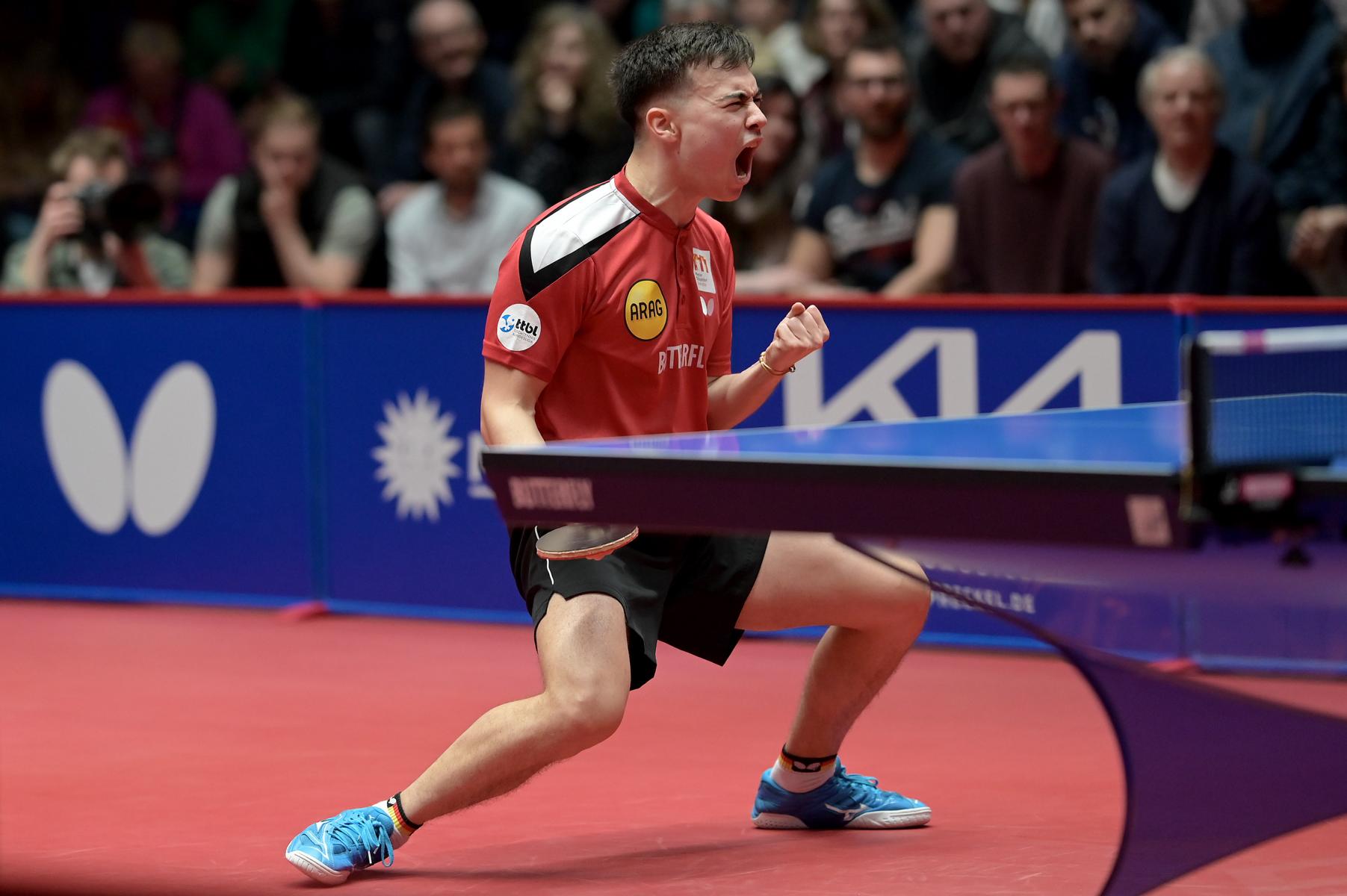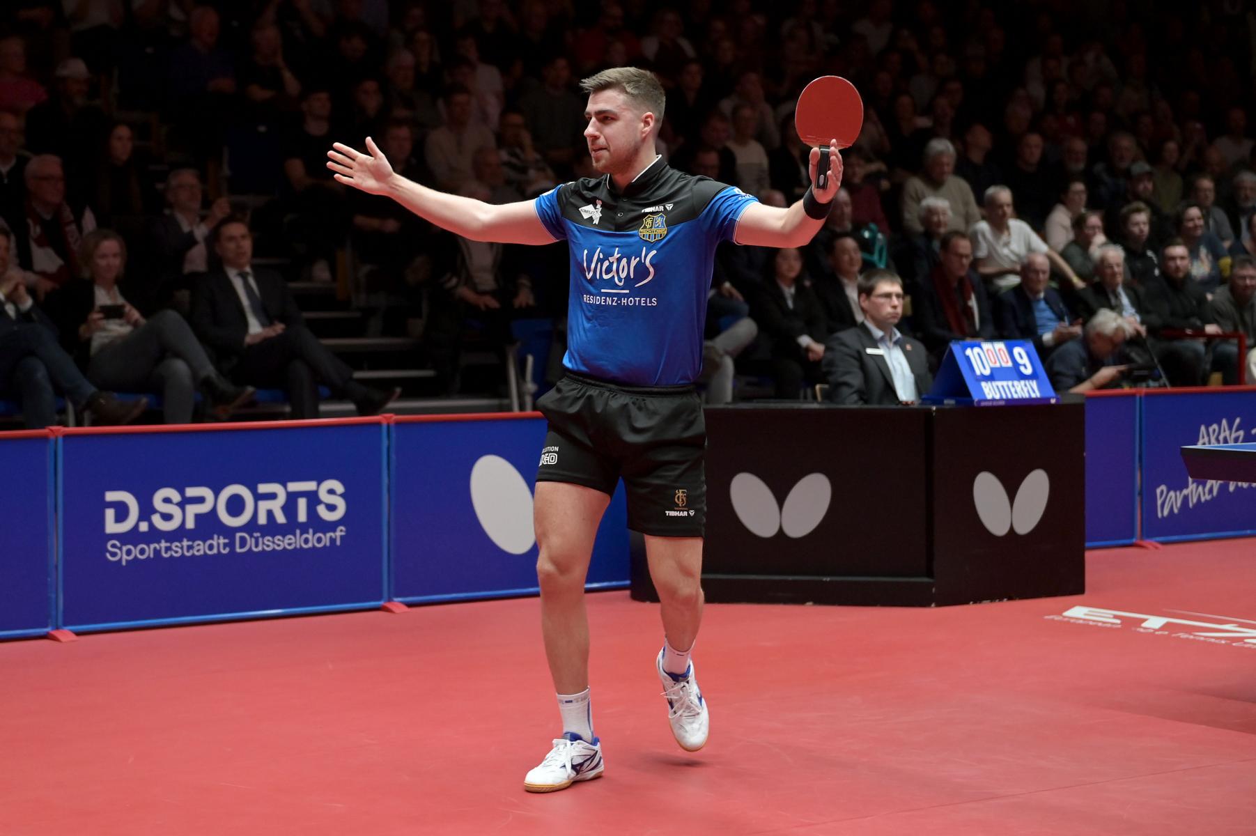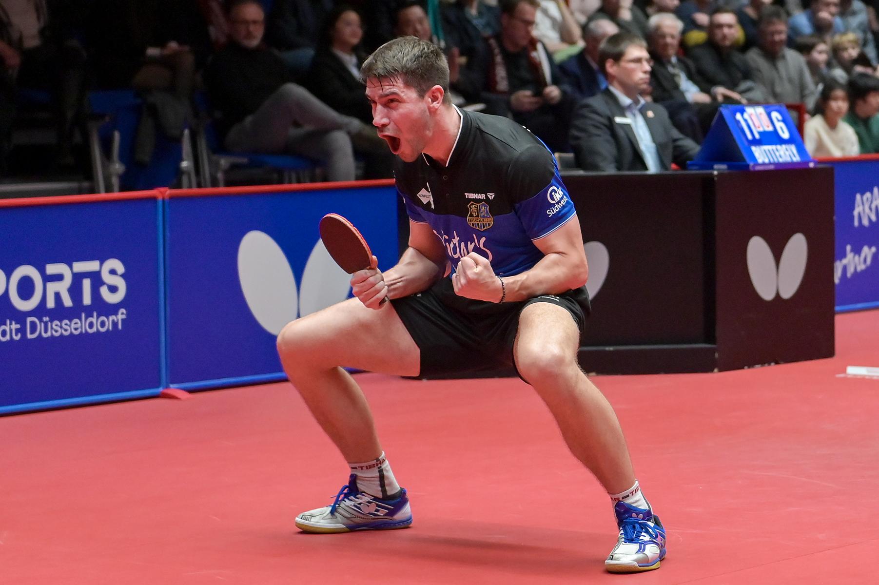 Patrik Franziska gleicht auf 1:1 aus. Foto: Jörg Fuhrmann