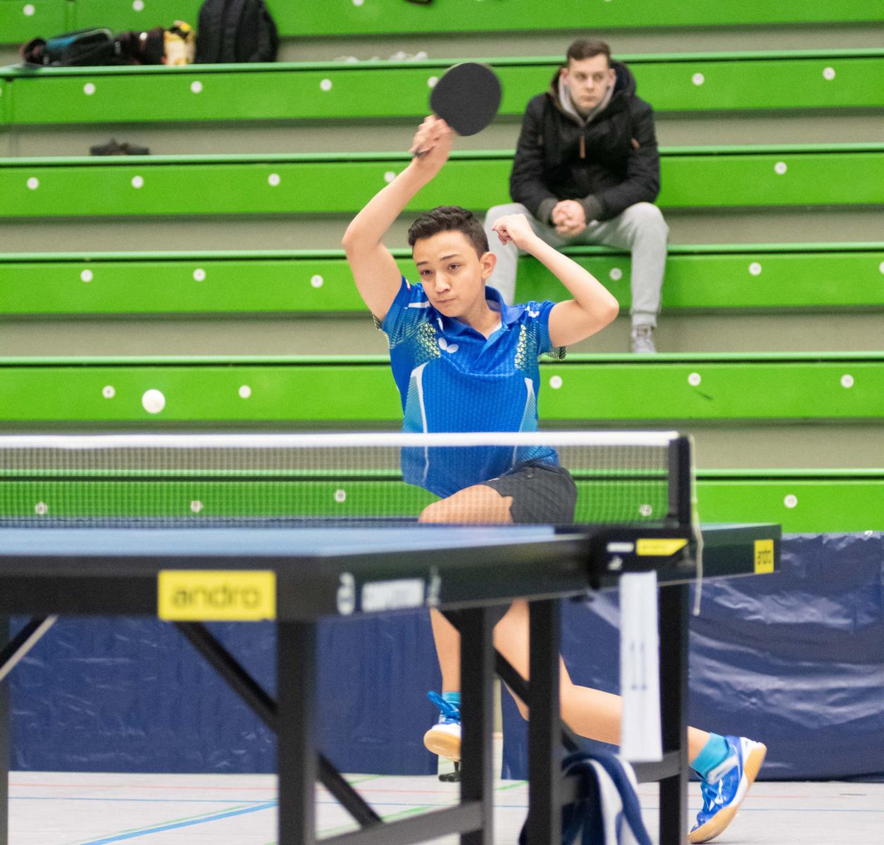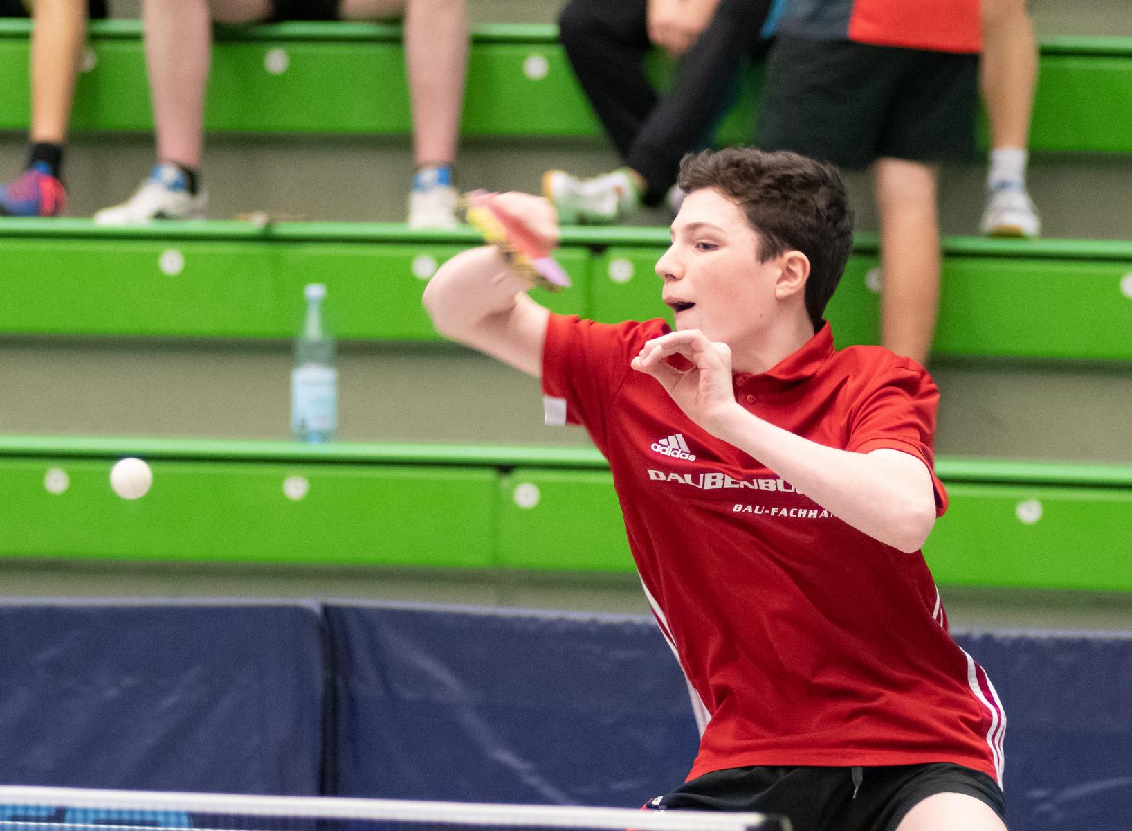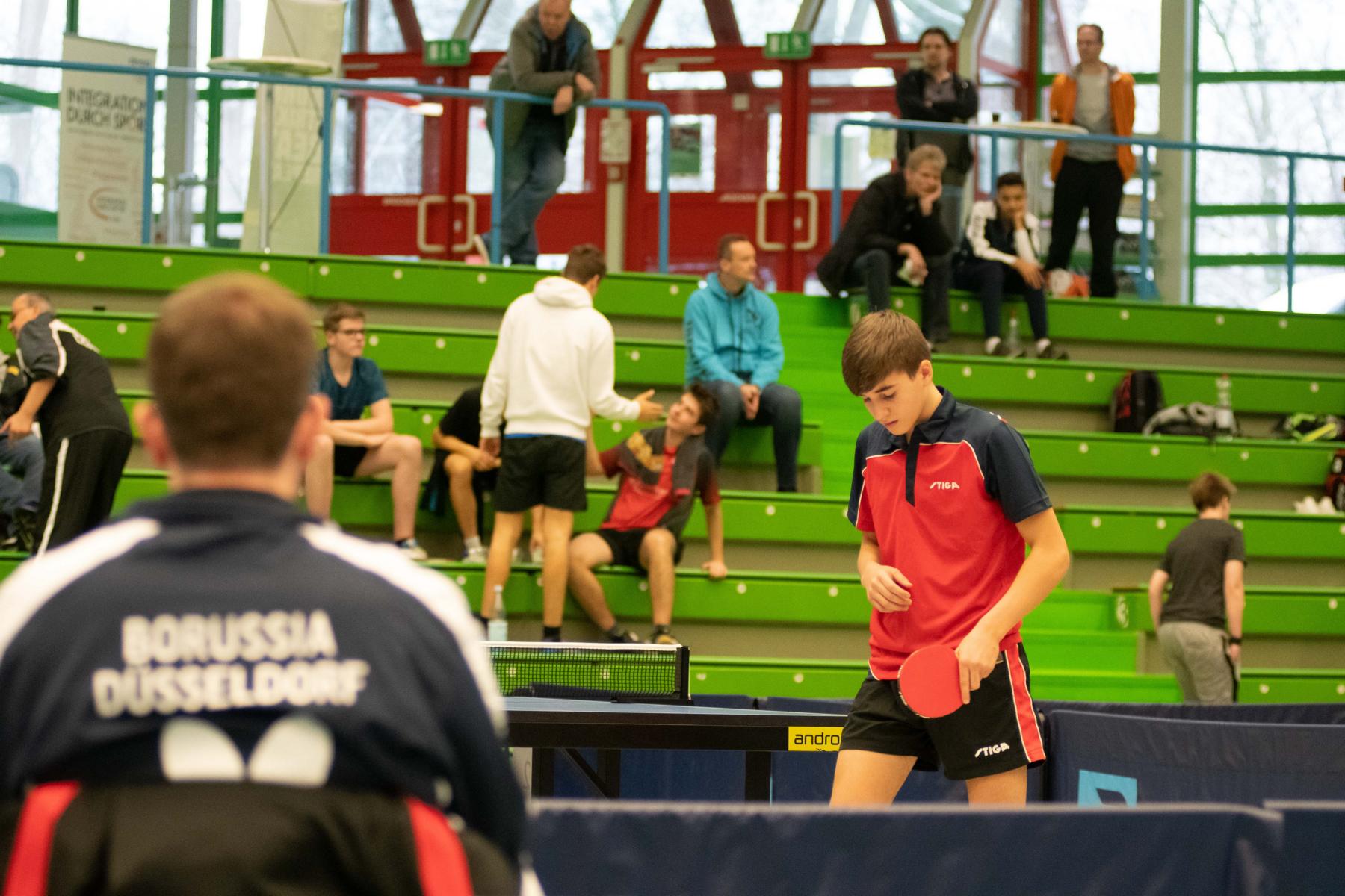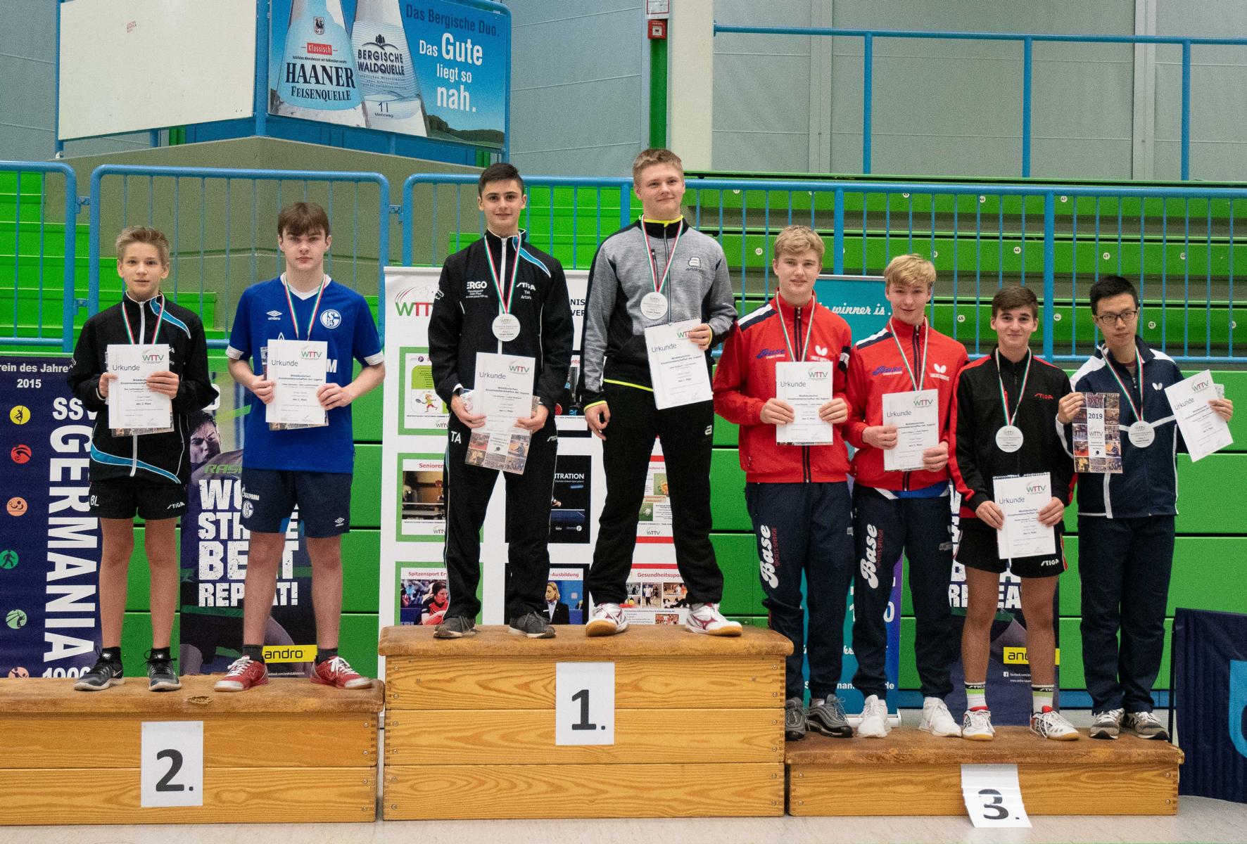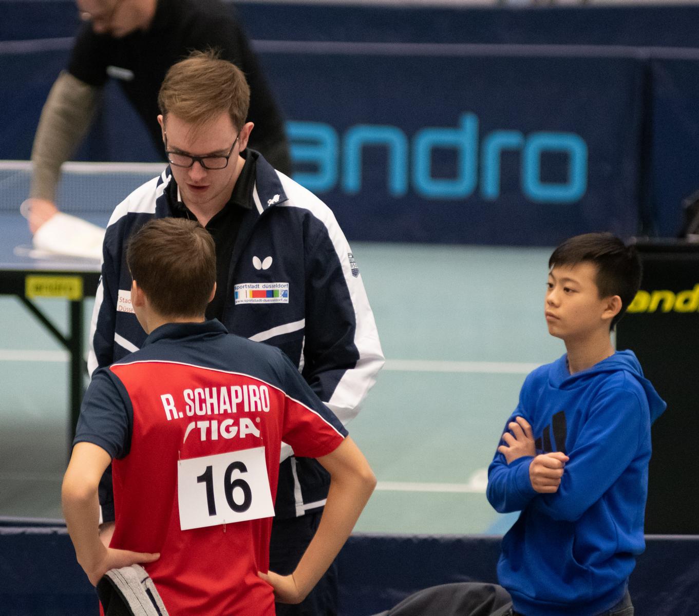 Auch die Sieger bei den Jungen Lukas Bosbach und Tim Artarov ließen ihrer Konkurrenz keine Chance, gaben lediglich einen Satz ab und holten sich verdient den Titel. Im Finale spielten sie etwas überraschend gegen die Paarung Ben Lechtenbörger und Lukas Karmann (1. FC Gievenbeck/1.FC Schalke), die im Halbfinale die favorisierten Düsseldorfer Schapiro/Guo Jiaxing deutlich mit 3:0 besiegten.