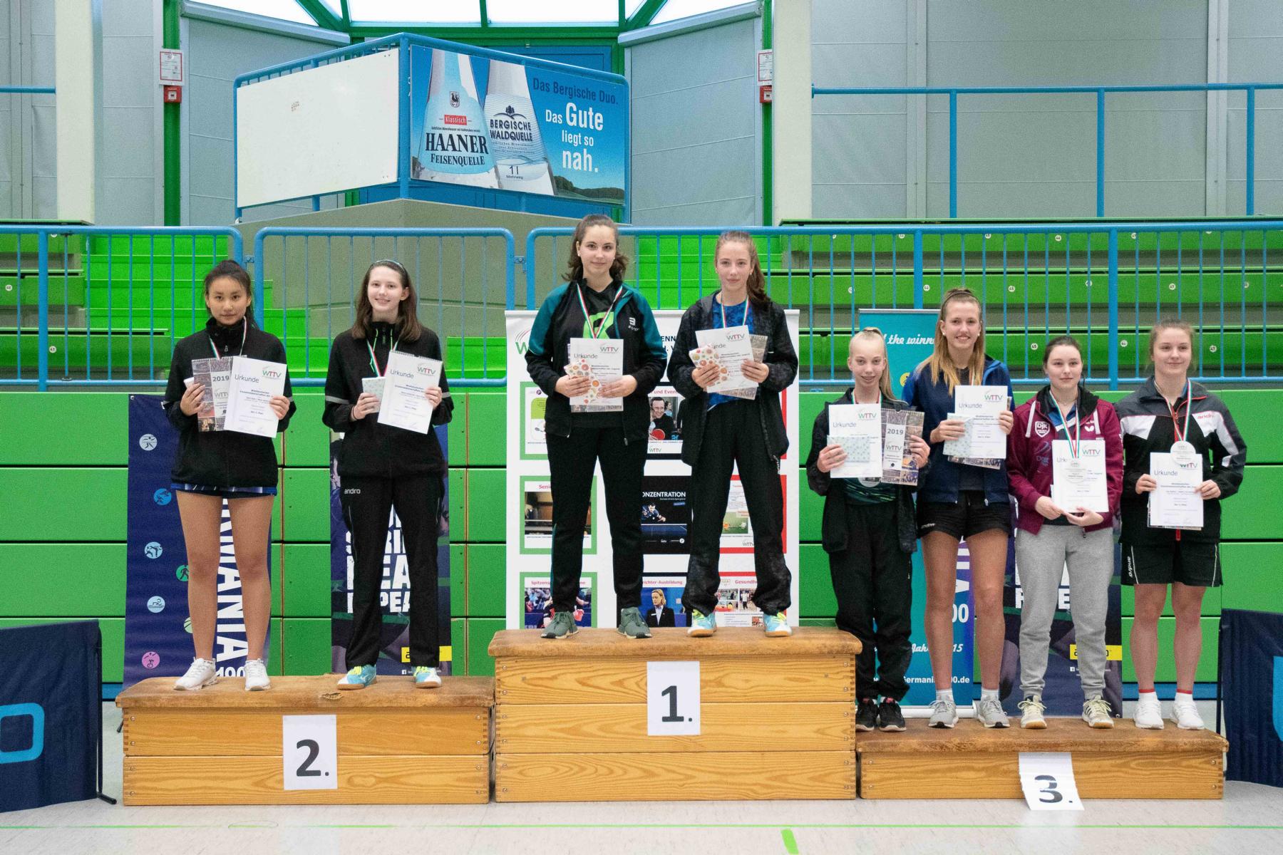 Insgesamt gab es bei diesen Meisterschaften keine Überraschungen. Die Favoriten setzten sich allesamt durch. So standen im Halbfinale der Mädchen dann auch die vier gesetzten Spielerinnen. Hannah Schönau traf auf Lea Vehreschild (DJK Rhenania Kleve) und Anni Zhan (Anrather TK) auf Mara Lamhardt (TTVg WRW Kleve), die als einzige im Viertelfinale über die volle Distanz gehen musste, aber am Ende mit 3:2 gegen Charlotte Schönau (TTC Mariaweiler) erfolgreich war.