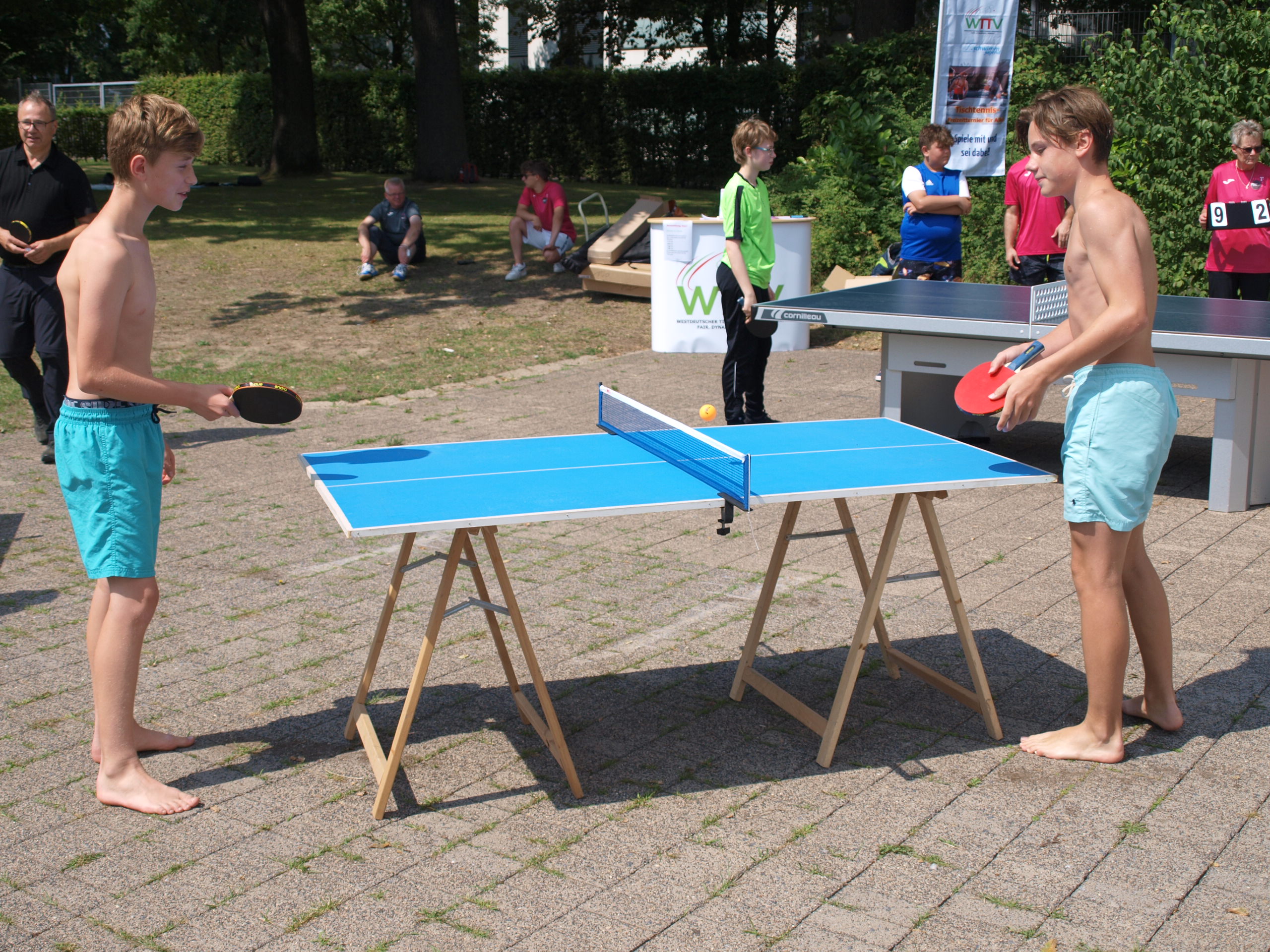Trotz Sonnenschein und 26° war das Freibad „Wiesenbad“ in Bielefeld nur wenig besucht. Dennoch konnte die erste Austragung des WTTV-Schwimmbad-Cups an einem Steintisch durch den TPSV Bielefeld erfolgreich durchgeführt werden. In drei Vorrunden konnten sich die jeweils beiden ersten für die Finalrunde qualifizieren, bei der um kleine Preise gespielt wurde.